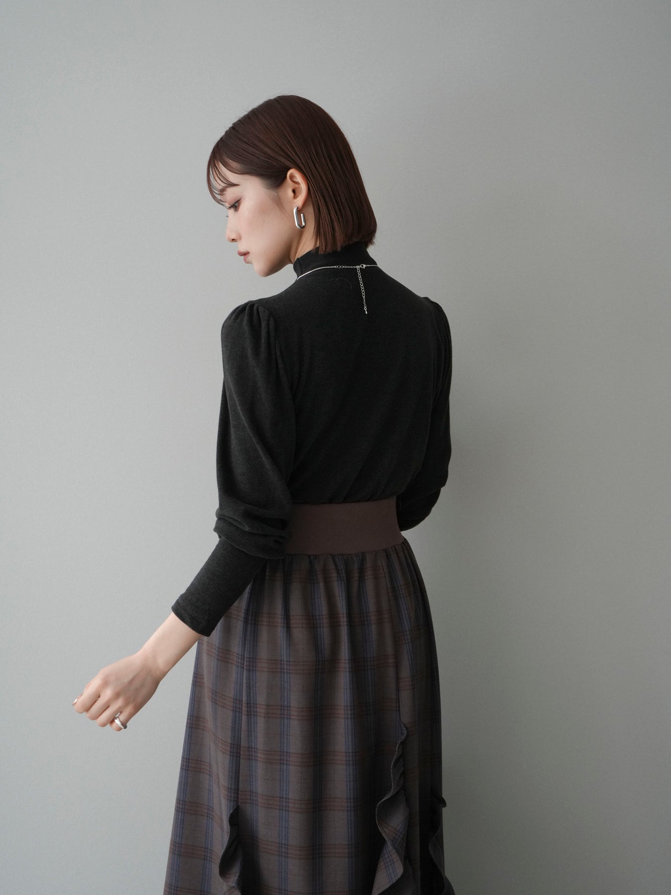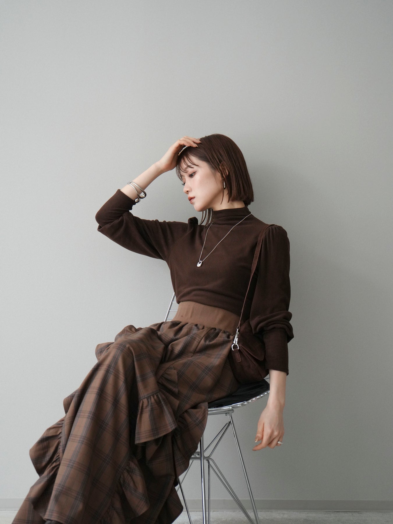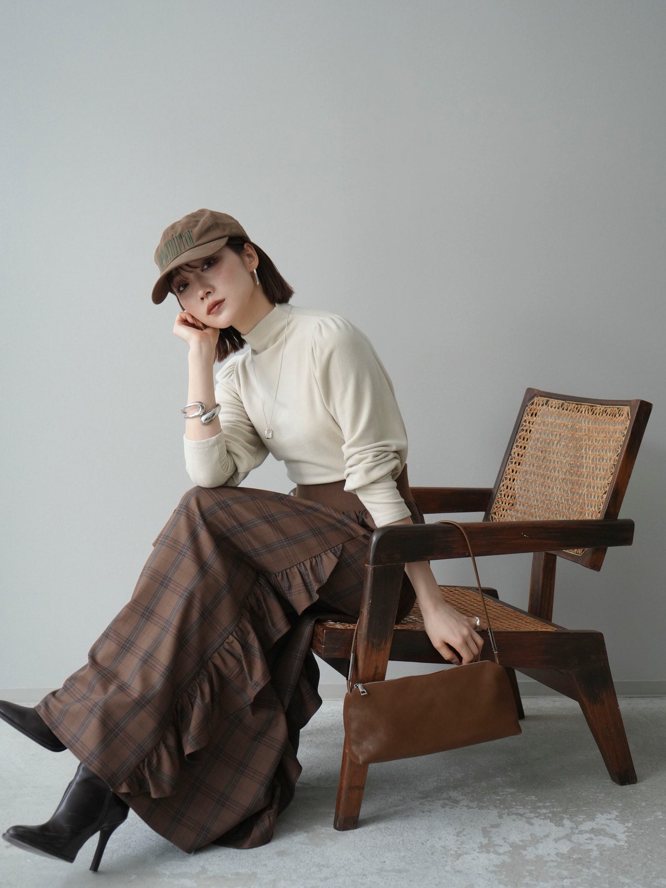 プチネックデザインとパワーショルダーが印象的な、起毛素材のトップス。 首元は程よく詰まったデザインで上品さを演出しつつ、肩に入った立体感のあるシルエットが女性らしいメリハリをプラスします。 起毛感のある柔らかな素材が、着心地の良さとシーズンムードを両立。 一枚で着映えし、ボトムにインしてもアウトしてもバランス良く決まります。 きれいめからカジュアルまで幅広いスタイリングに活躍する、大人のためのデザイントップスです。 ※ボトムス、キャミソール(インナー)以外の商品は一律でインナーは付属していません。