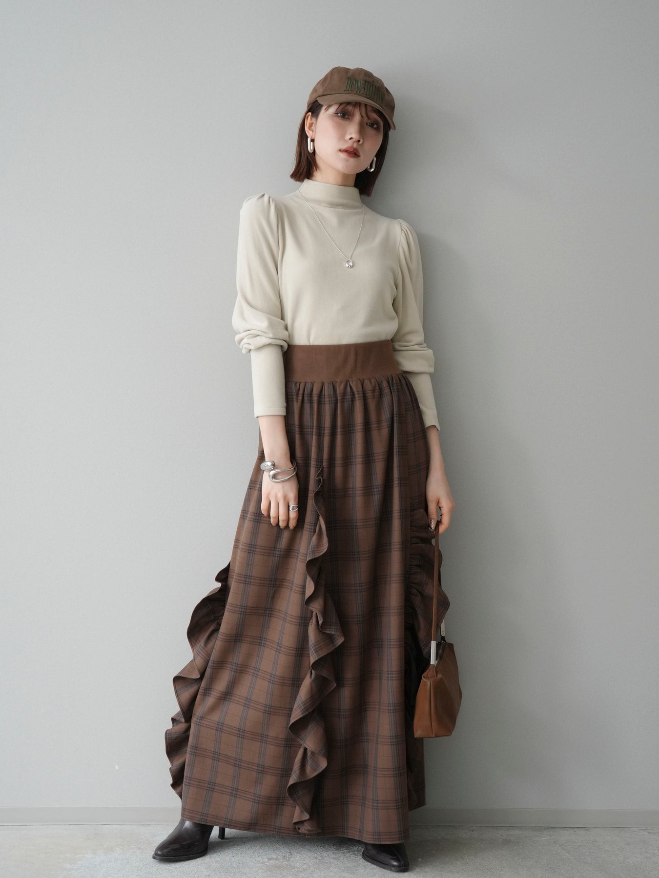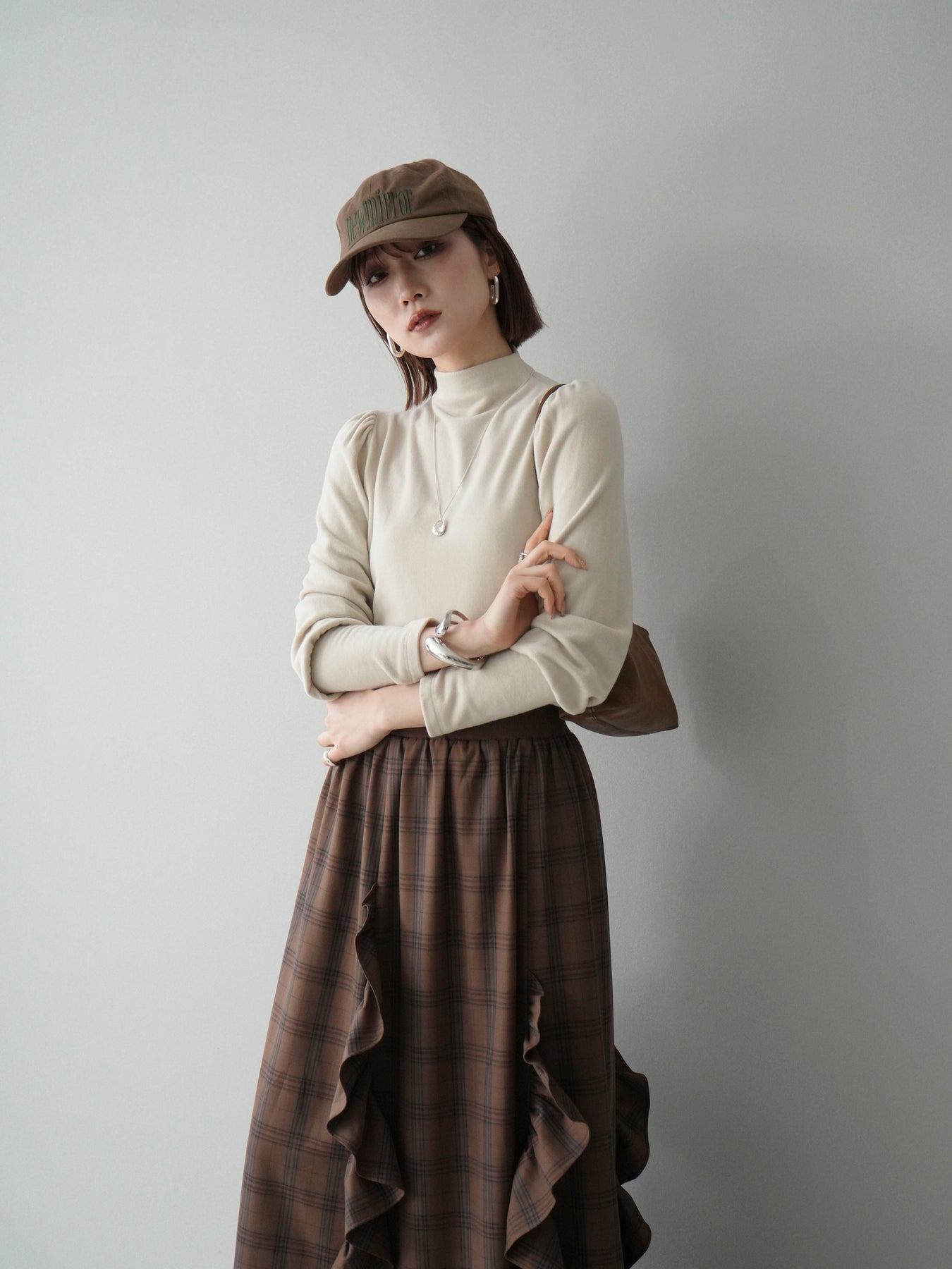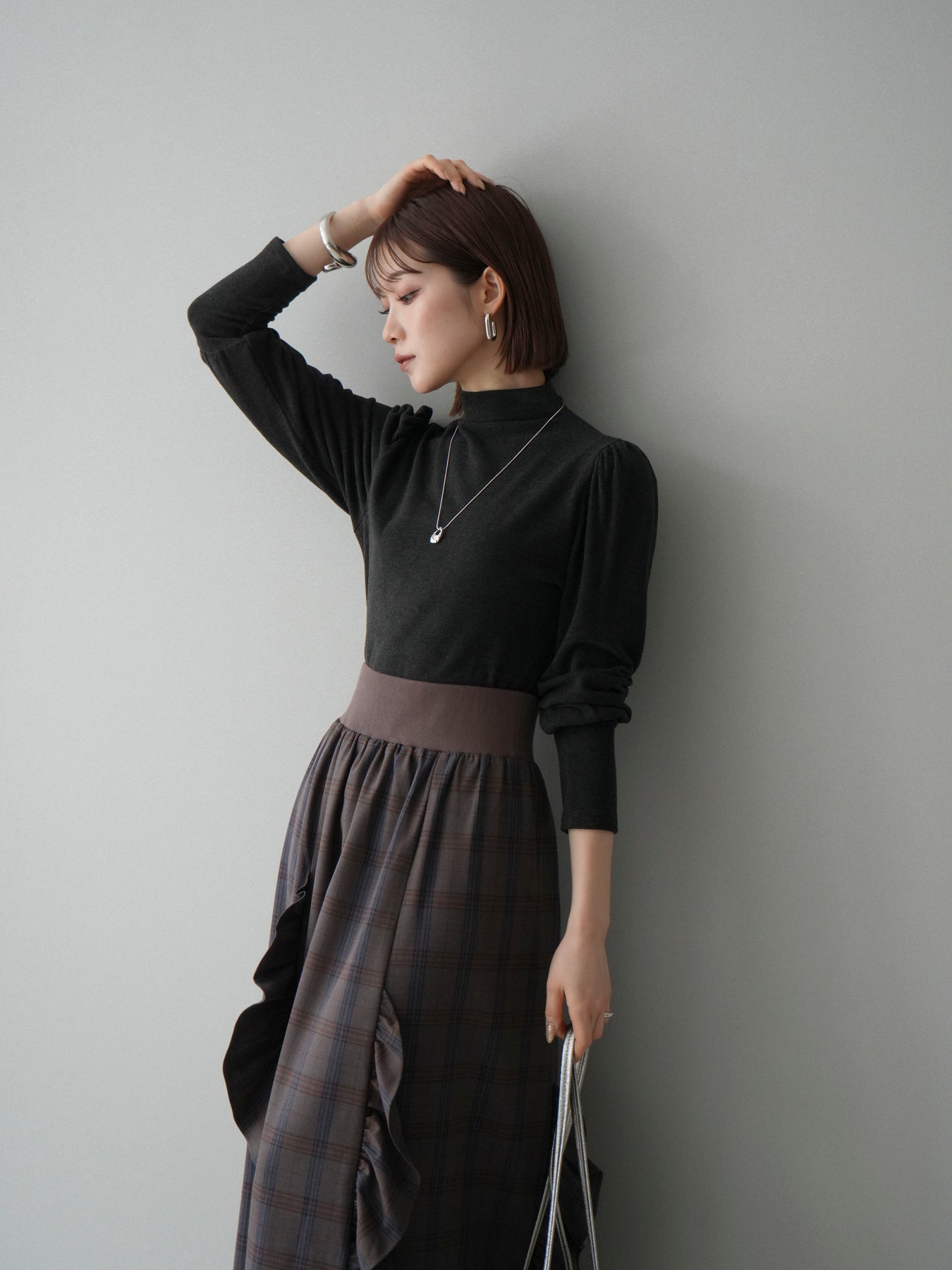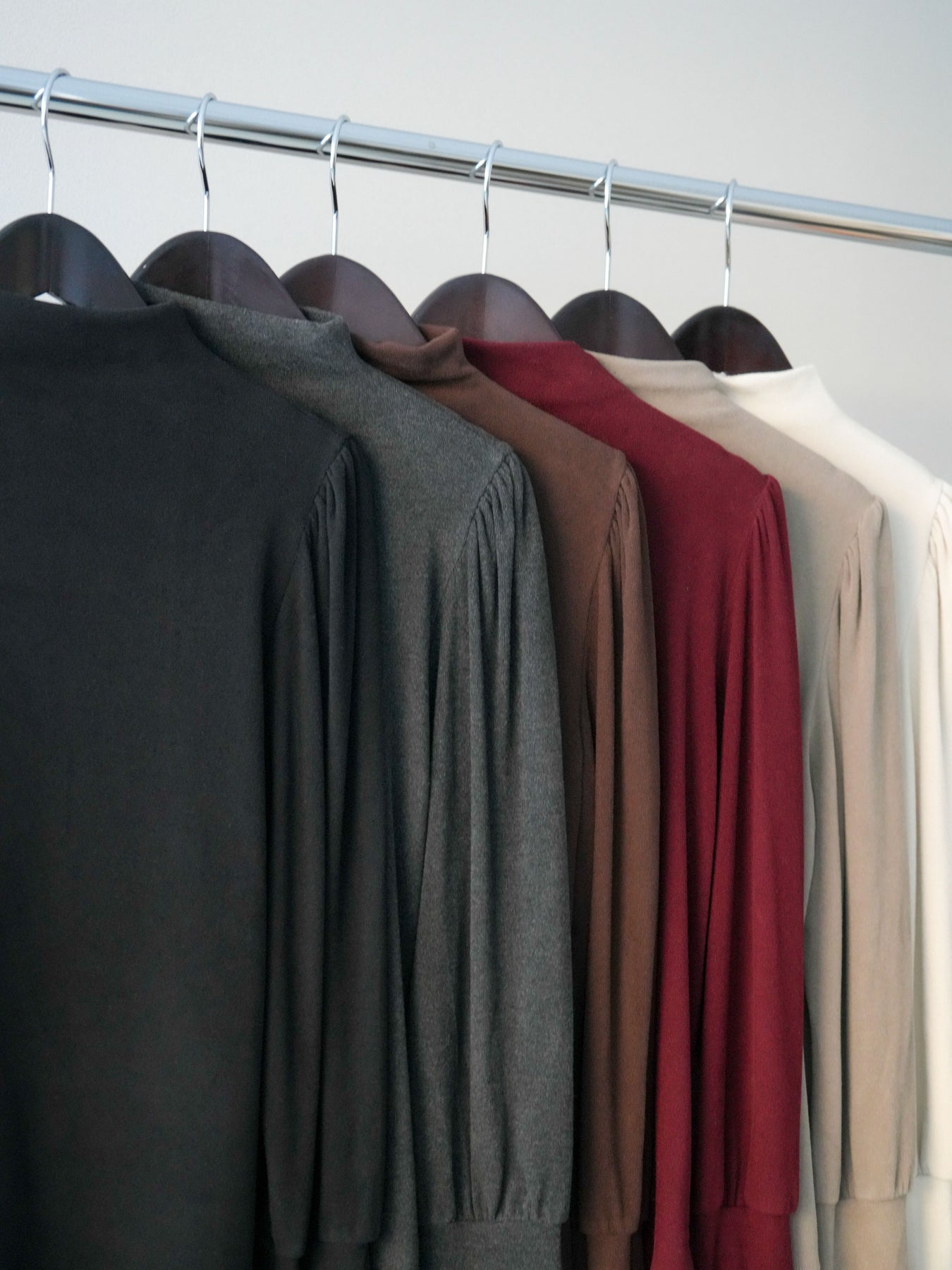 ◆ [予約]プチネックパワーショルダー起毛トップス