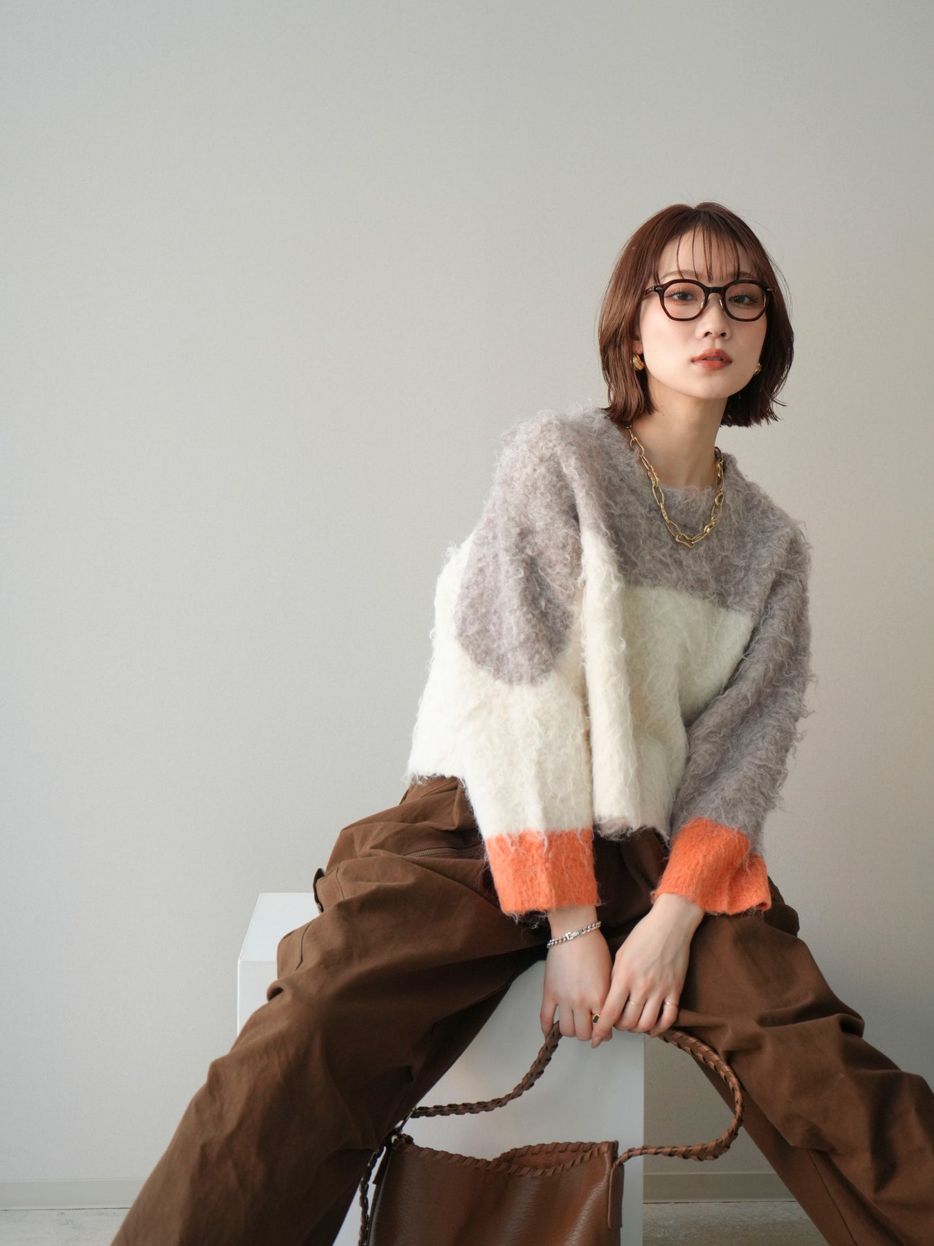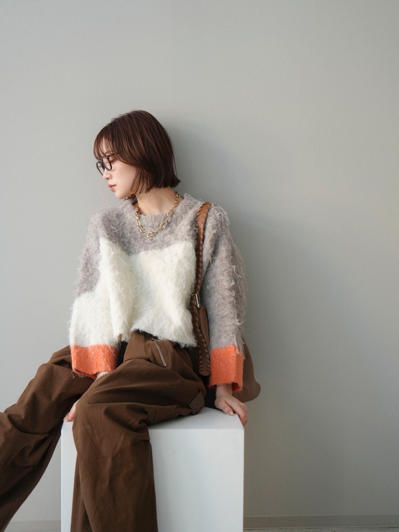 ◆ [予約]バイカラーモヘアタッチニットプルオーバー