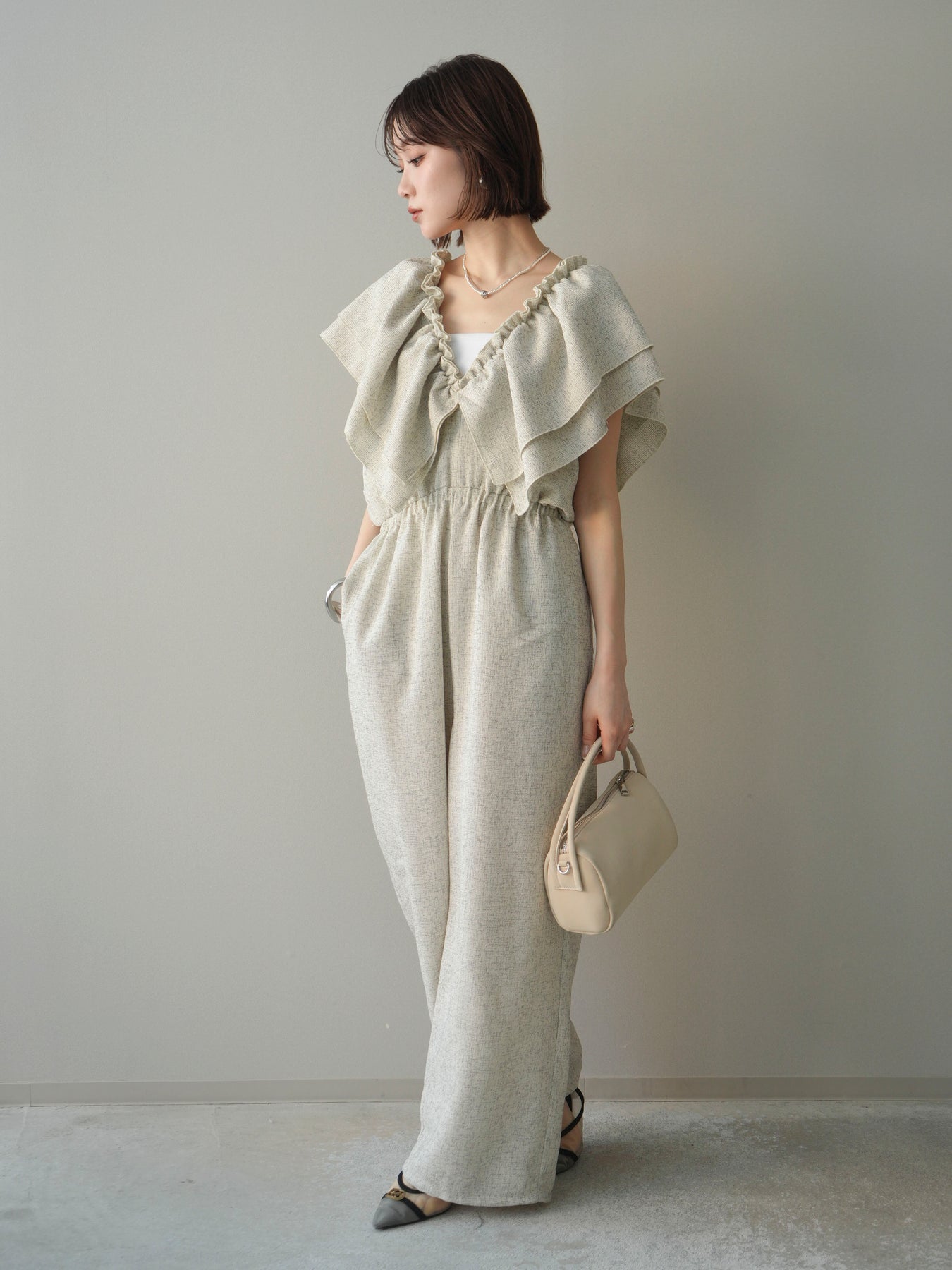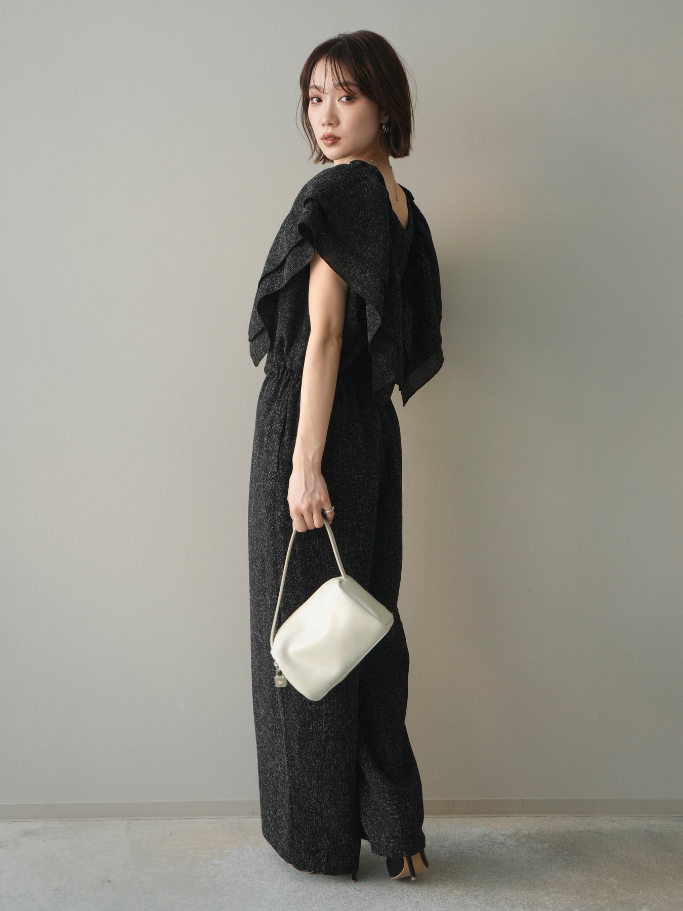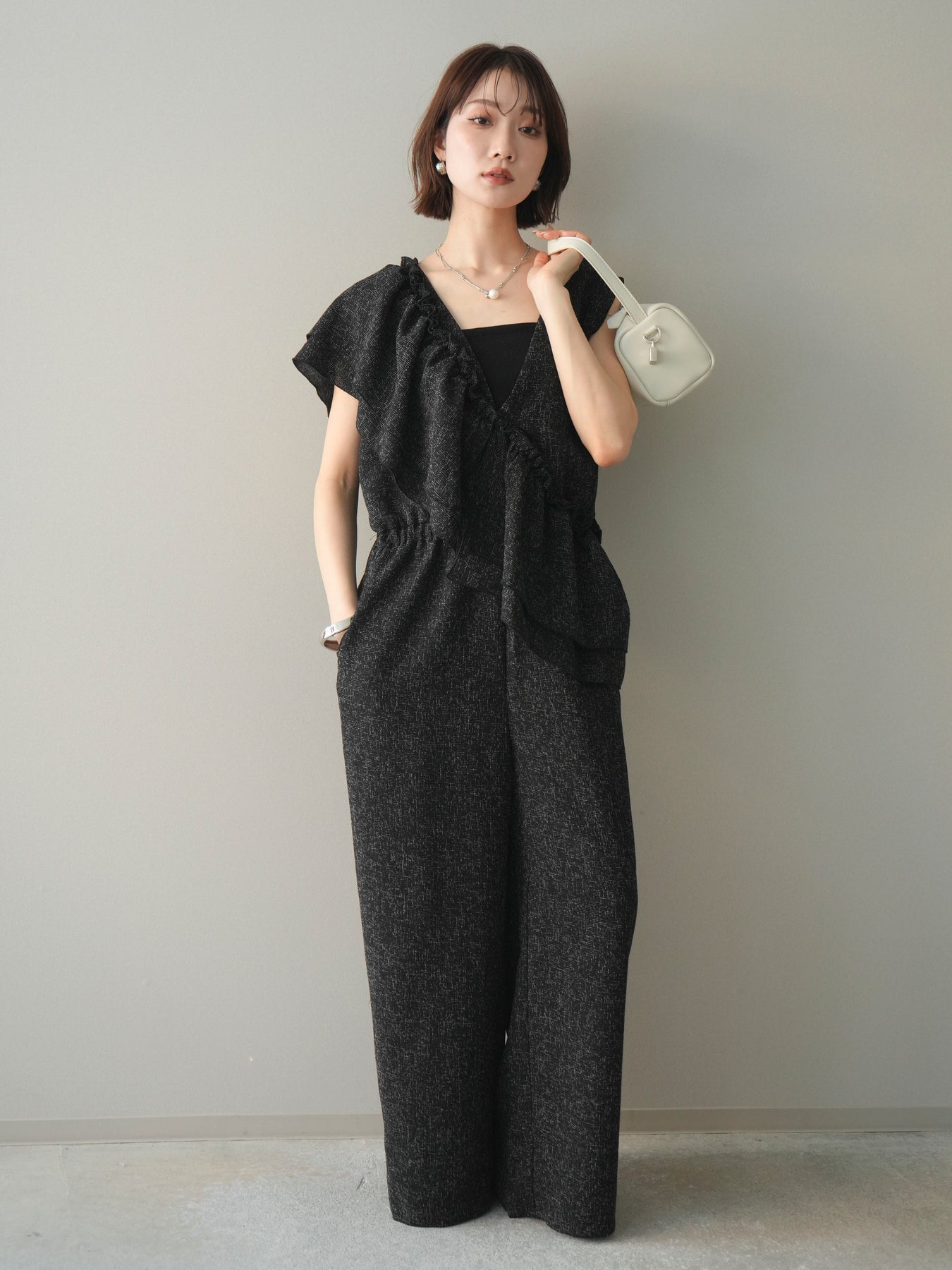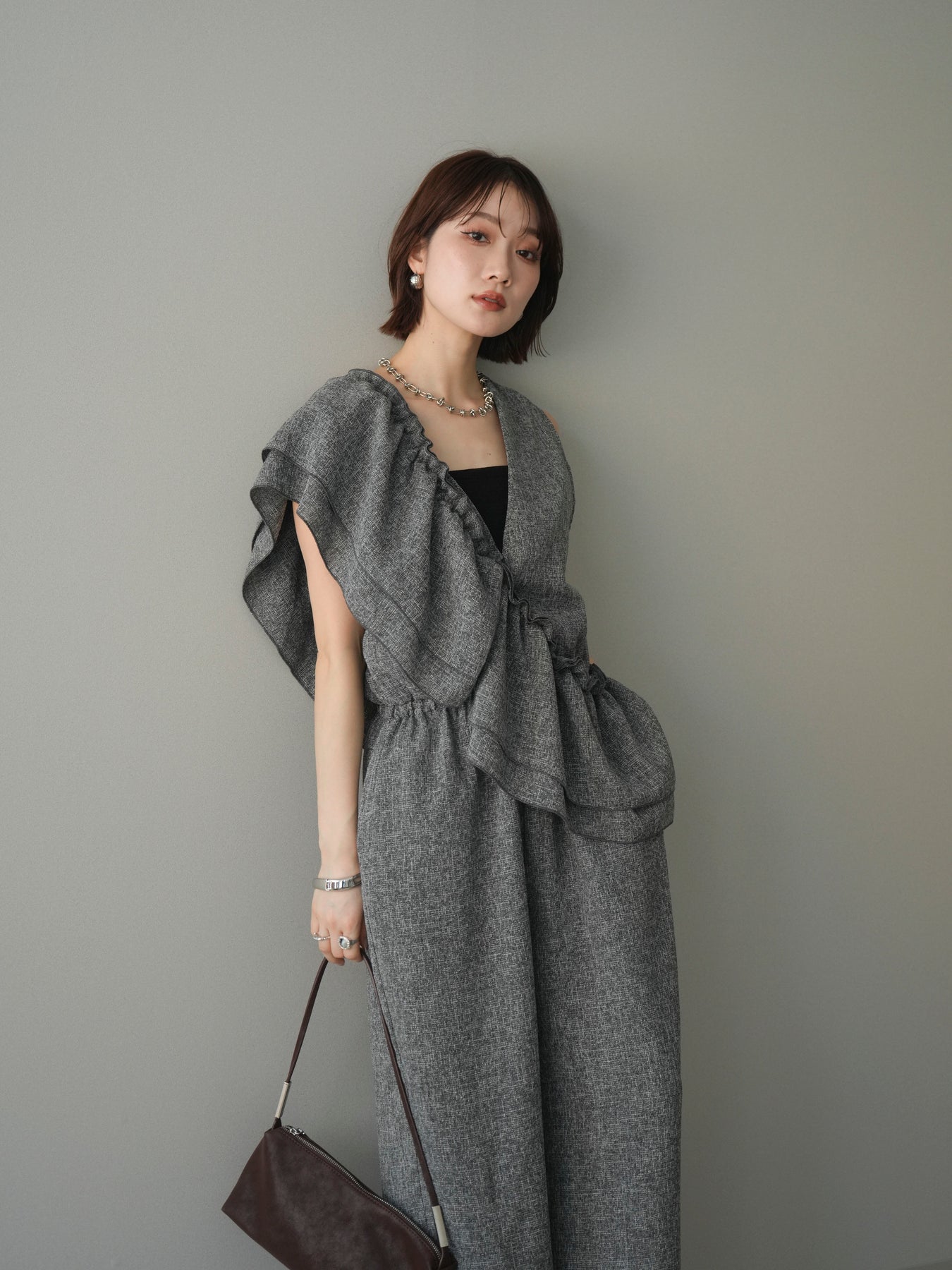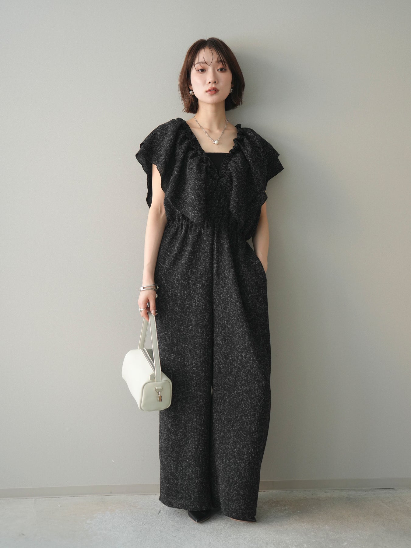 [SET]3WAYミックスツイードギャザーオールインワン+選べるアクセセット(2set)