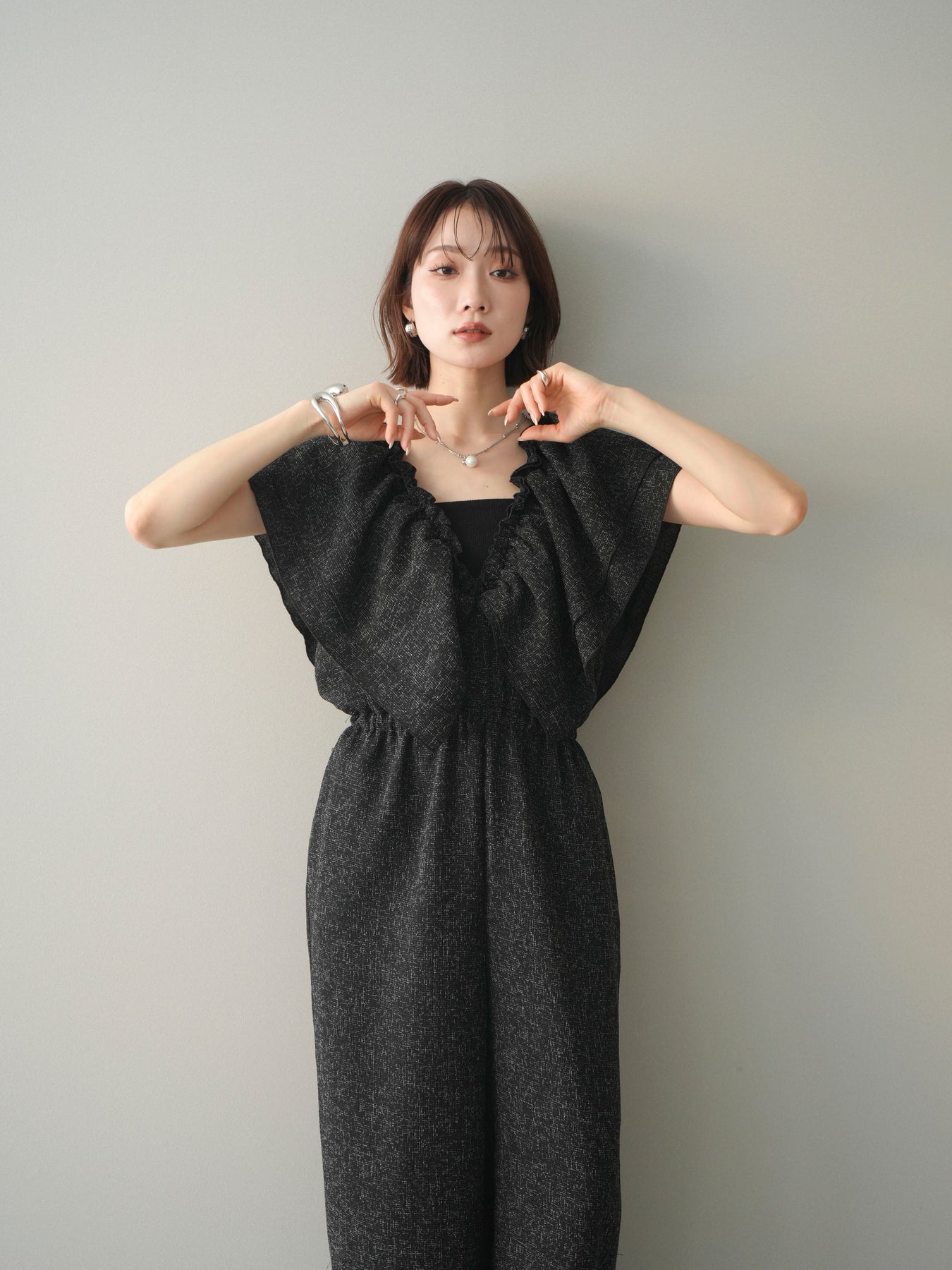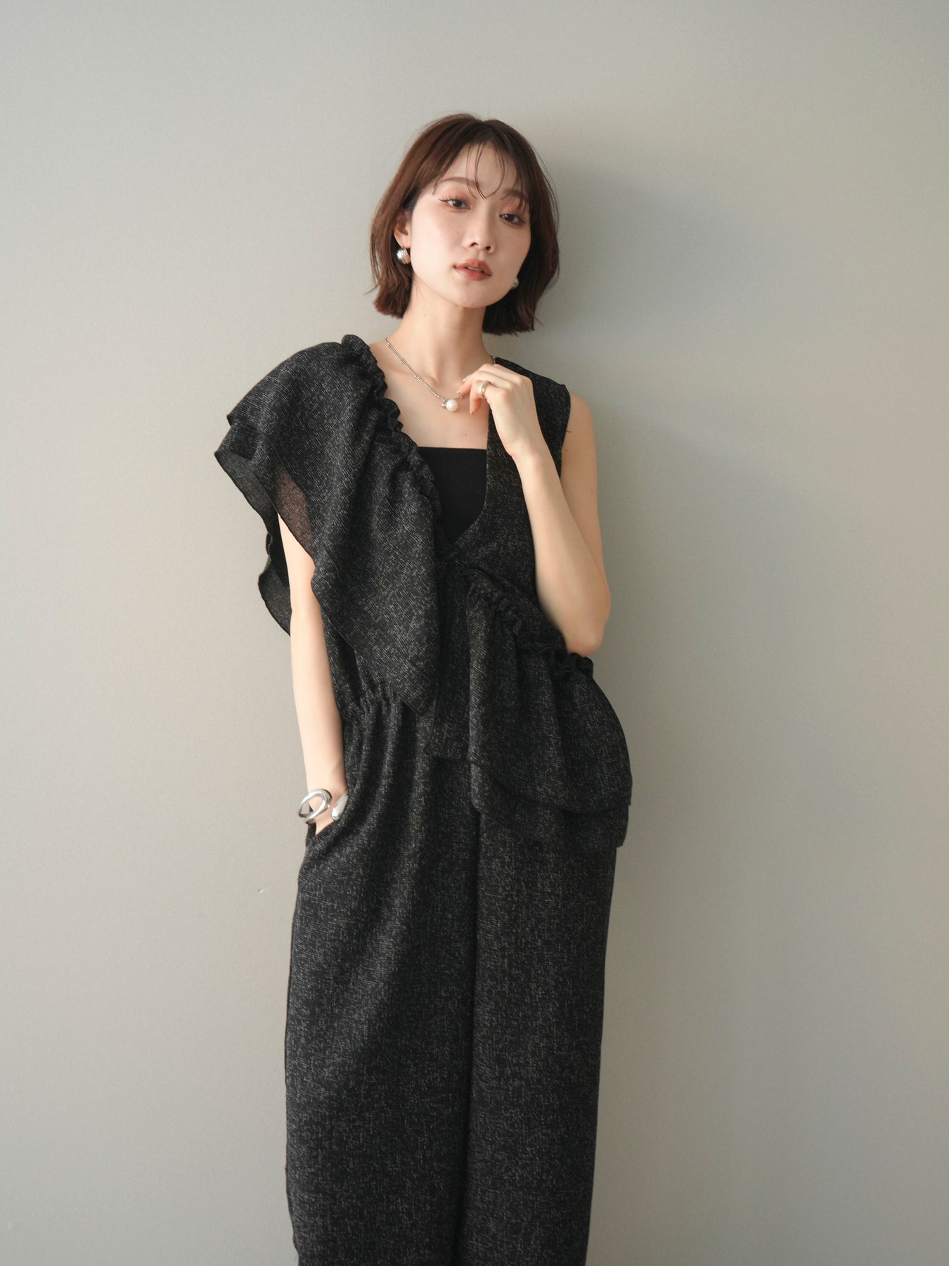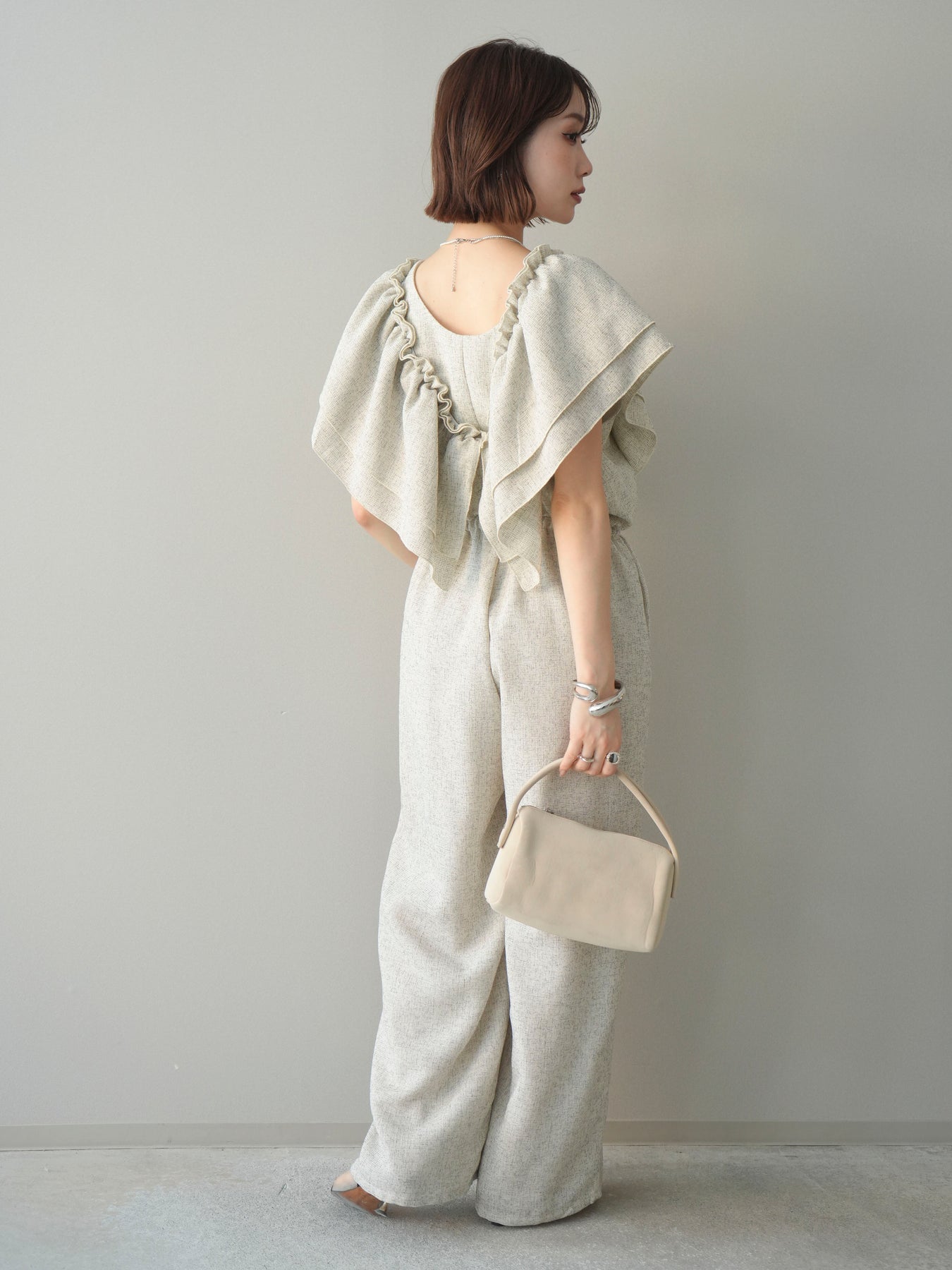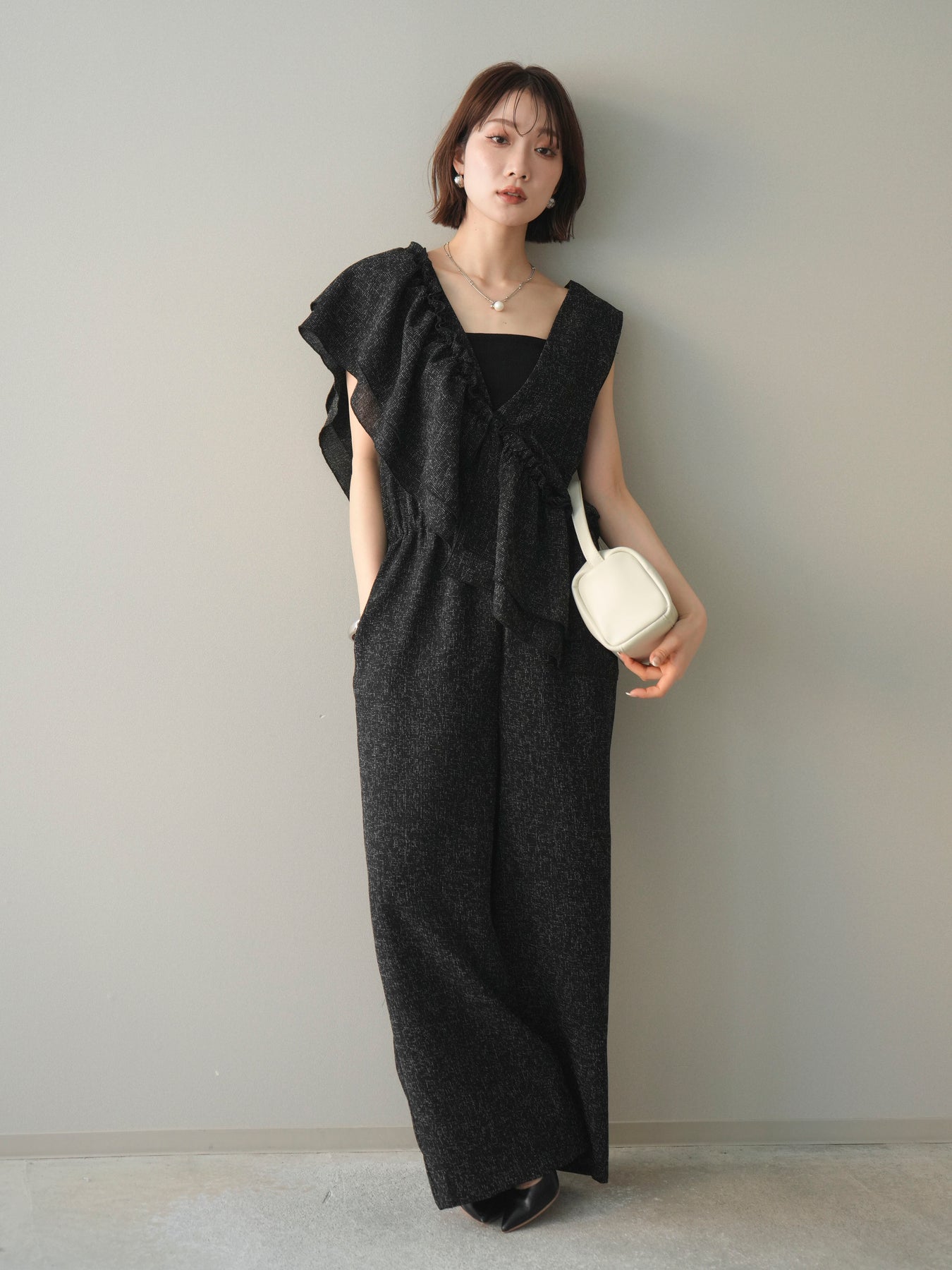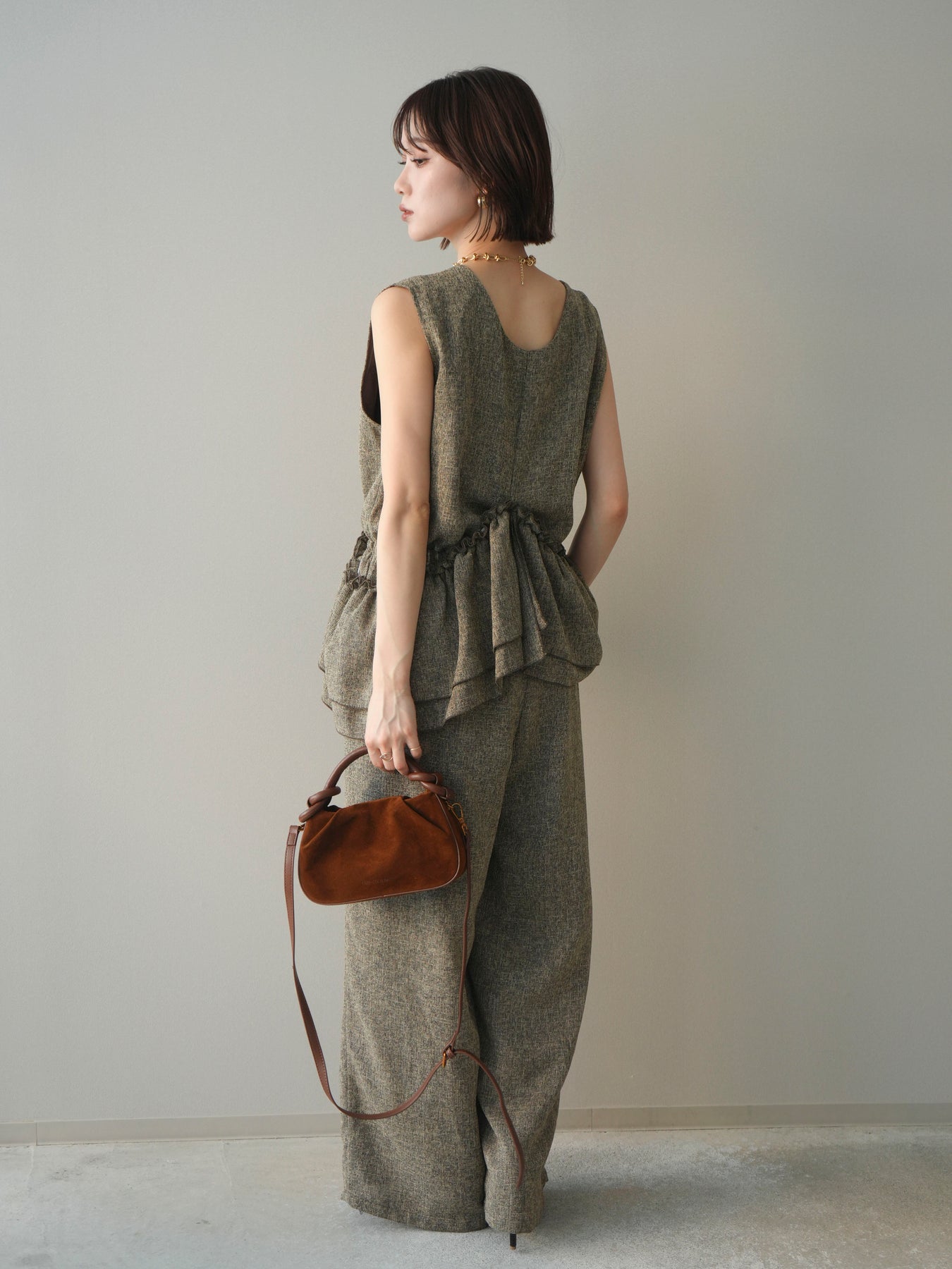 [SET]3WAYミックスツイードギャザーオールインワン+選べるアクセセット(2set)