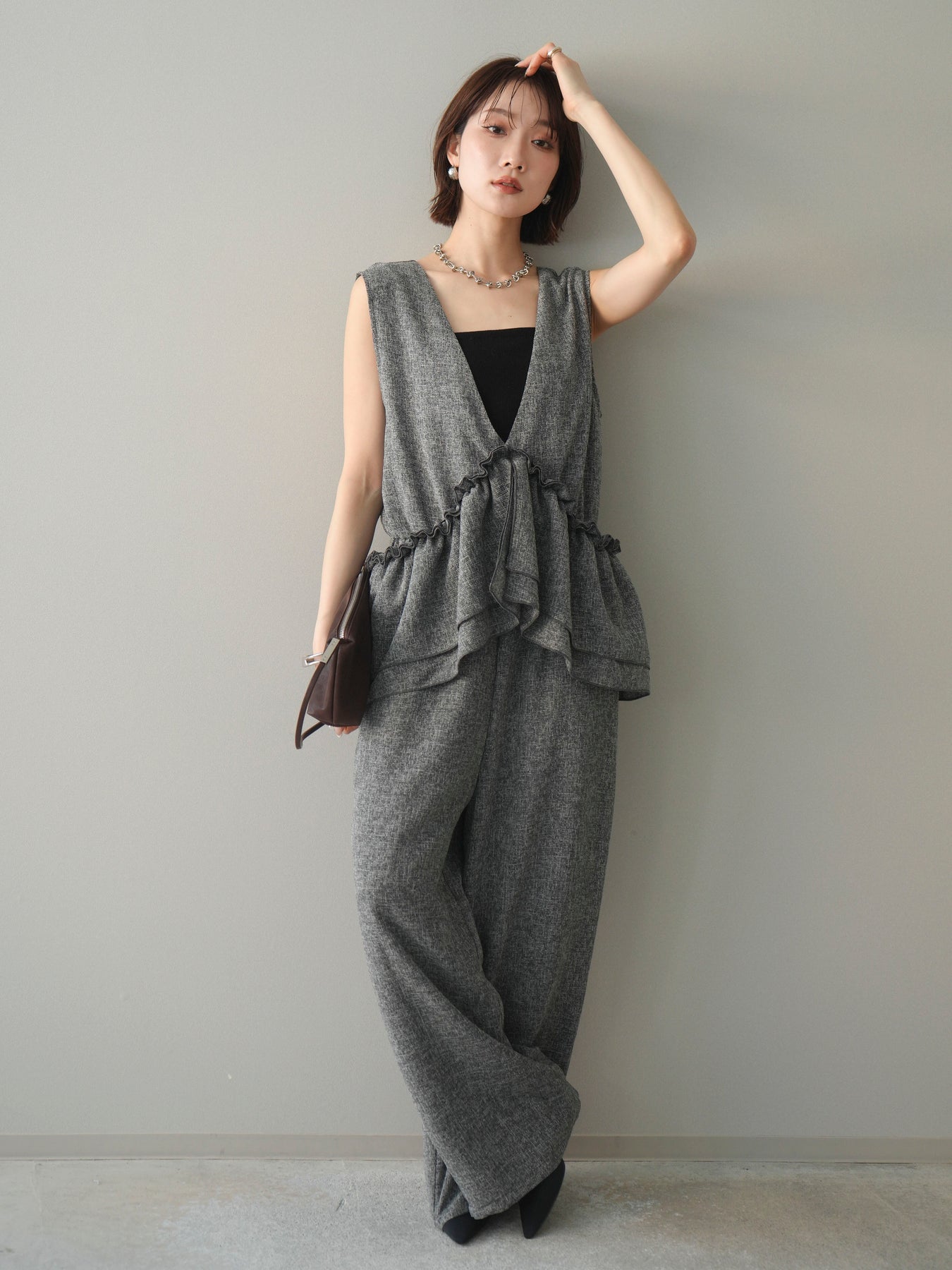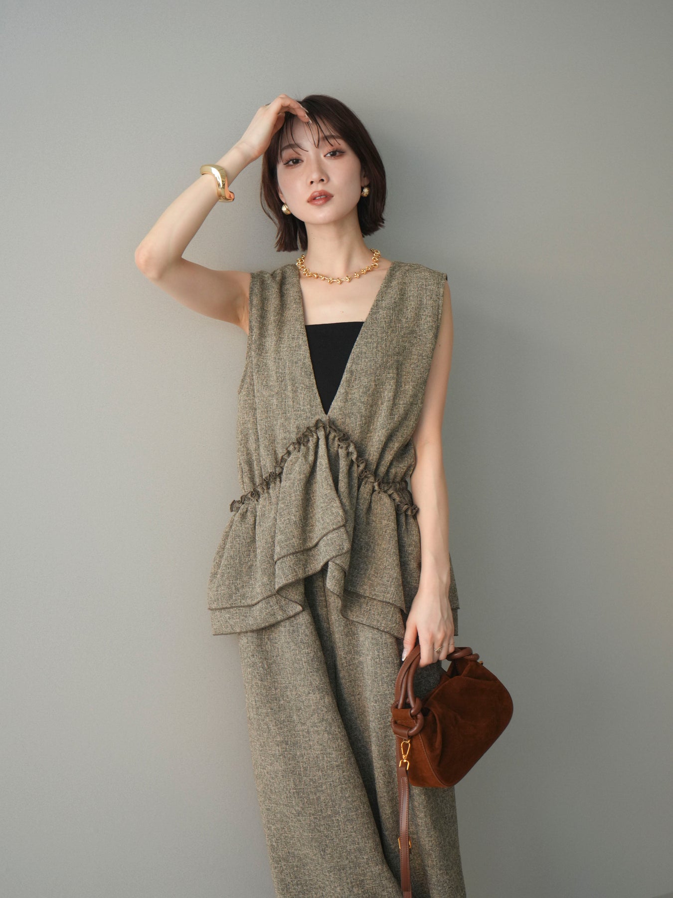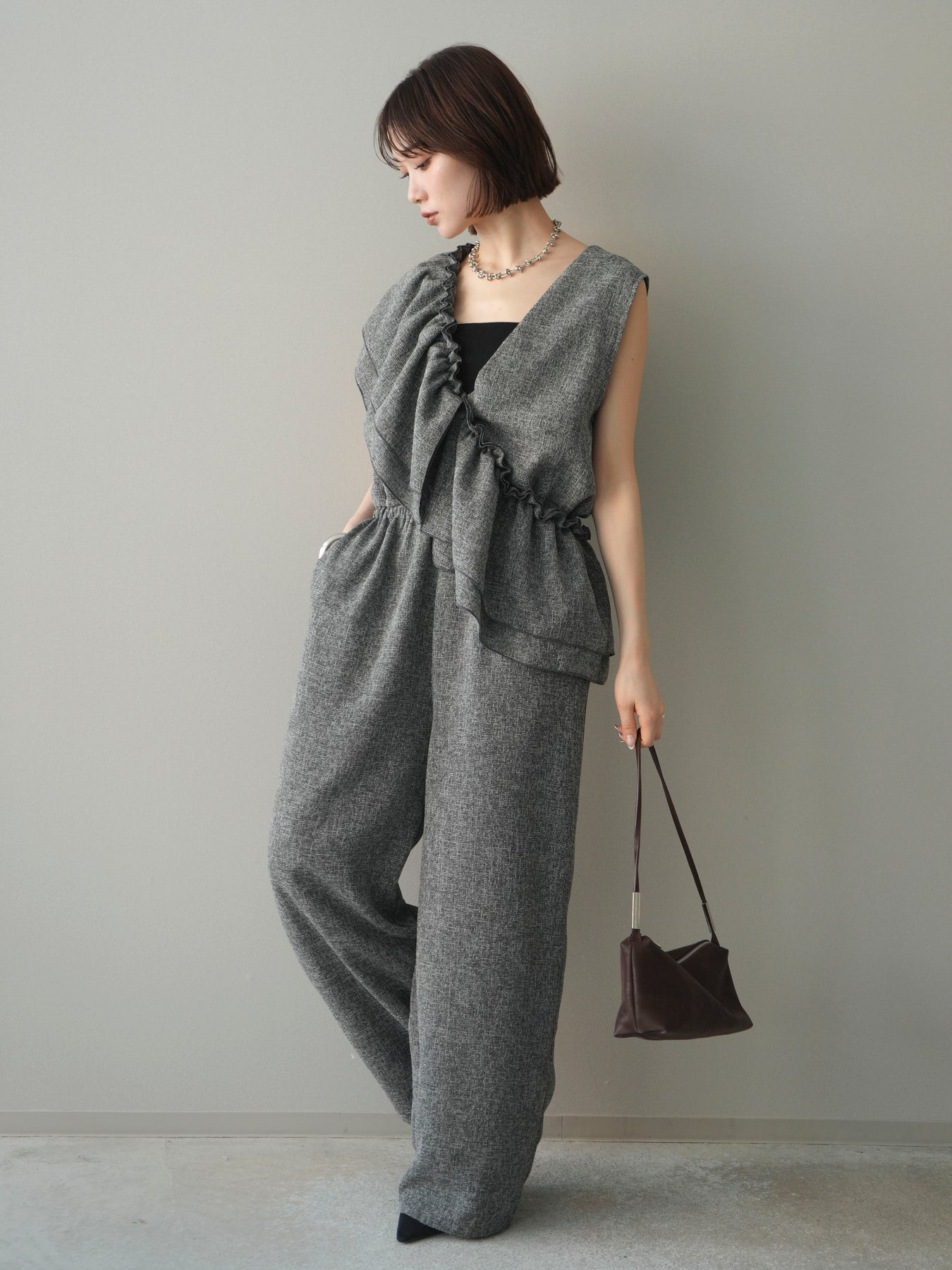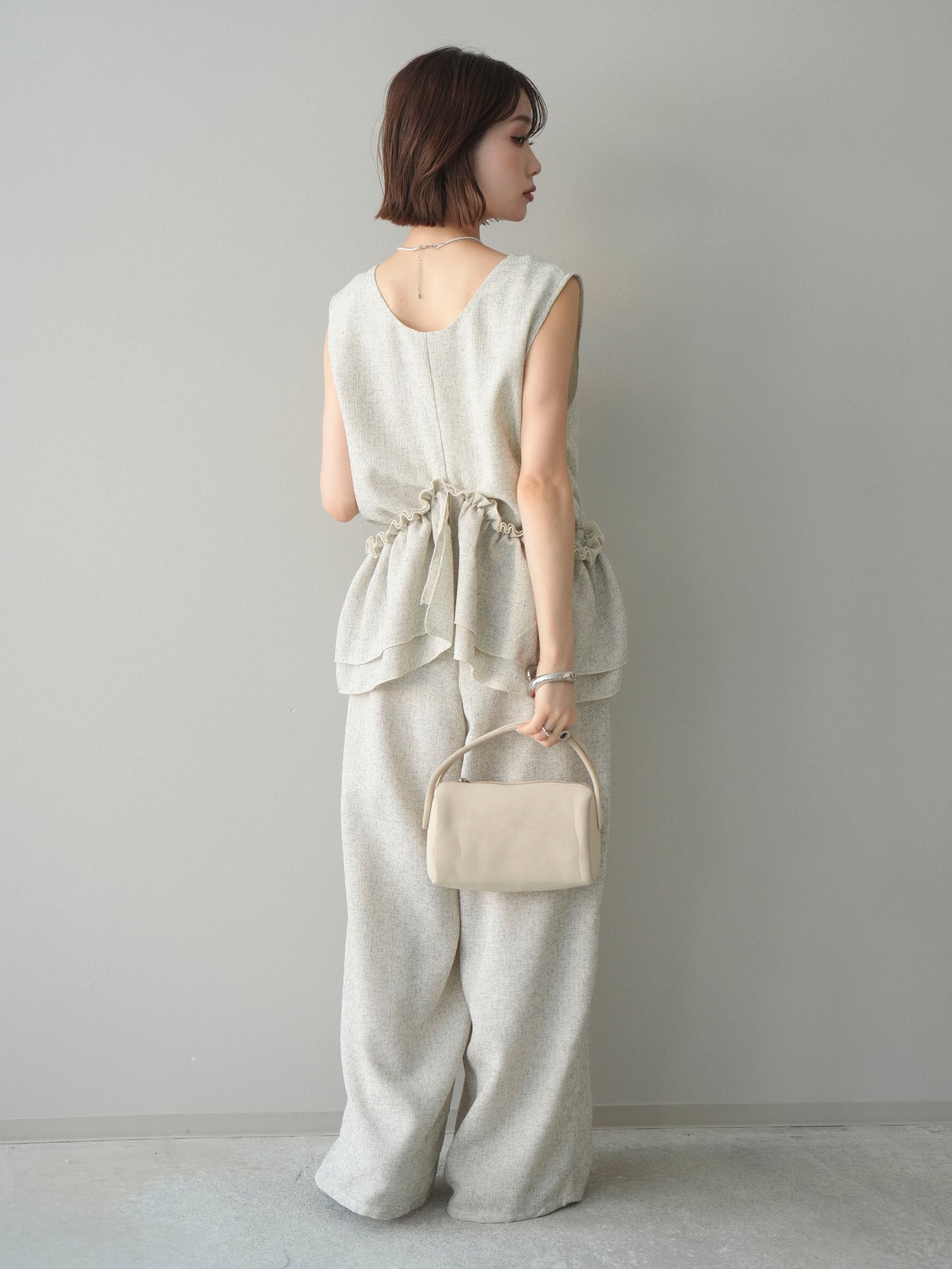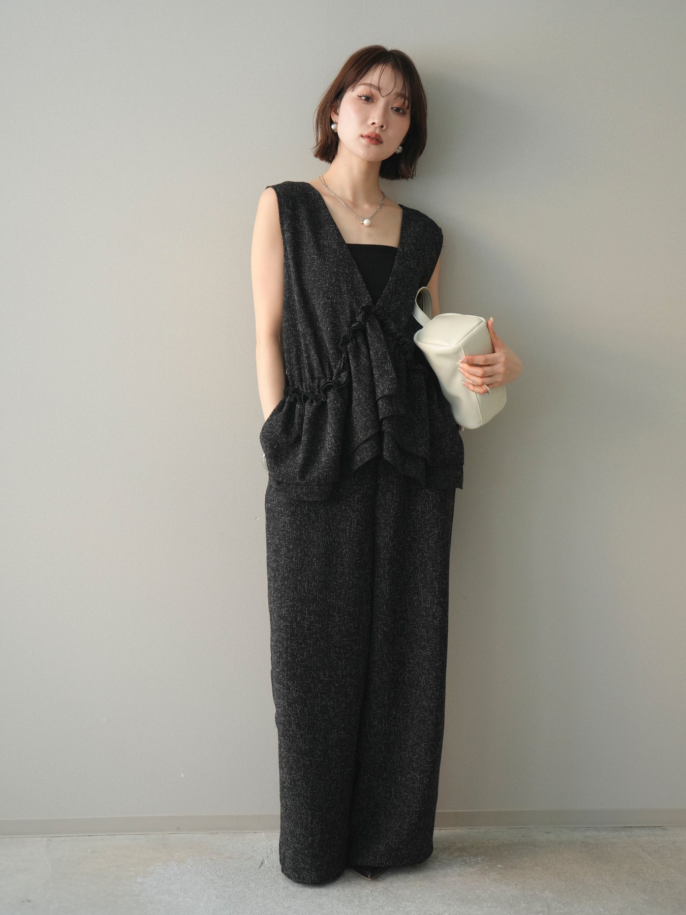 [SET]3WAYミックスツイードギャザーオールインワン+選べるアクセセット(2set)