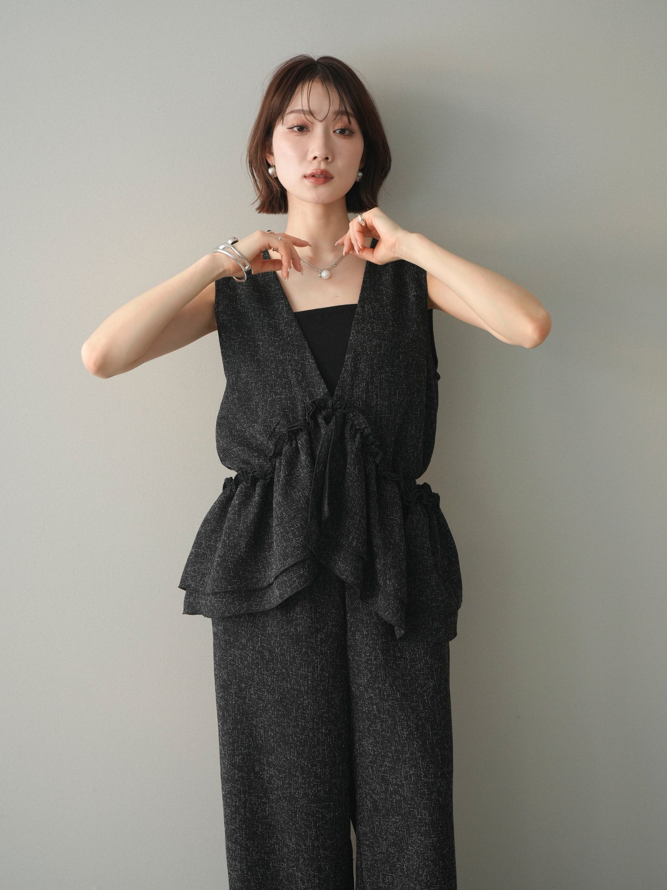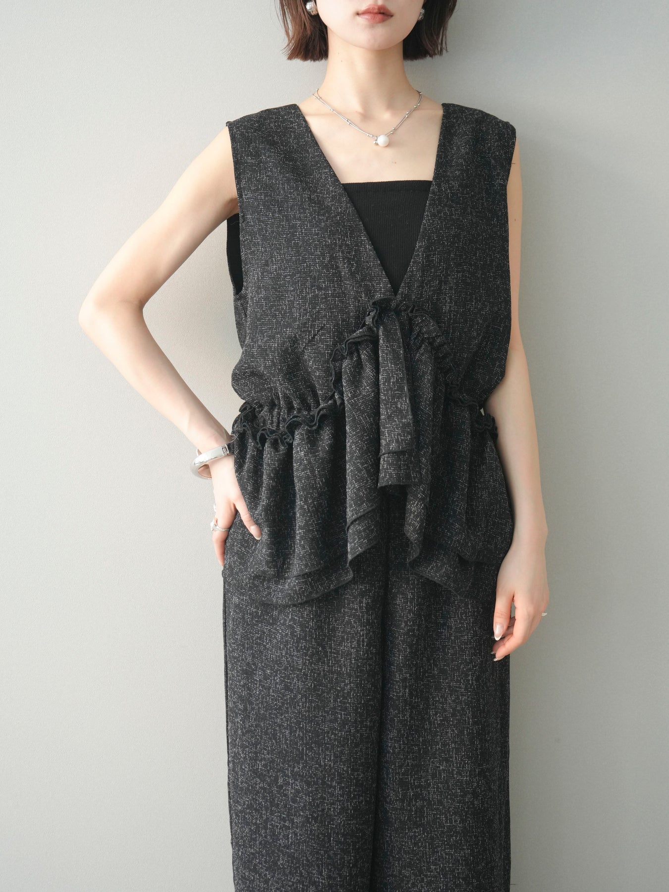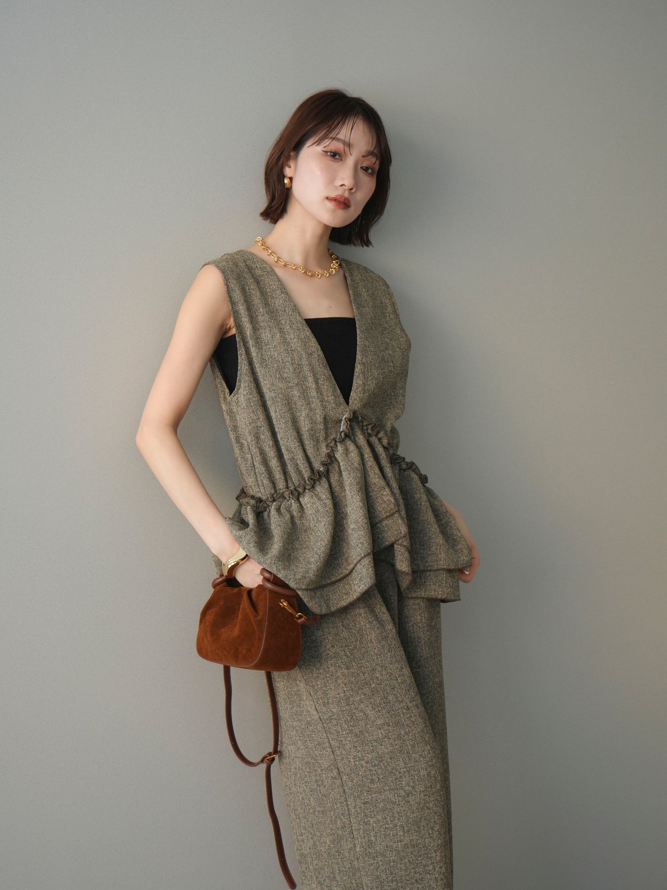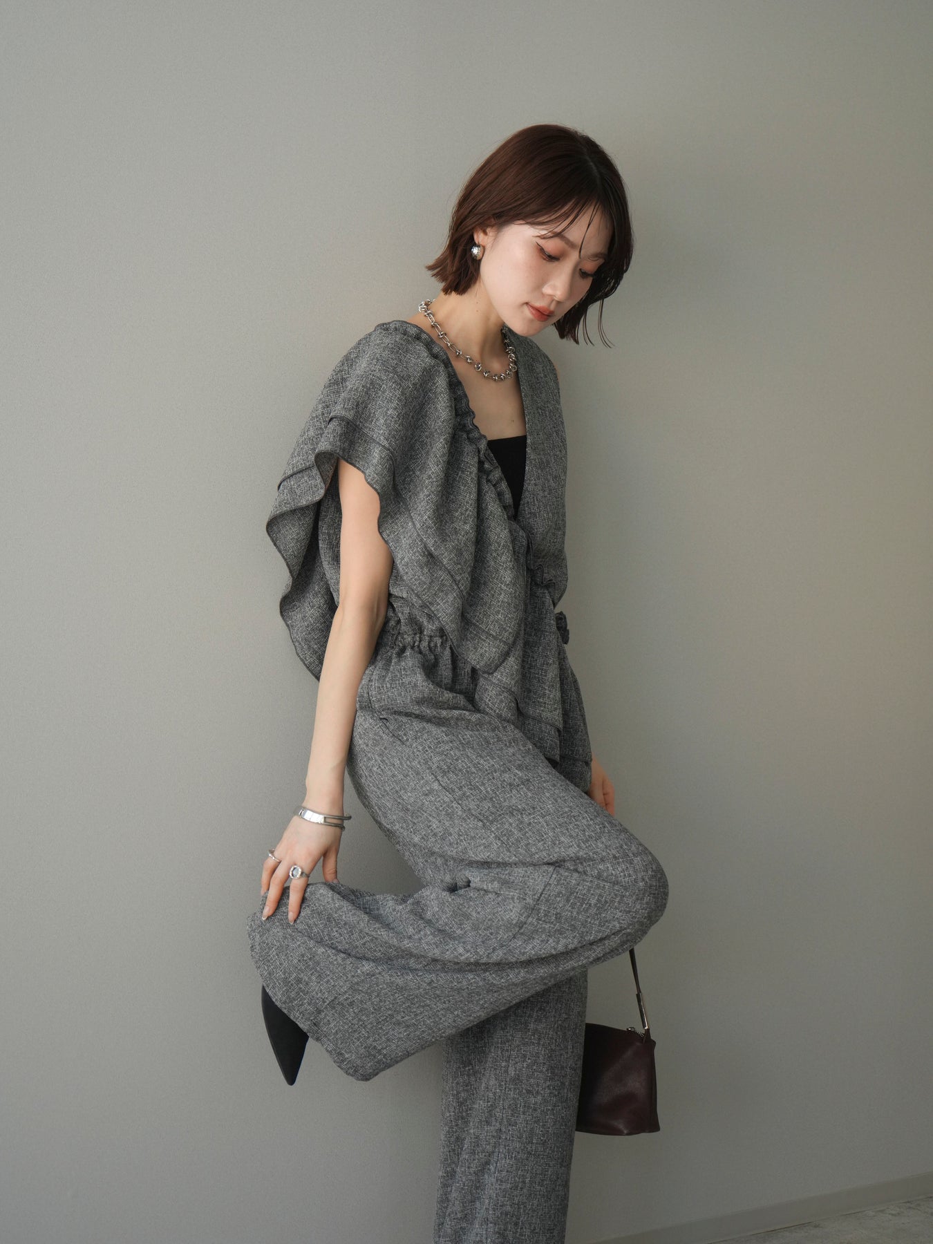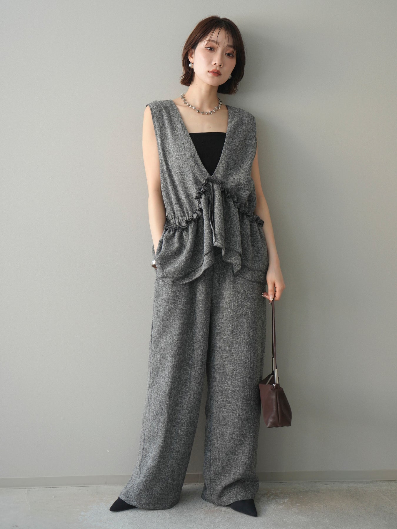[SET]3WAYミックスツイードギャザーオールインワン+選べるアクセセット(2set)