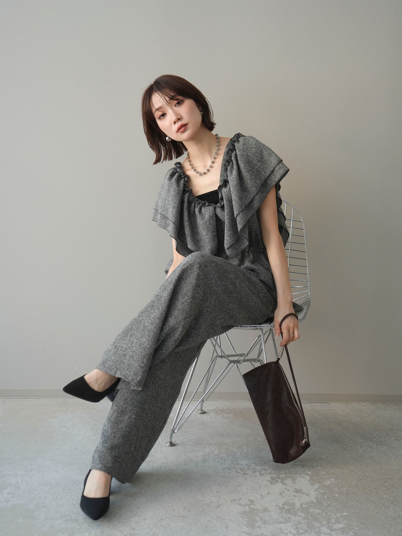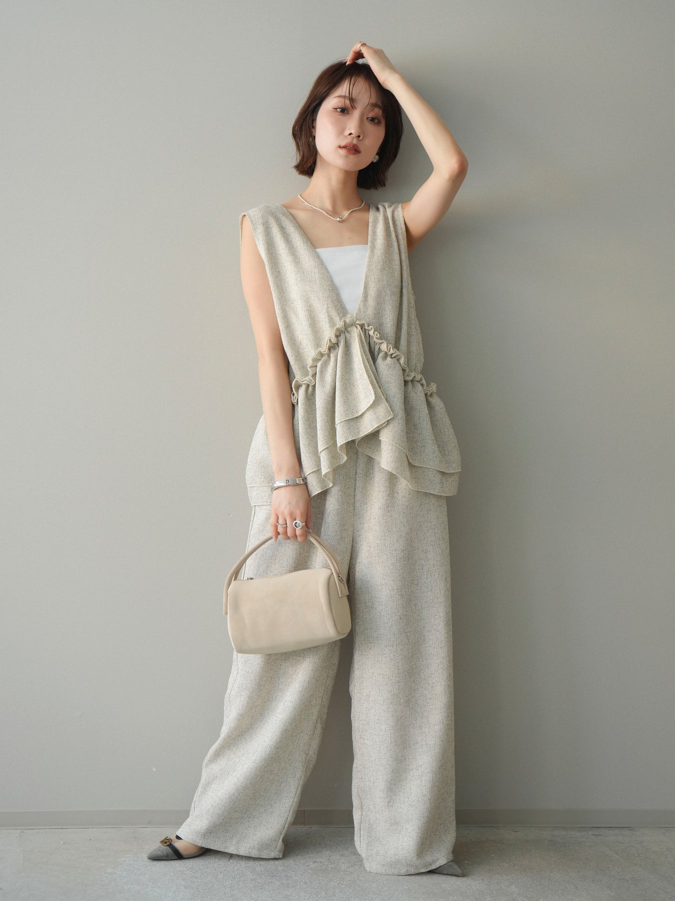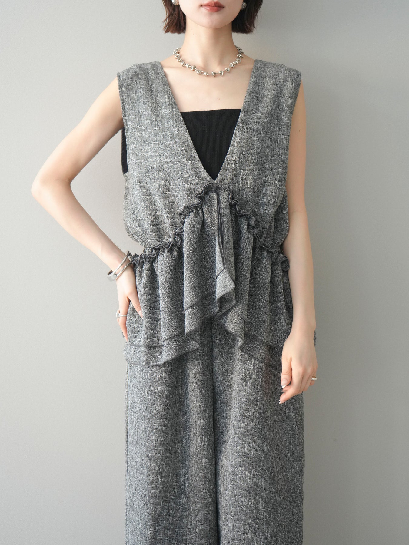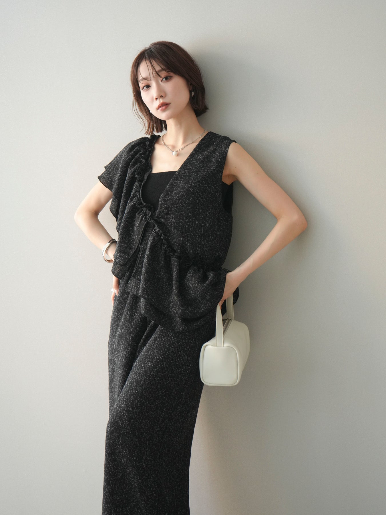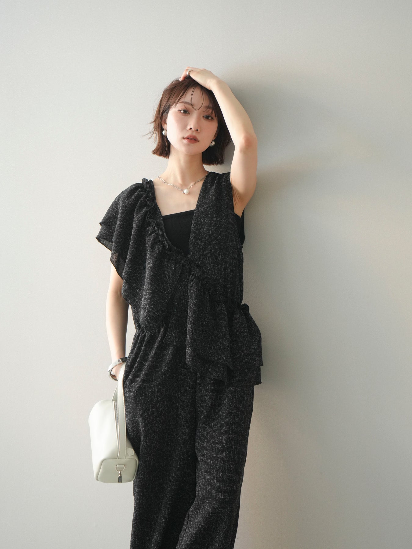 [SET]3WAYミックスツイードギャザーオールインワン+選べるアクセセット(2set)