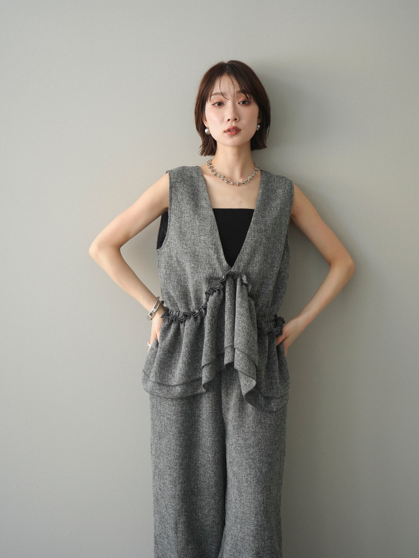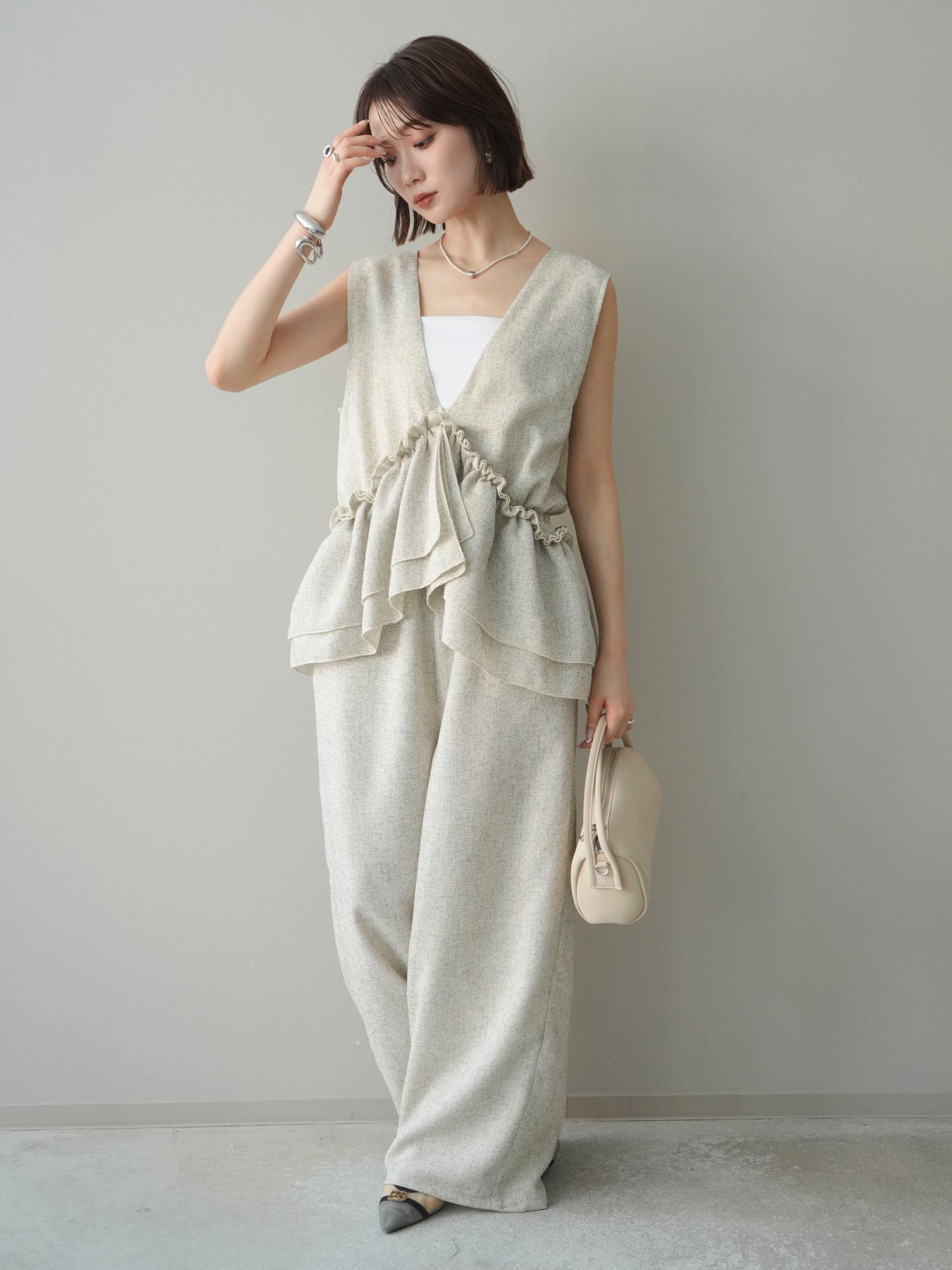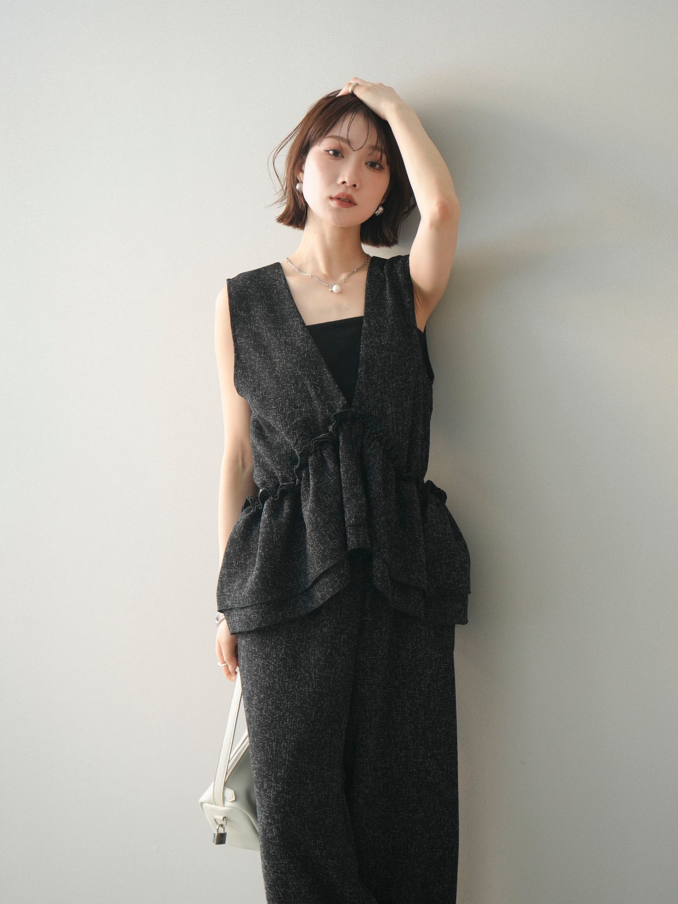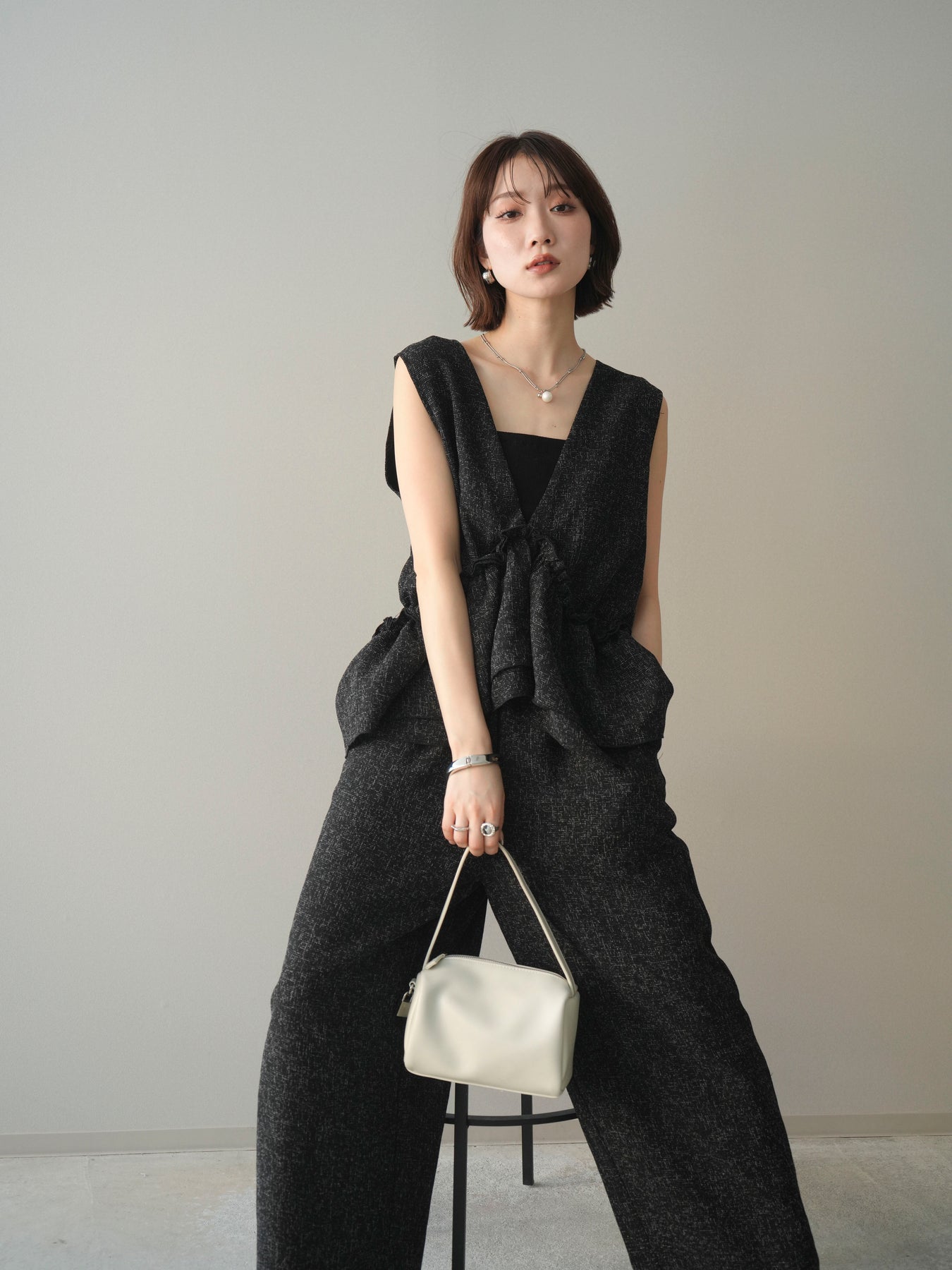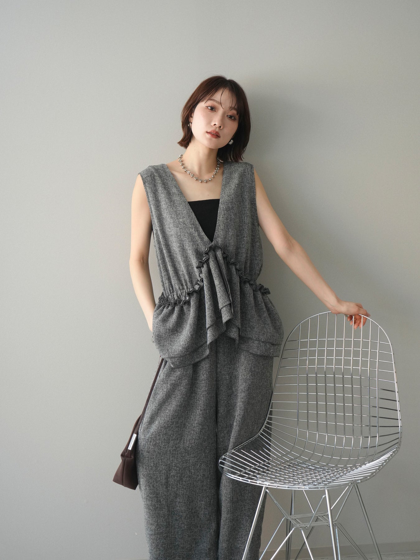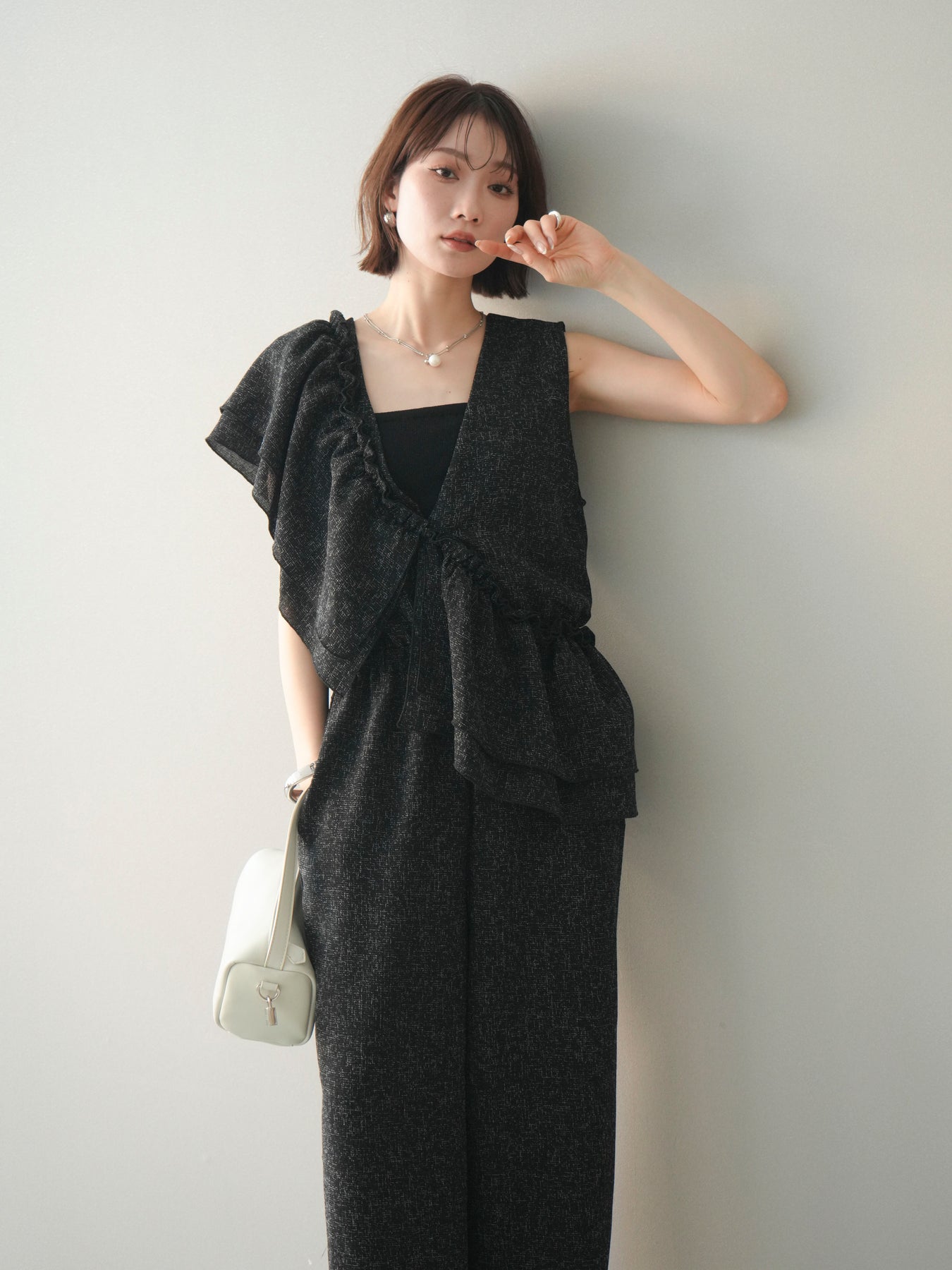 [SET]3WAYミックスツイードギャザーオールインワン+選べるアクセセット(2set)