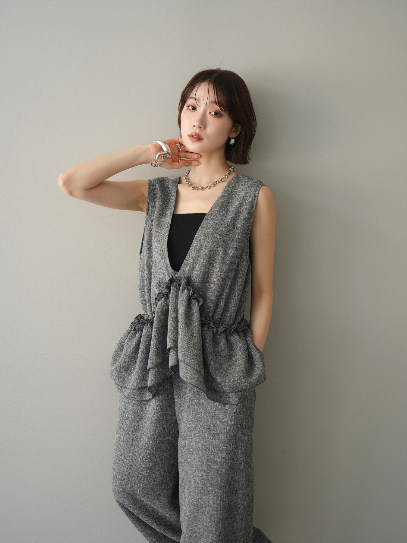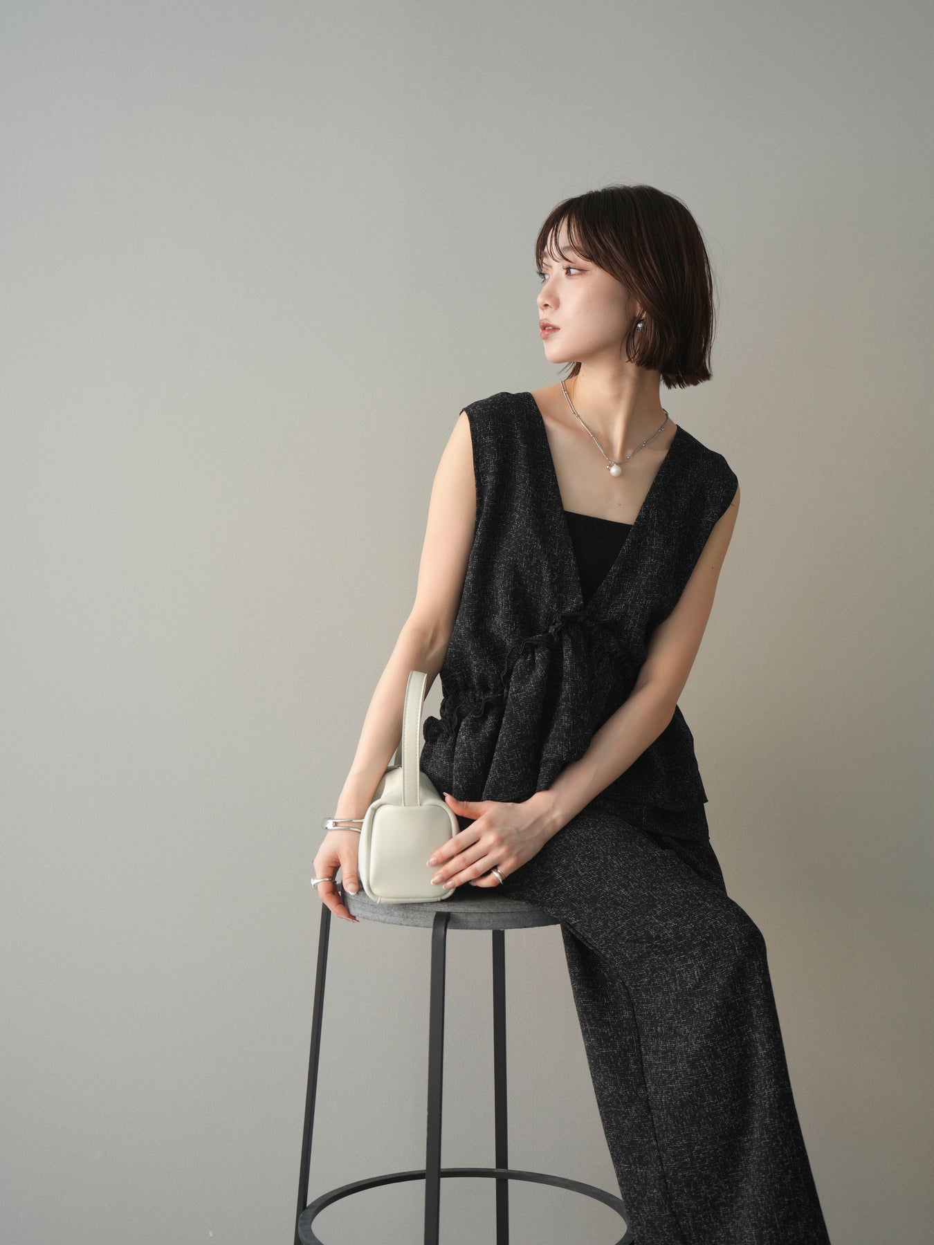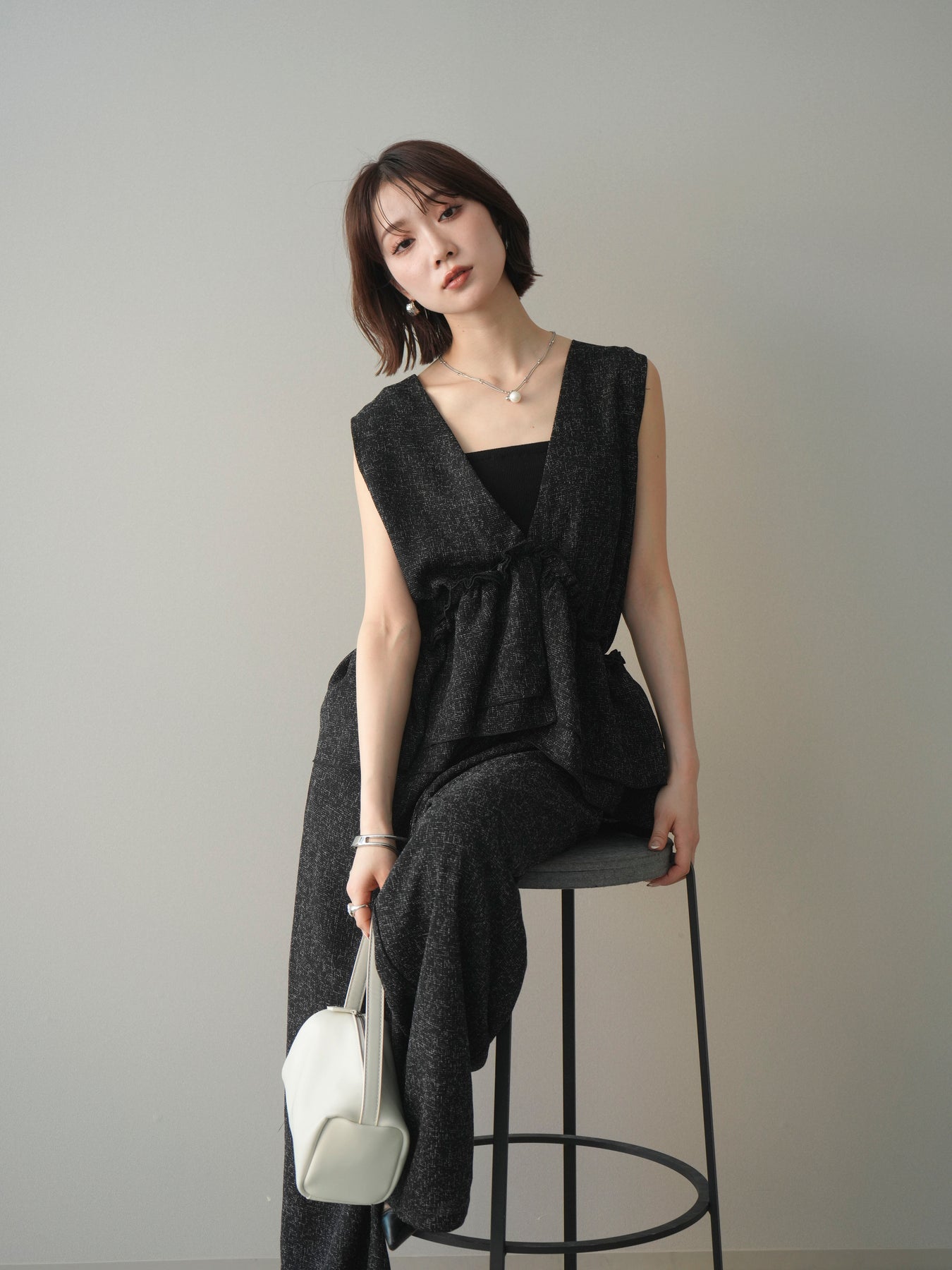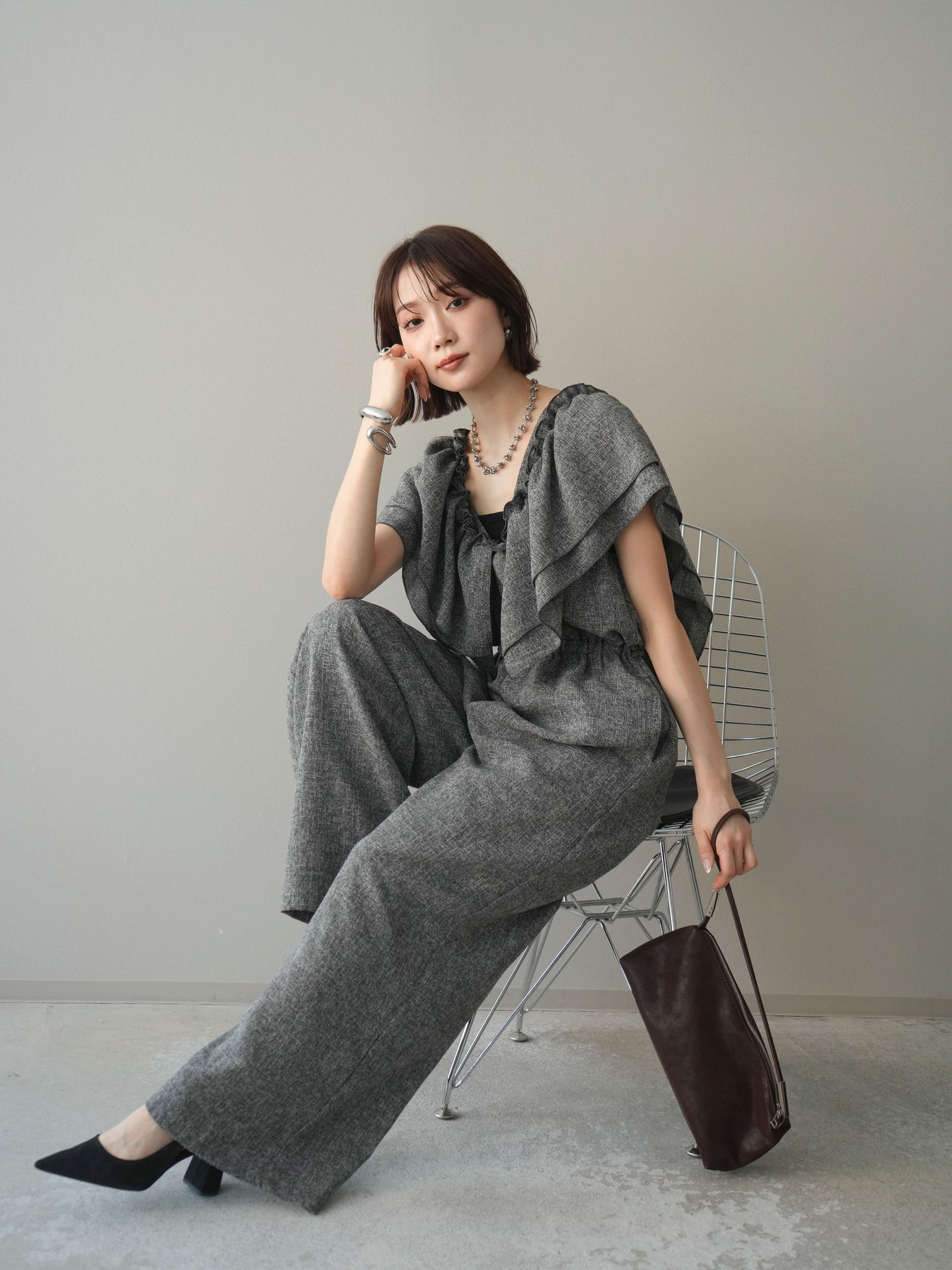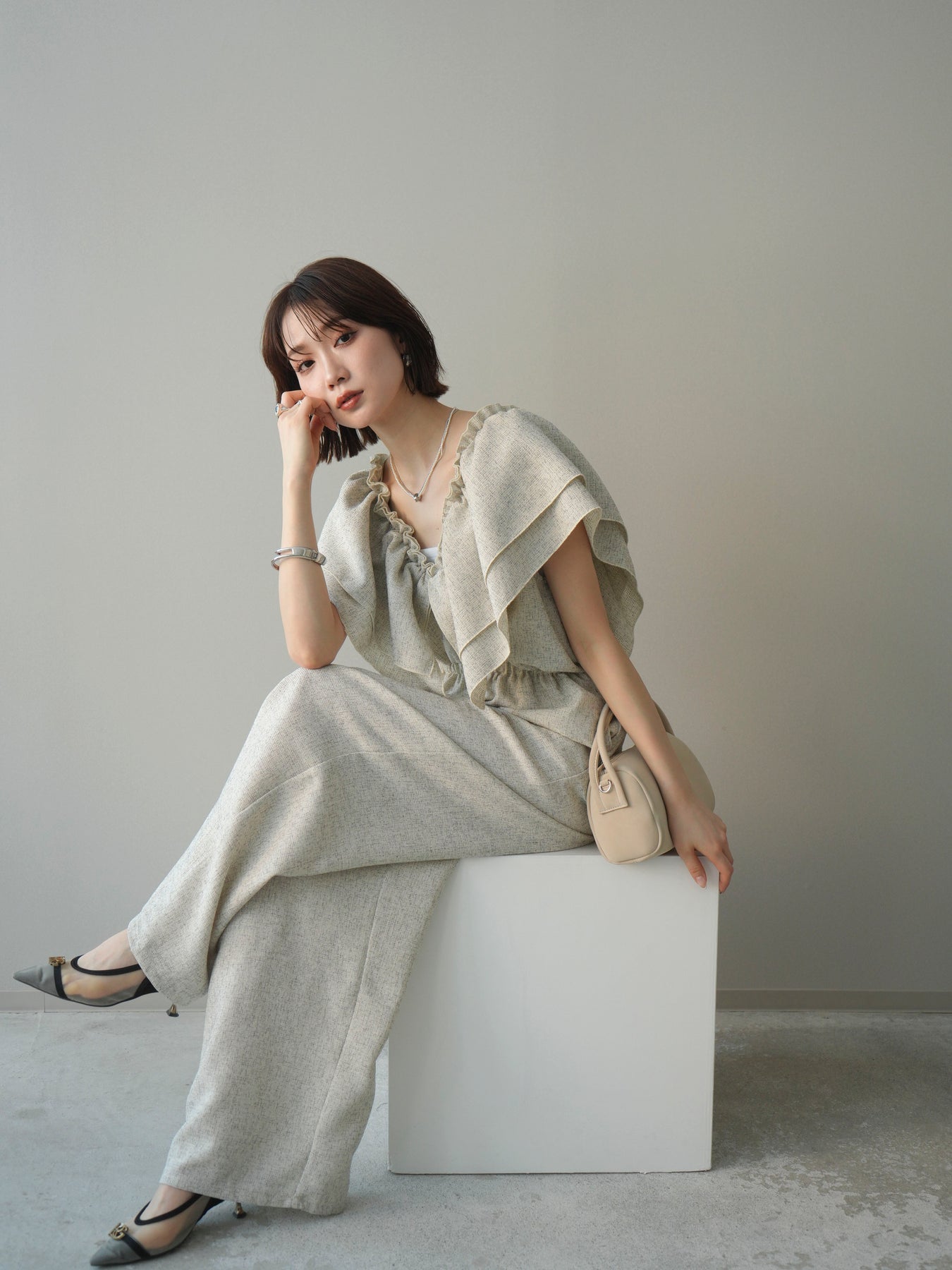 [SET]3WAYミックスツイードギャザーオールインワン+選べるアクセセット(2set)