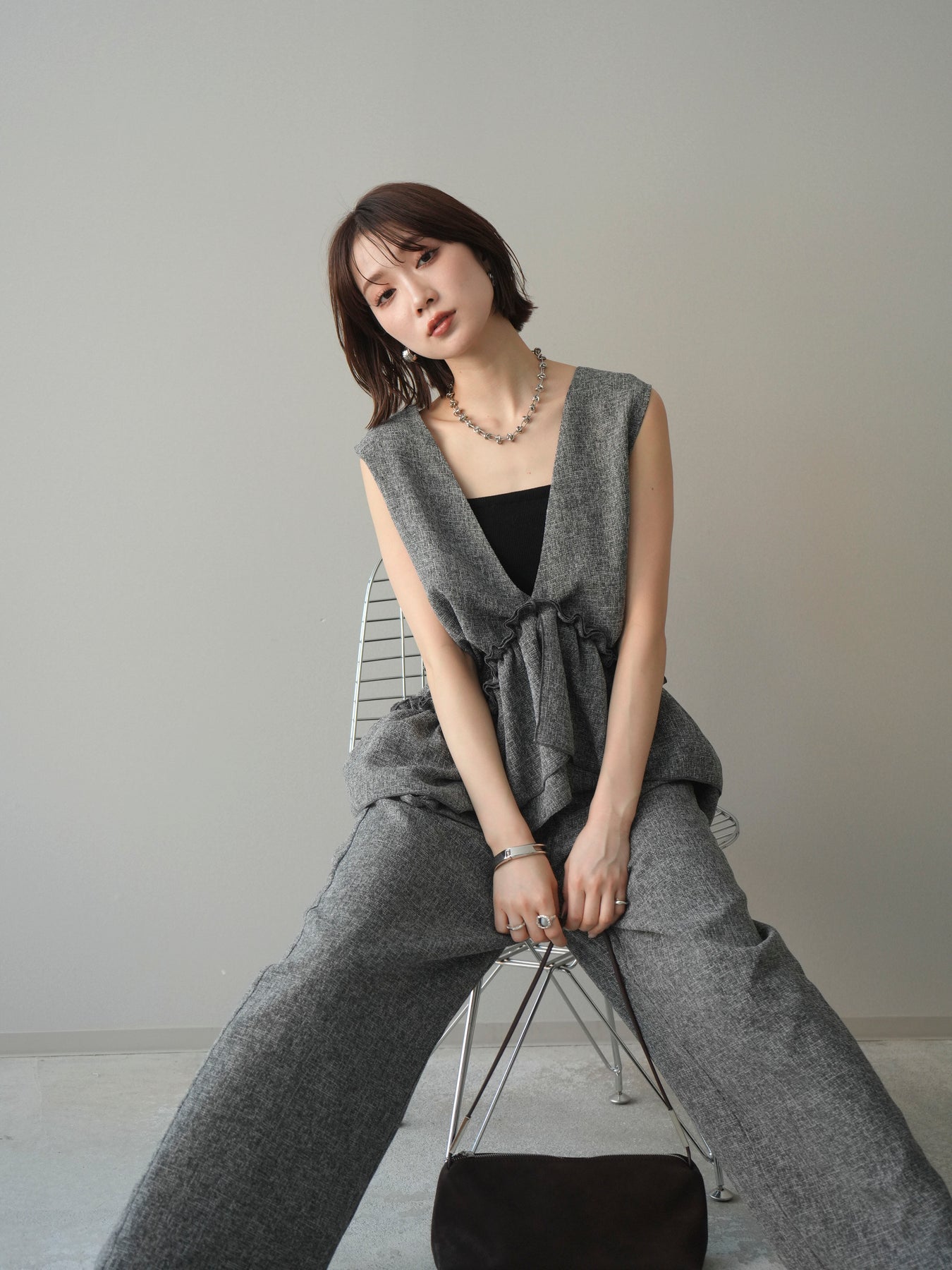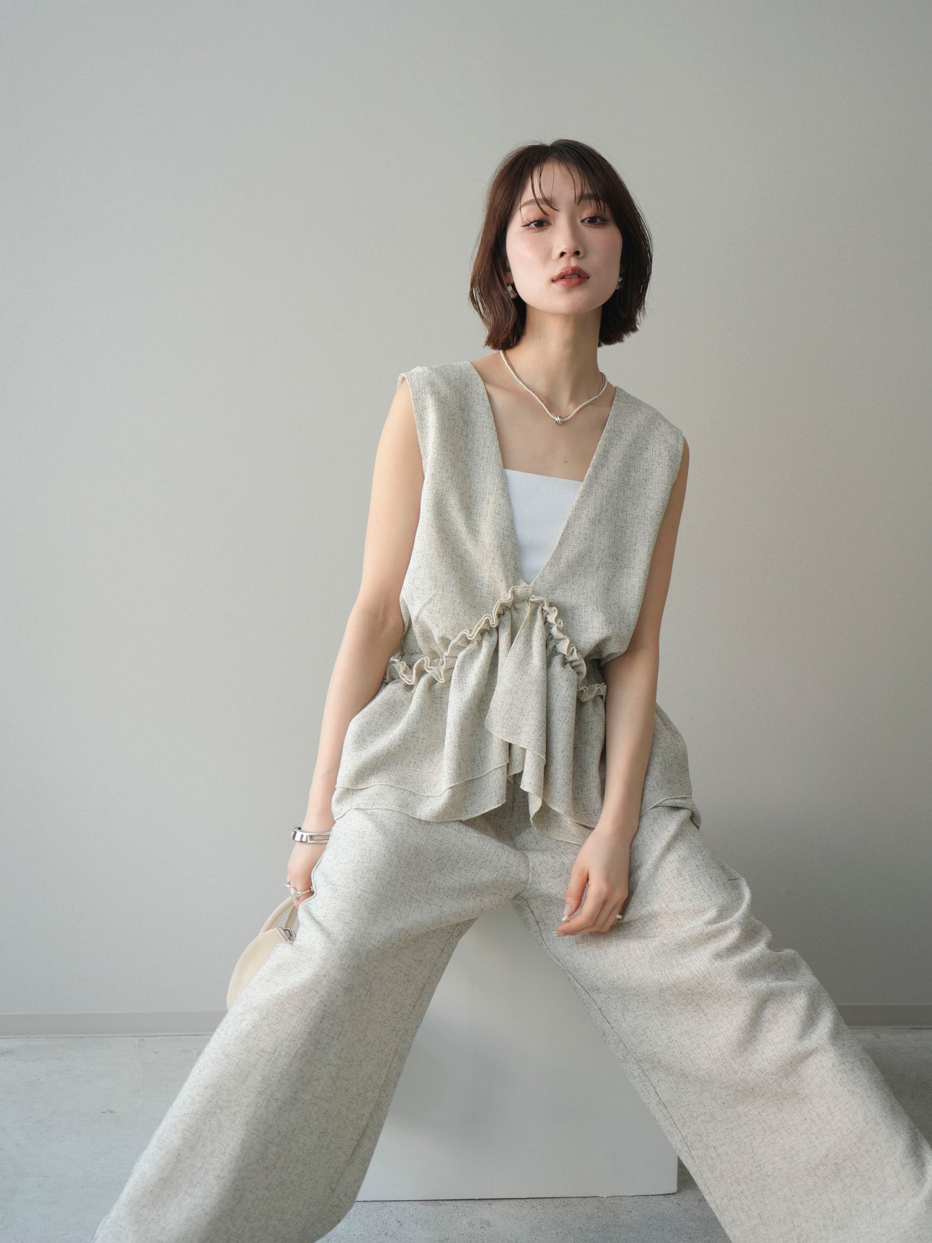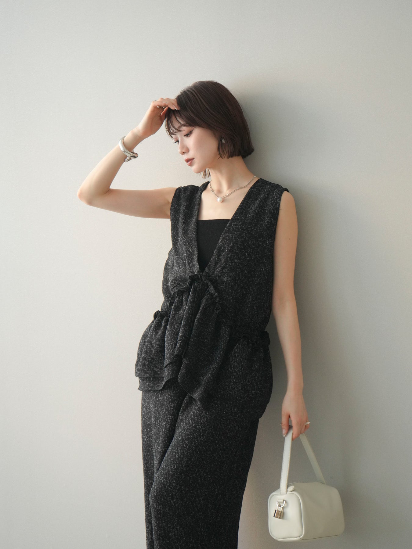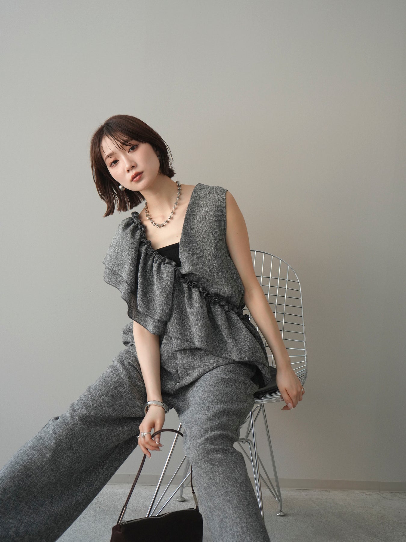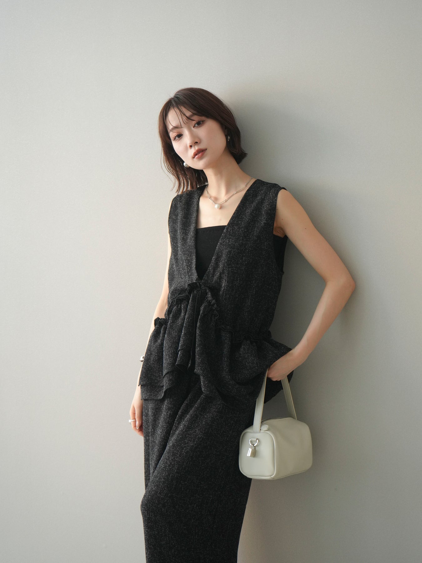 [SET]3WAYミックスツイードギャザーオールインワン+選べるアクセセット(2set)