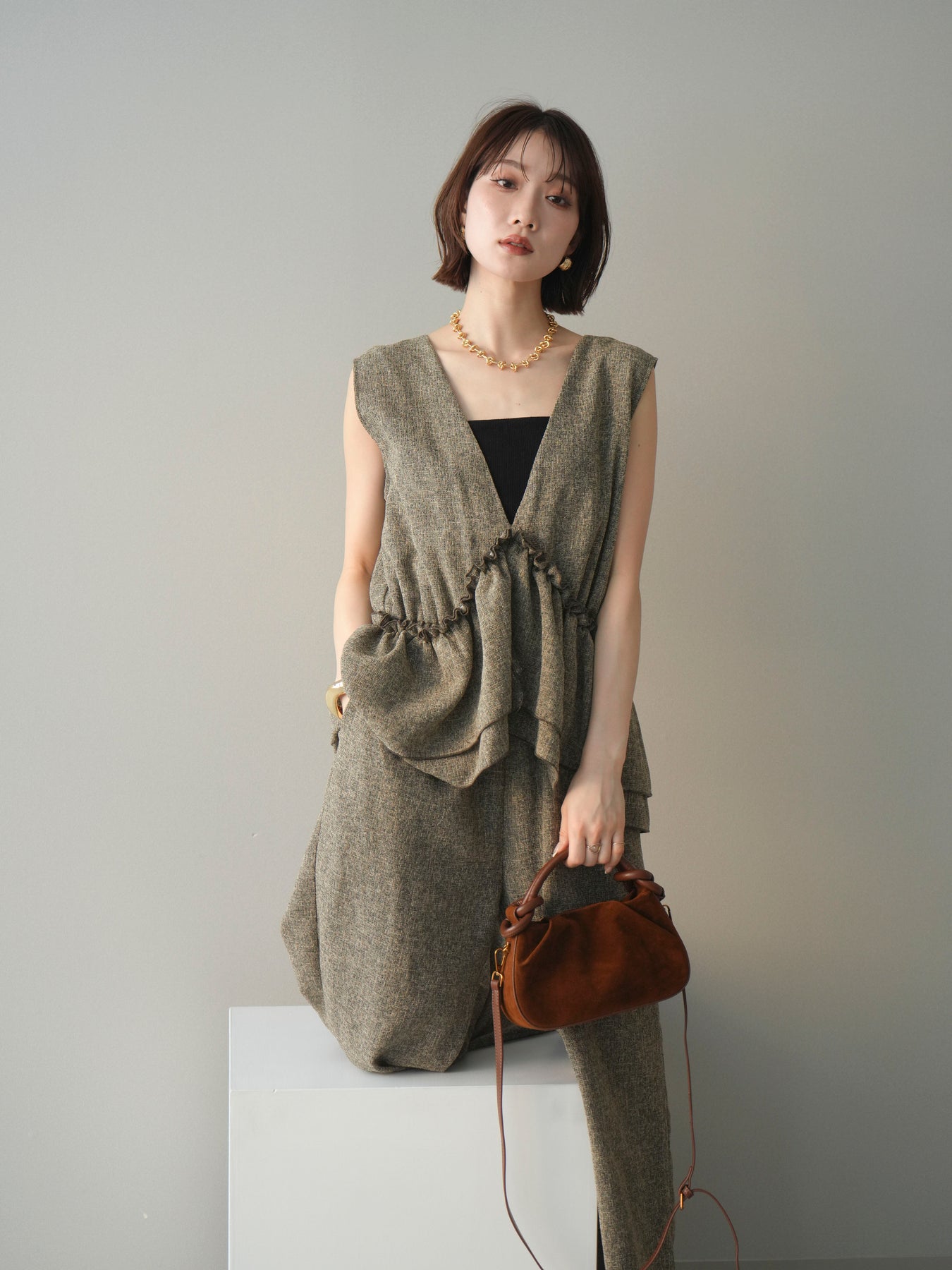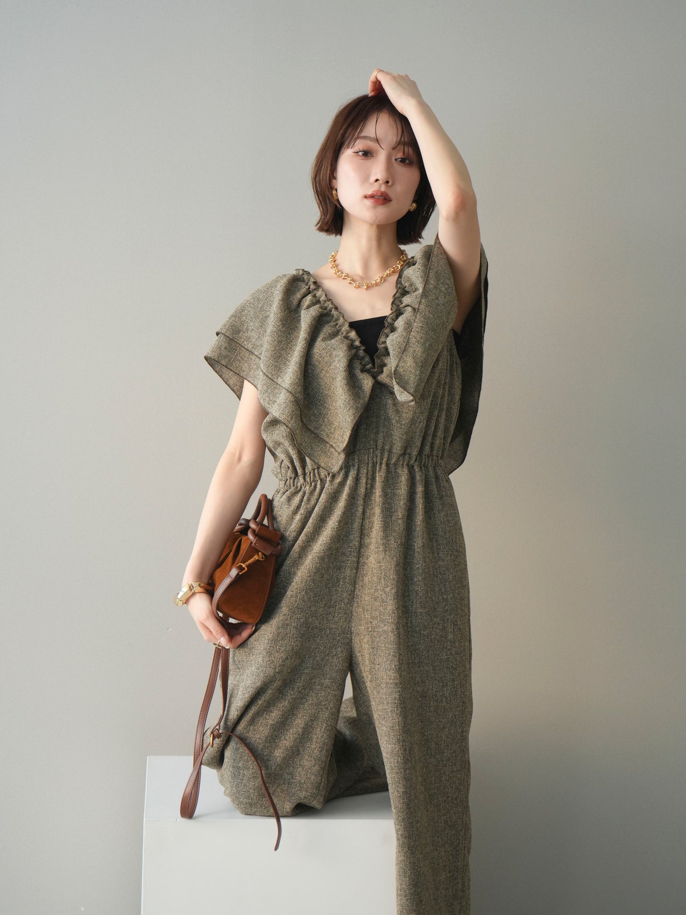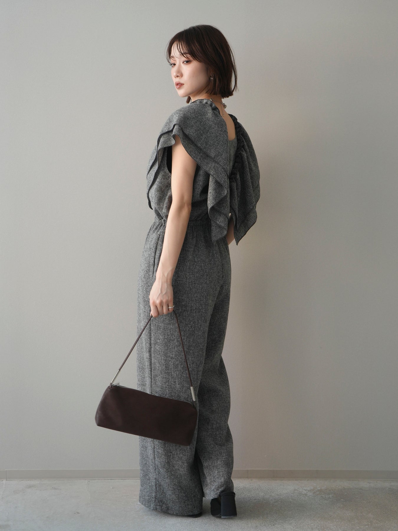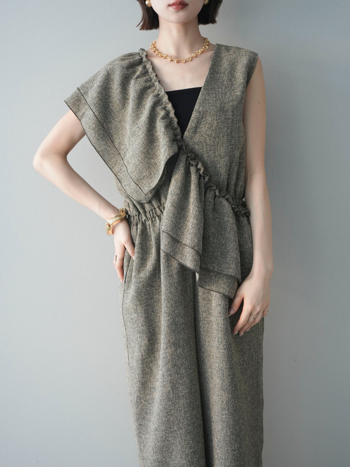 ◆ [予約]3WAYミックスツイードギャザーオールインワン