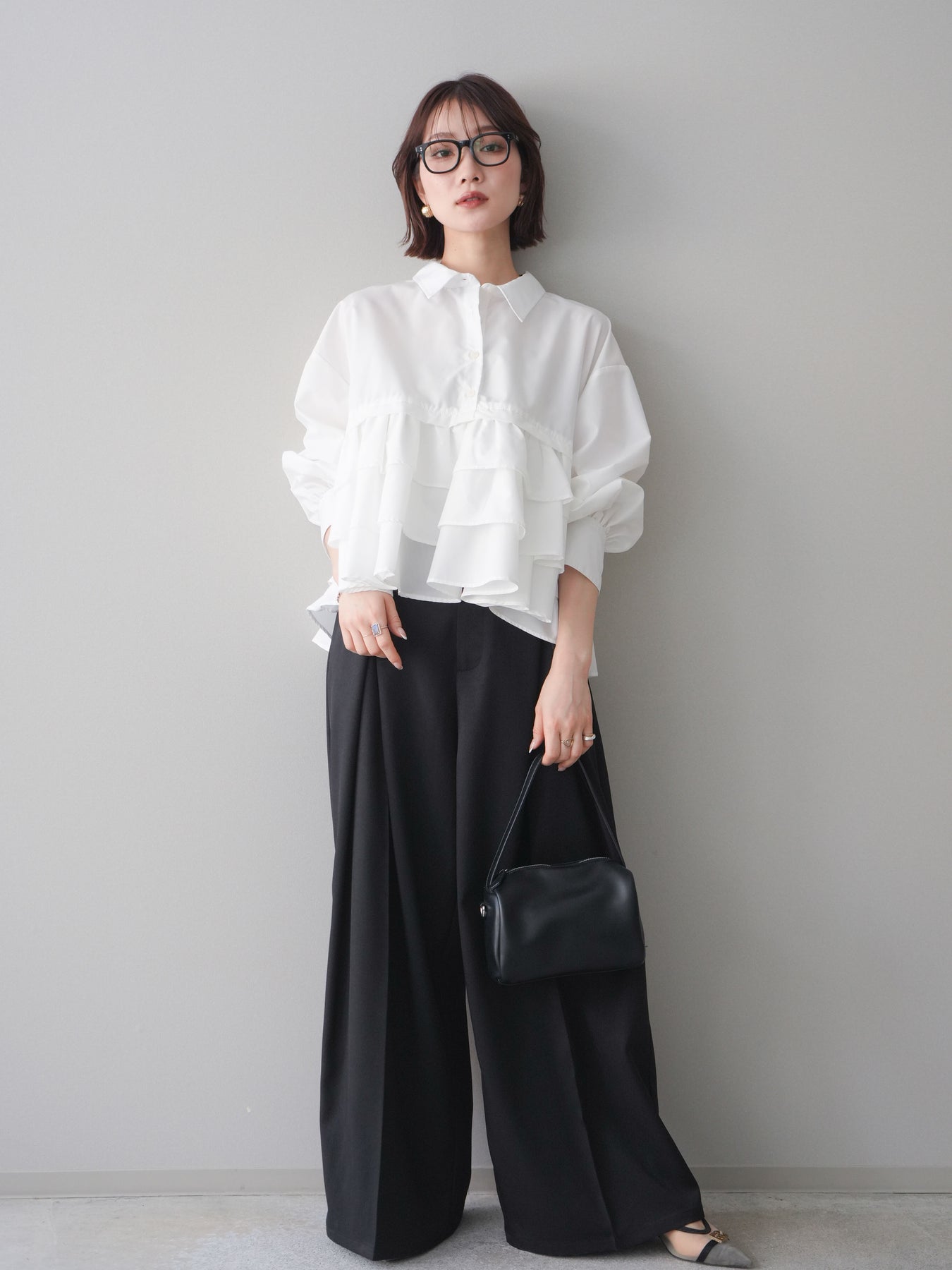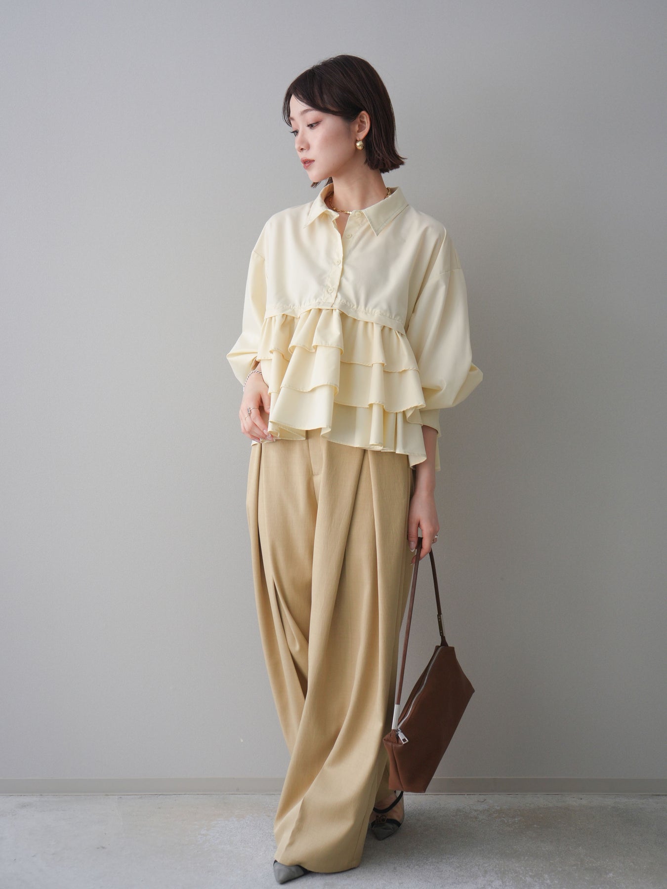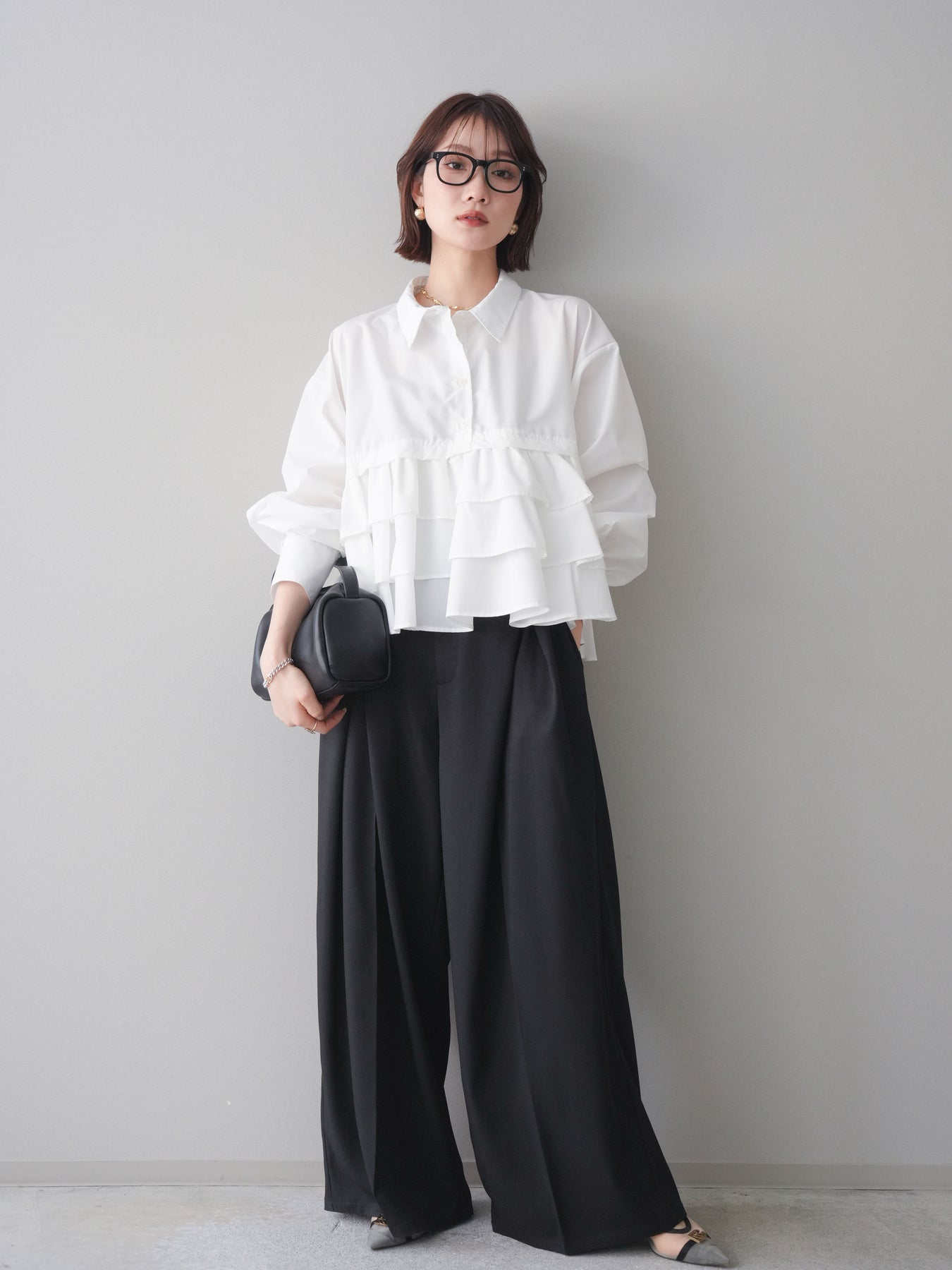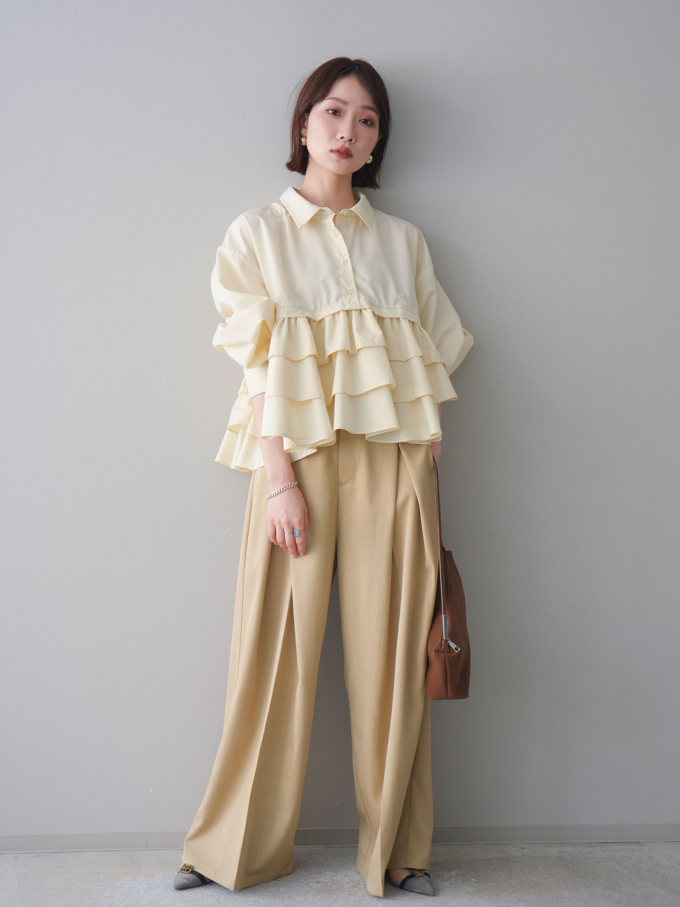 [SET]ブロードティアードショートシャツ+TRツイルデザインタックワイドパンツ(2set)