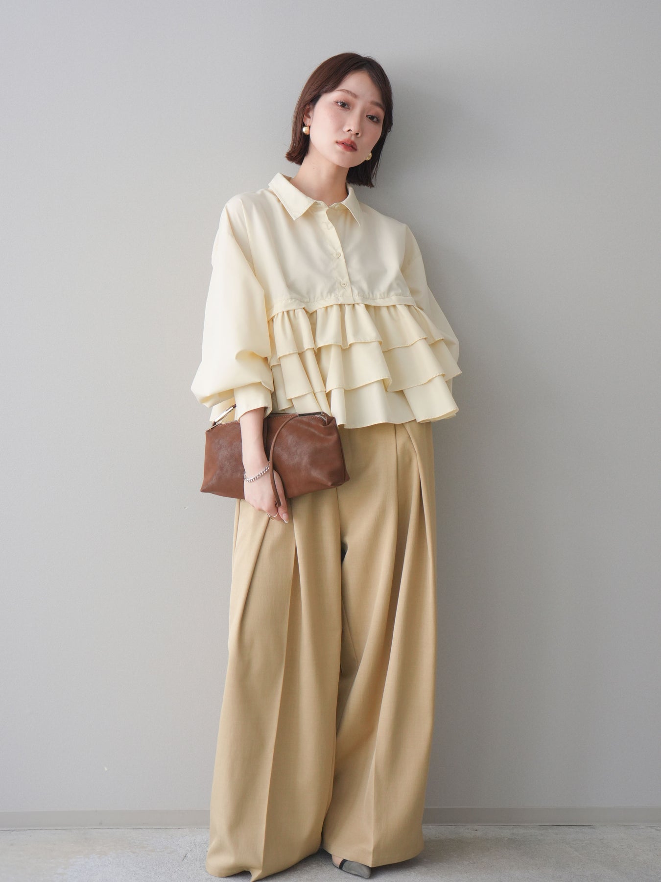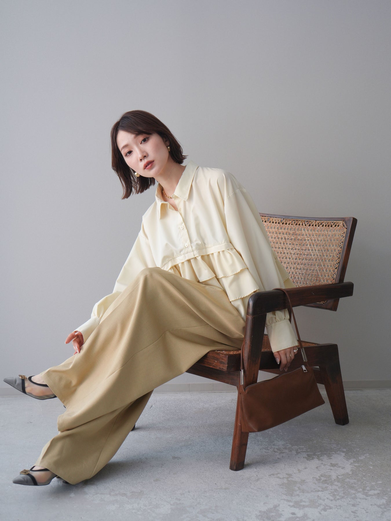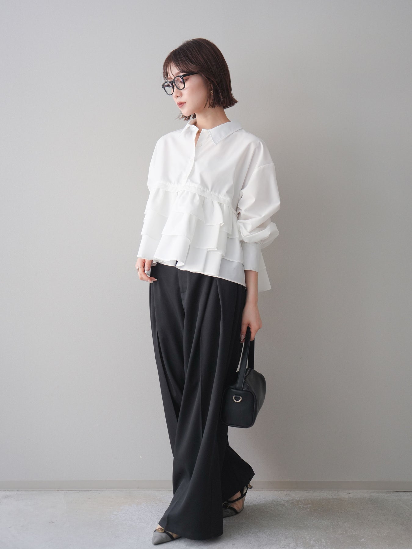 [SET]ブロードティアードショートシャツ+TRツイルデザインタックワイドパンツ(2set)