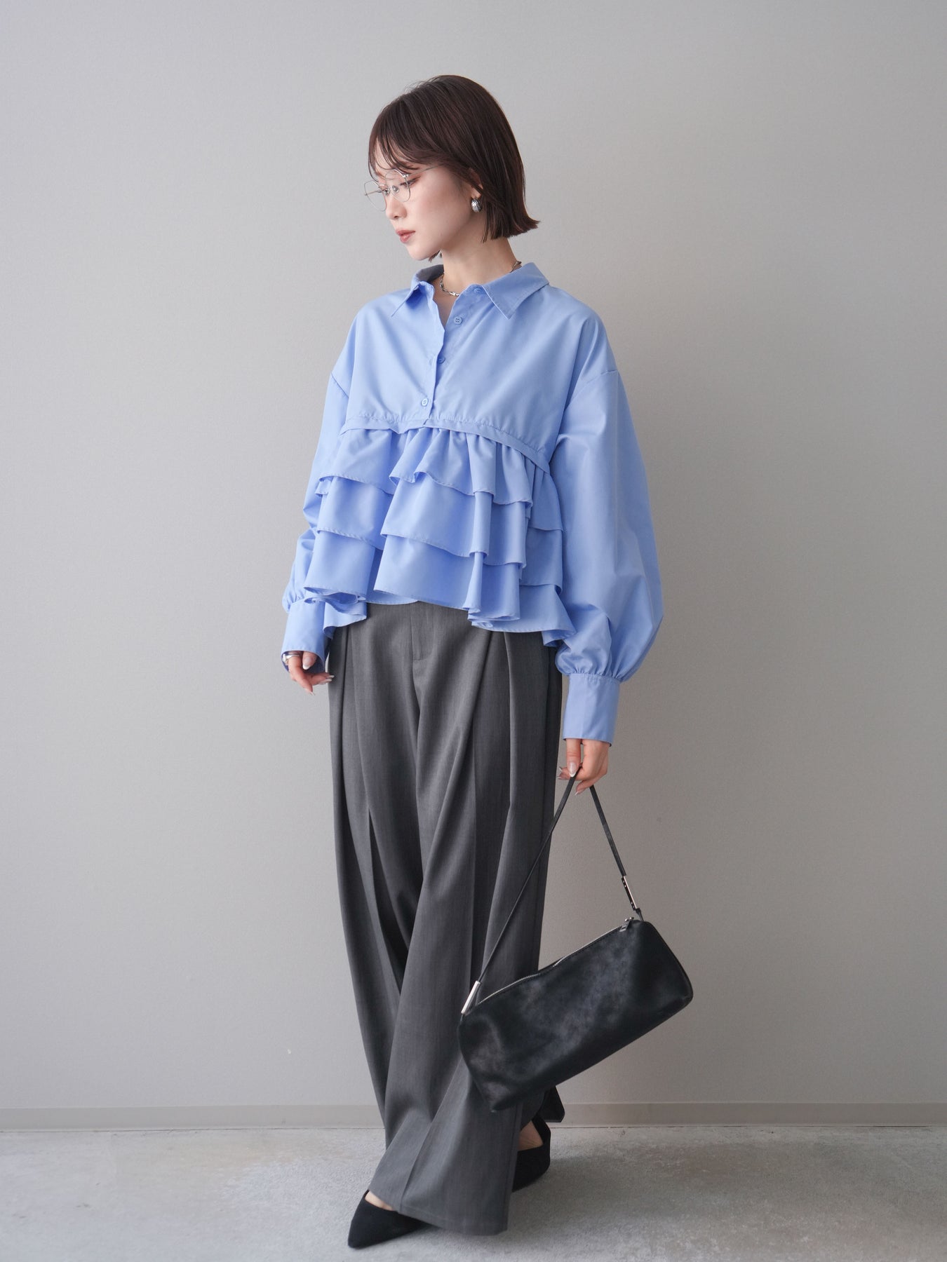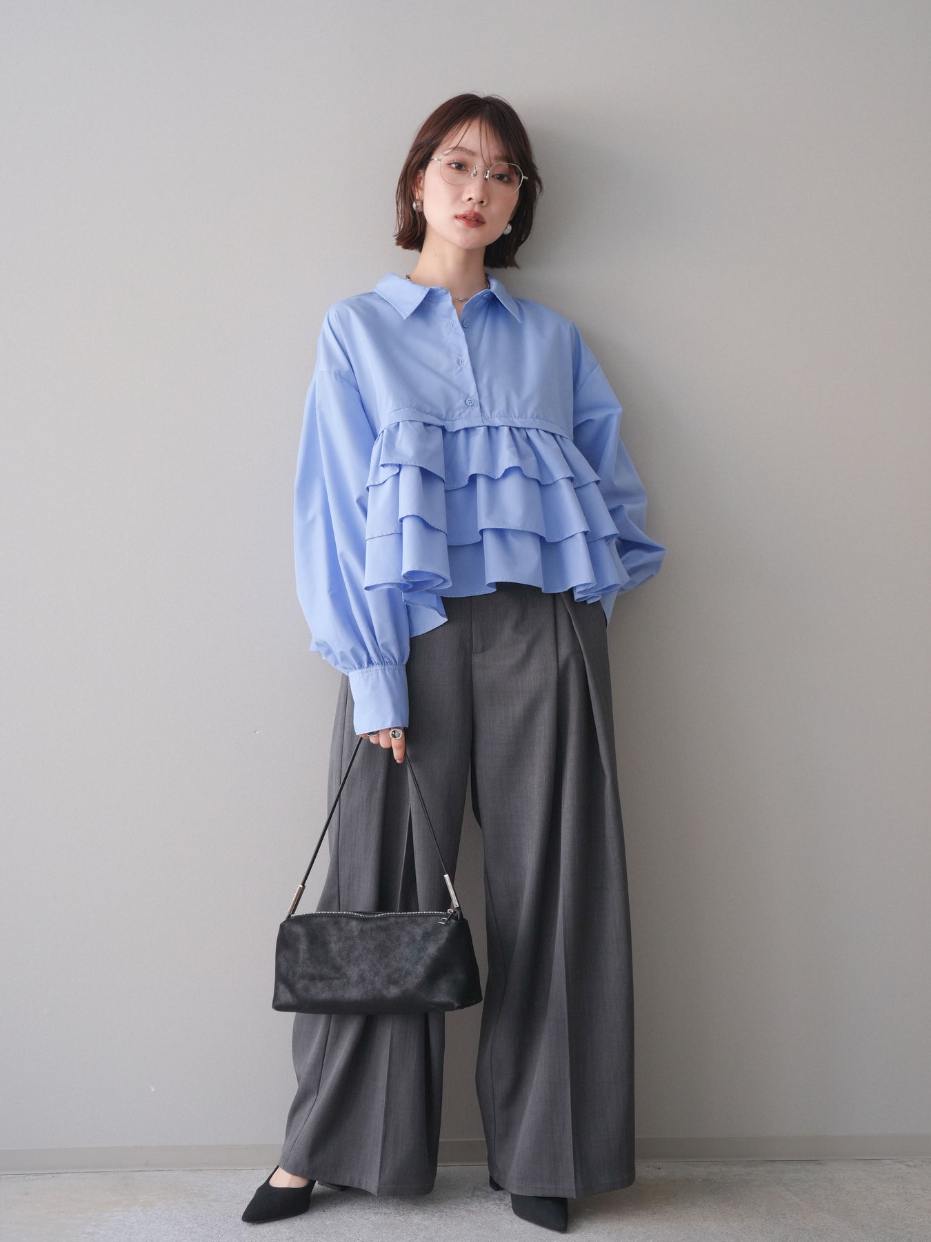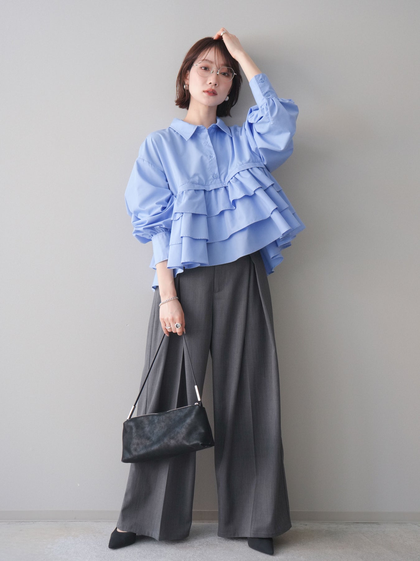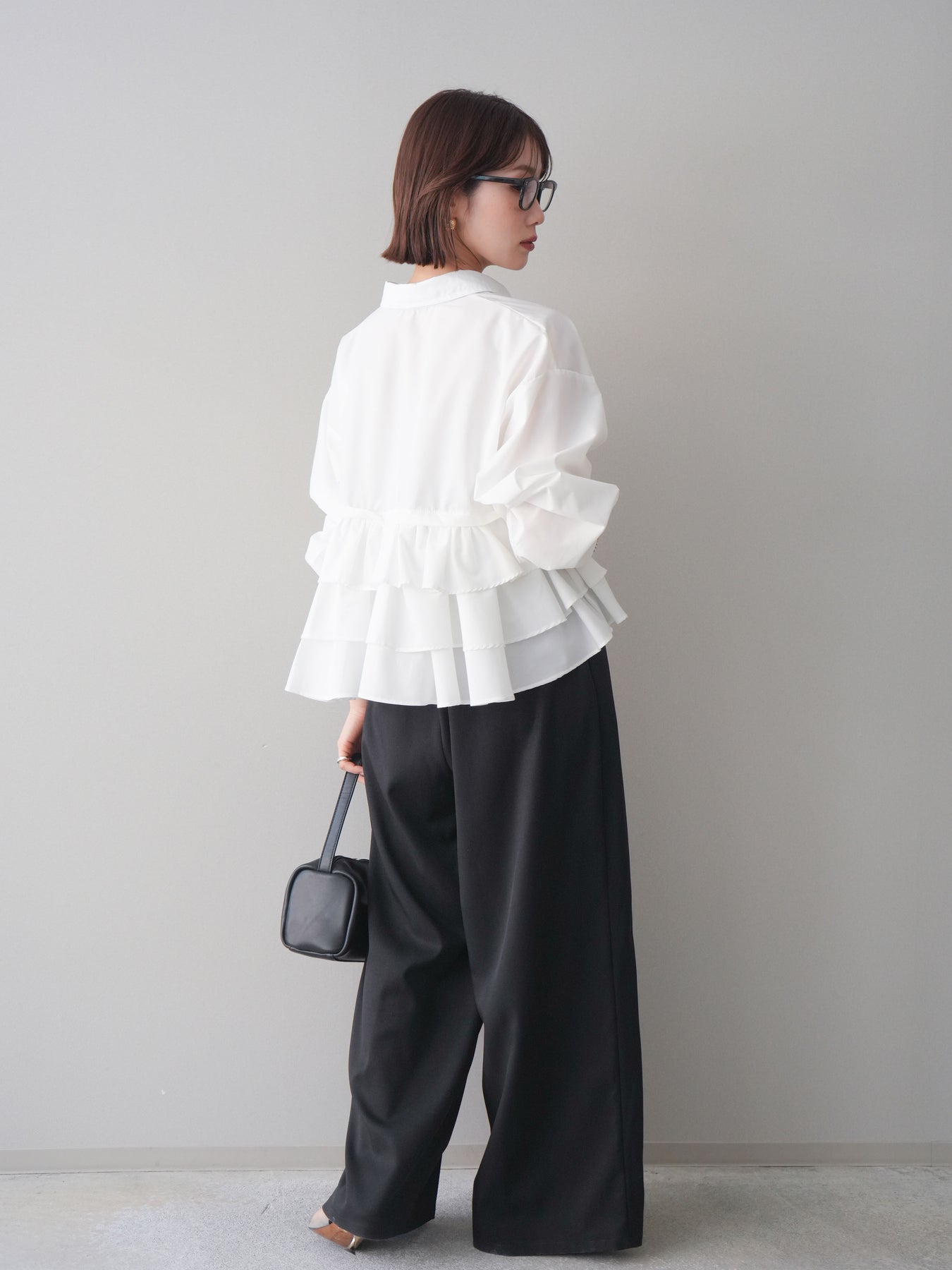 [SET]ブロードティアードショートシャツ+TRツイルデザインタックワイドパンツ(2set)
