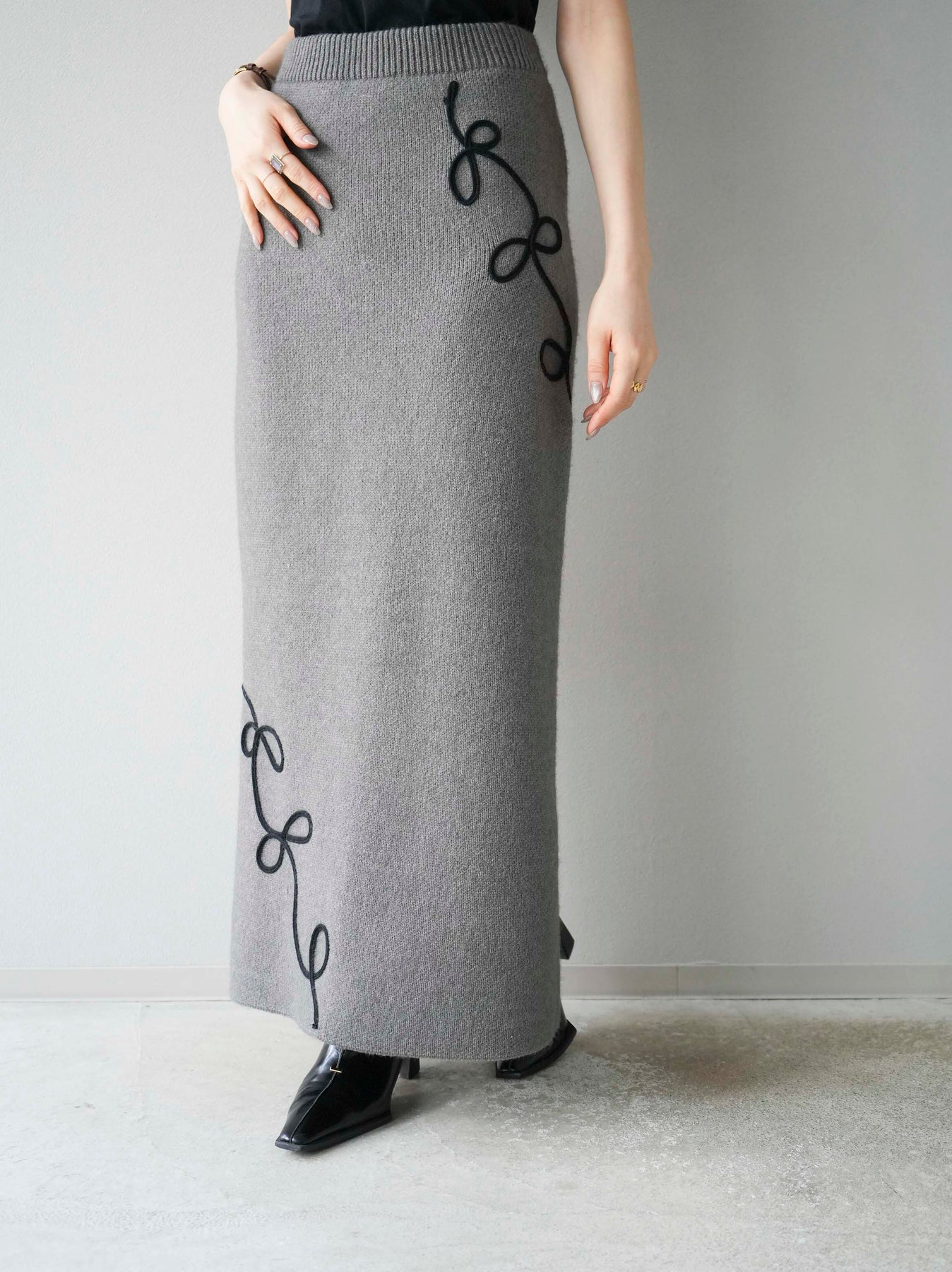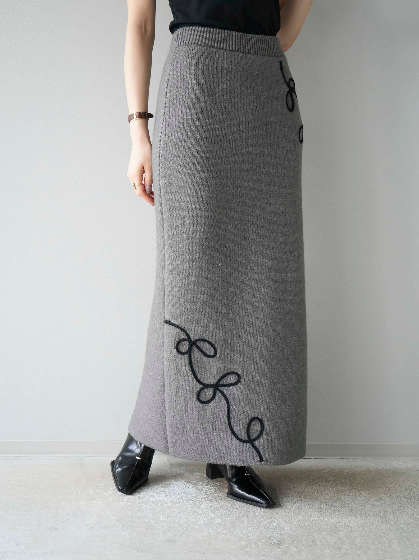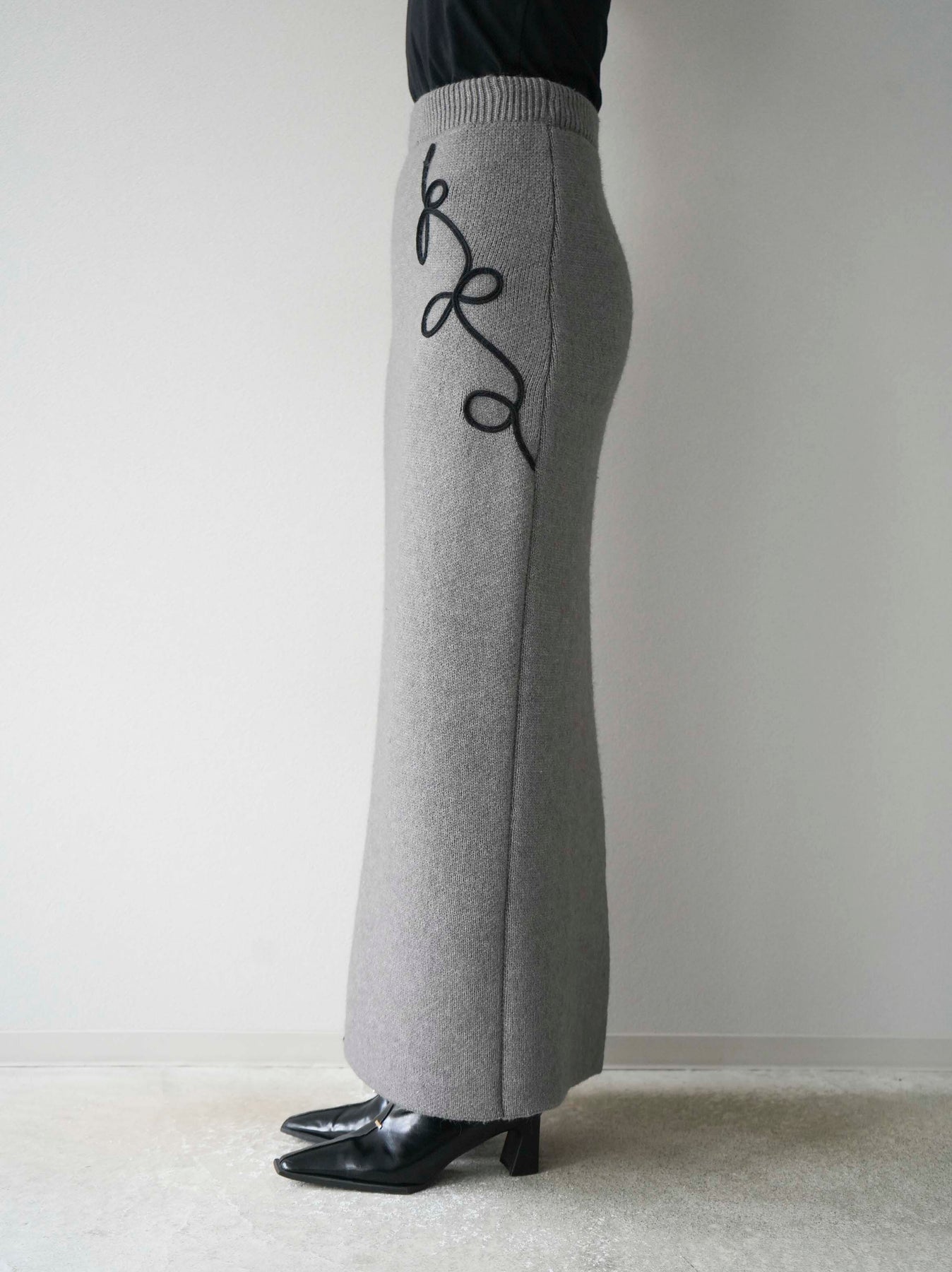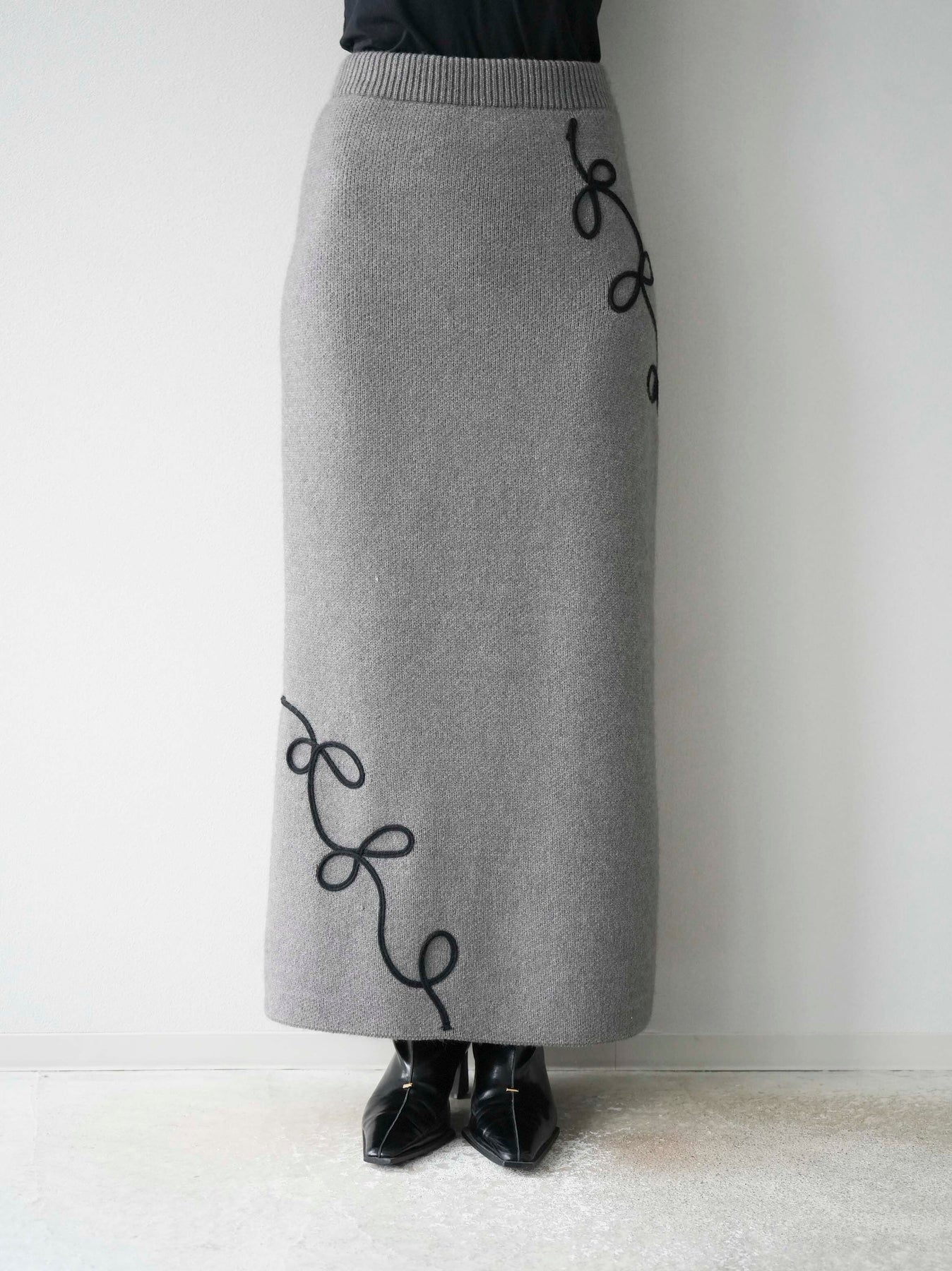 [予約]コード刺繍Iラインニットスカート/チャコール