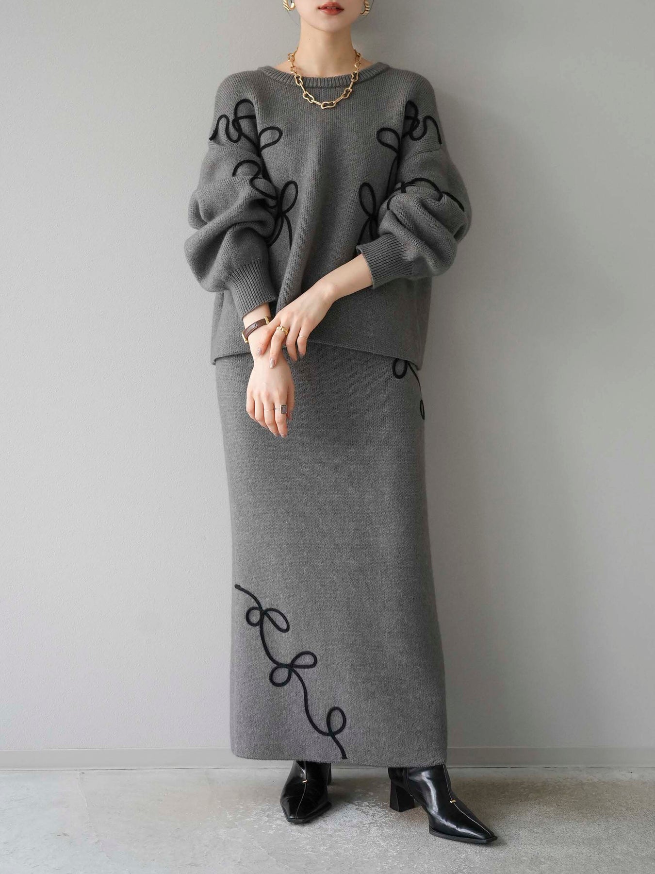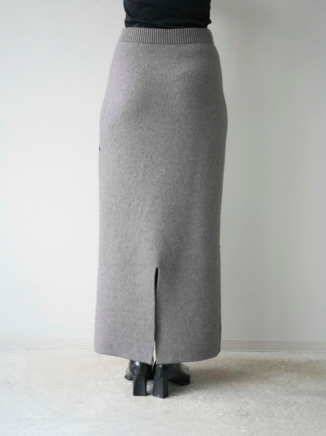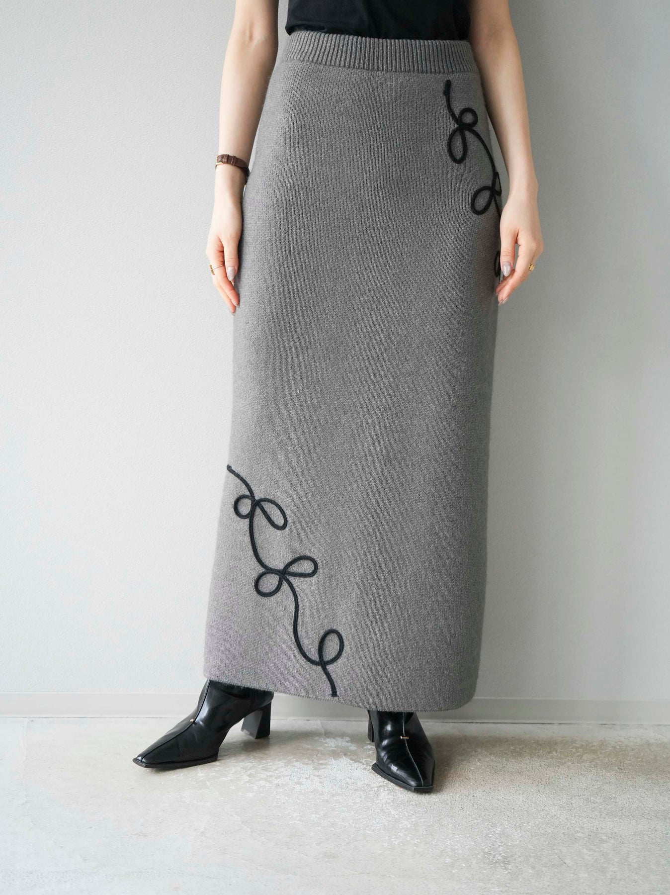 [予約]コード刺繍Iラインニットスカート/チャコール
