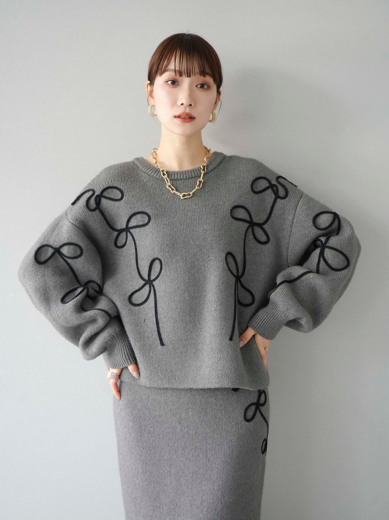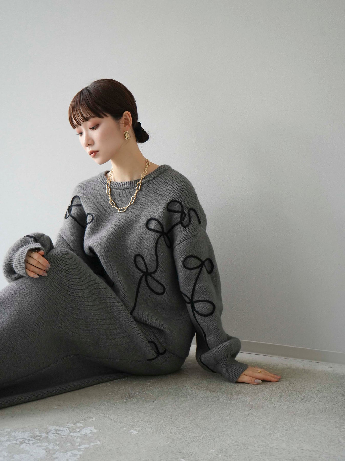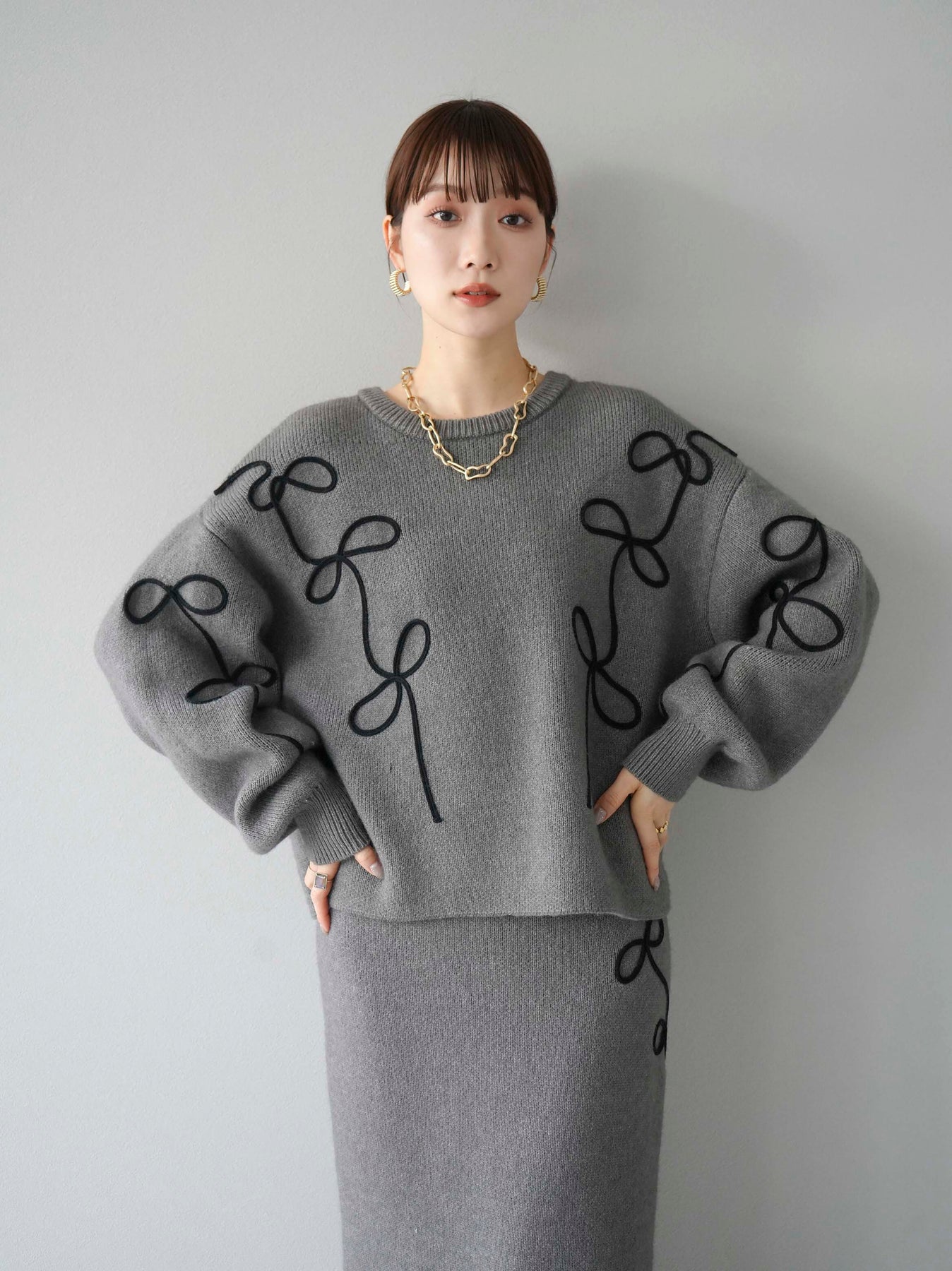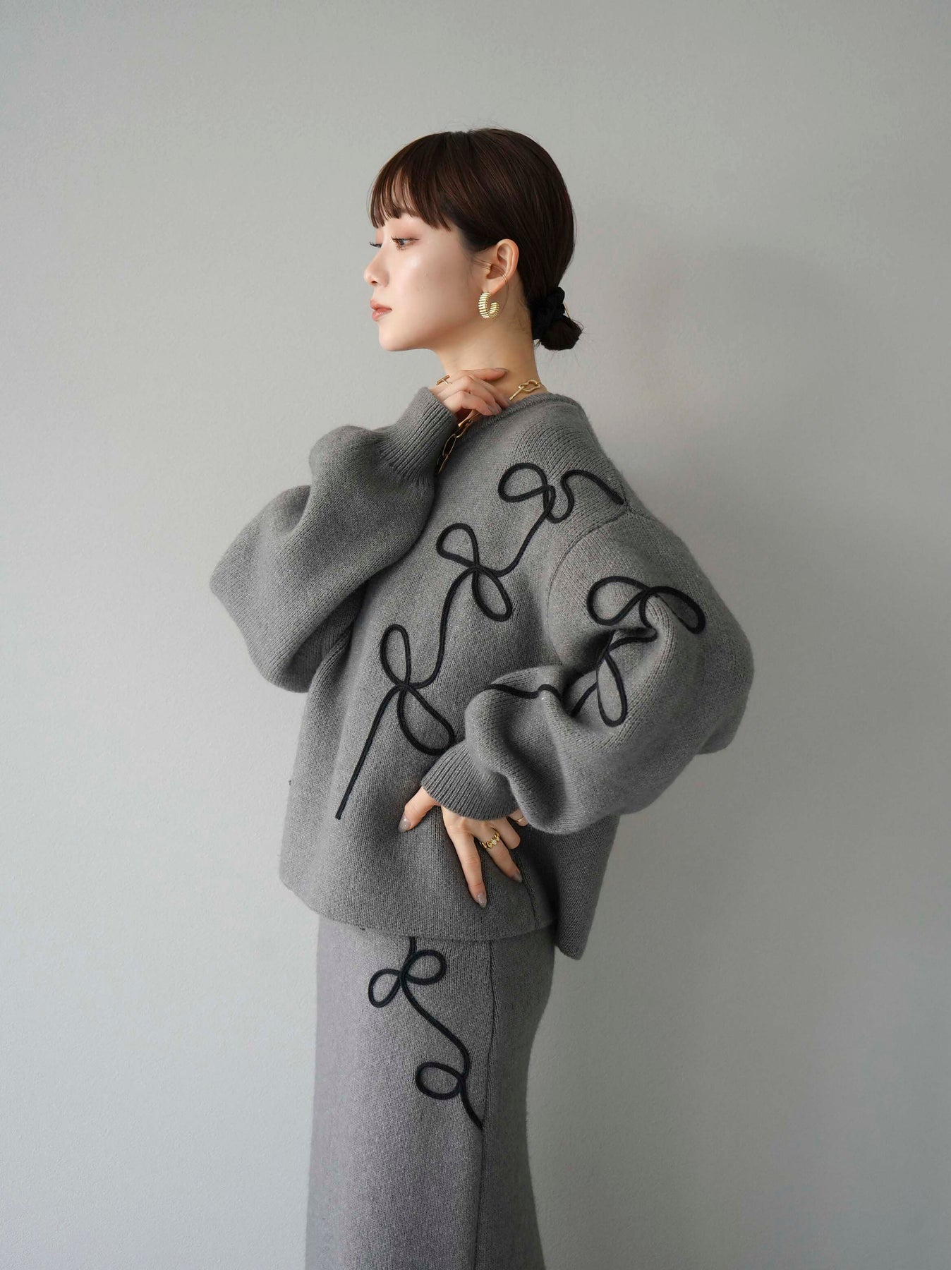 [予約]コード刺繍Iラインニットスカート/チャコール