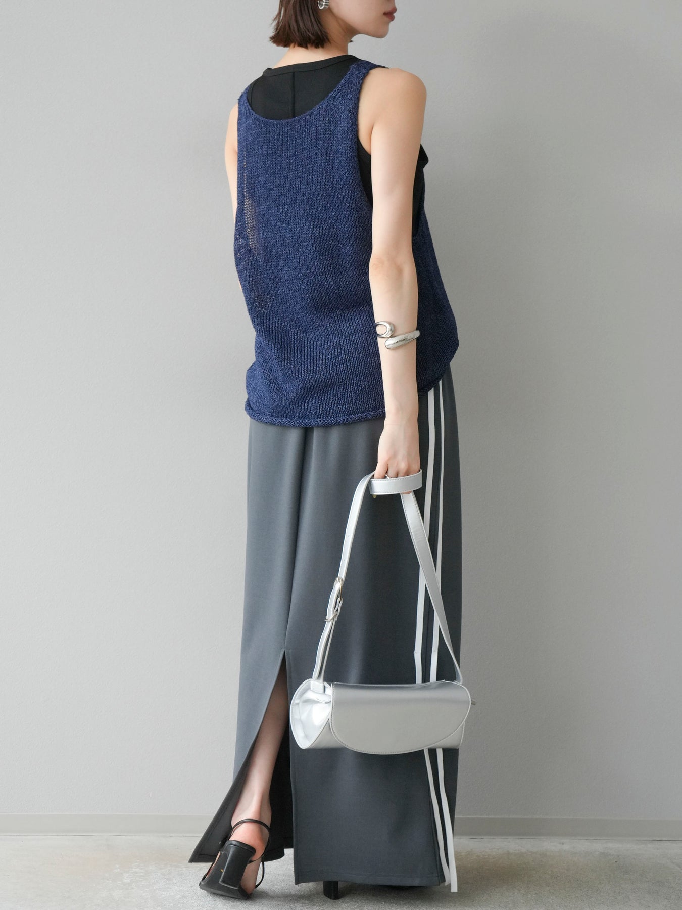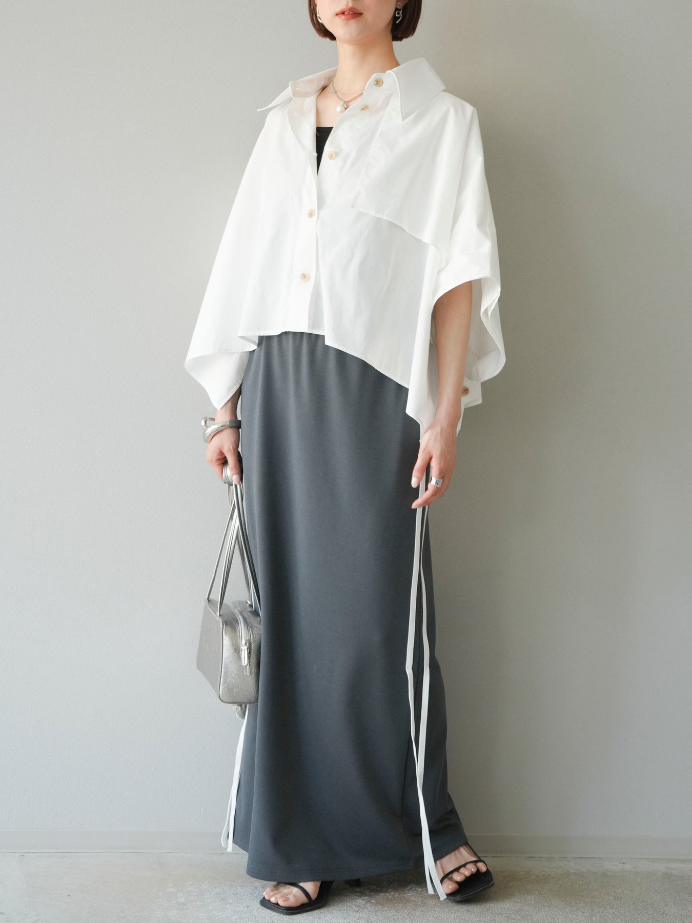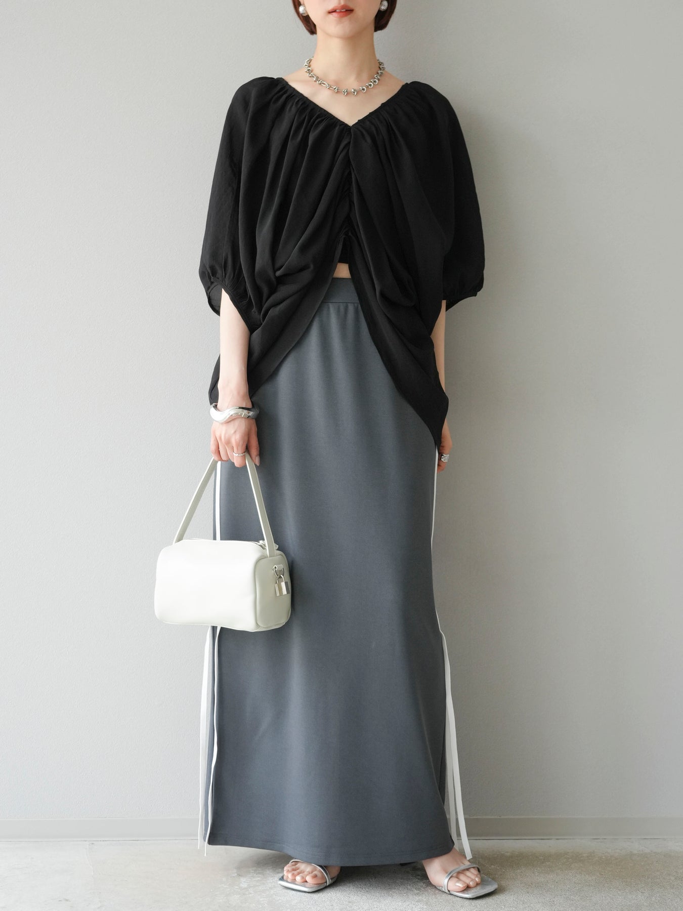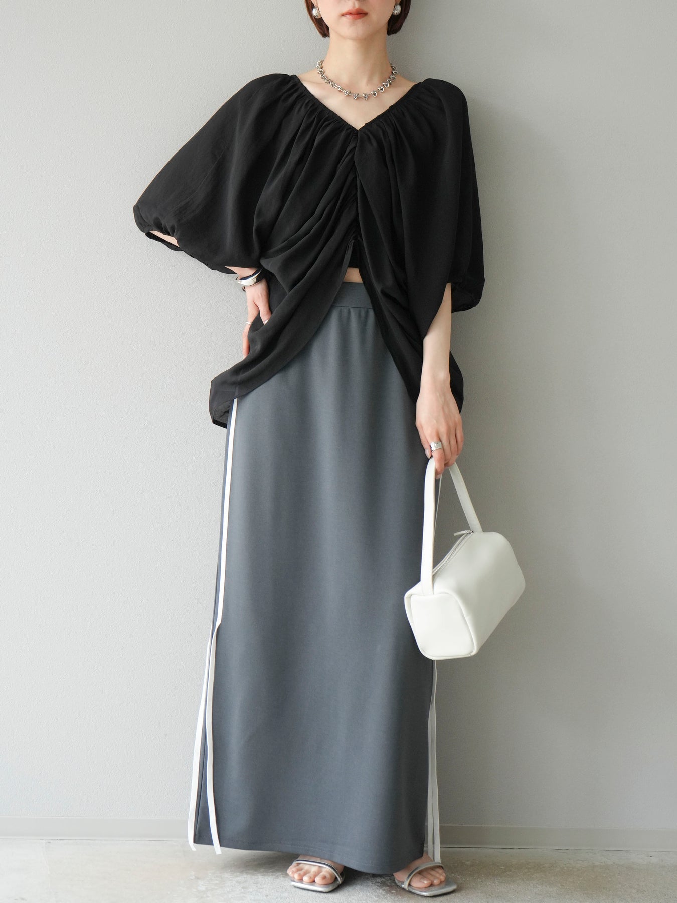 スポーティな要素をミックスした、モードな雰囲気のジャージナロースカート。 両サイドに施されたラインデザインが縦のラインを強調し、スタイルアップ効果も◎。 程よくフィットしつつも伸縮性のあるジャージ素材で、タイトながら快適な穿き心地を実現。 スリット入りで足さばきも良く、ヒールやスニーカーなど幅広いシューズと好相性です。 Tシャツやスウェットでカジュアルに、ブラウスやシャツでキレイめミックスもおすすめ。 トレンド感と実用性を兼ね備えた、1枚で決まる主役スカートです。
