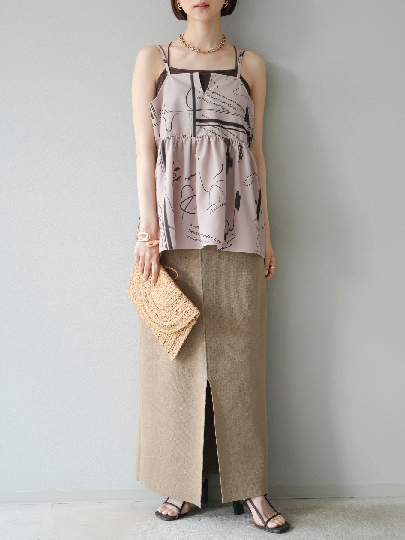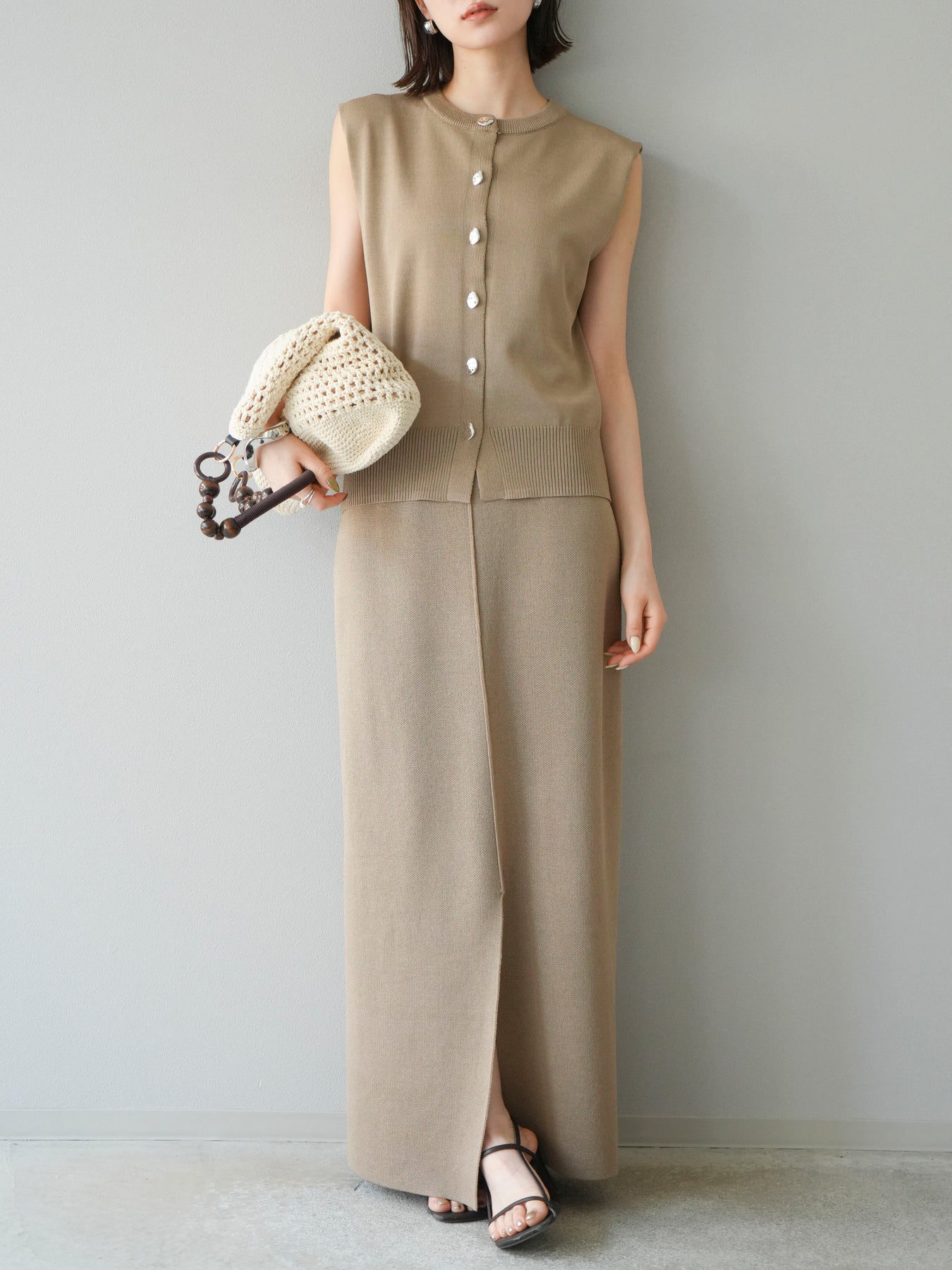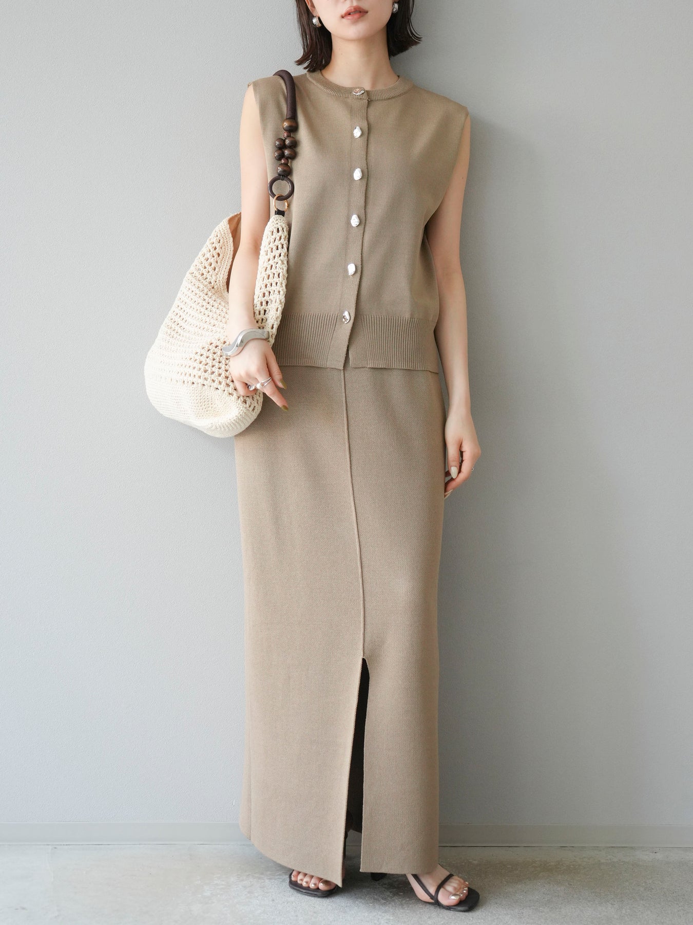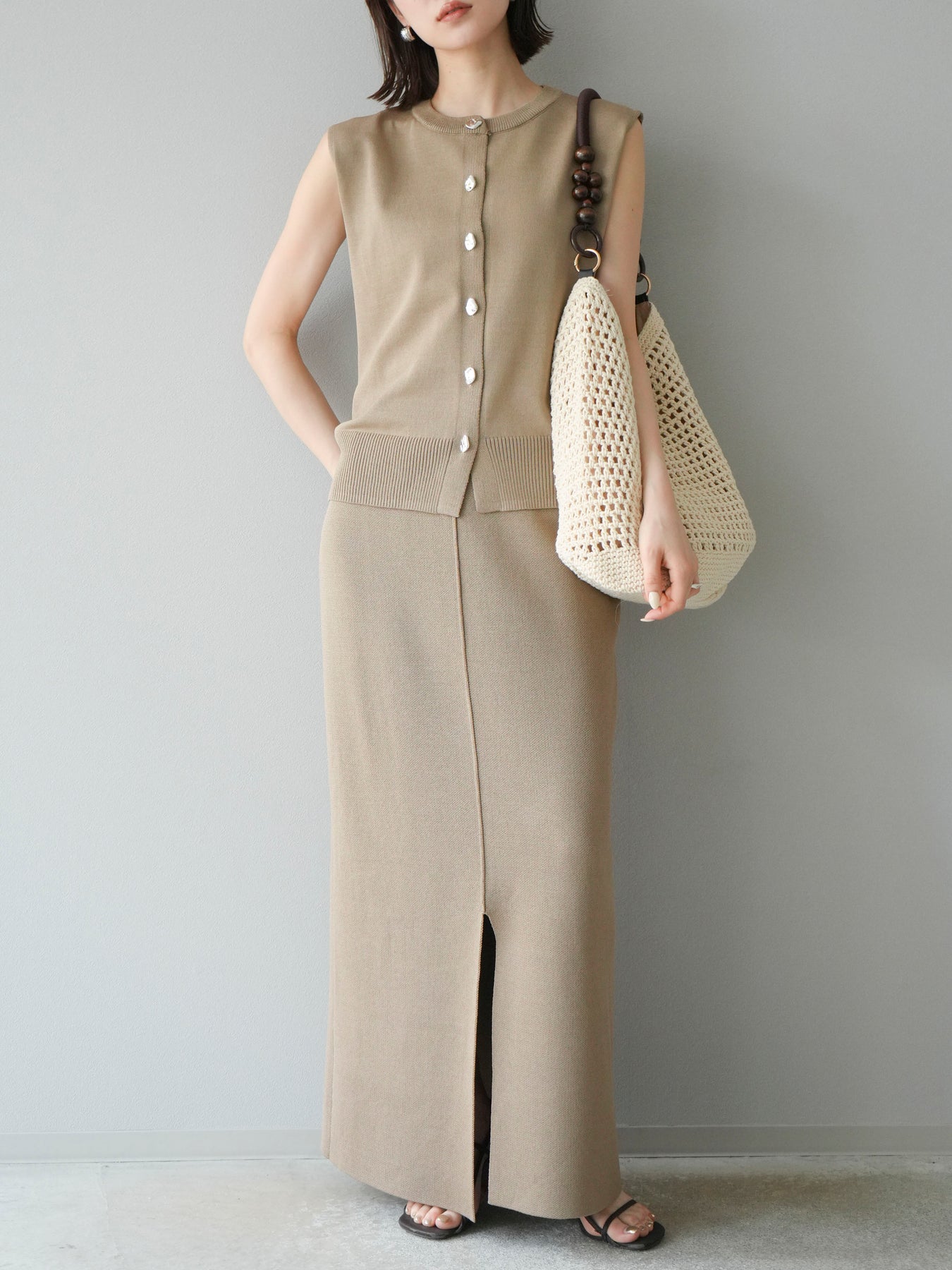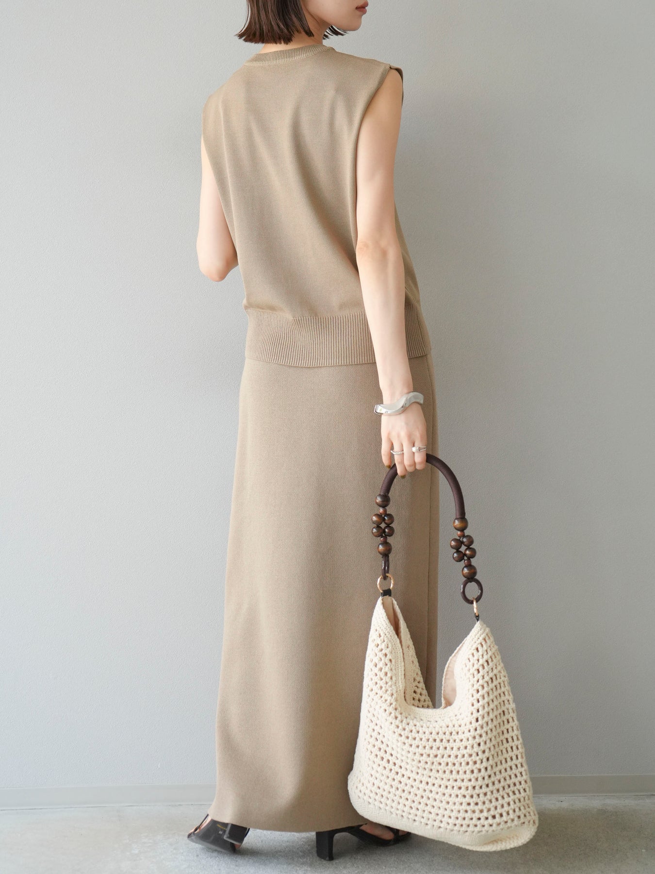 [予約]レーヨンポリIラインニットスカート/ベージュ