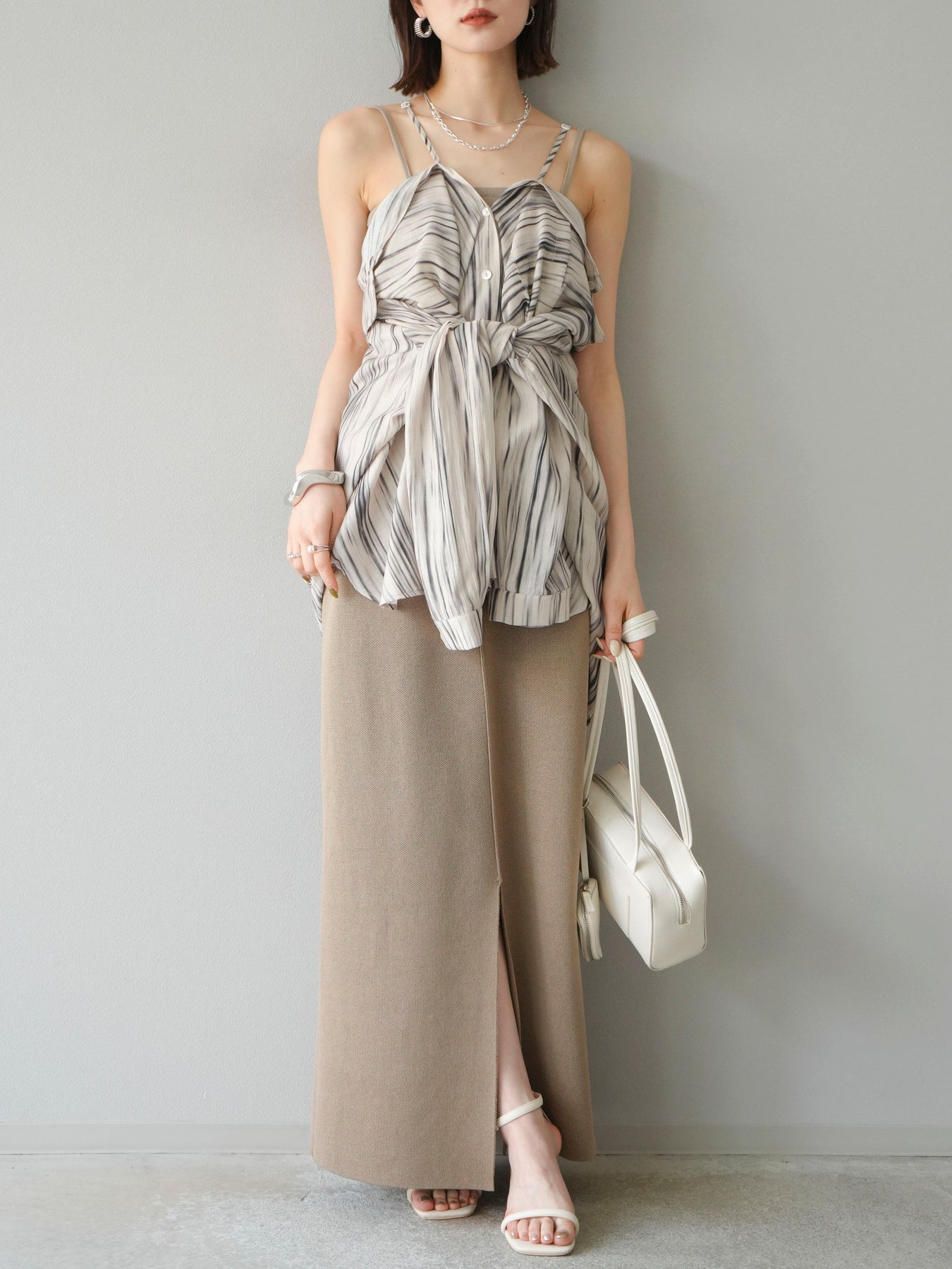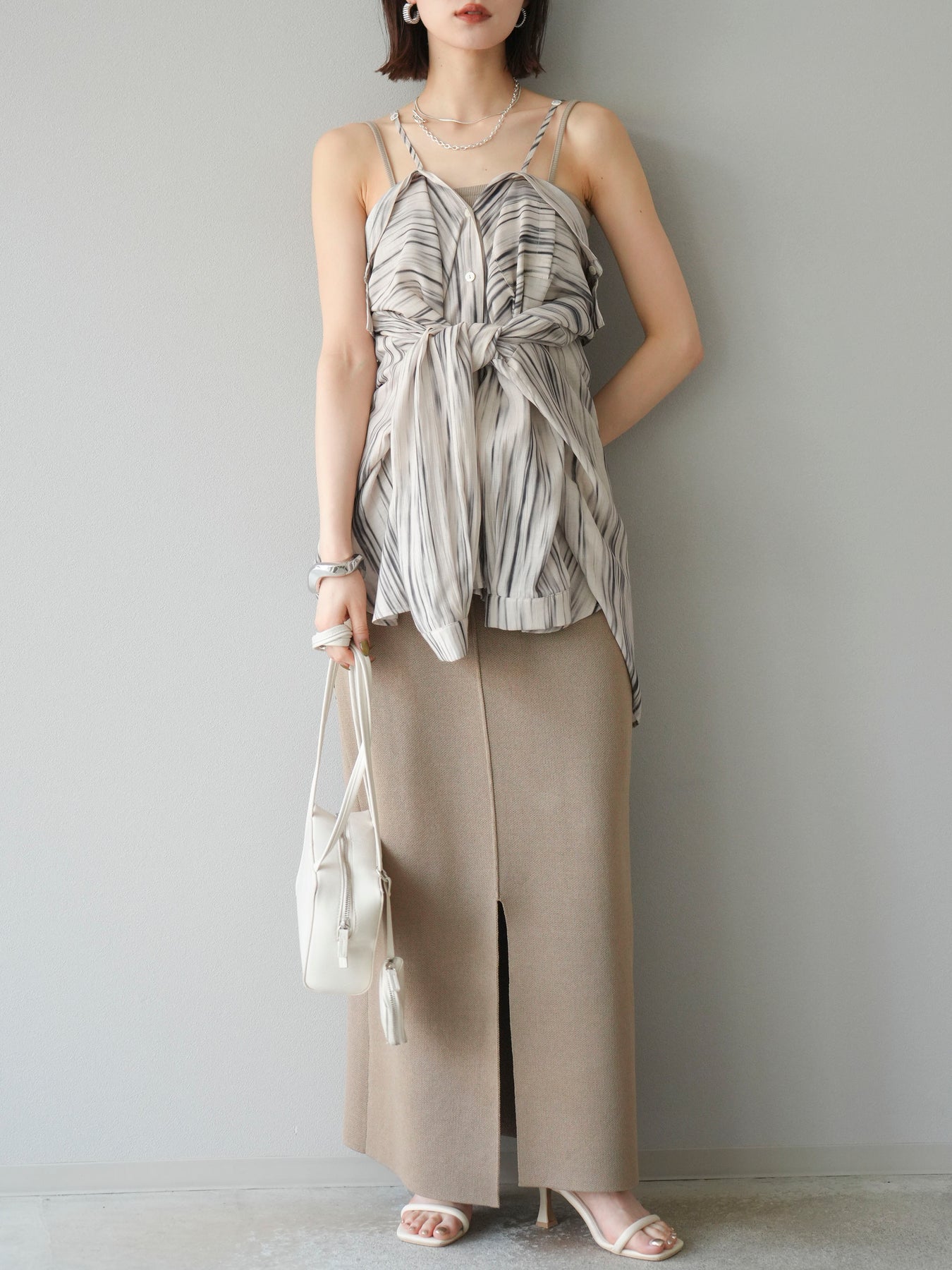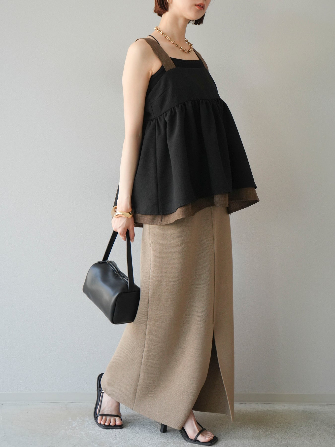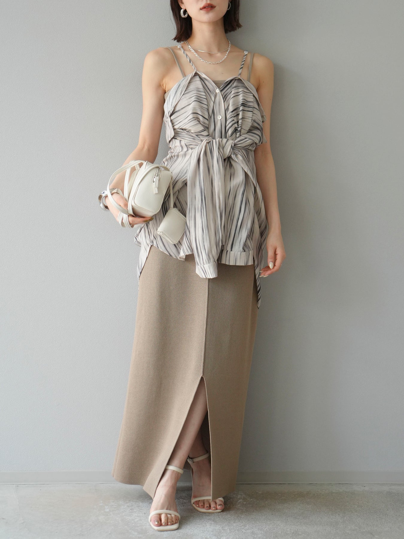 [予約]レーヨンポリIラインニットスカート/ベージュ