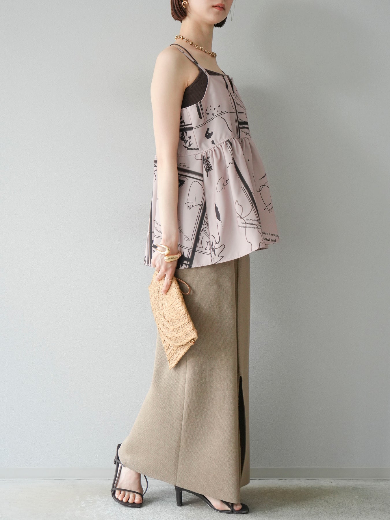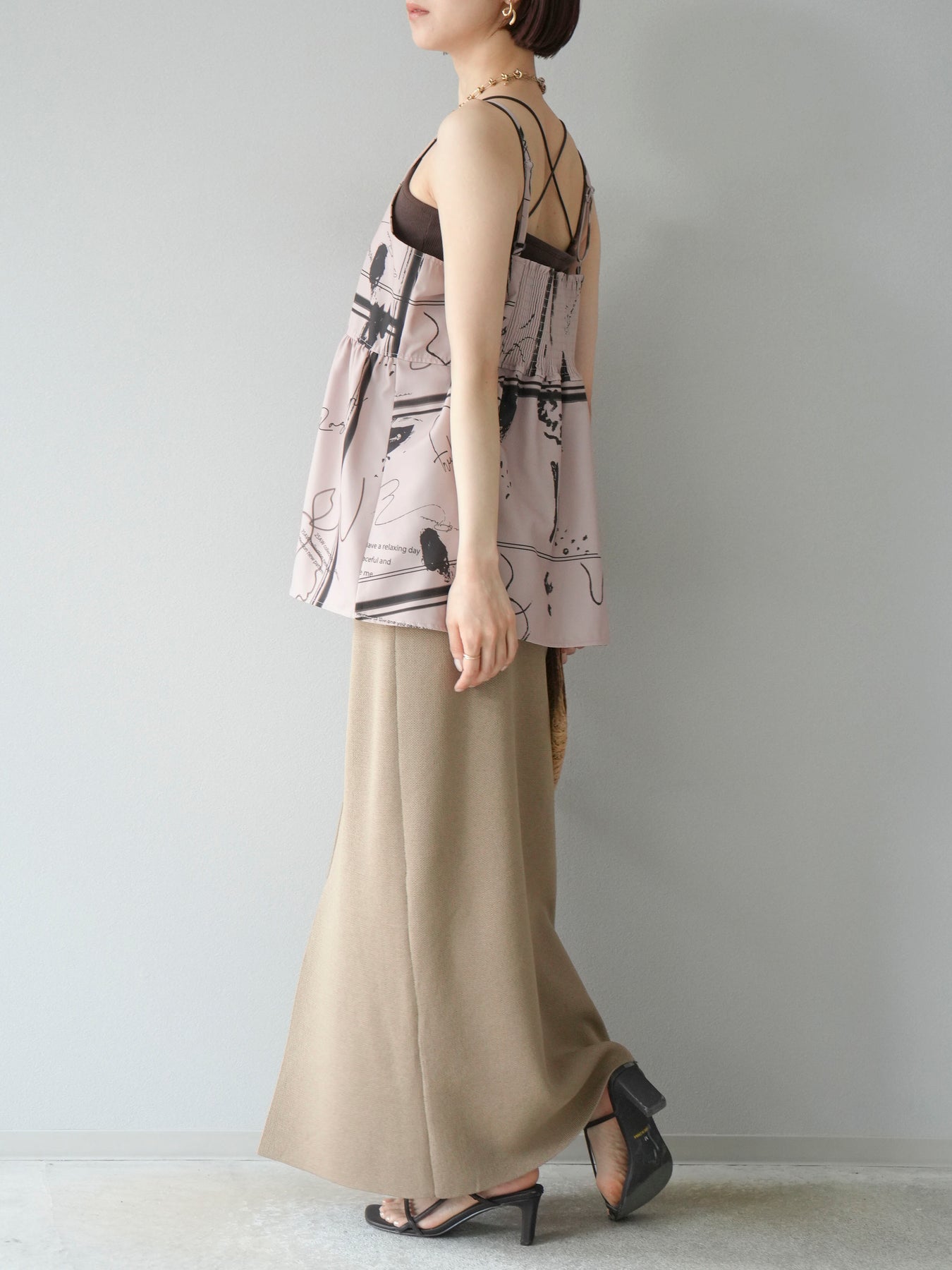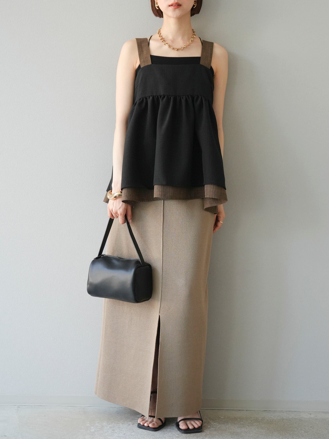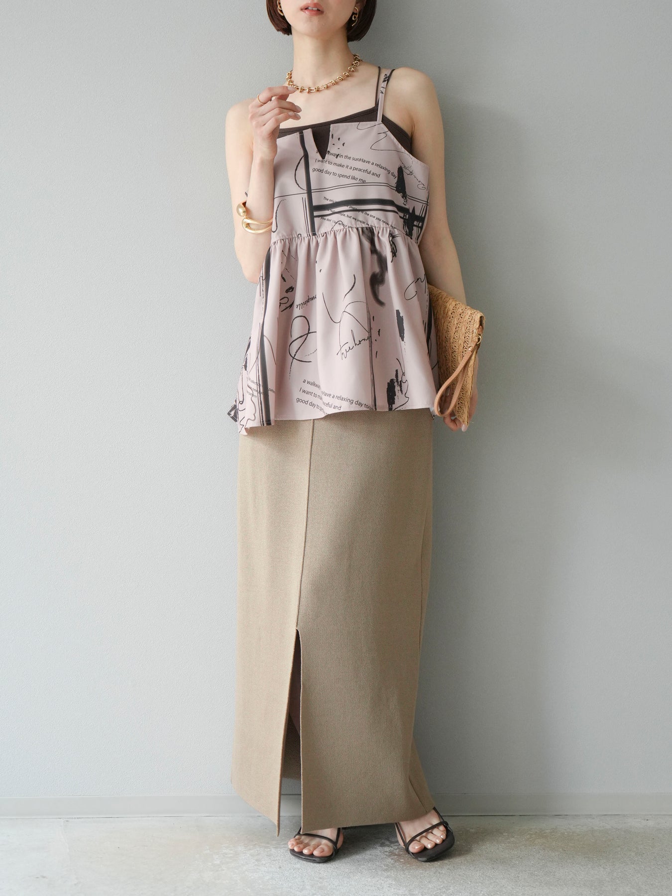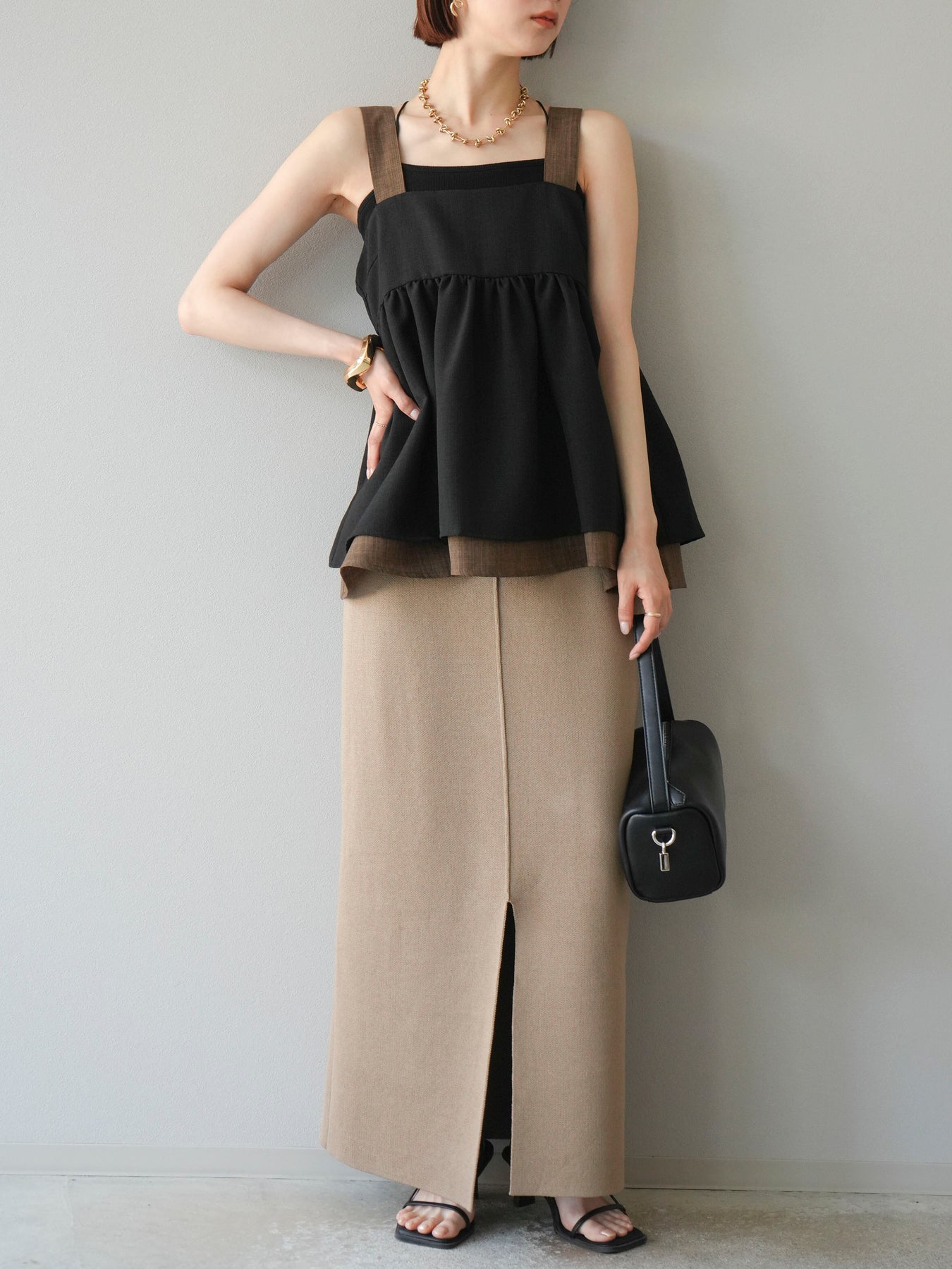 [予約]レーヨンポリIラインニットスカート/ベージュ