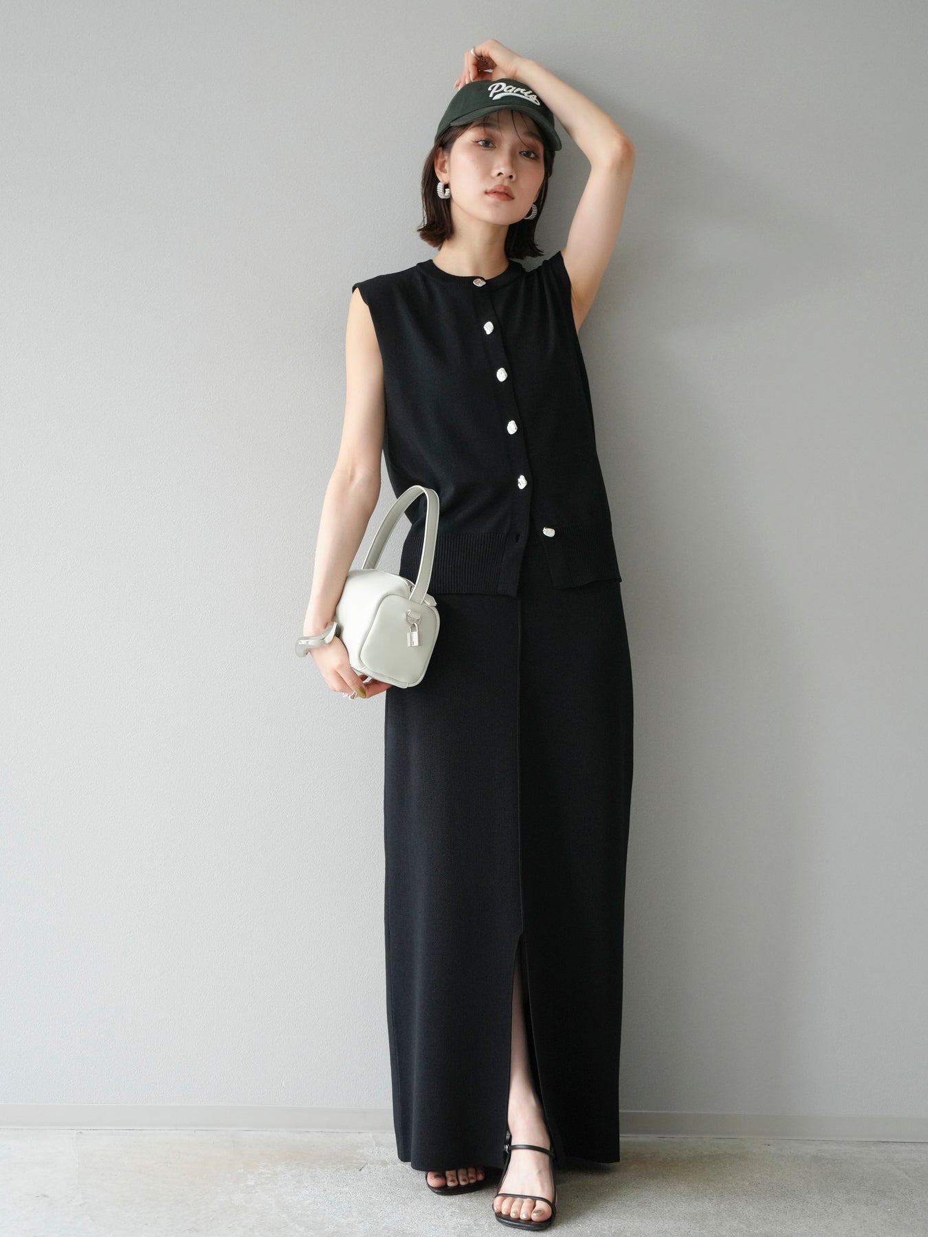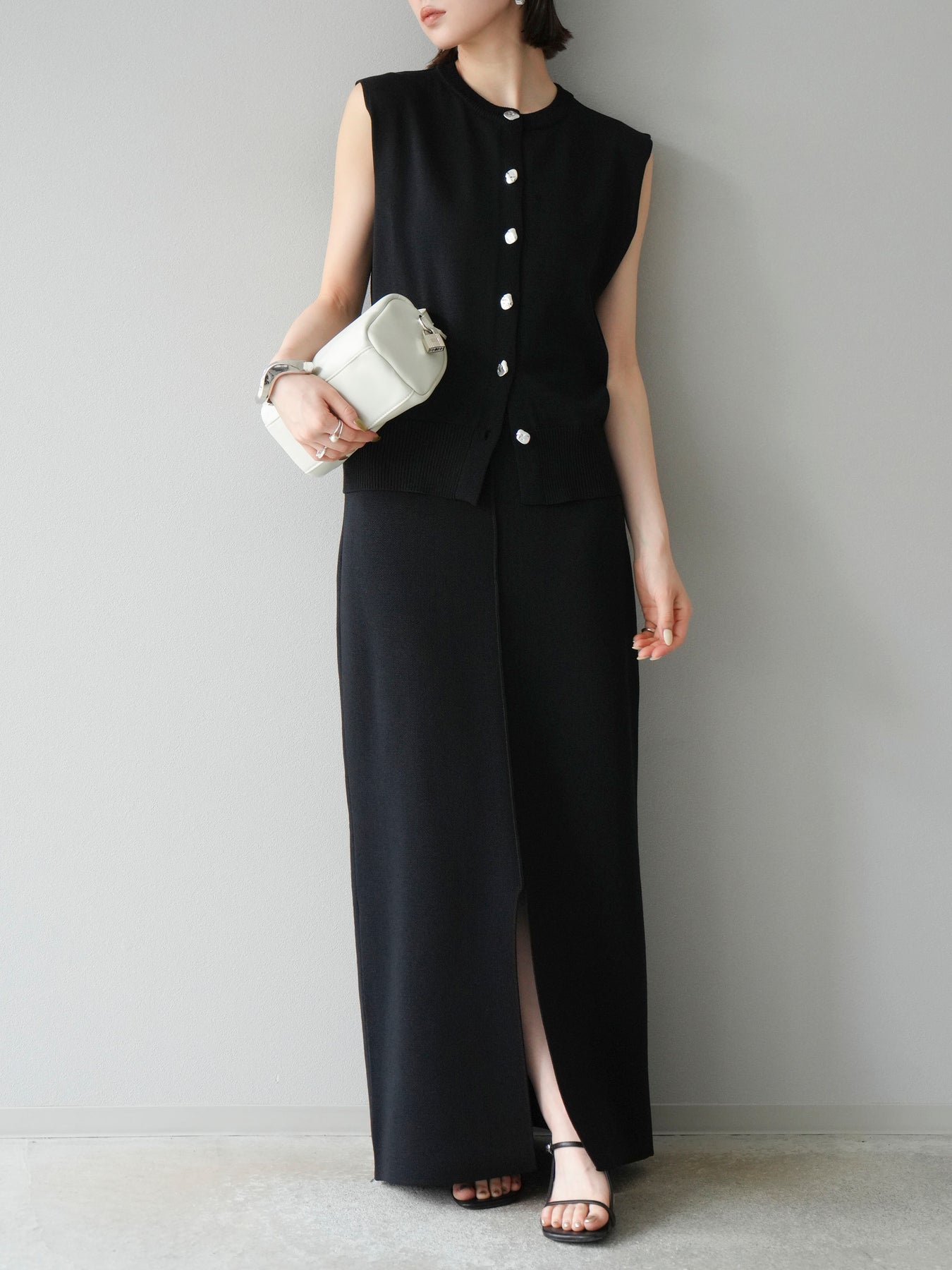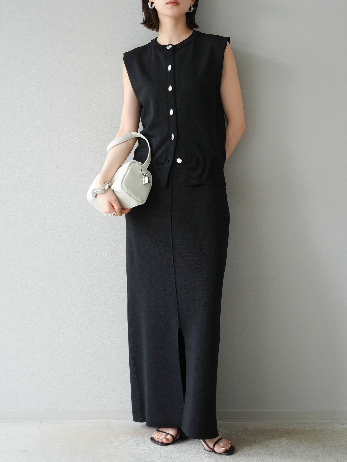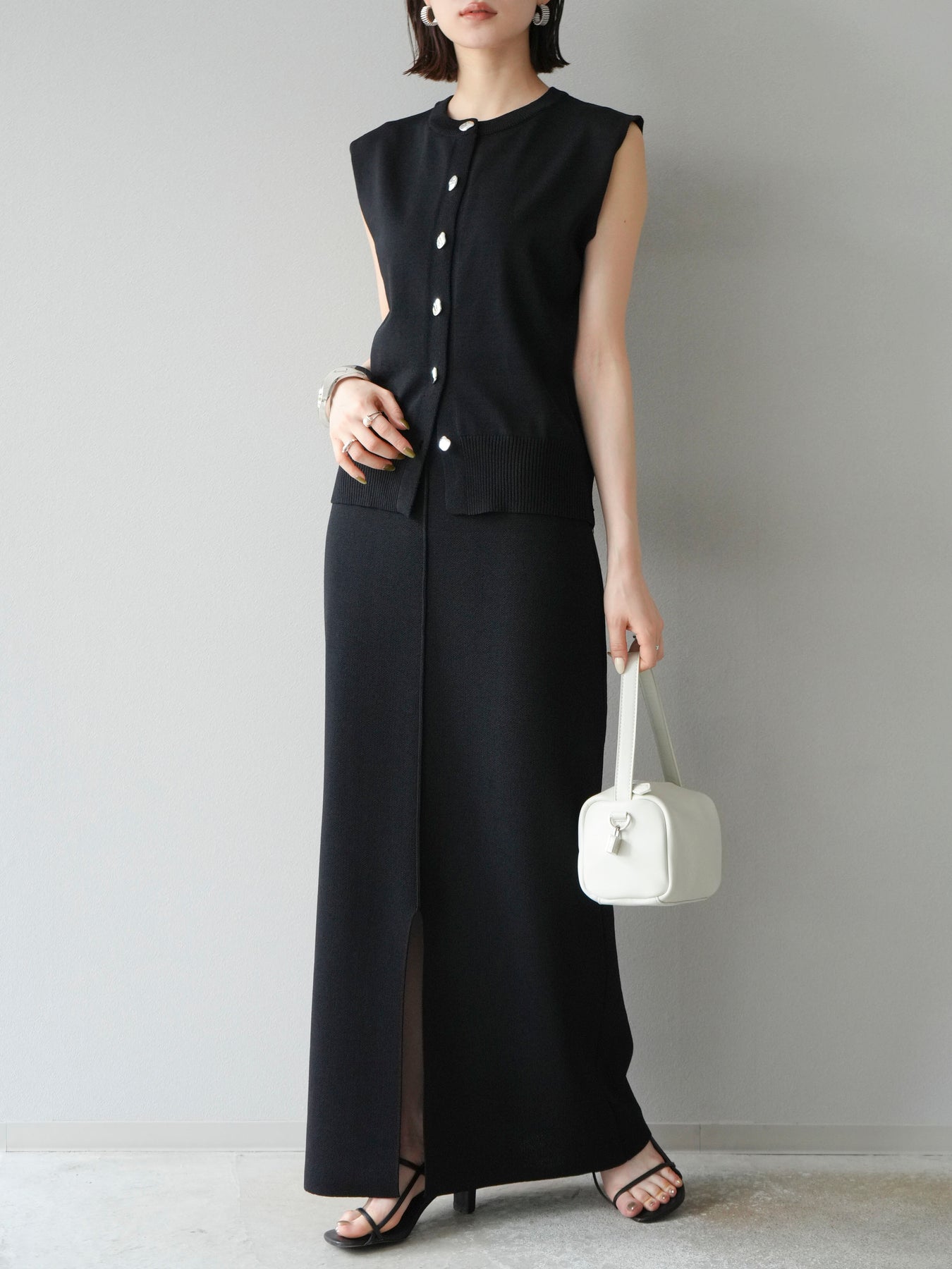 [予約]レーヨンポリIラインニットスカート/ブラック