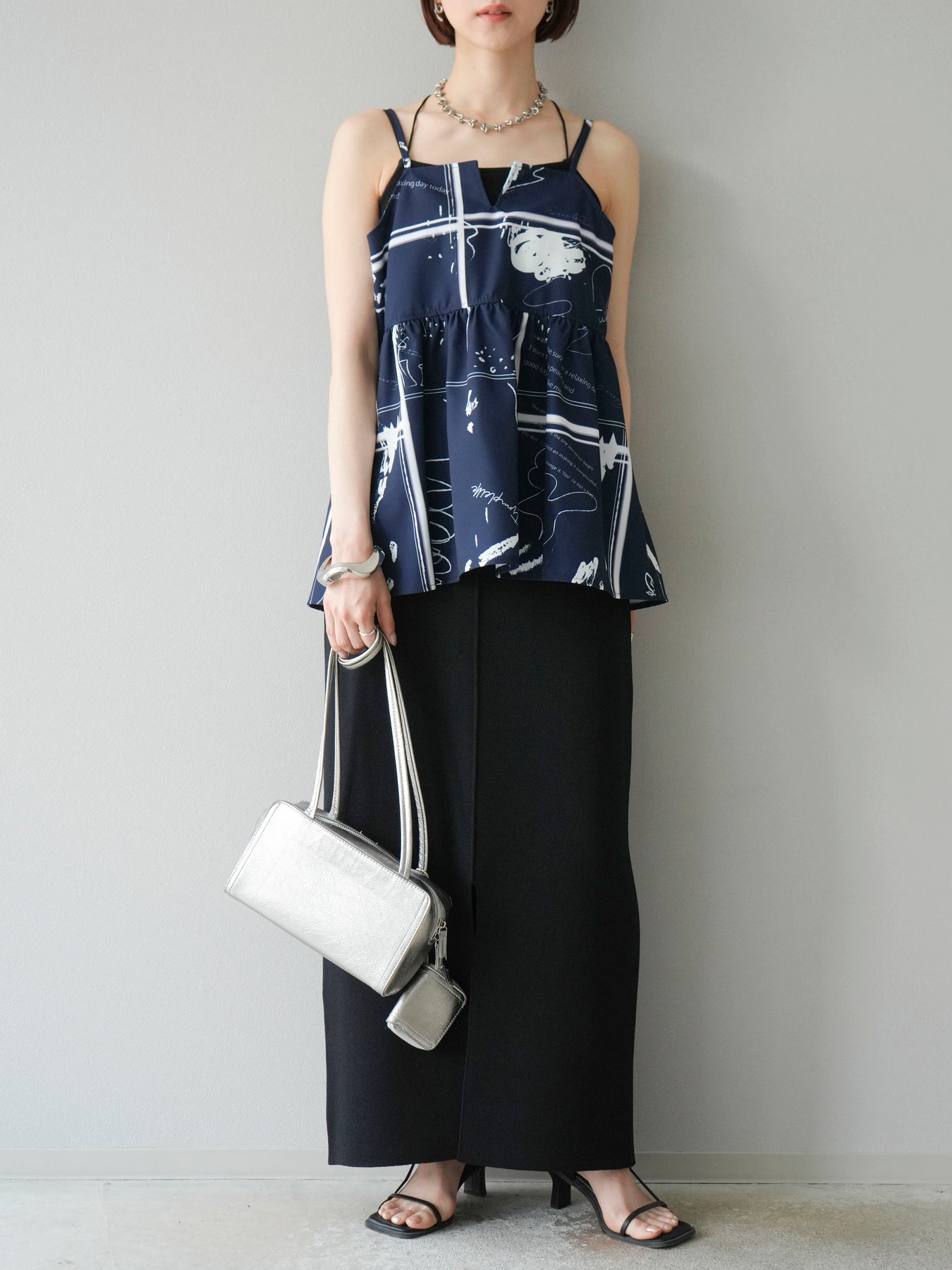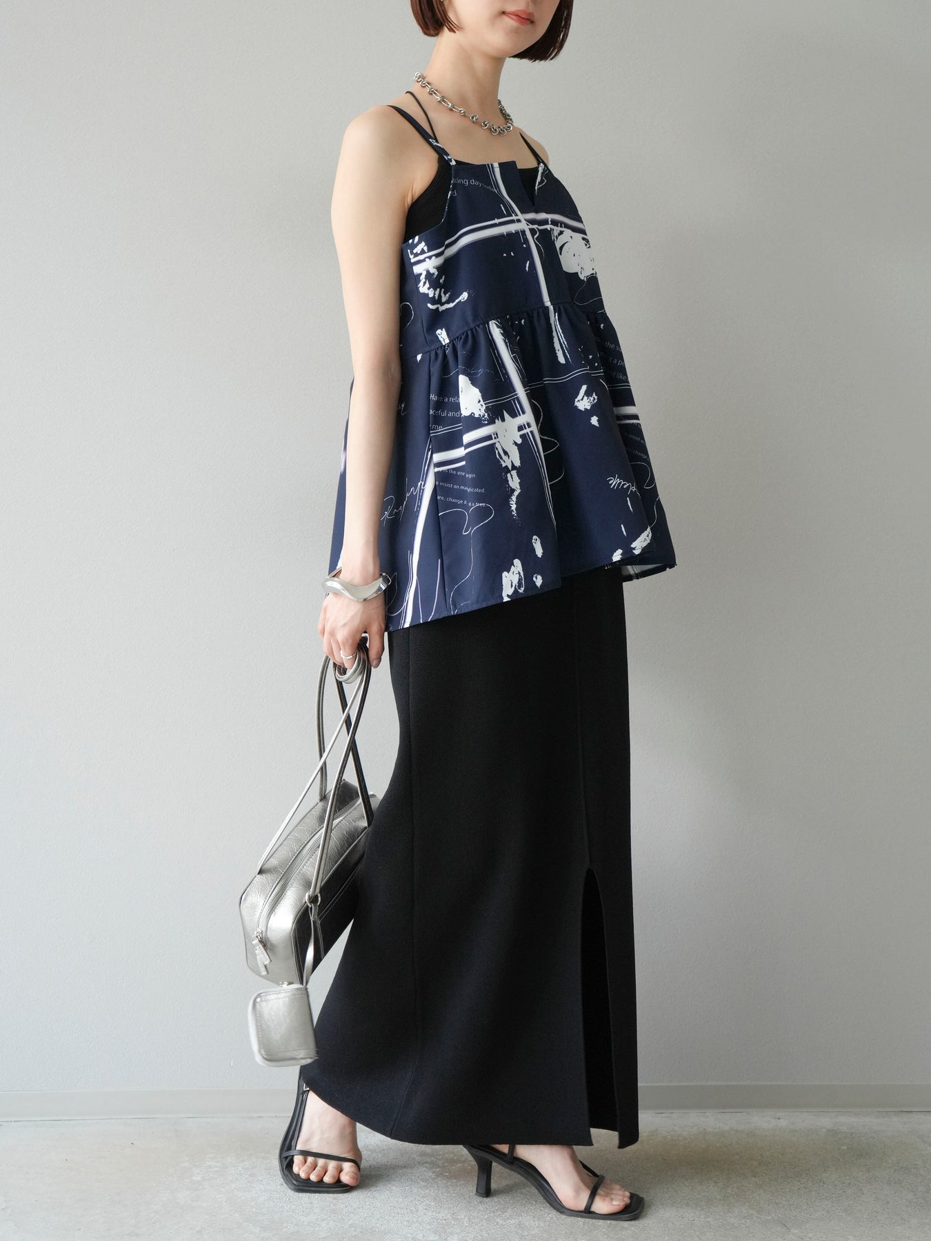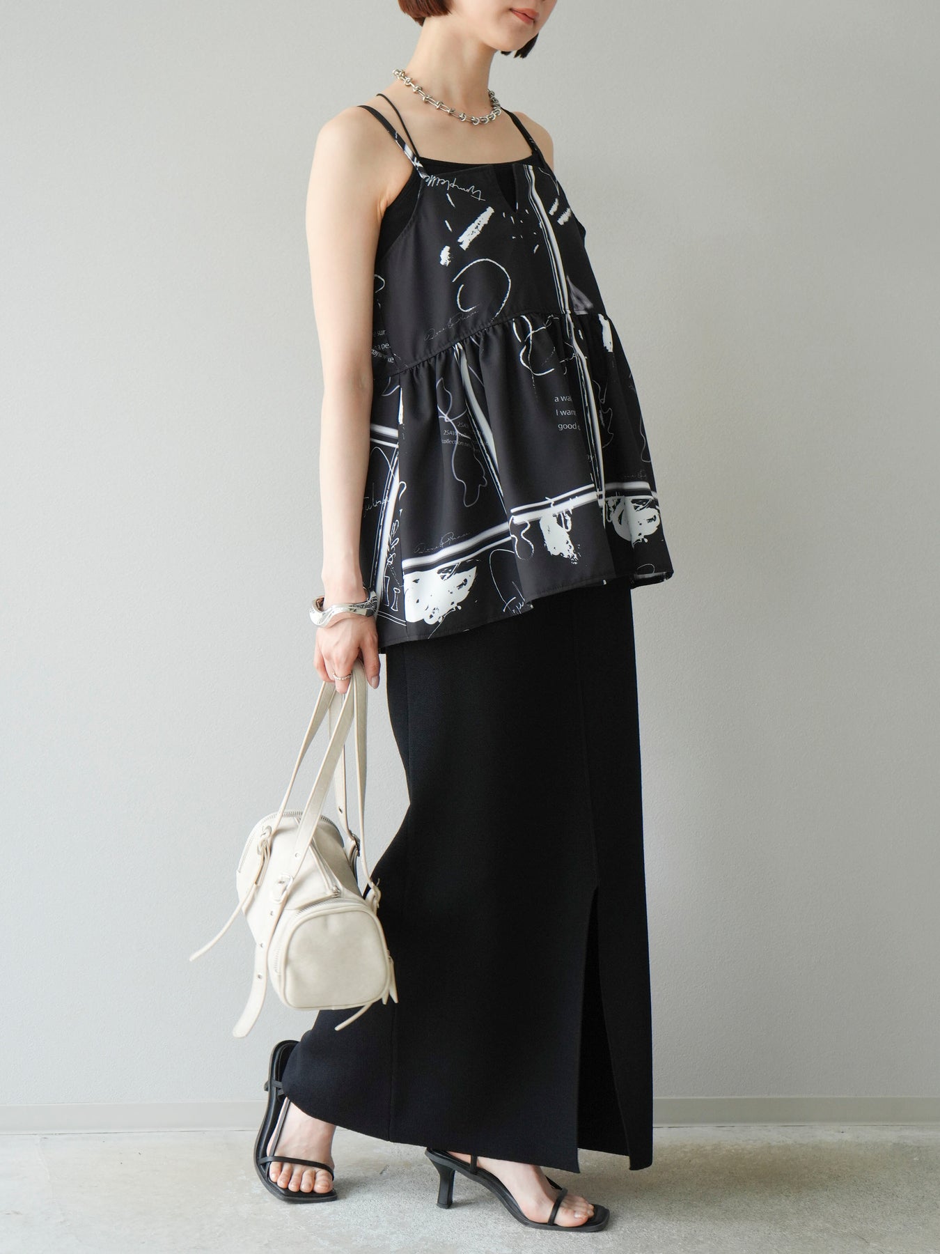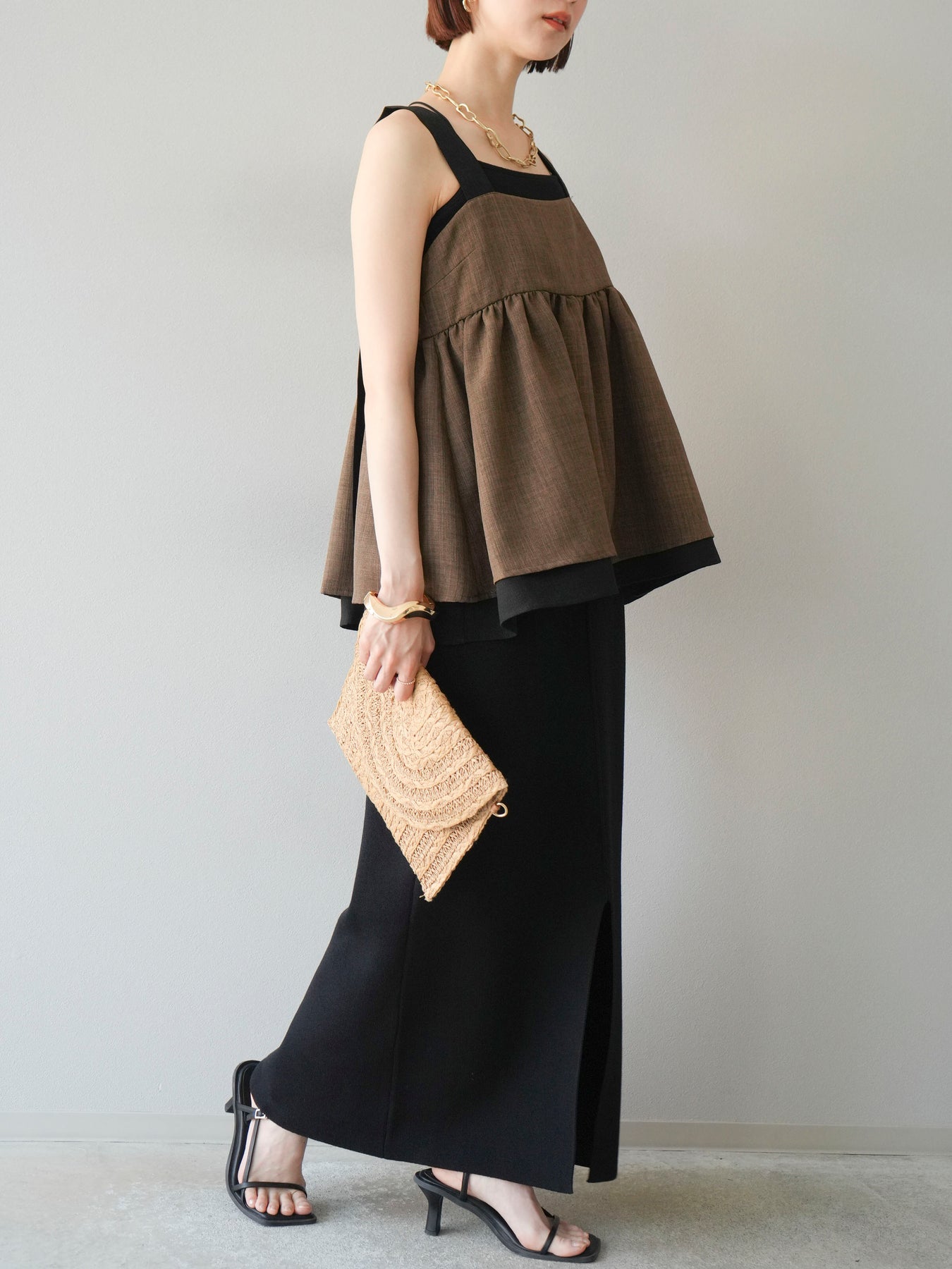 [予約]レーヨンポリIラインニットスカート/ブラック