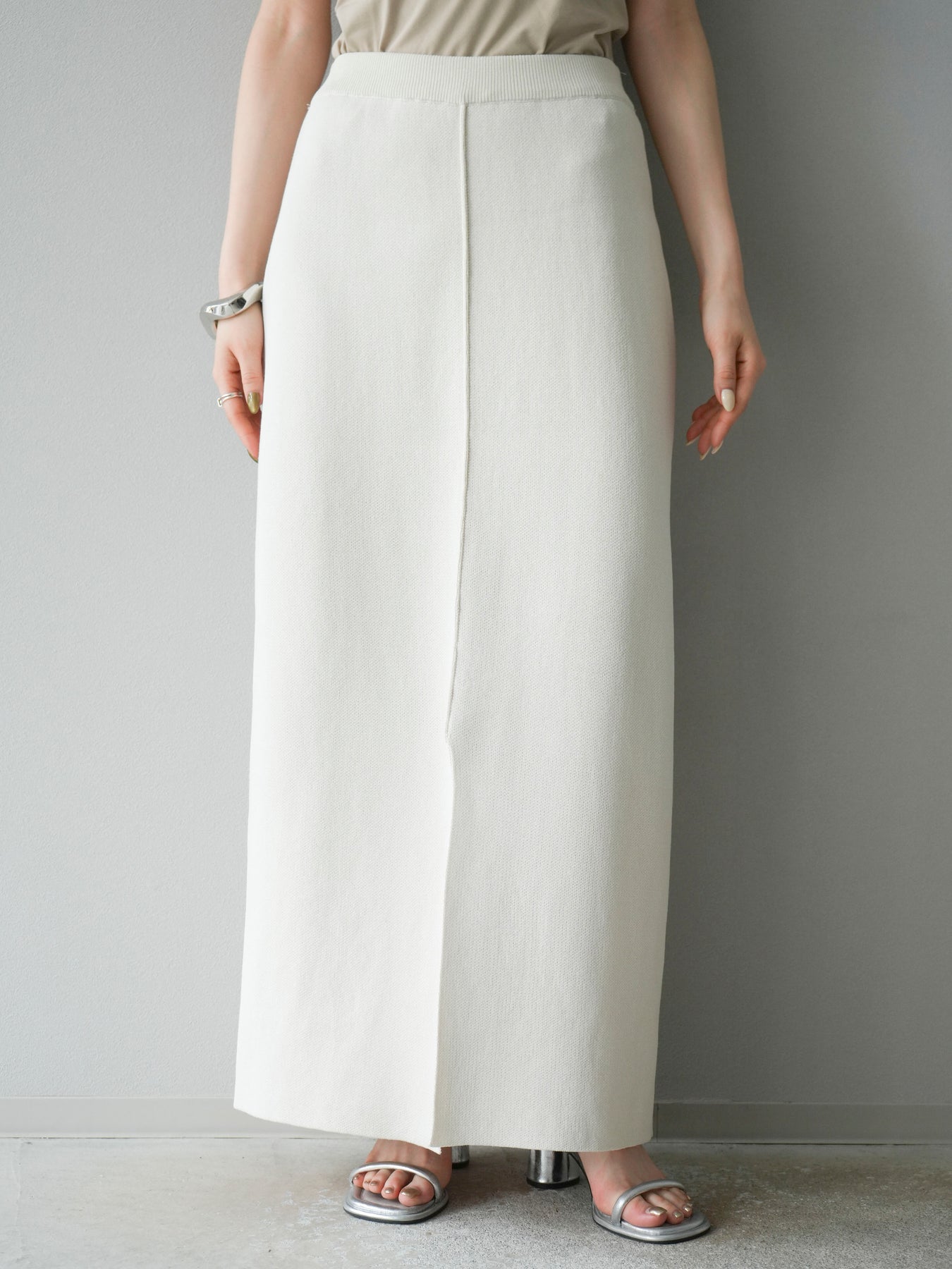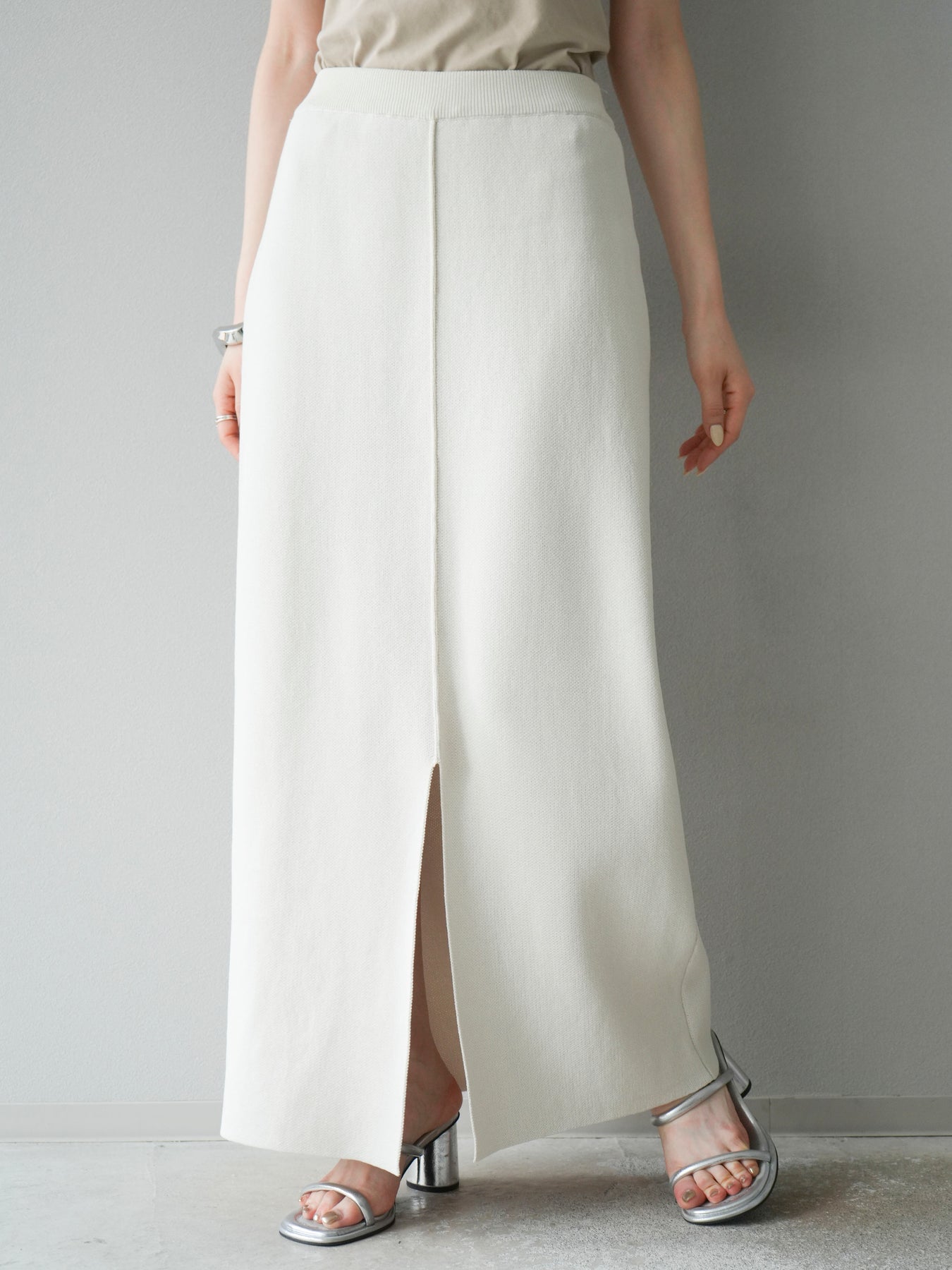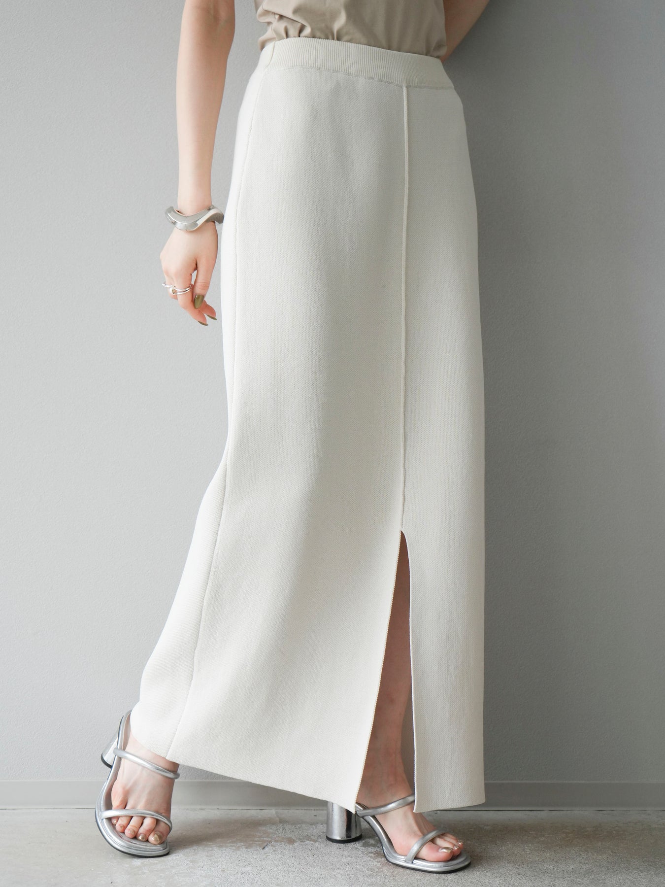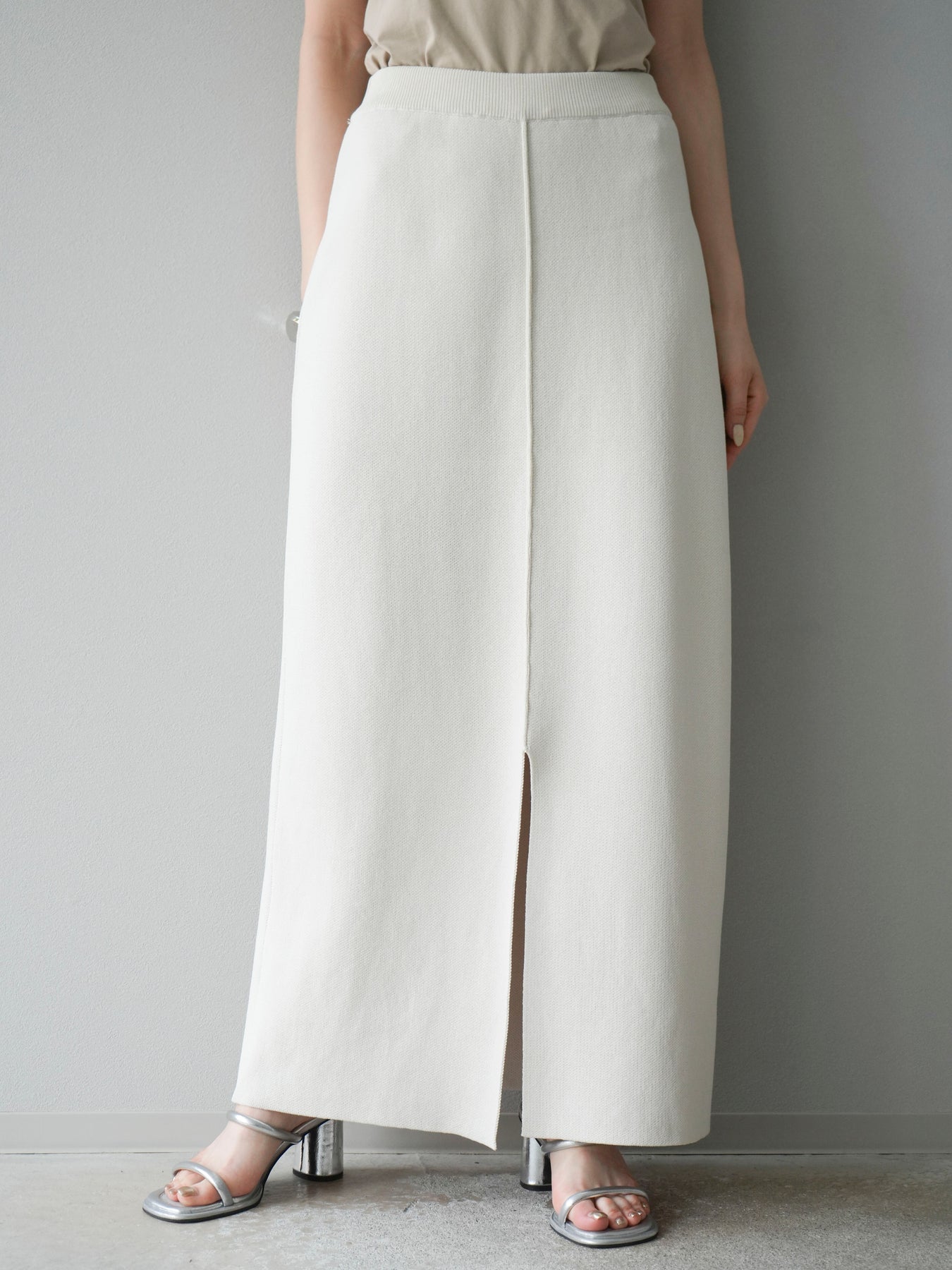 [予約]レーヨンポリIラインニットスカート/アイボリー