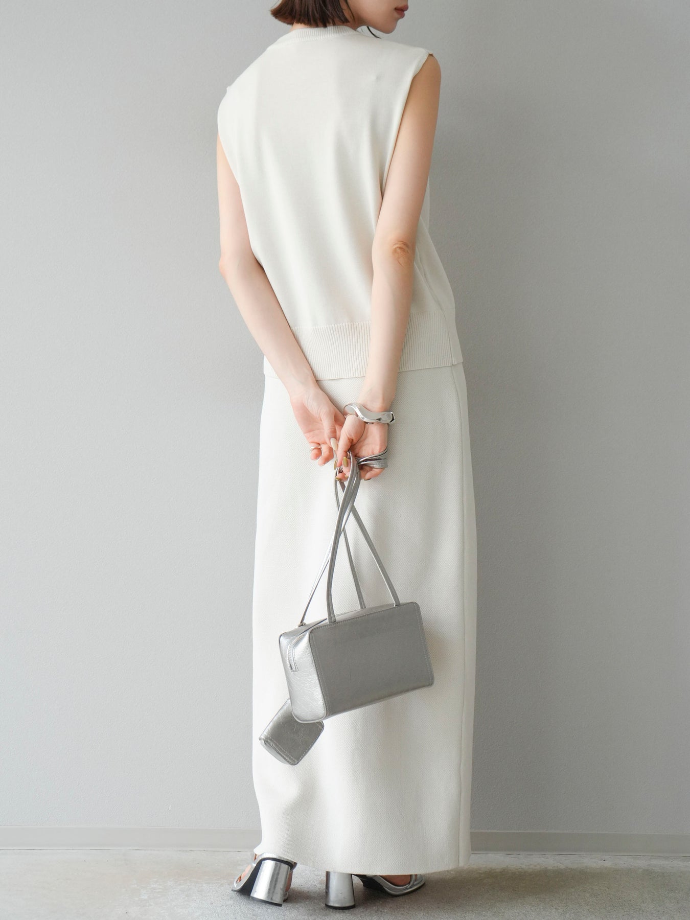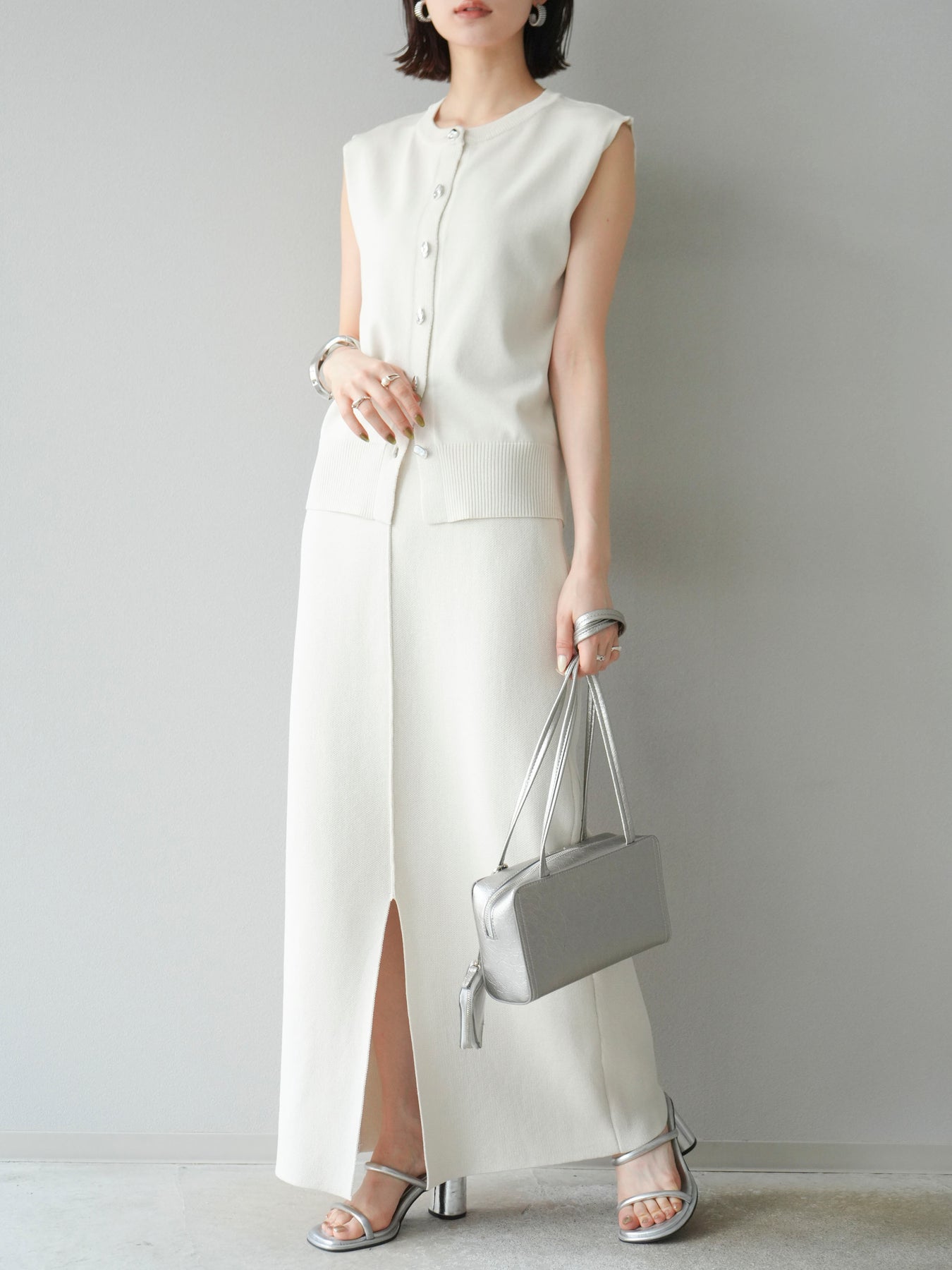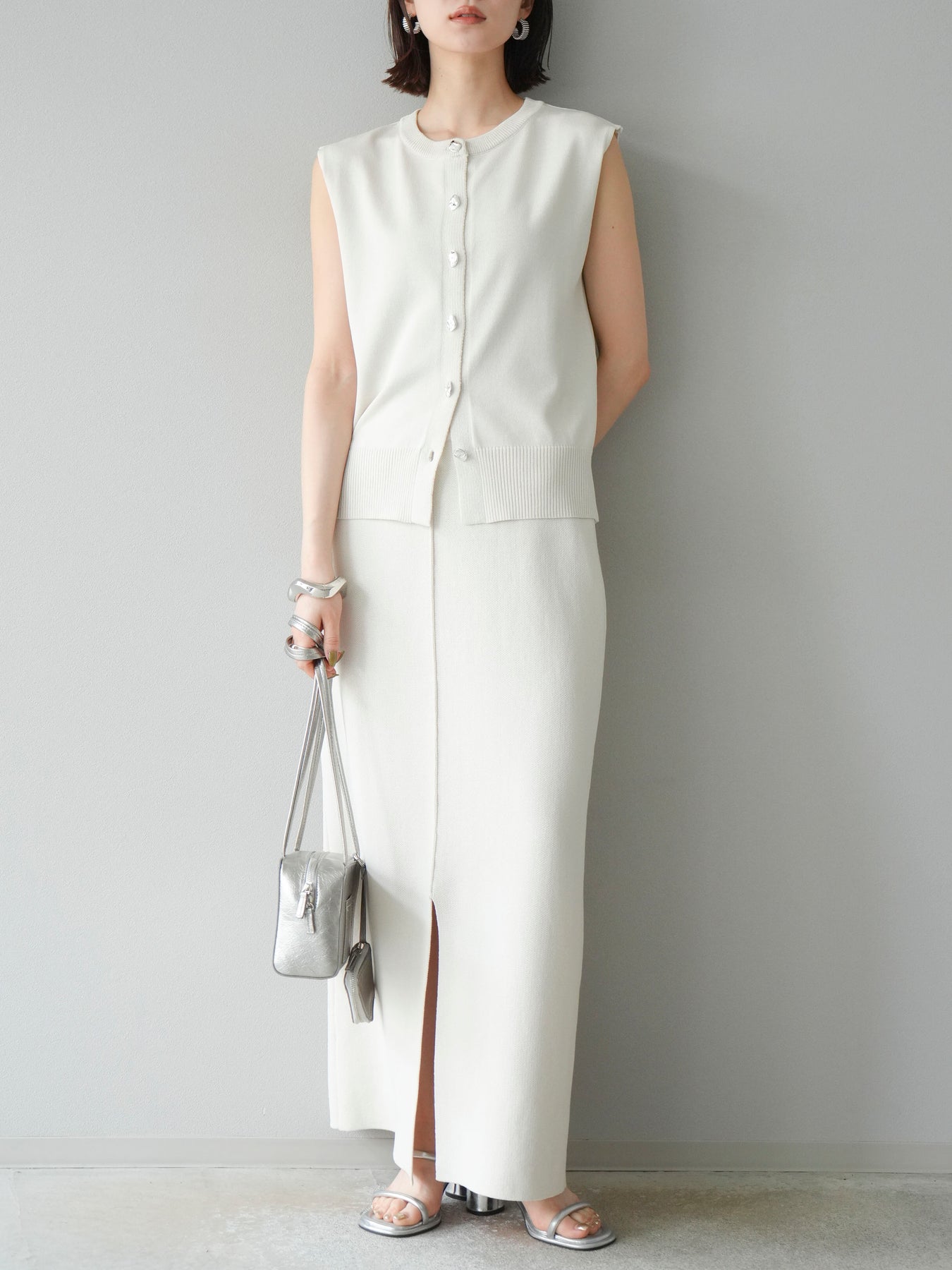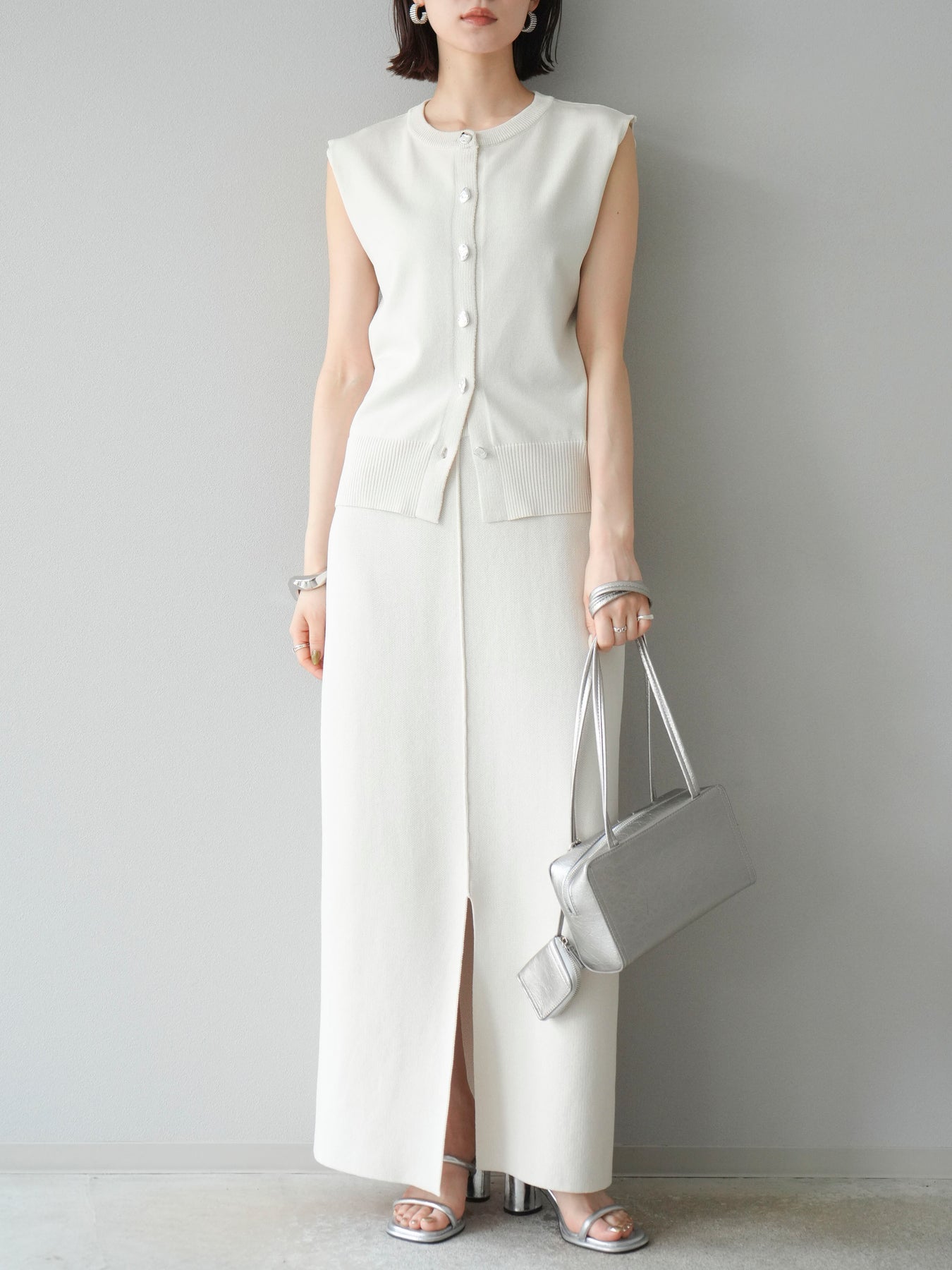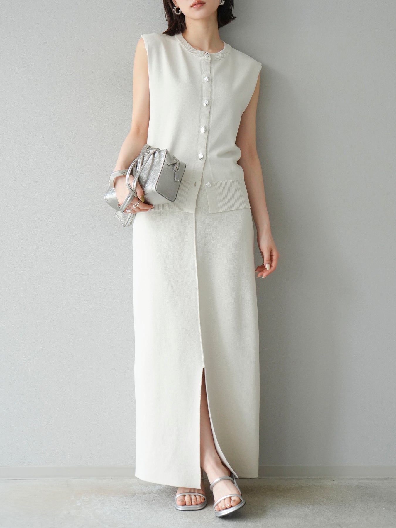 [予約]レーヨンポリIラインニットスカート/アイボリー