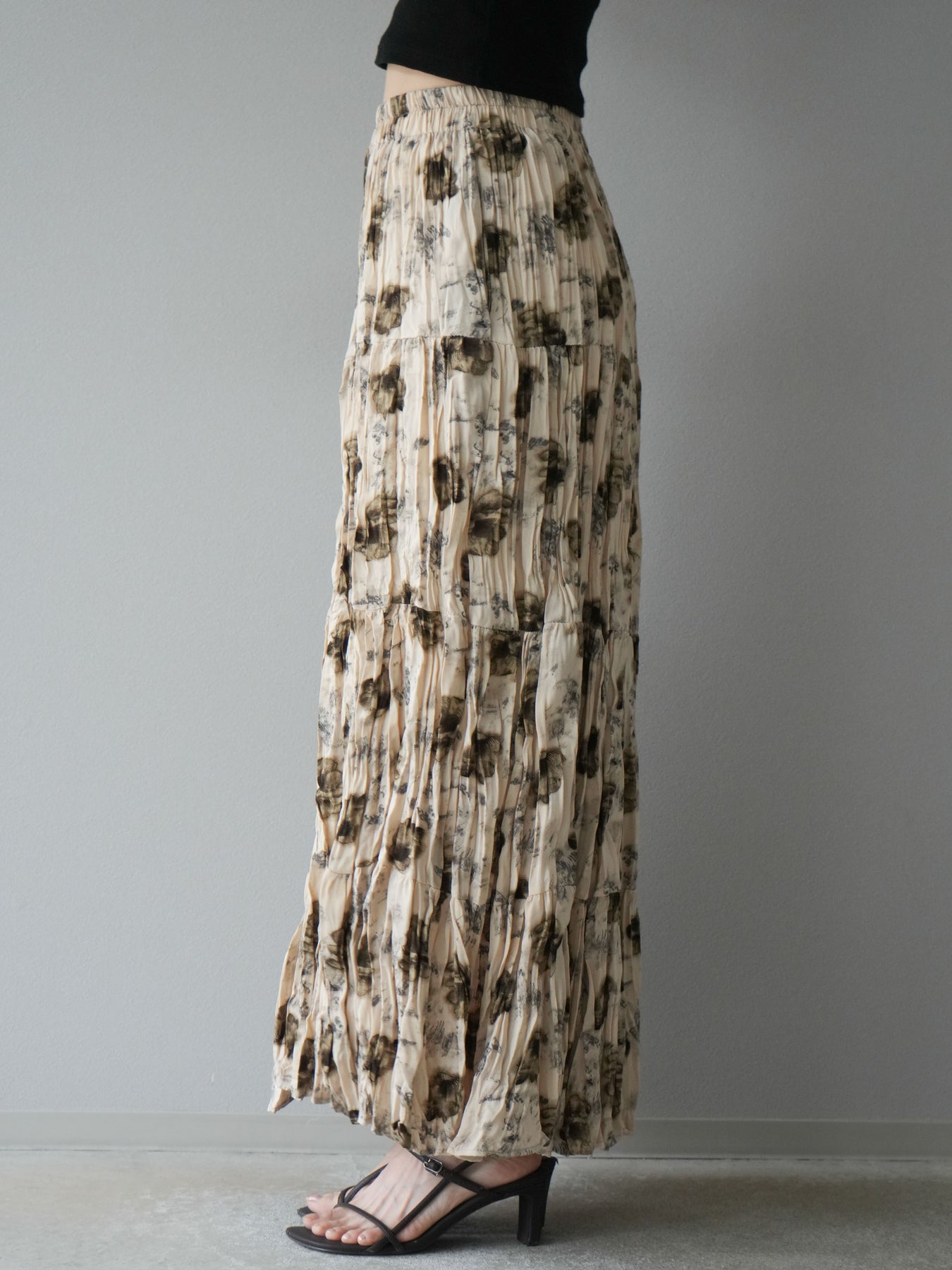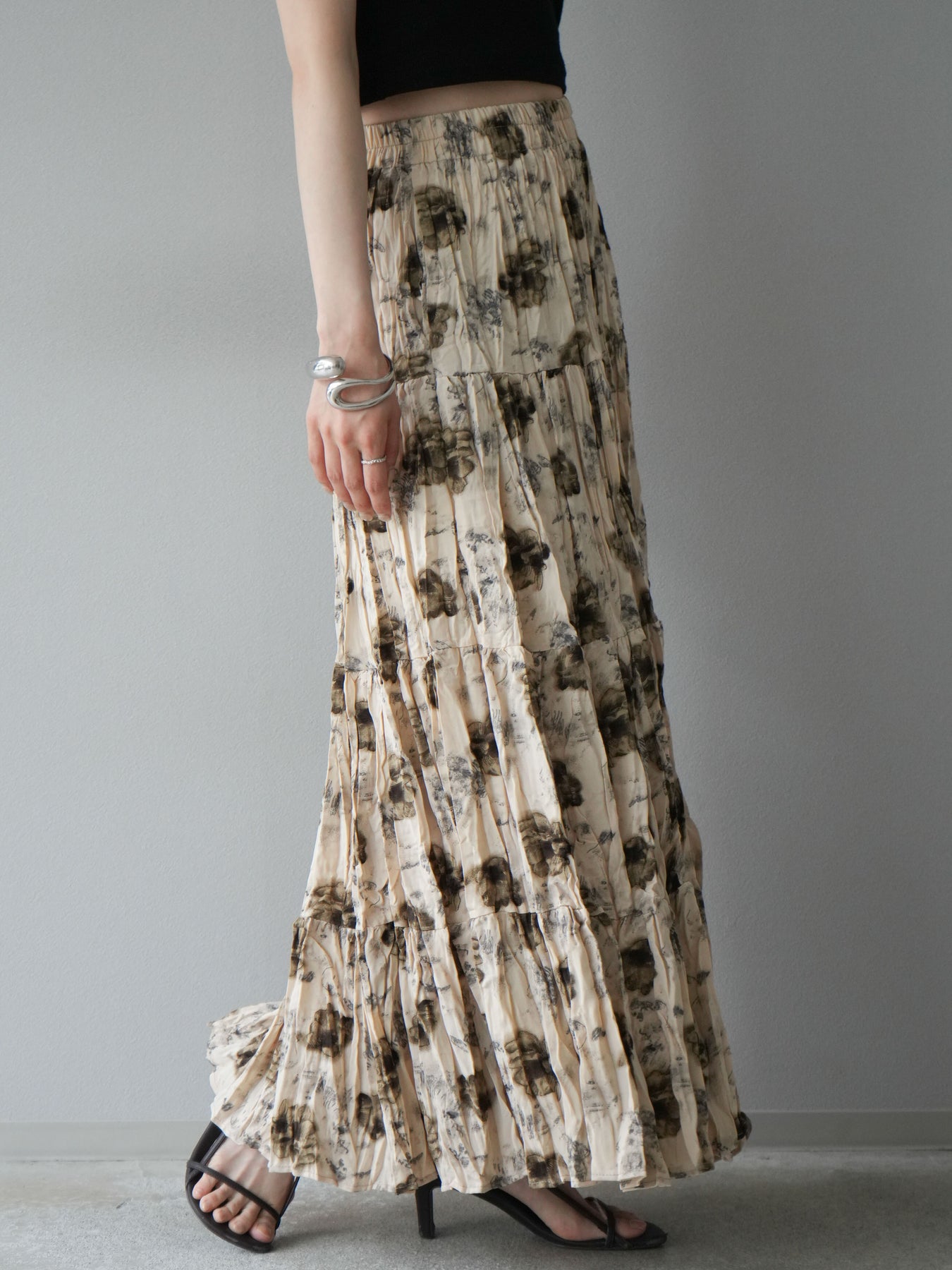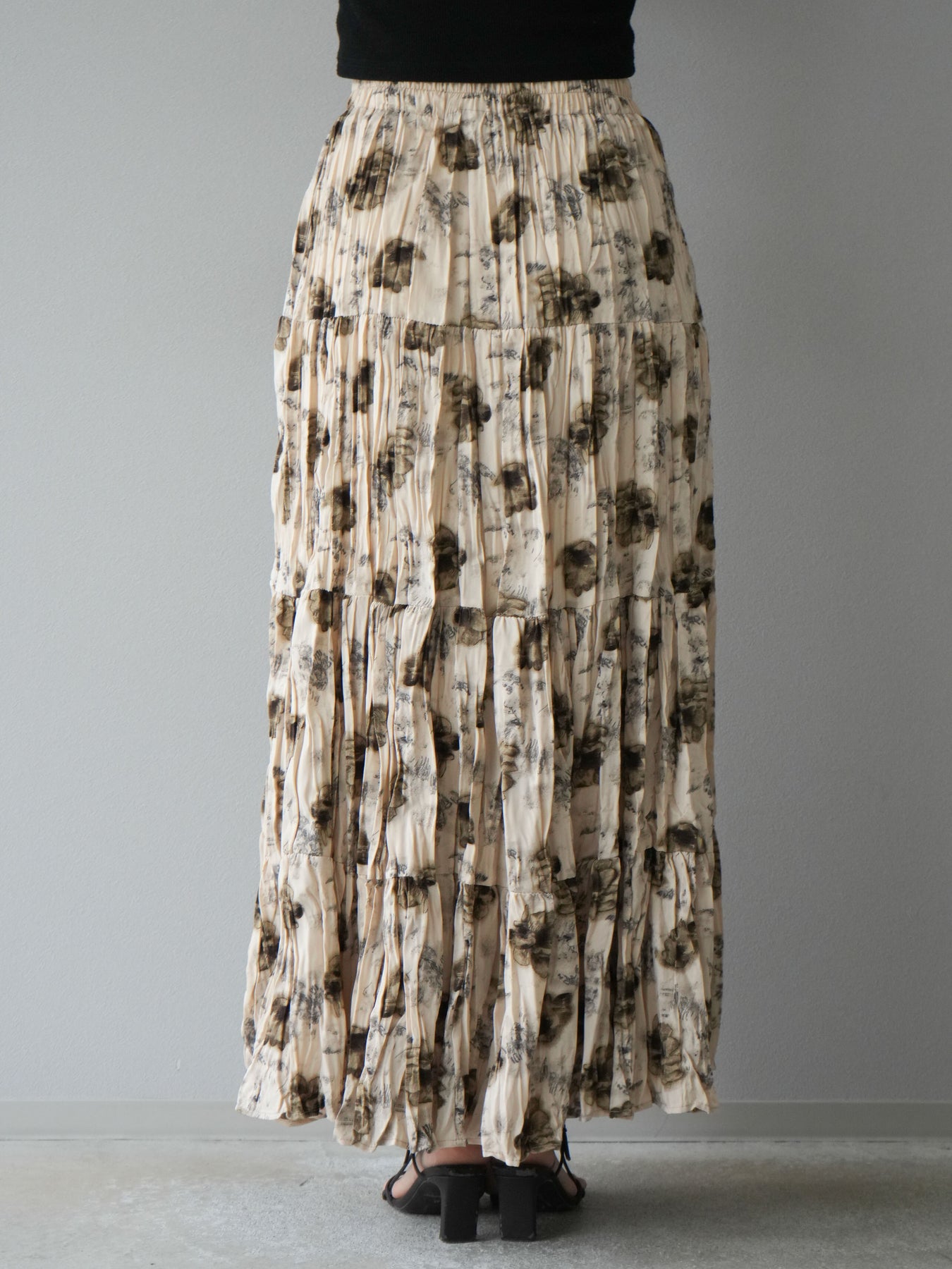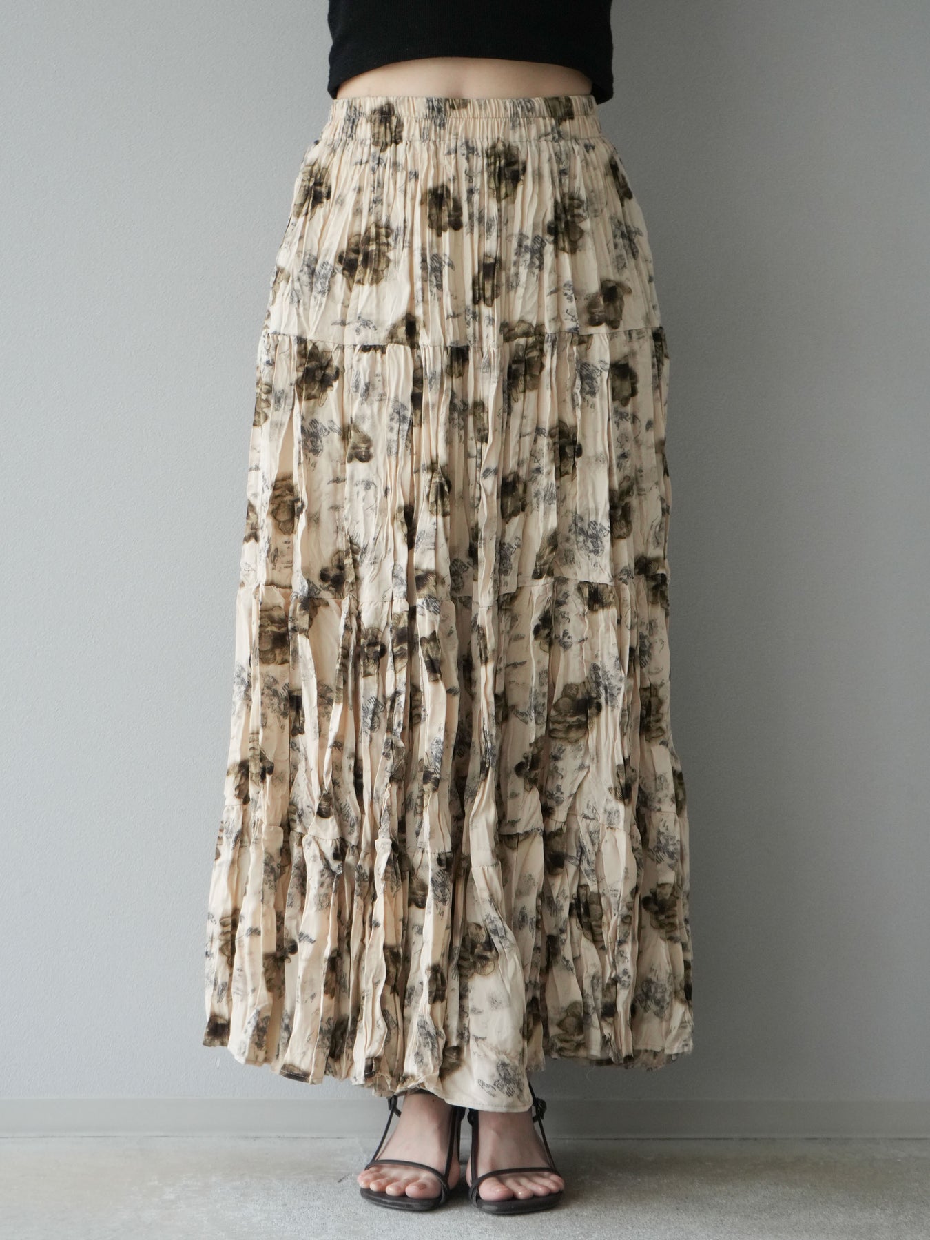 [予約]フラワーワッシャーロングスカート/ベージュ