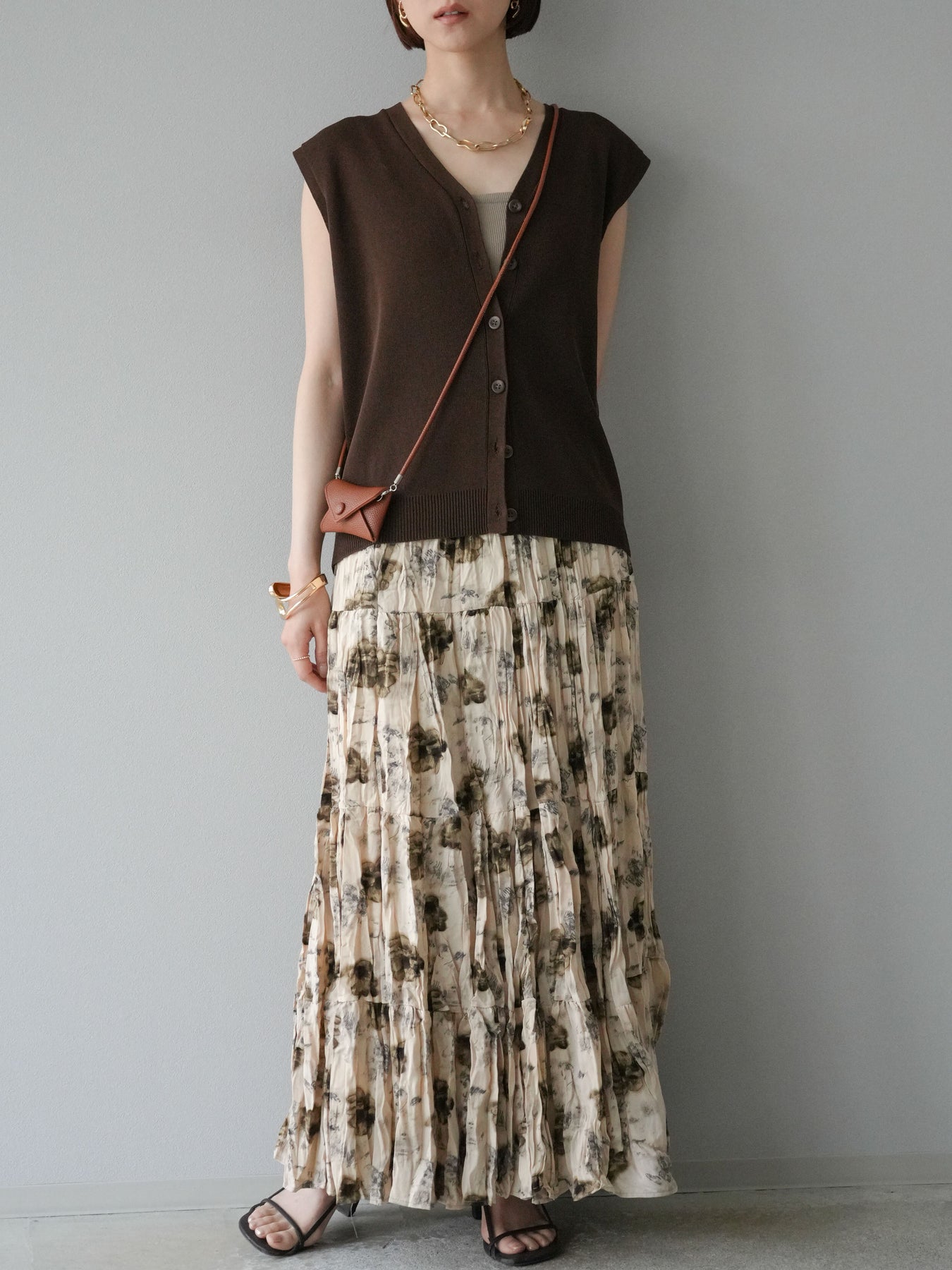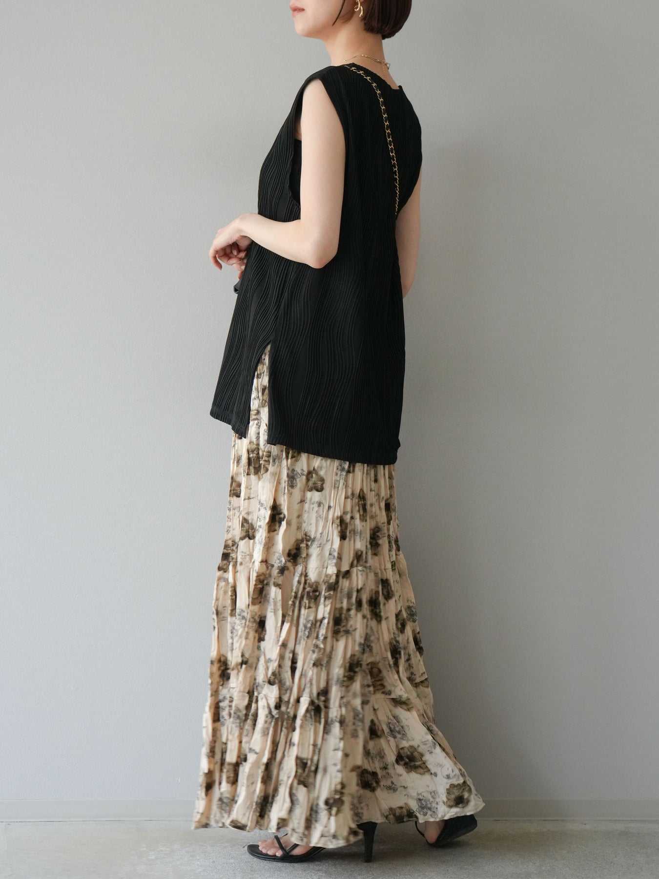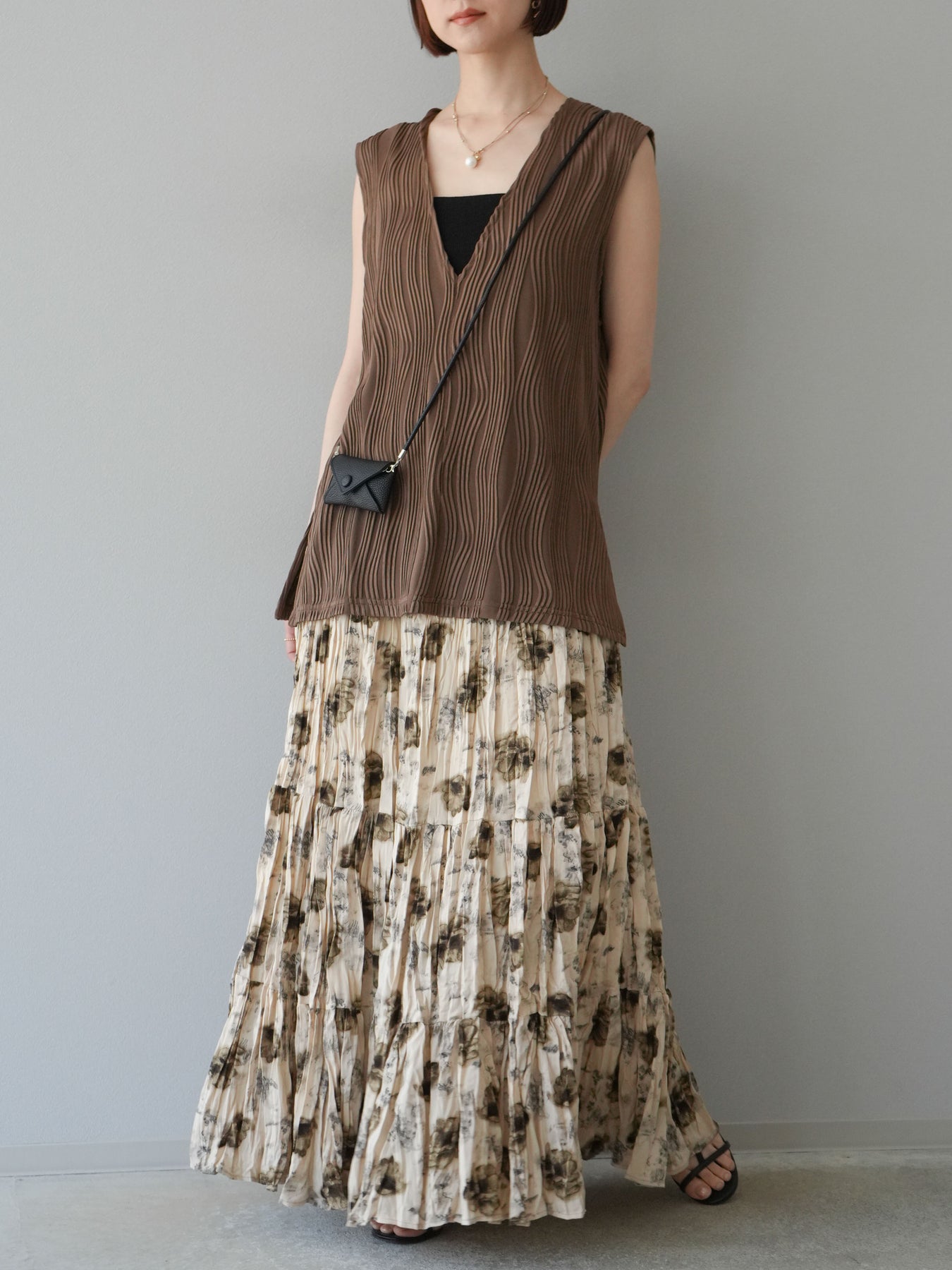[予約]フラワーワッシャーロングスカート/ベージュ