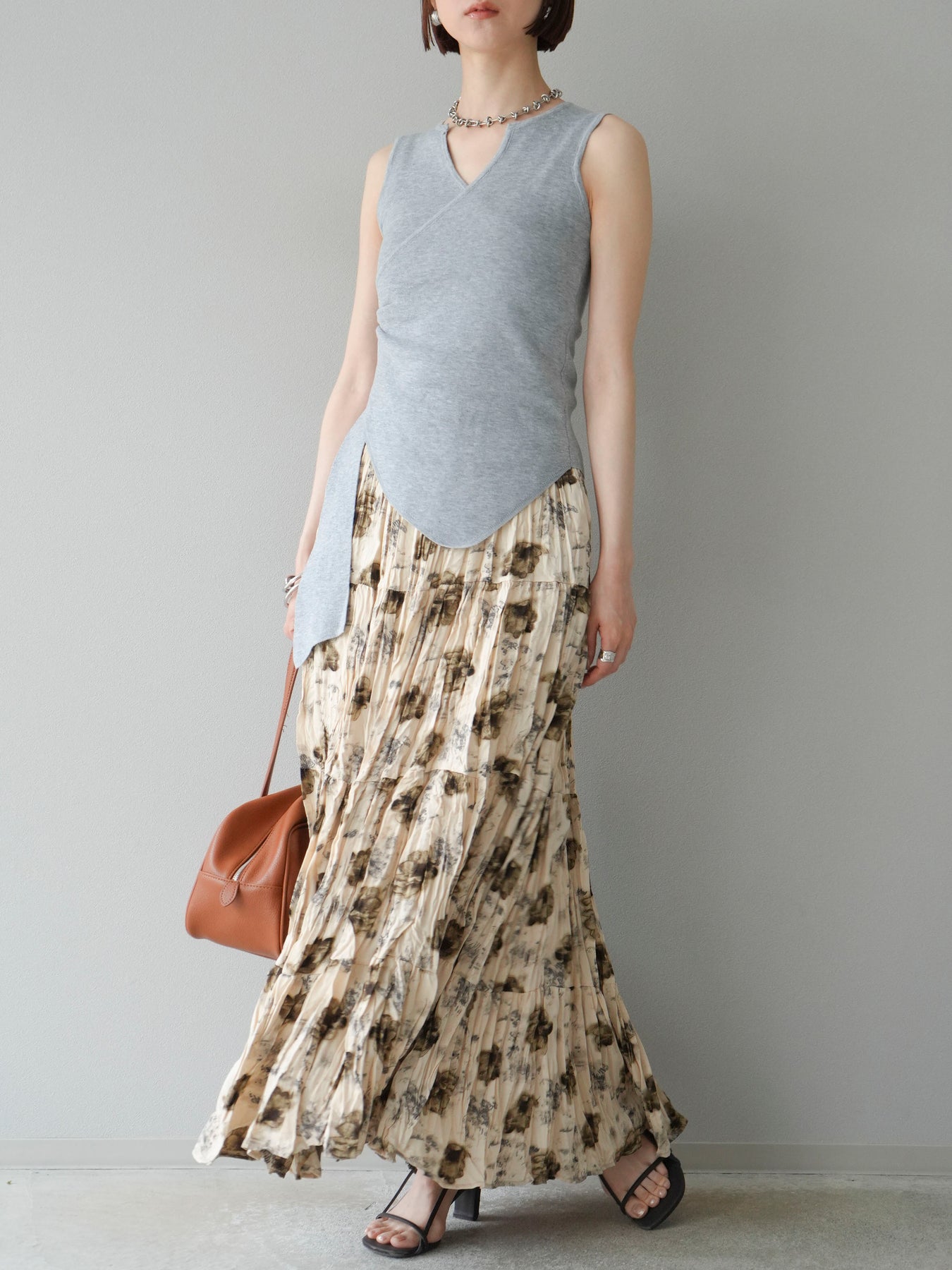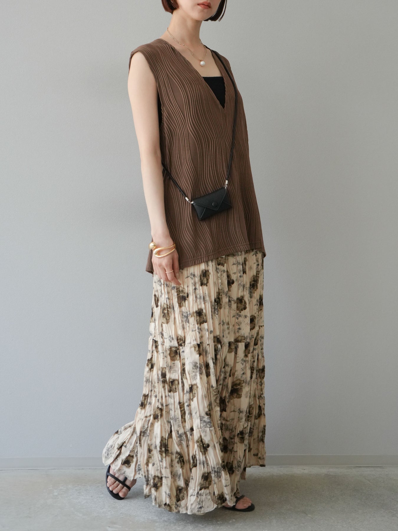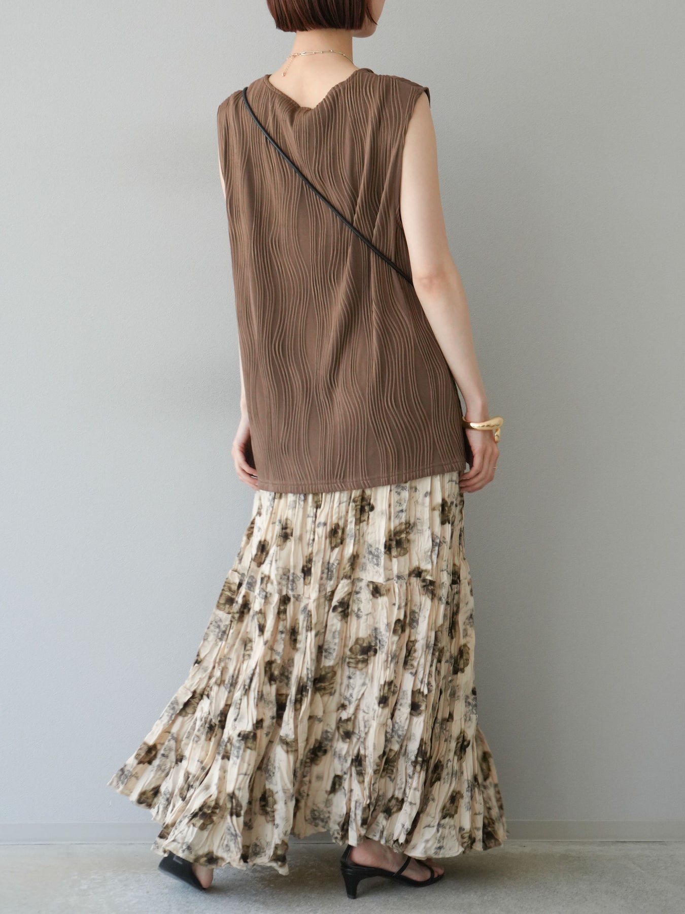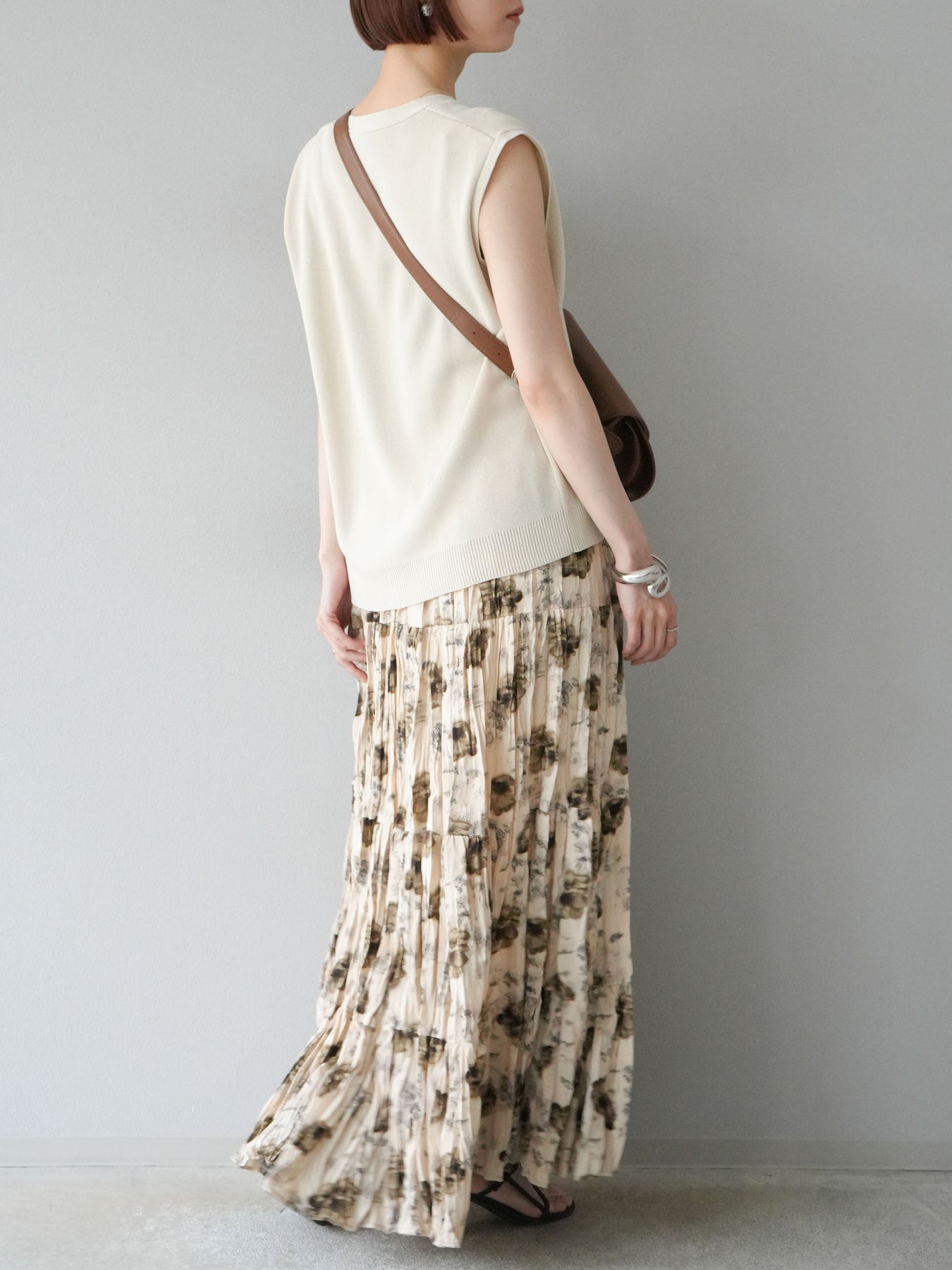[予約]フラワーワッシャーロングスカート/ベージュ