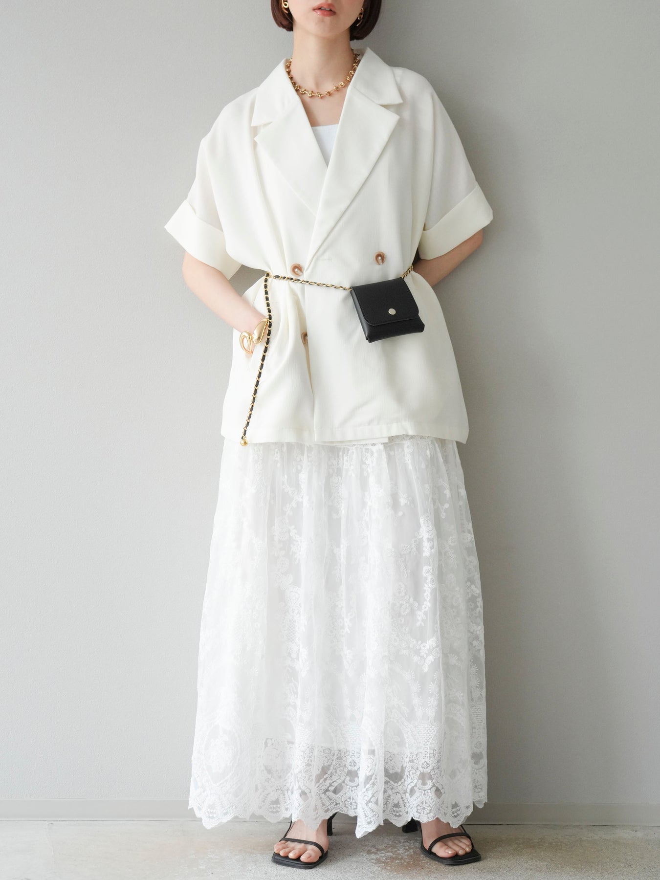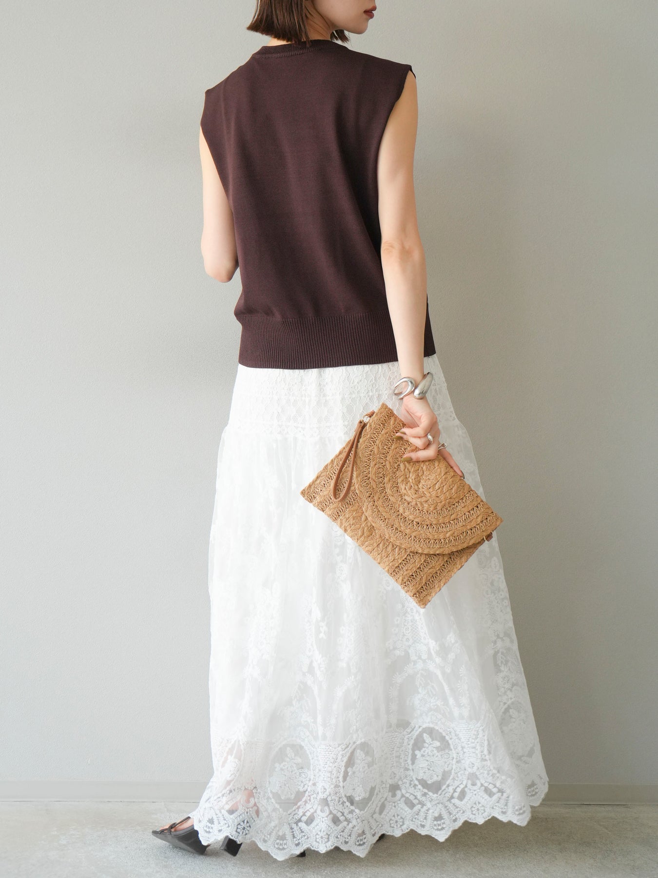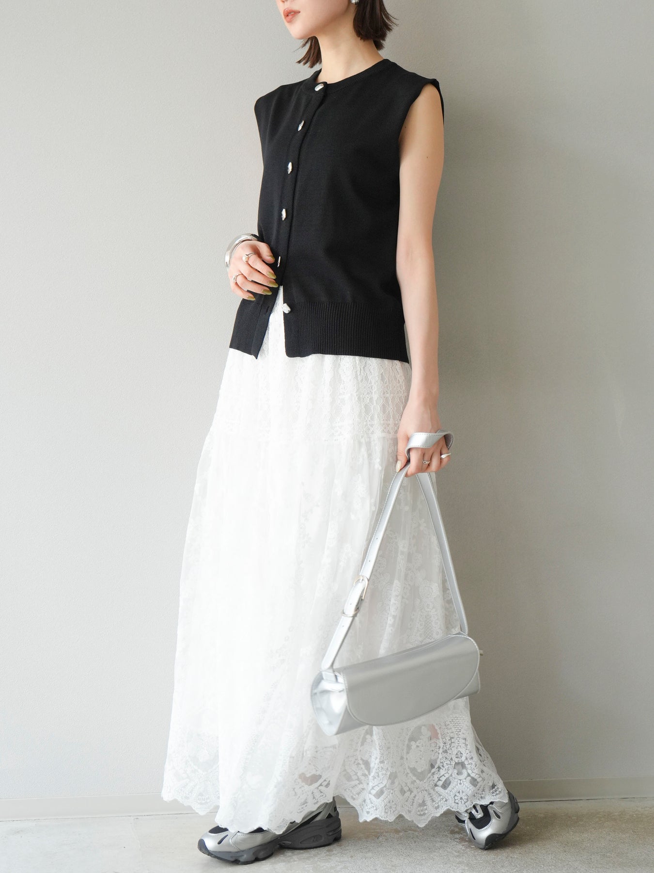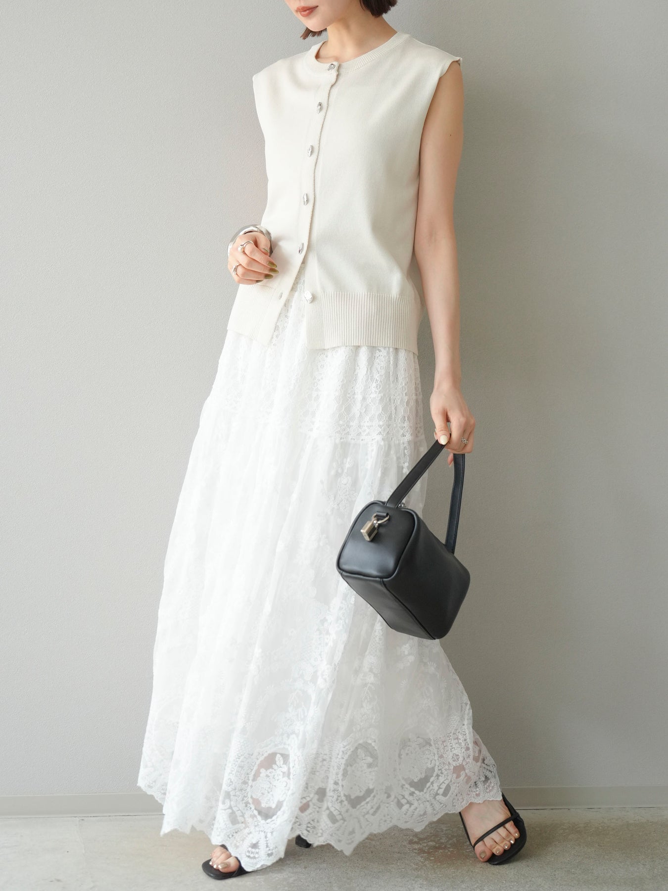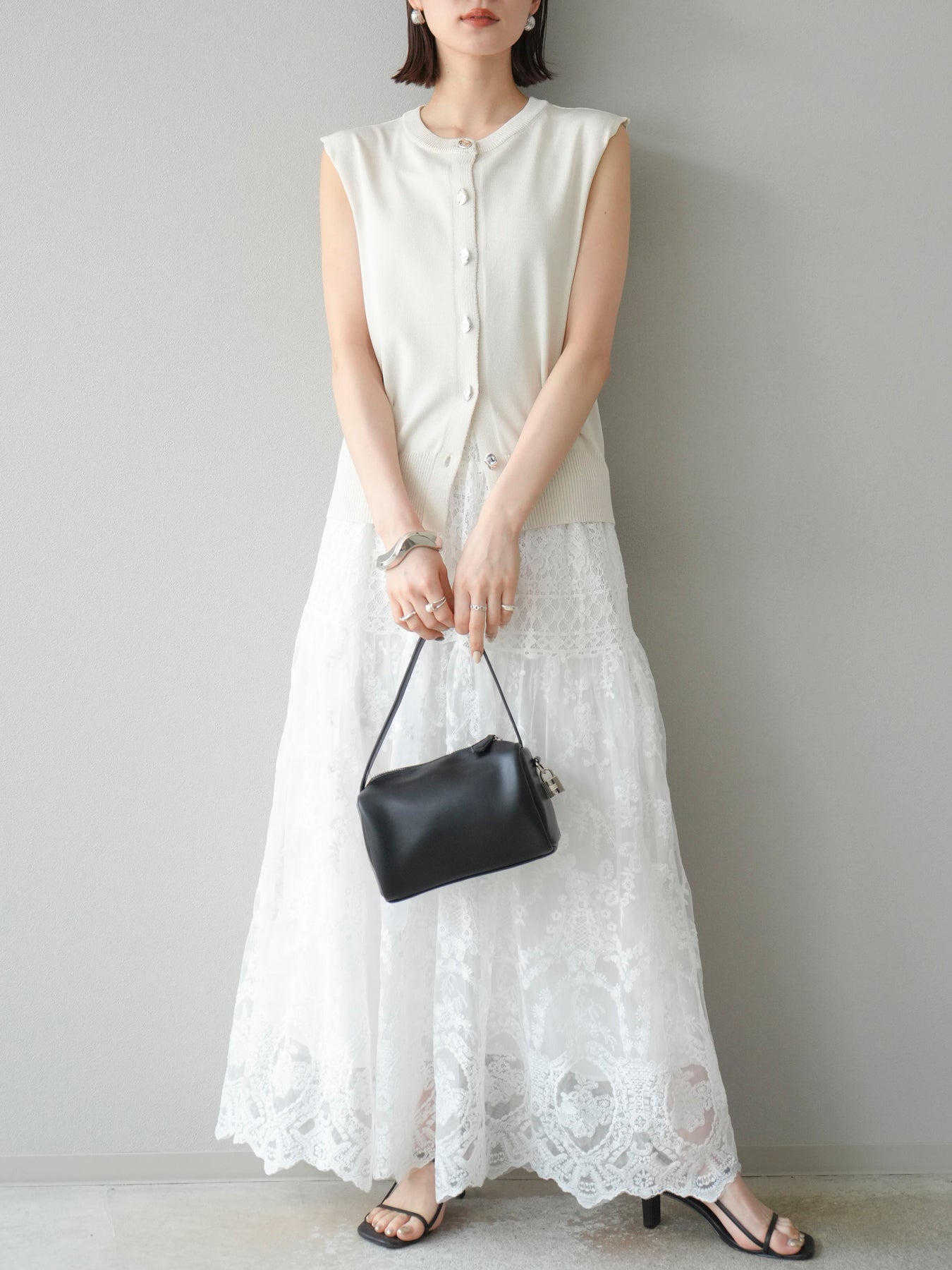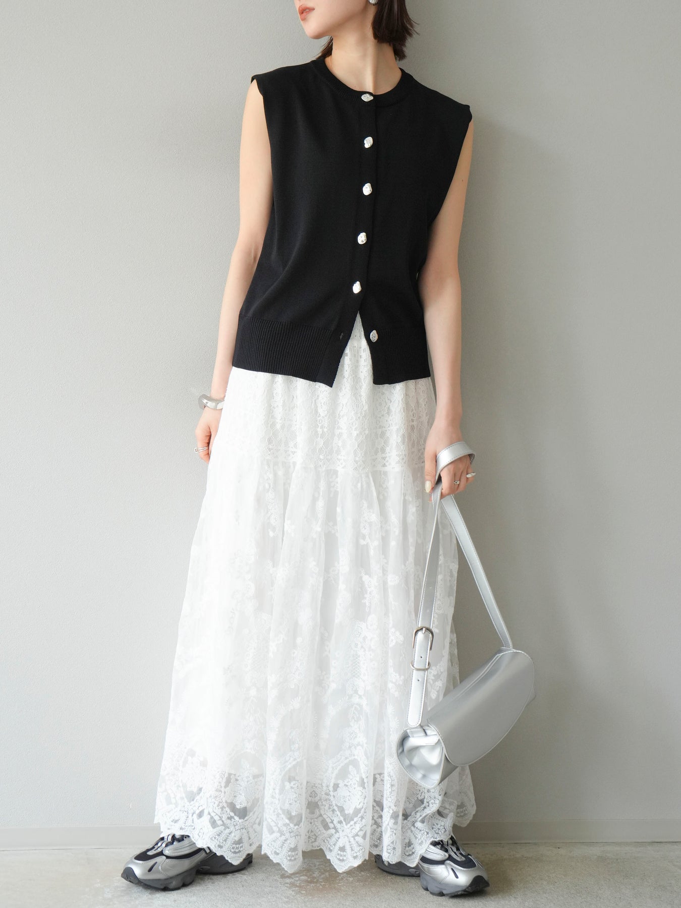 華やかで繊細なレースが贅沢に施された、エレガントな印象のフレアスカート。 裾にかけて広がるボリューム感と透け感が、歩くたびにふんわりと揺れて軽やかな女性らしさを演出します。 上品なレース柄と程よい光沢感がありながらも、ウエストゴム仕様で着心地はリラクシー。 裏地付きで安心して着用でき、Tシャツやシンプルなトップスと合わせるだけでスタイリングが完成します。 カジュアルな抜け感にも、きれいめなドレッシーさにも対応できる万能な一枚。 デイリーからオケージョンまで、幅広く活躍する主役級スカートです。