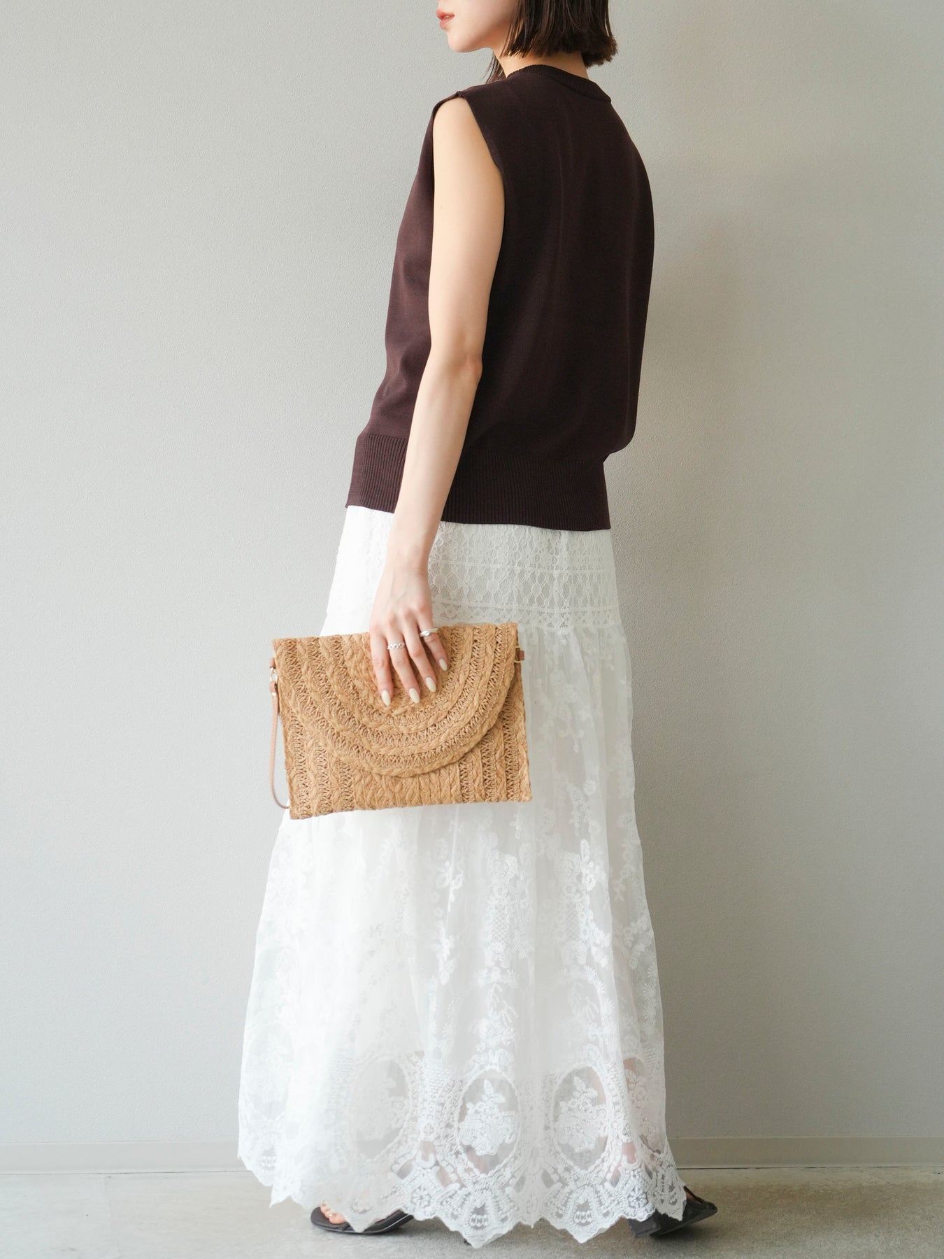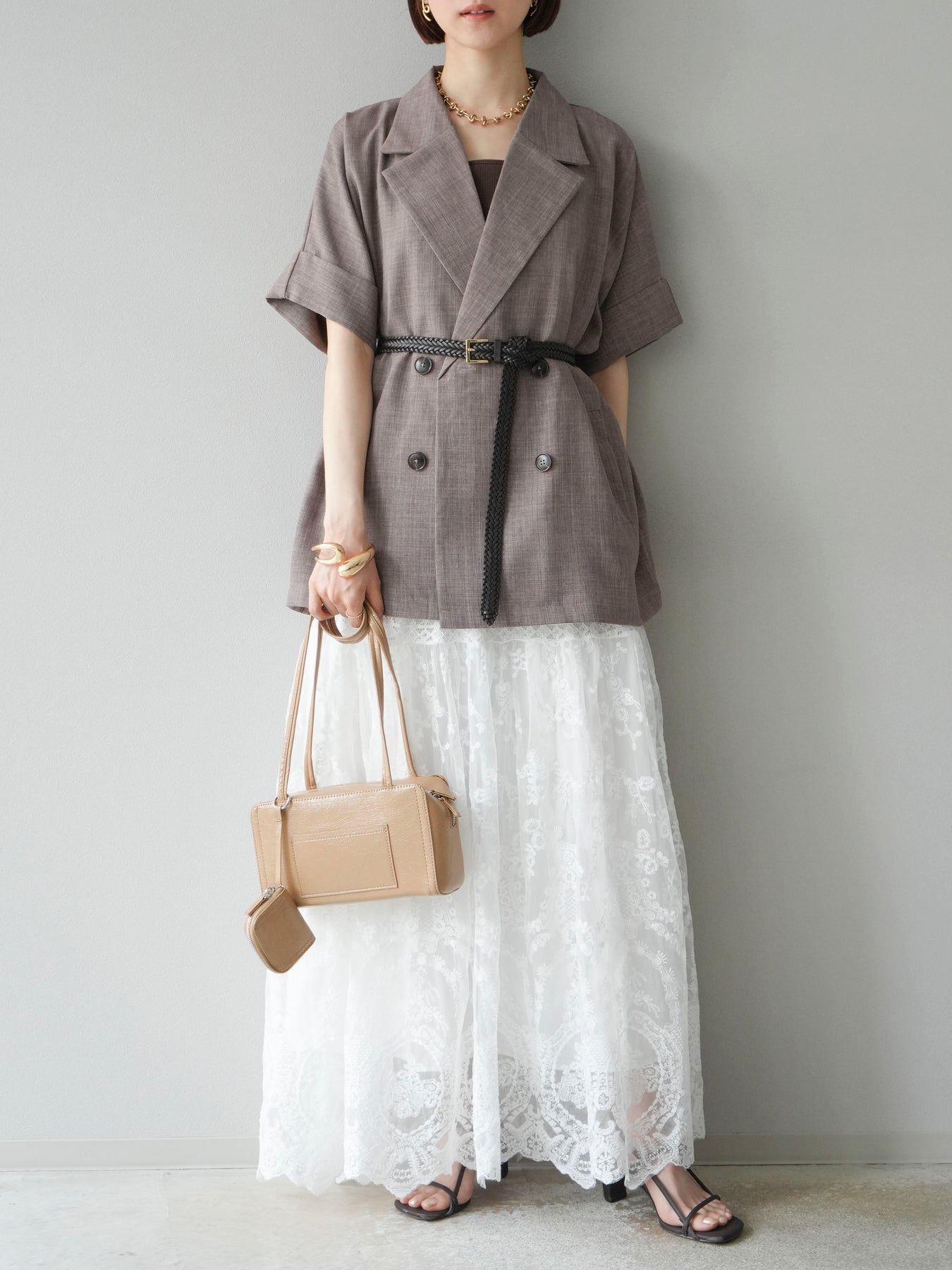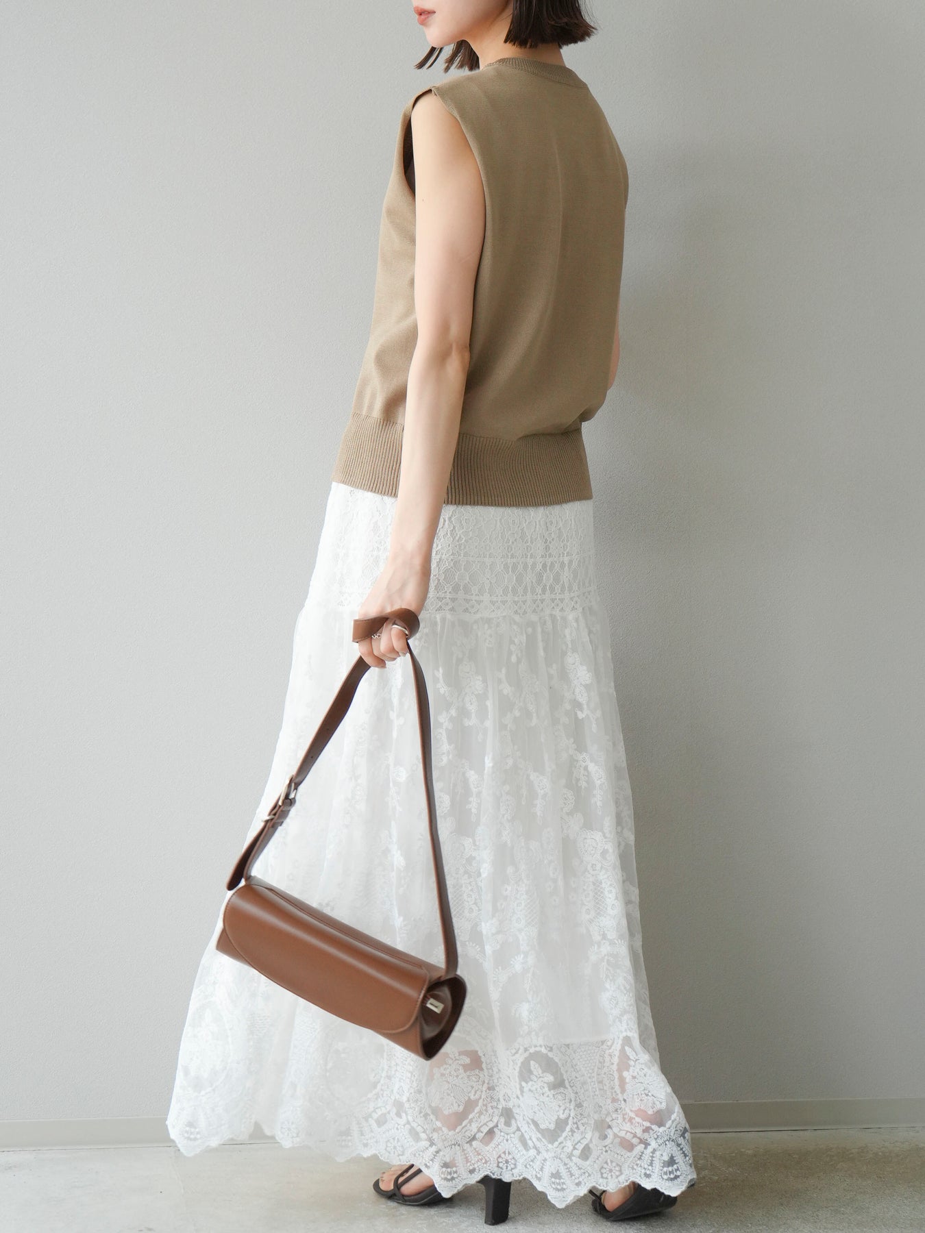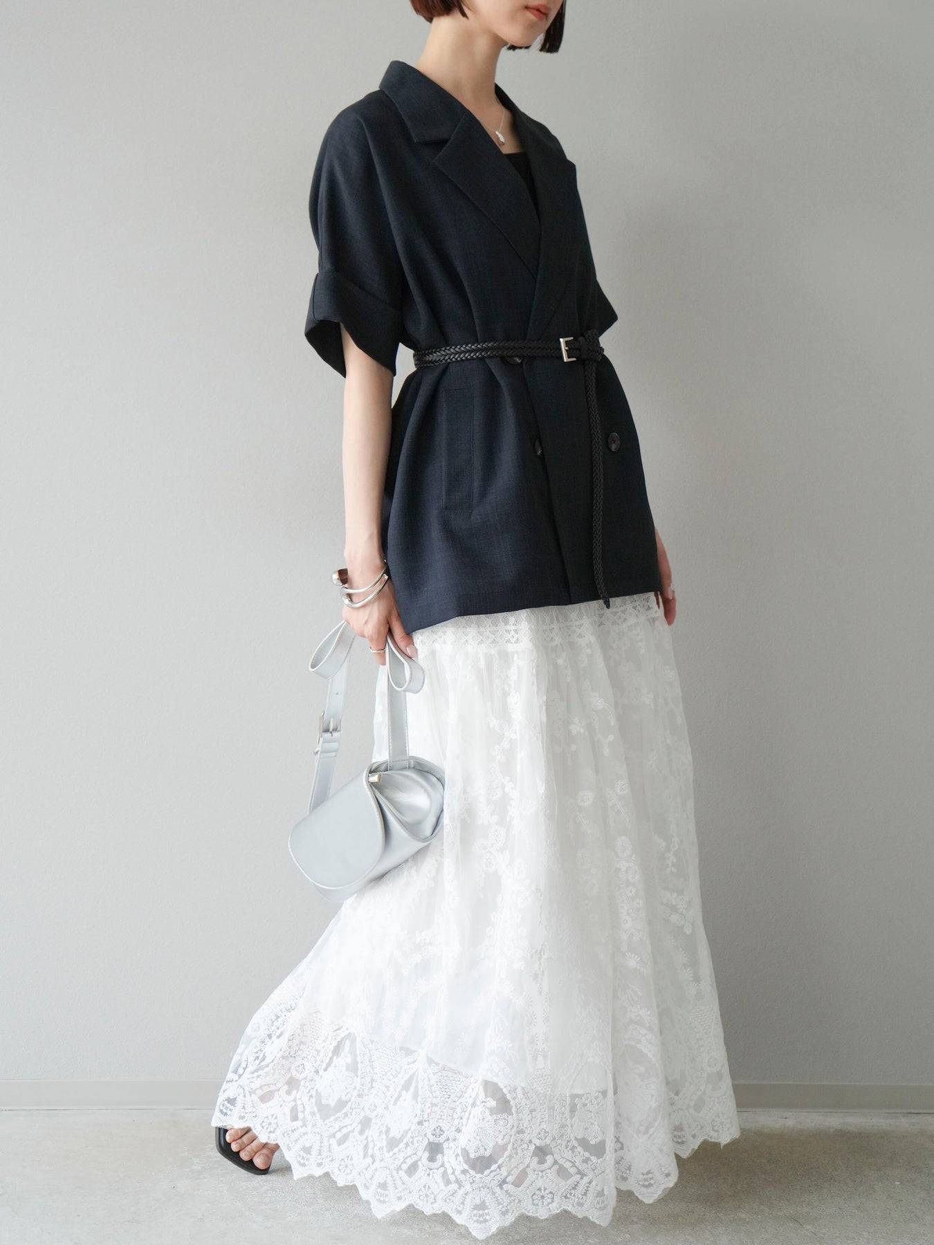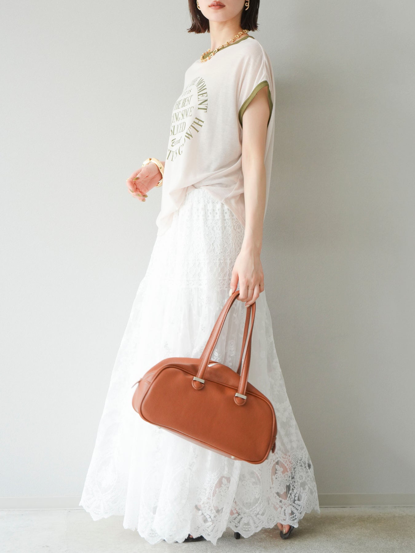 華やかで繊細なレースが贅沢に施された、エレガントな印象のフレアスカート。 裾にかけて広がるボリューム感と透け感が、歩くたびにふんわりと揺れて軽やかな女性らしさを演出します。 上品なレース柄と程よい光沢感がありながらも、ウエストゴム仕様で着心地はリラクシー。 裏地付きで安心して着用でき、Tシャツやシンプルなトップスと合わせるだけでスタイリングが完成します。 カジュアルな抜け感にも、きれいめなドレッシーさにも対応できる万能な一枚。 デイリーからオケージョンまで、幅広く活躍する主役級スカートです。