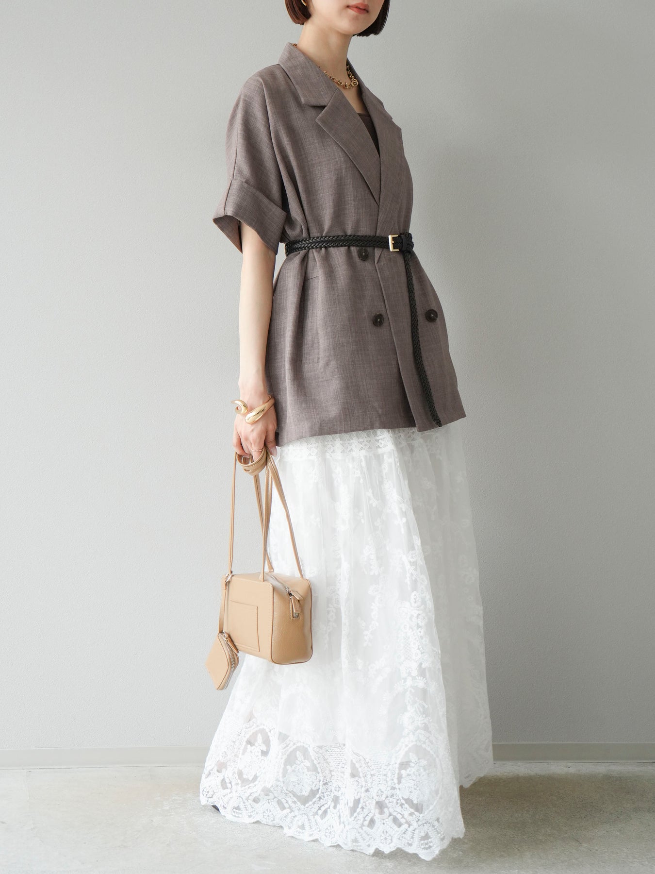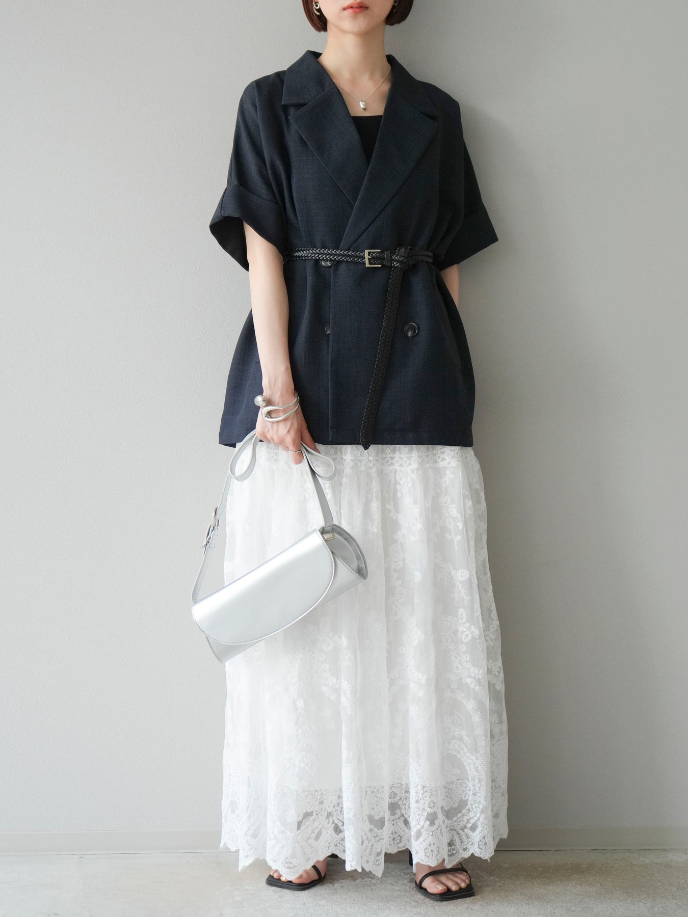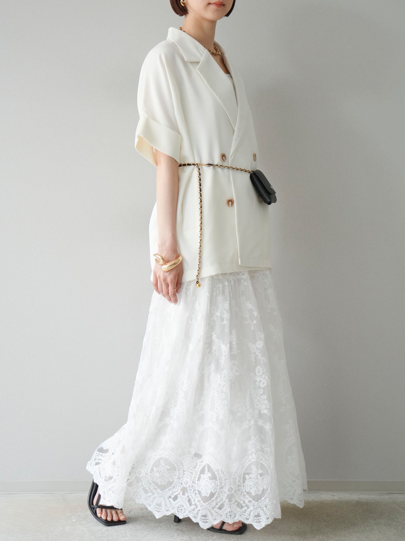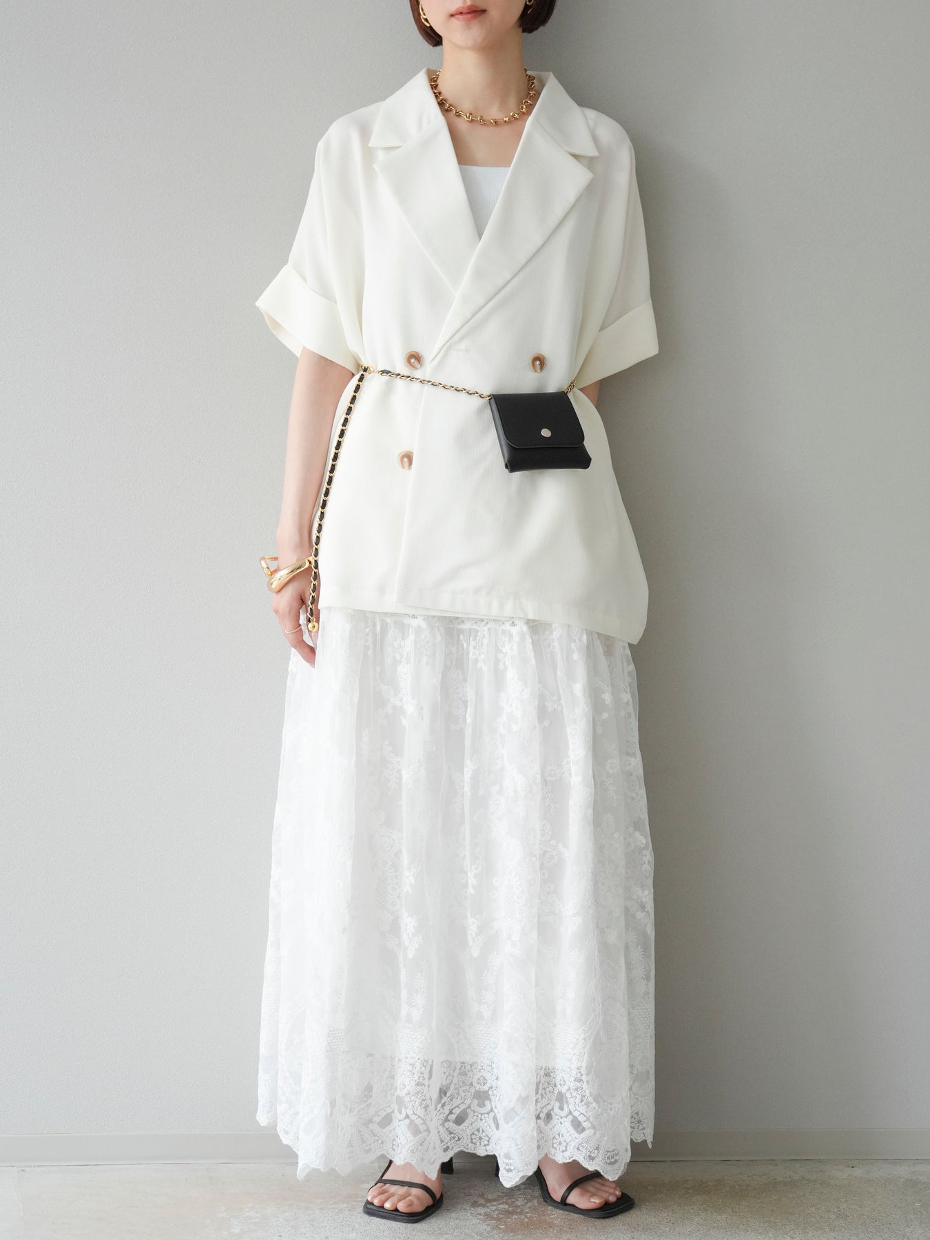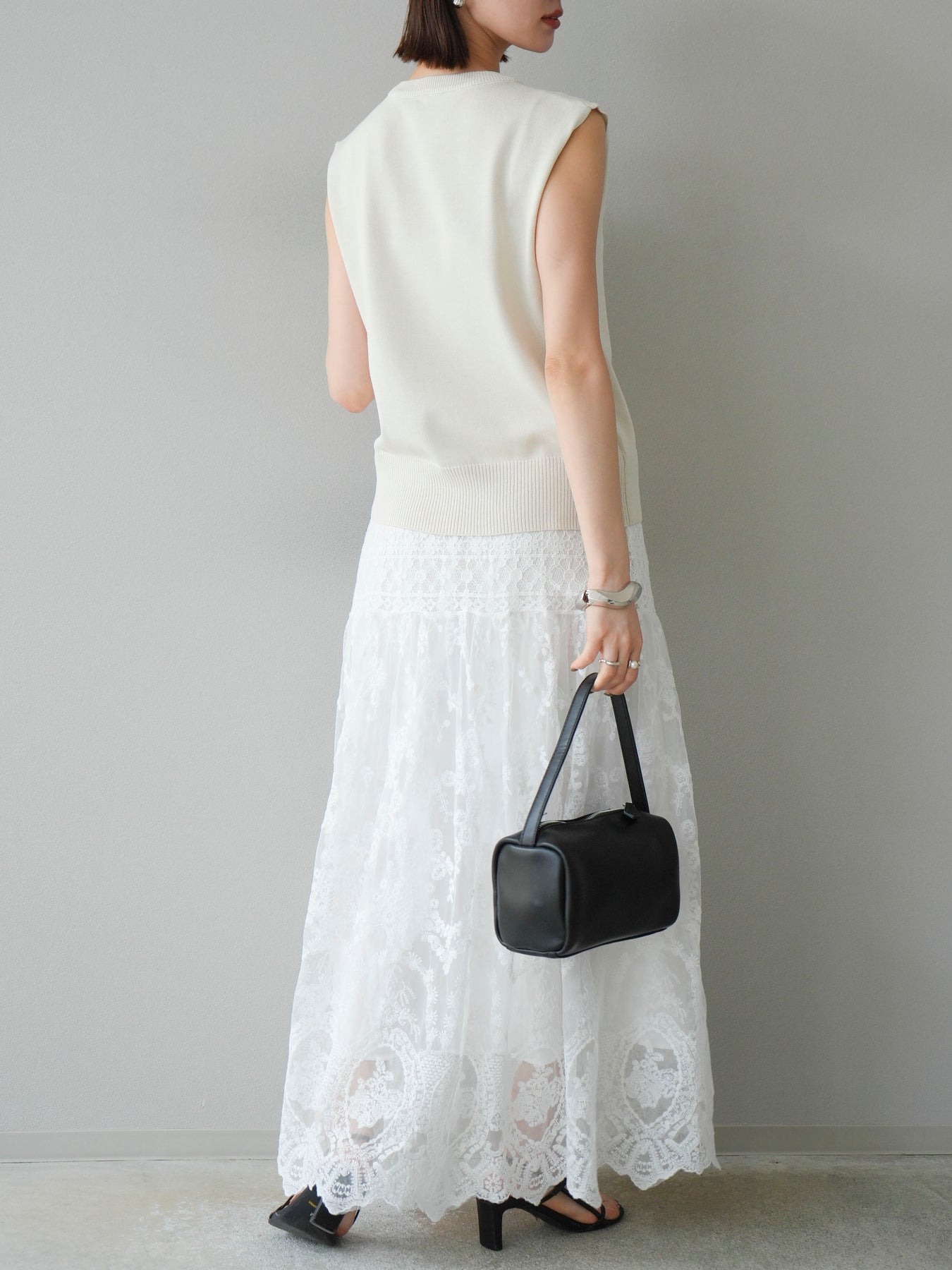 華やかで繊細なレースが贅沢に施された、エレガントな印象のフレアスカート。 裾にかけて広がるボリューム感と透け感が、歩くたびにふんわりと揺れて軽やかな女性らしさを演出します。 上品なレース柄と程よい光沢感がありながらも、ウエストゴム仕様で着心地はリラクシー。 裏地付きで安心して着用でき、Tシャツやシンプルなトップスと合わせるだけでスタイリングが完成します。 カジュアルな抜け感にも、きれいめなドレッシーさにも対応できる万能な一枚。 デイリーからオケージョンまで、幅広く活躍する主役級スカートです。