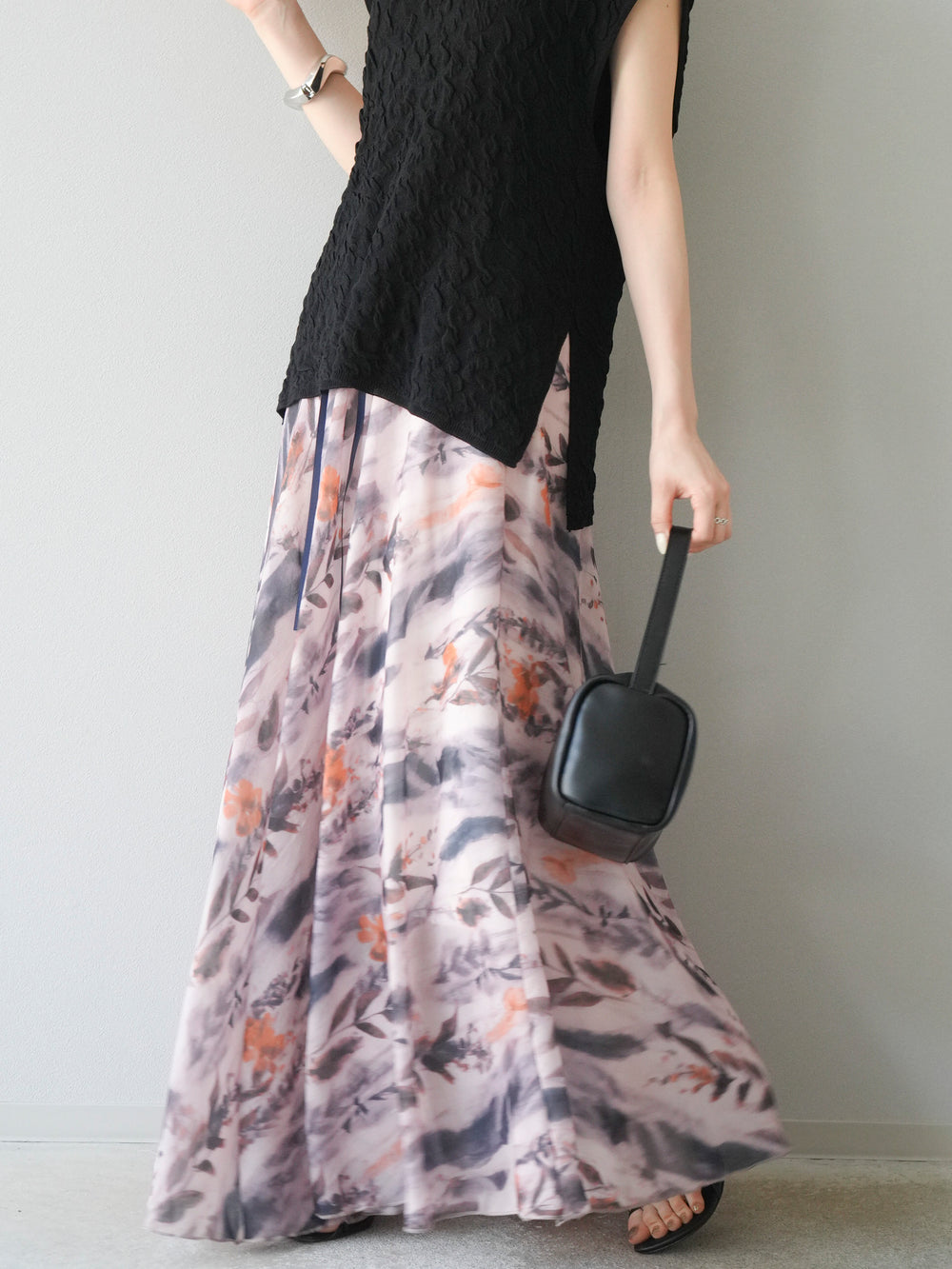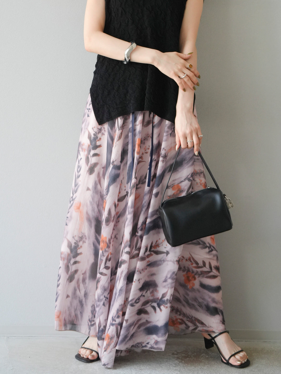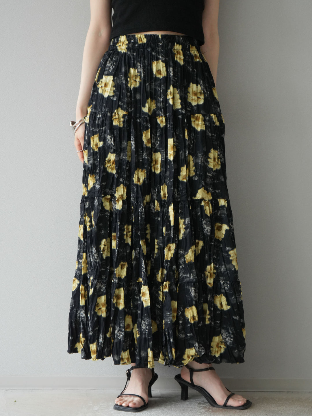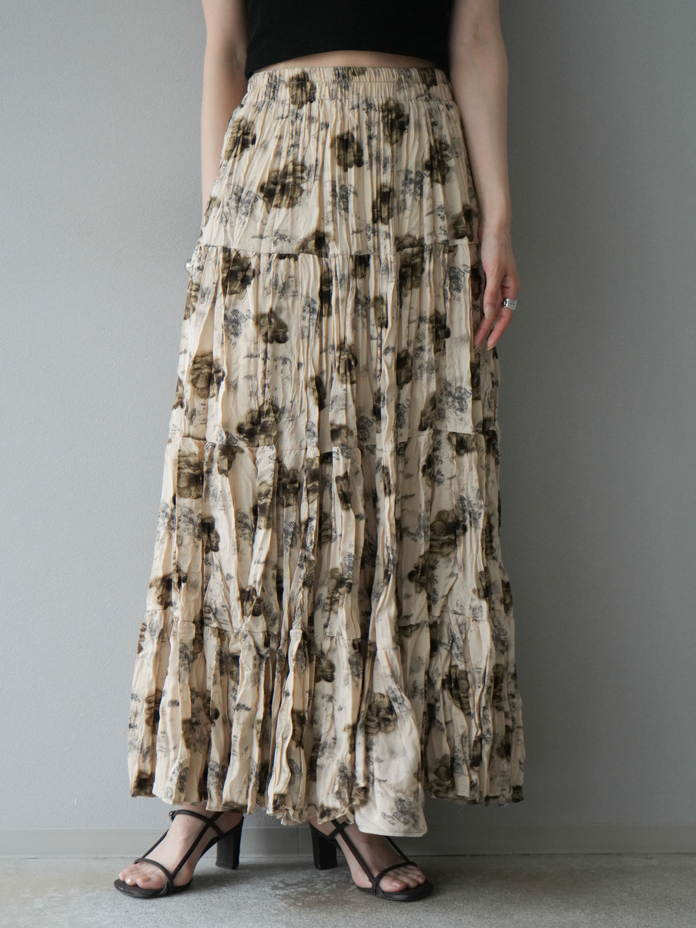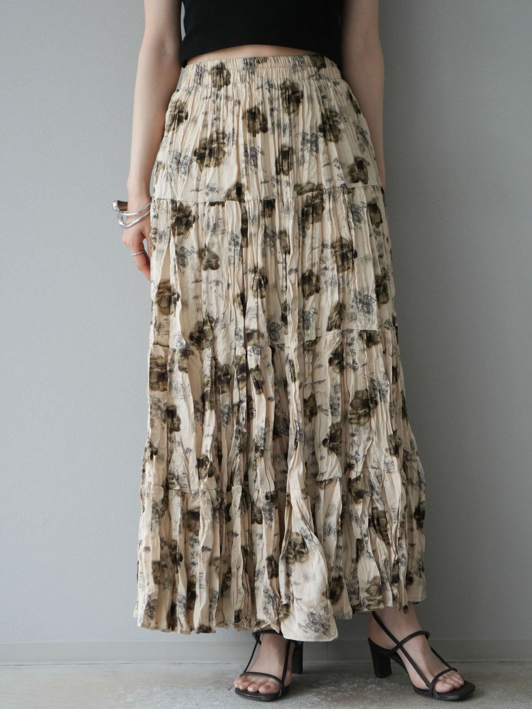[予約]フラワーワッシャーロングスカート/ベージュ