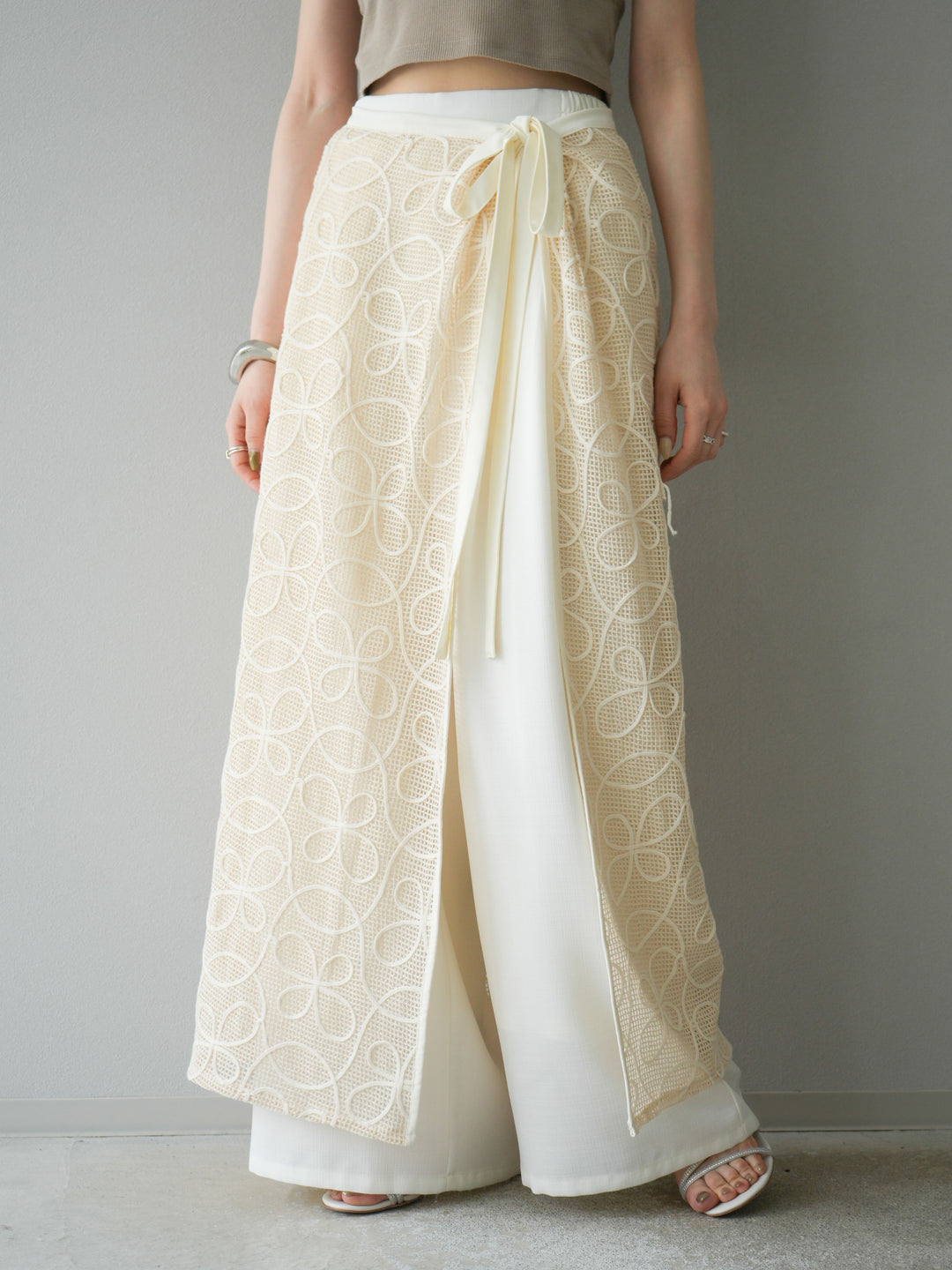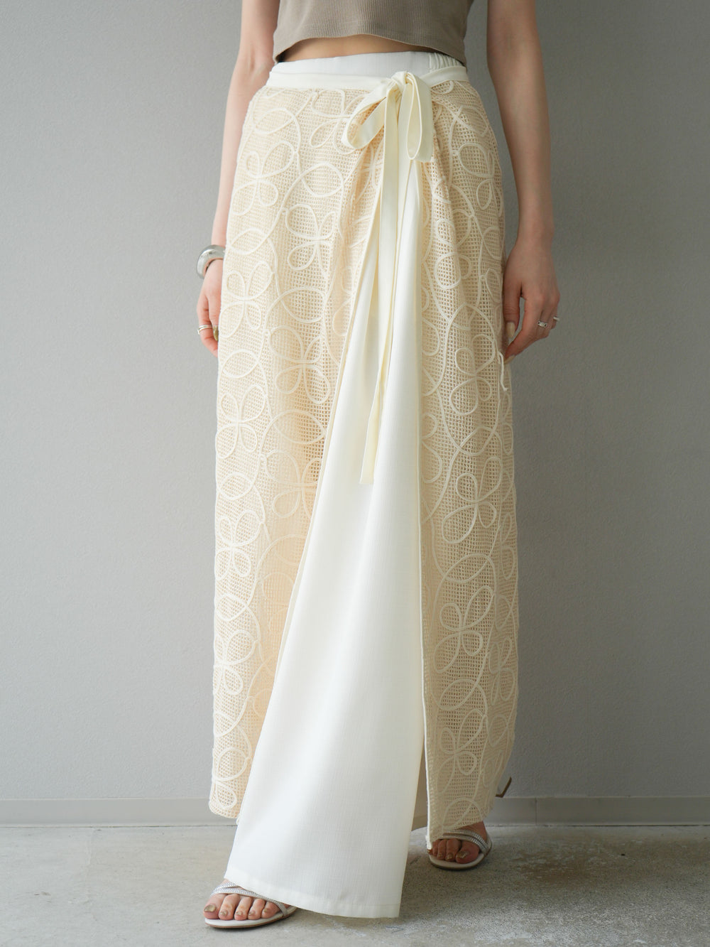 [予約]メッシュコード刺繍ラップスカート/アイボリー