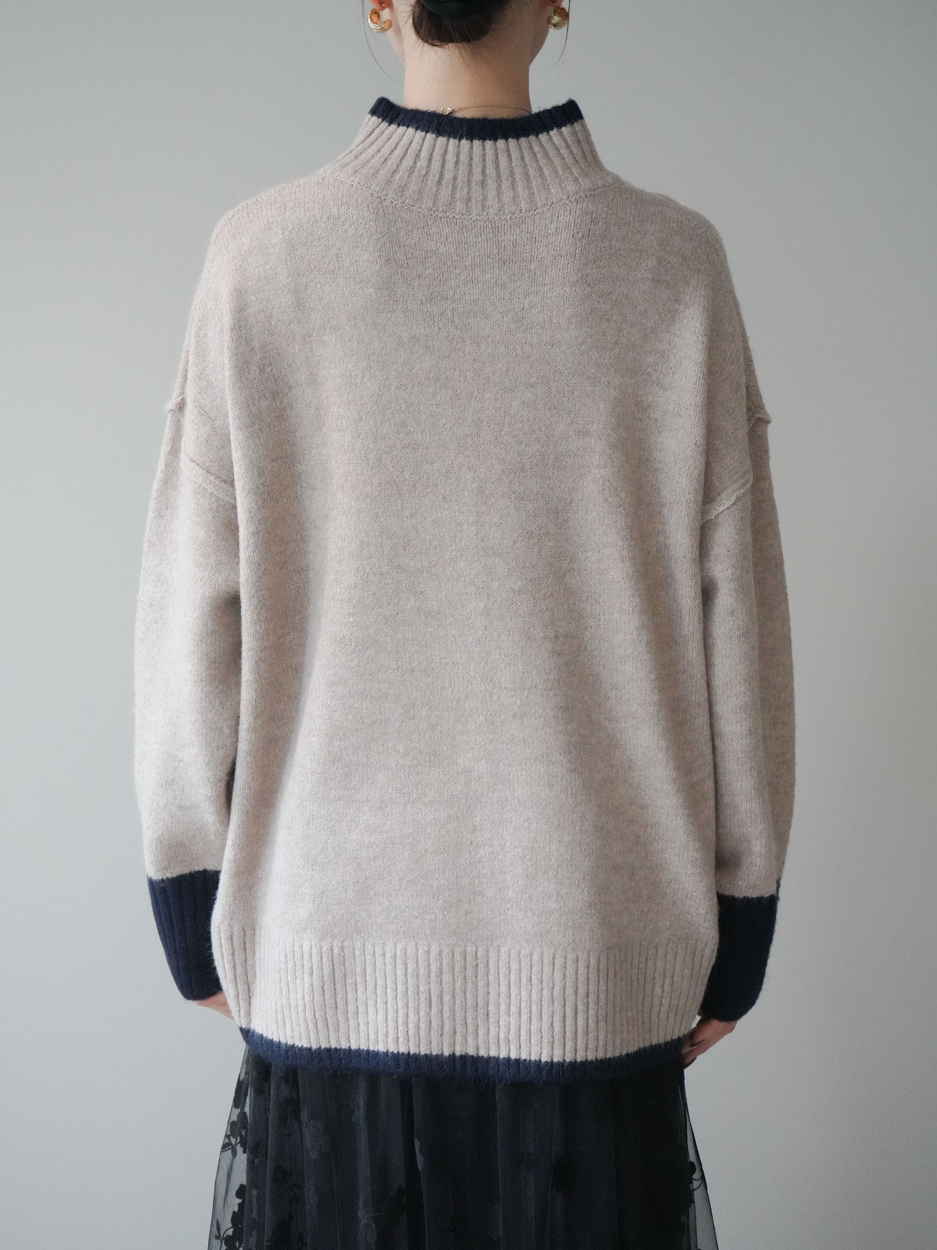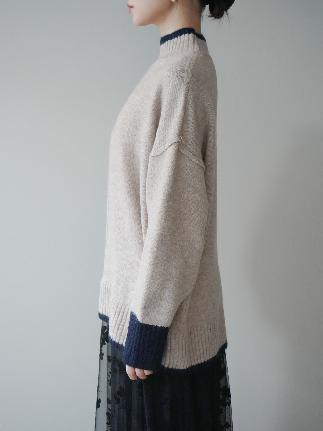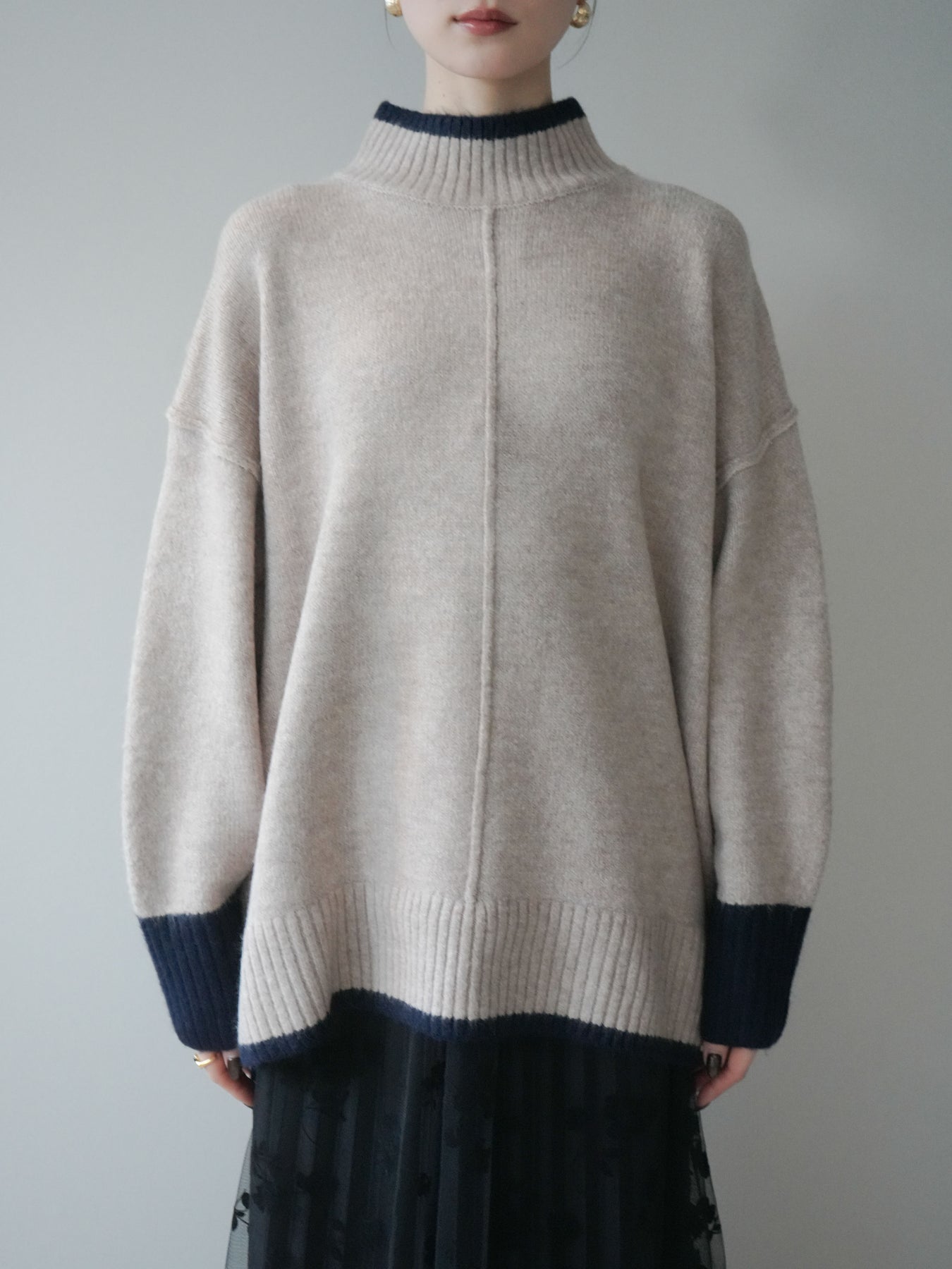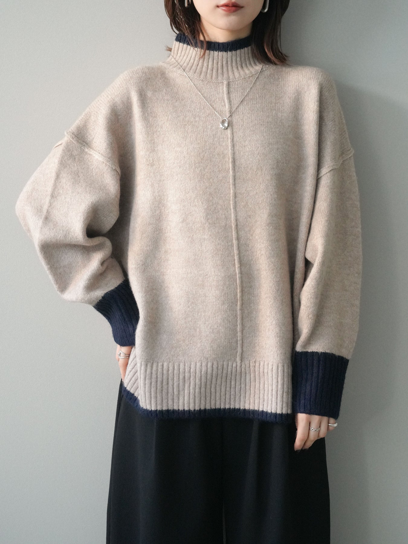 [予約]配色ハイネックニットプルオーバー/beigenavy