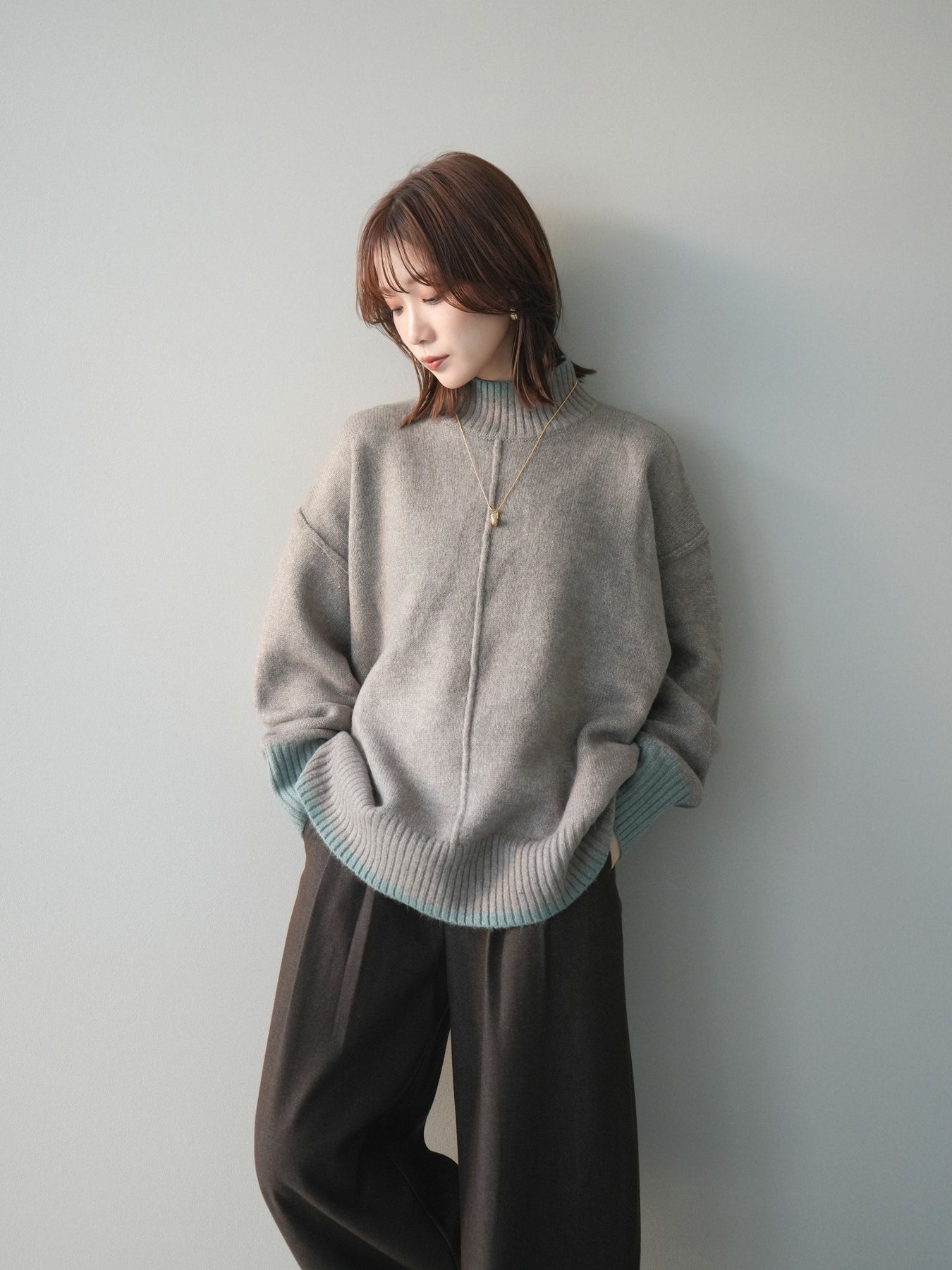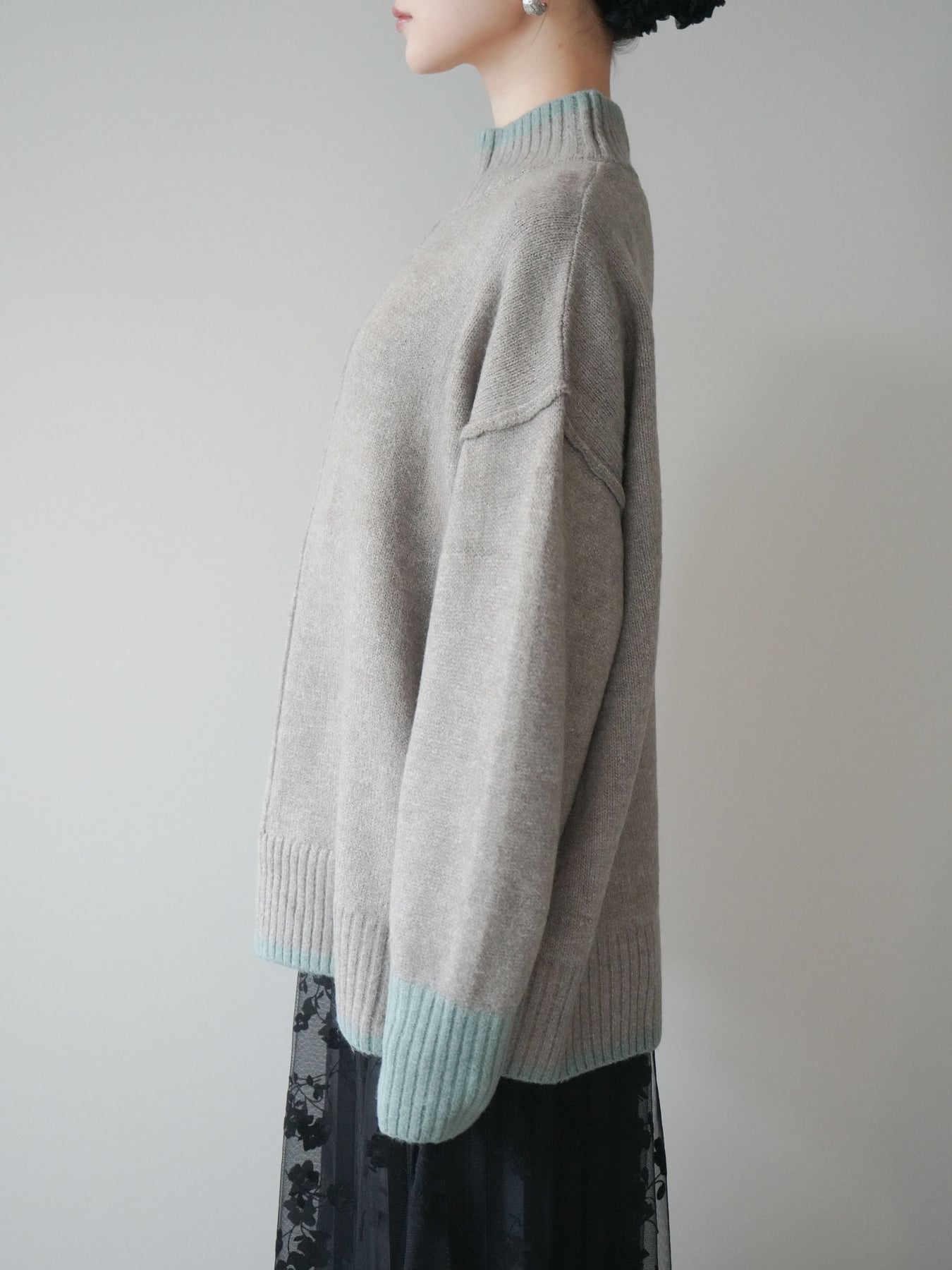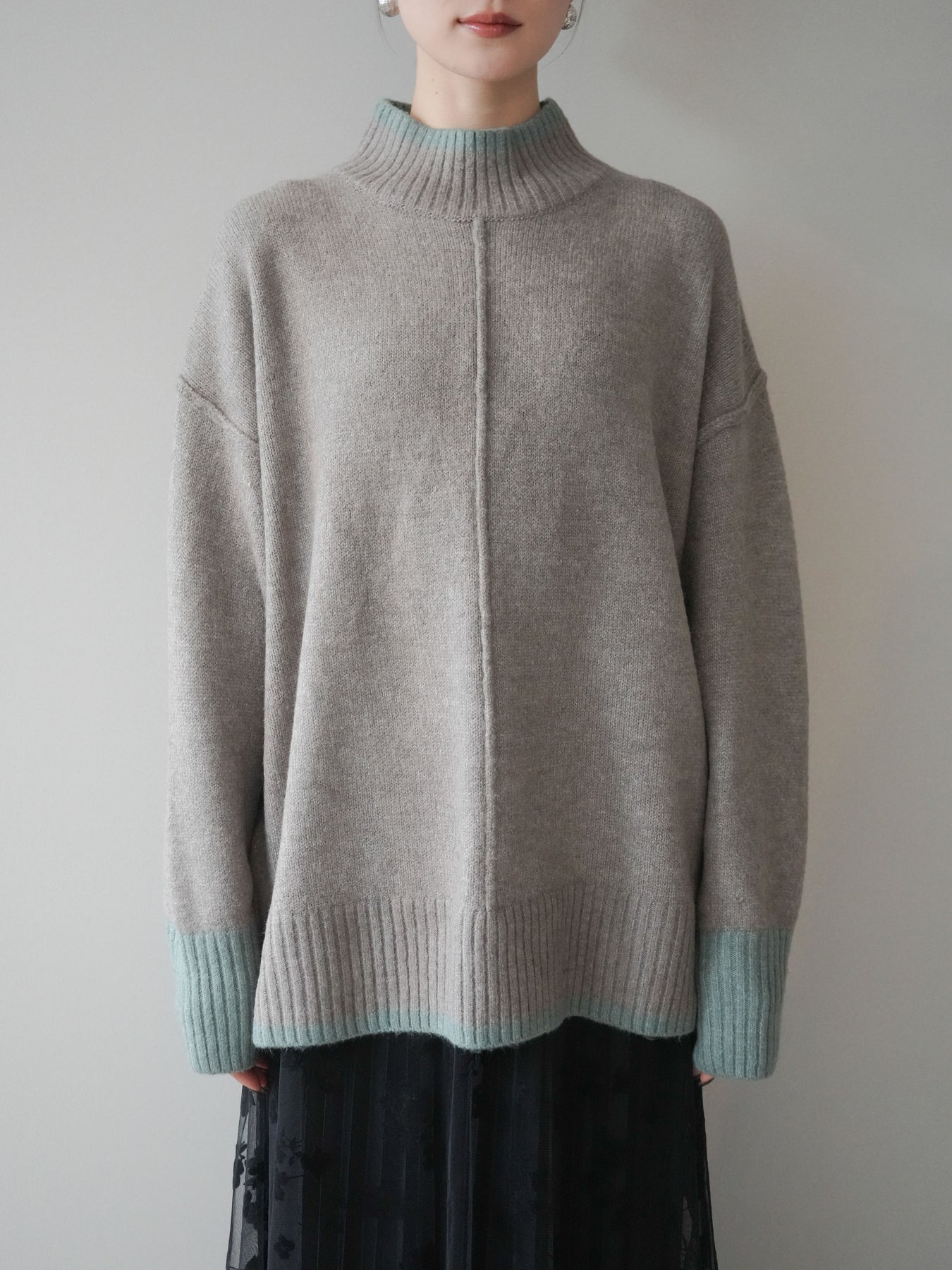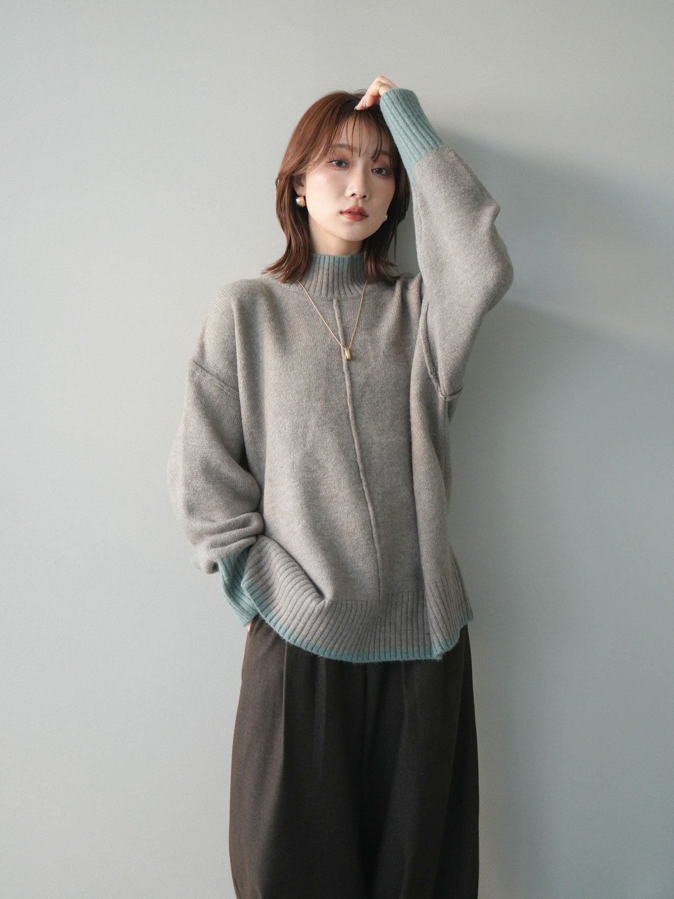 [予約]配色ハイネックニットプルオーバー/mosugraymint