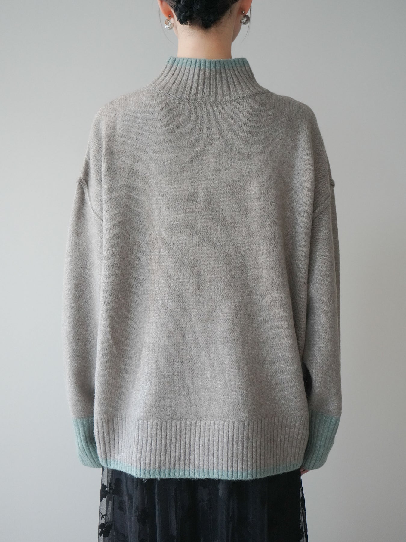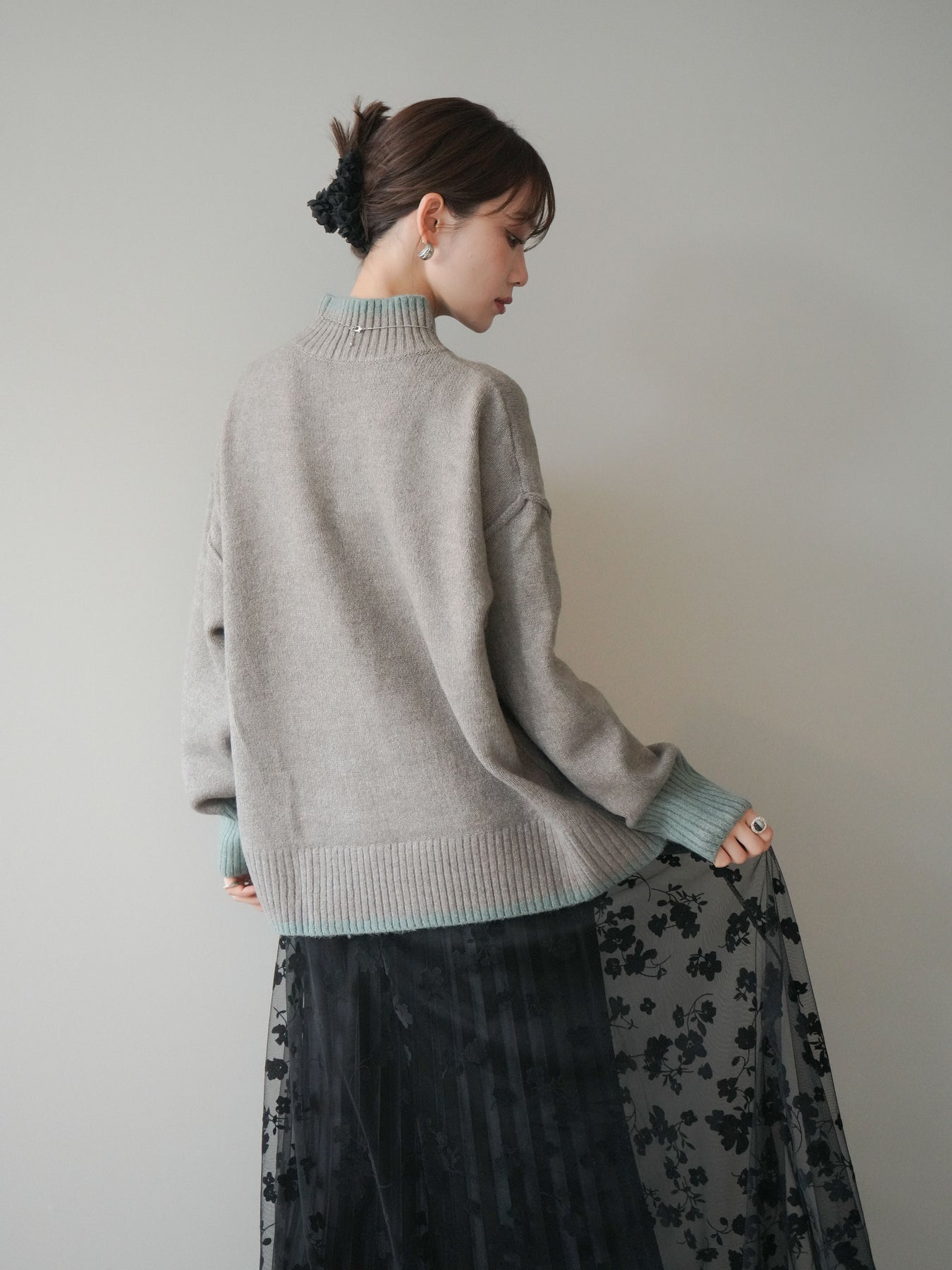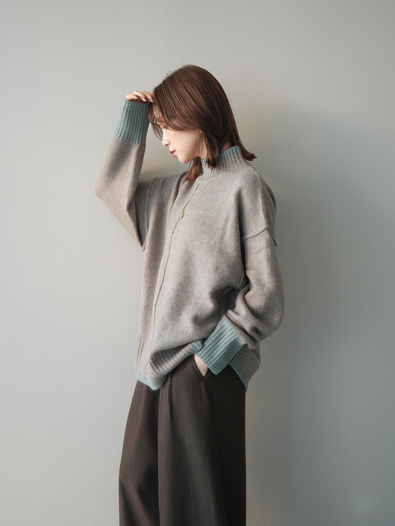 [予約]配色ハイネックニットプルオーバー/mosugraymint