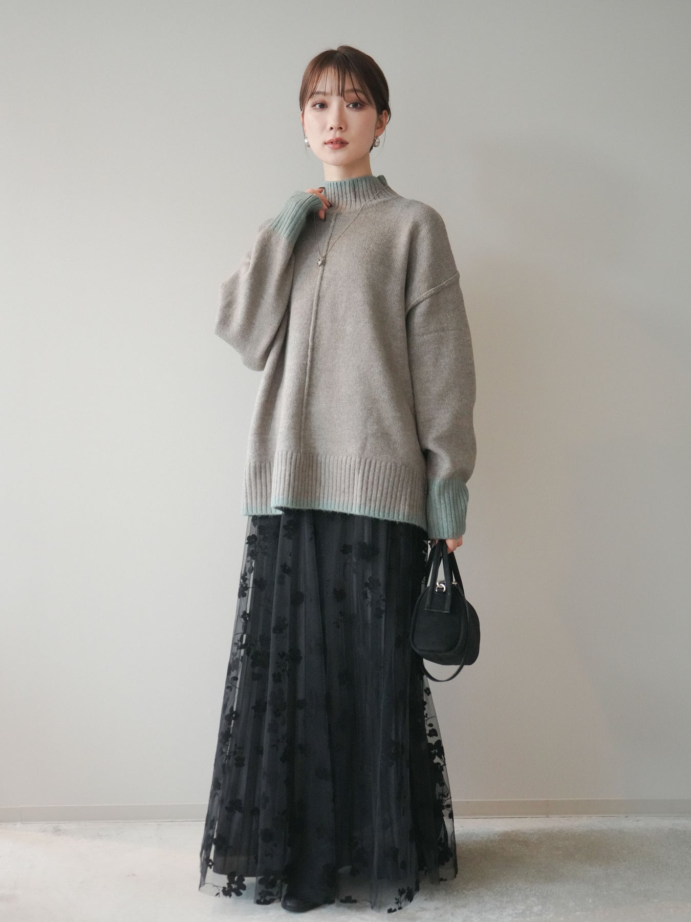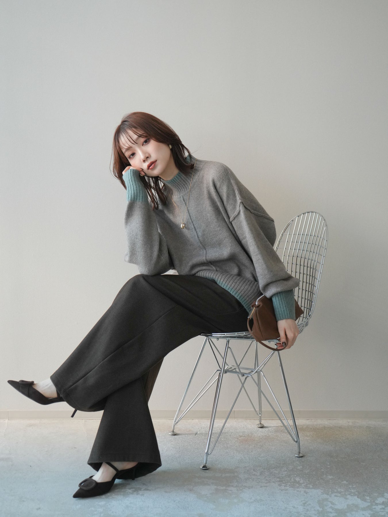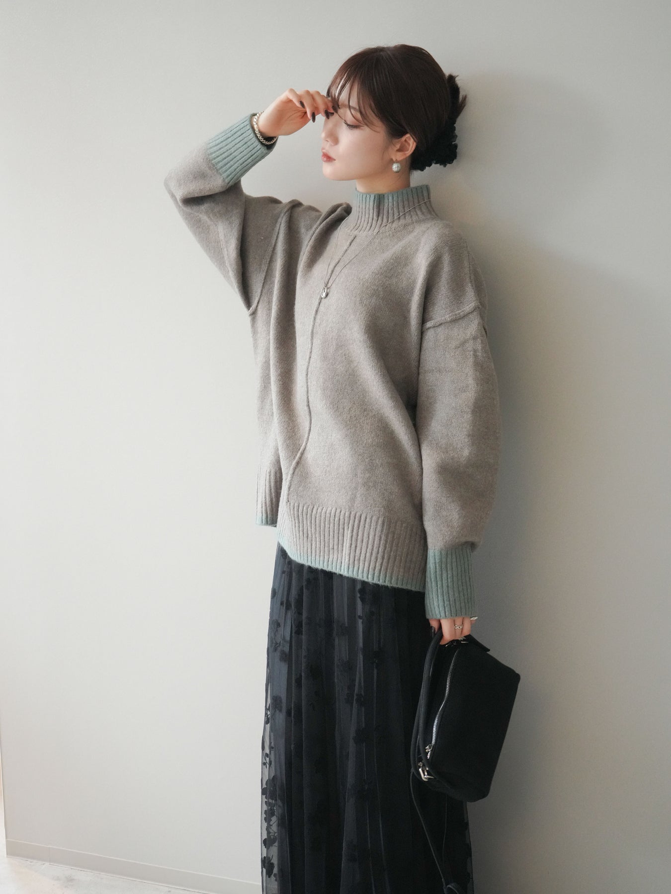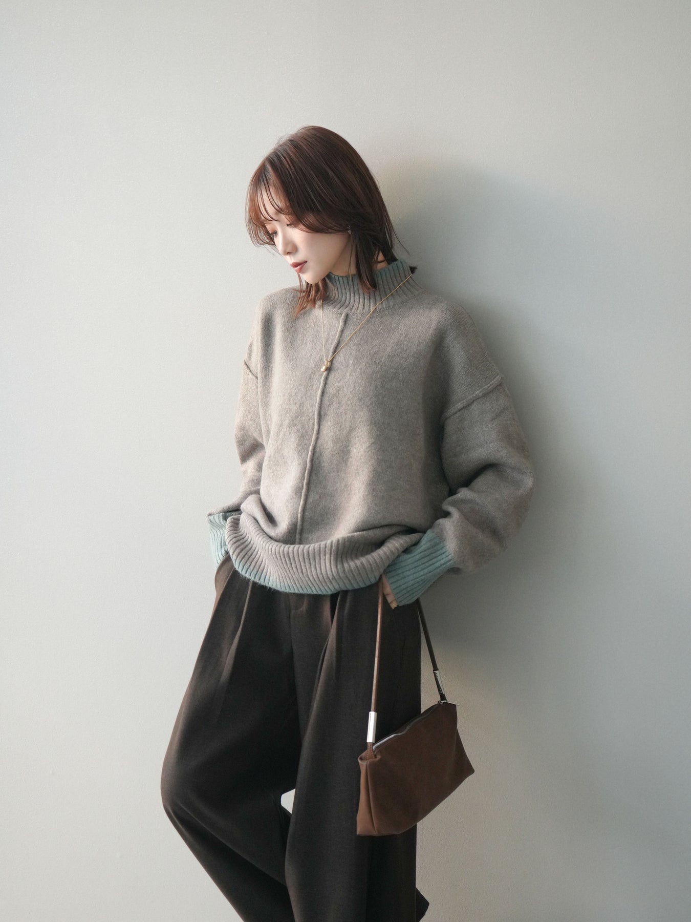 [予約]配色ハイネックニットプルオーバー/mosugraymint