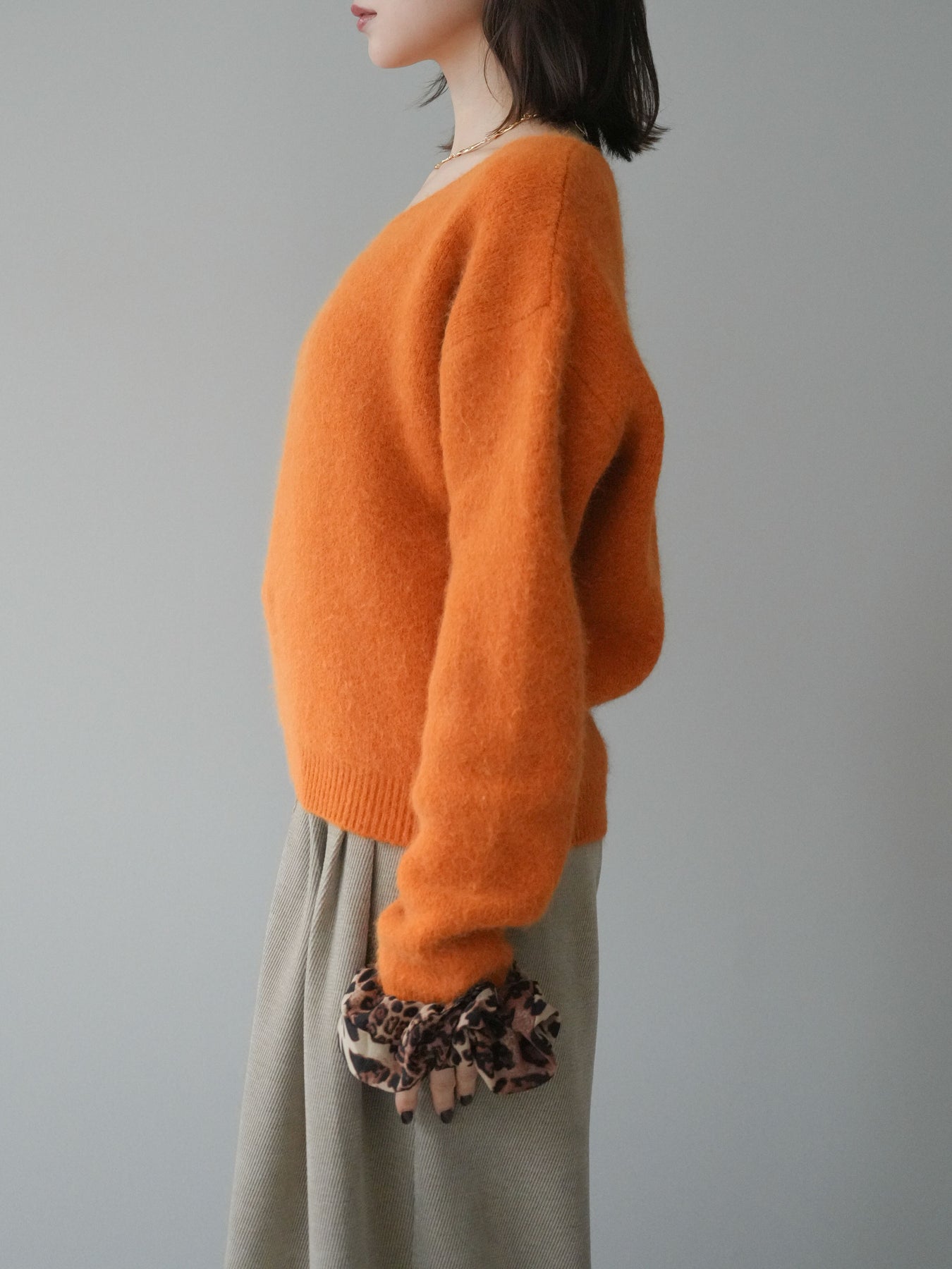 [予約]シュシュ付きアンゴラタッチVネックニットプルオーバー/orange