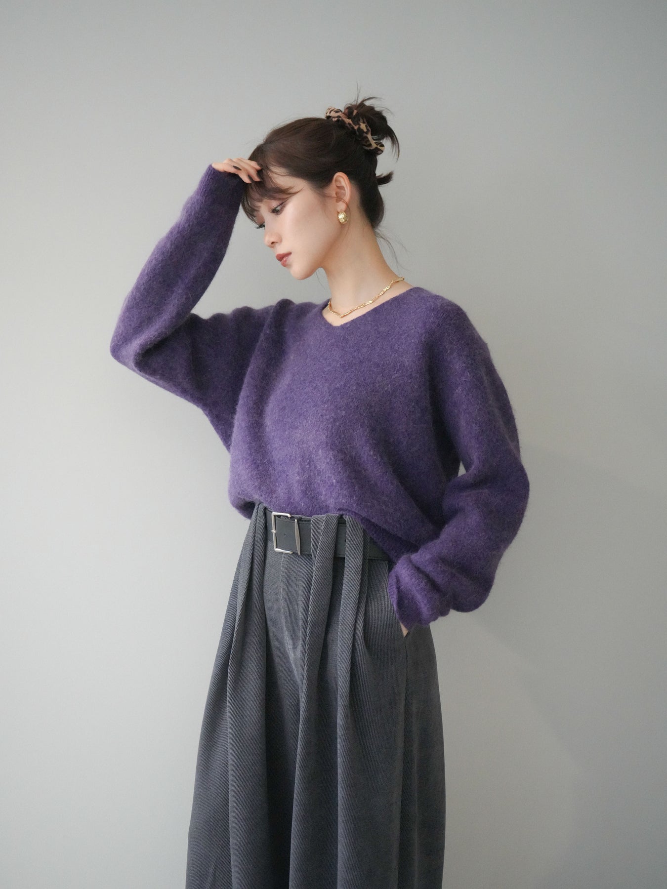 [予約]シュシュ付きアンゴラタッチVネックニットプルオーバー/purple