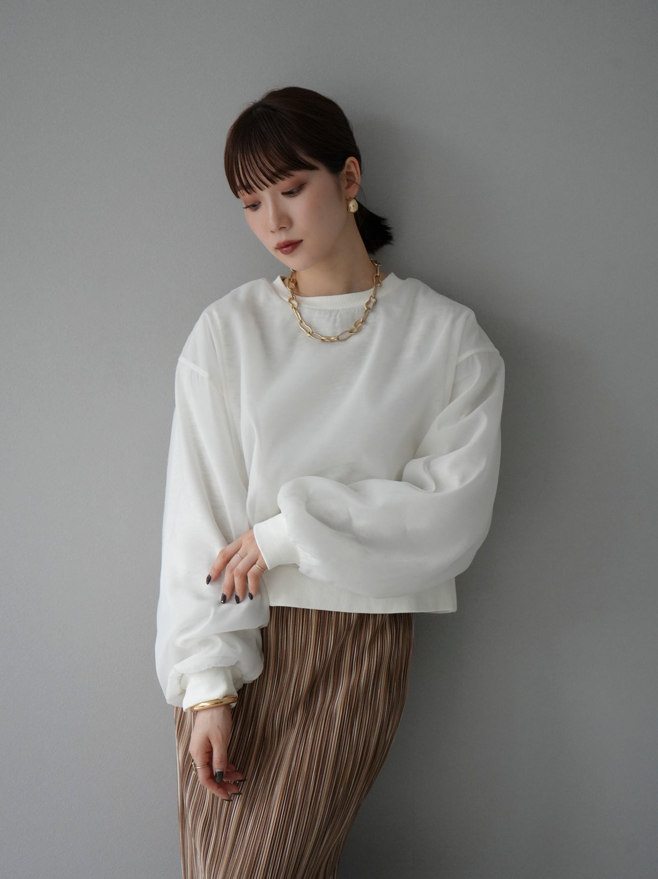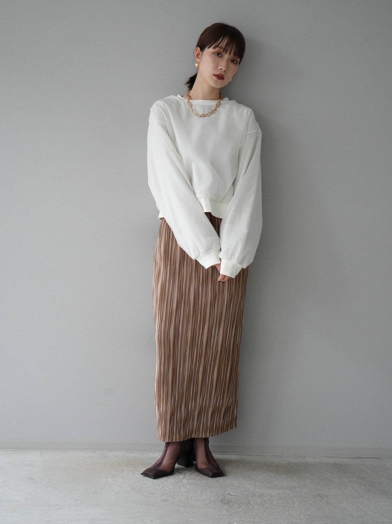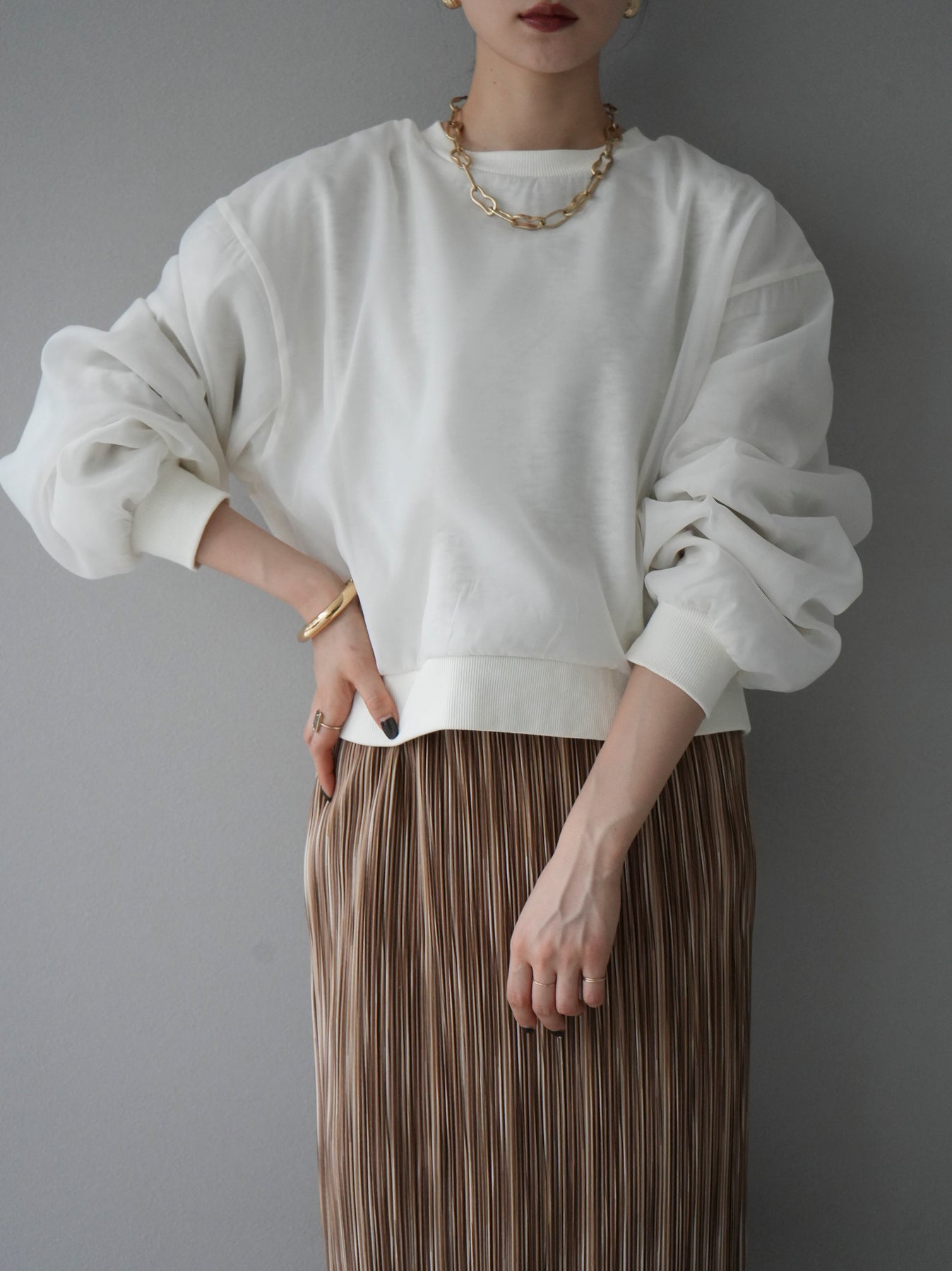 [予約]ラメシアーレイヤード裏毛クロップドプルオーバー/オートミール