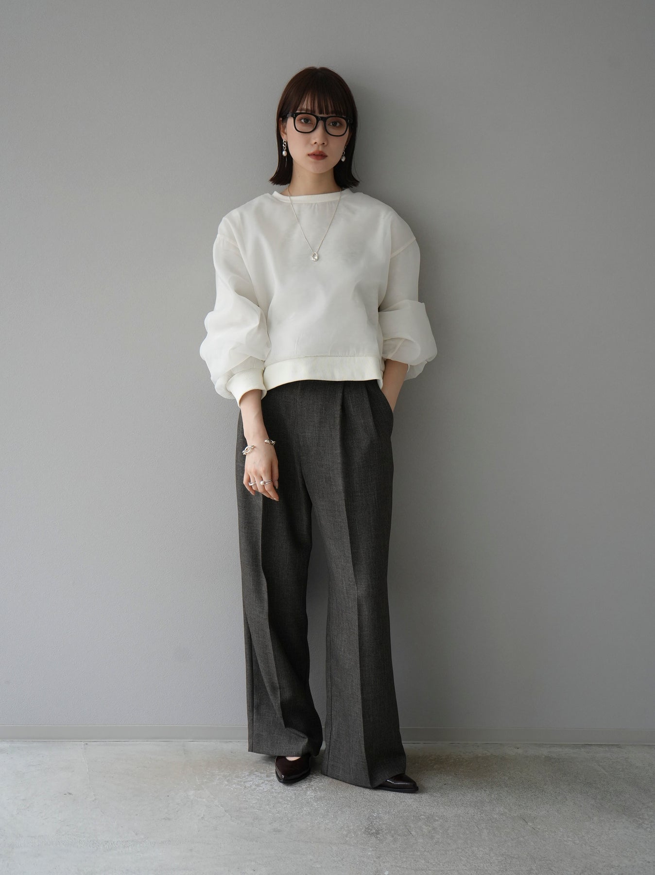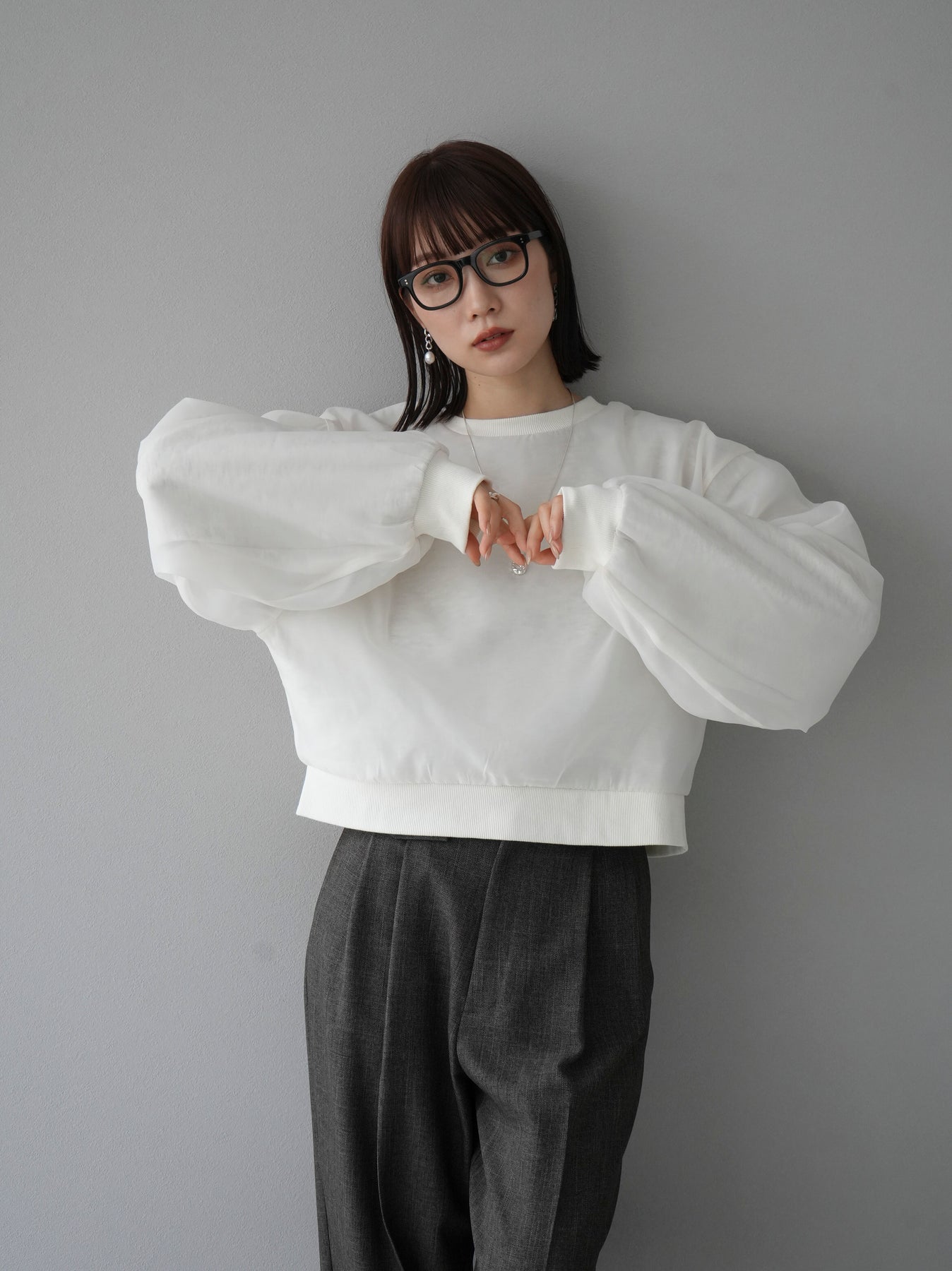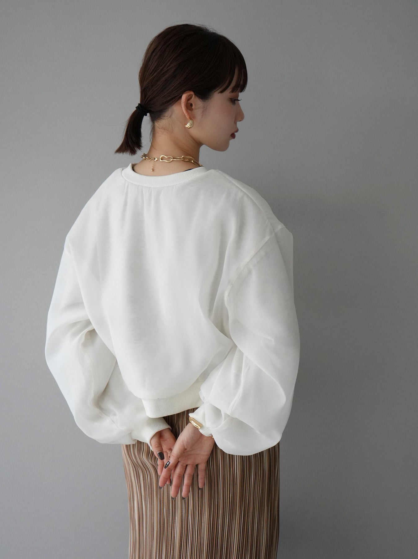 [予約]ラメシアーレイヤード裏毛クロップドプルオーバーに関連する商品を探す↓