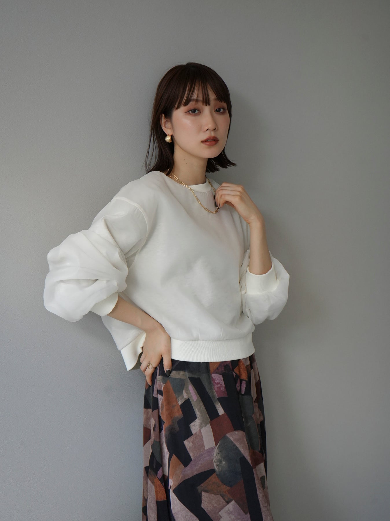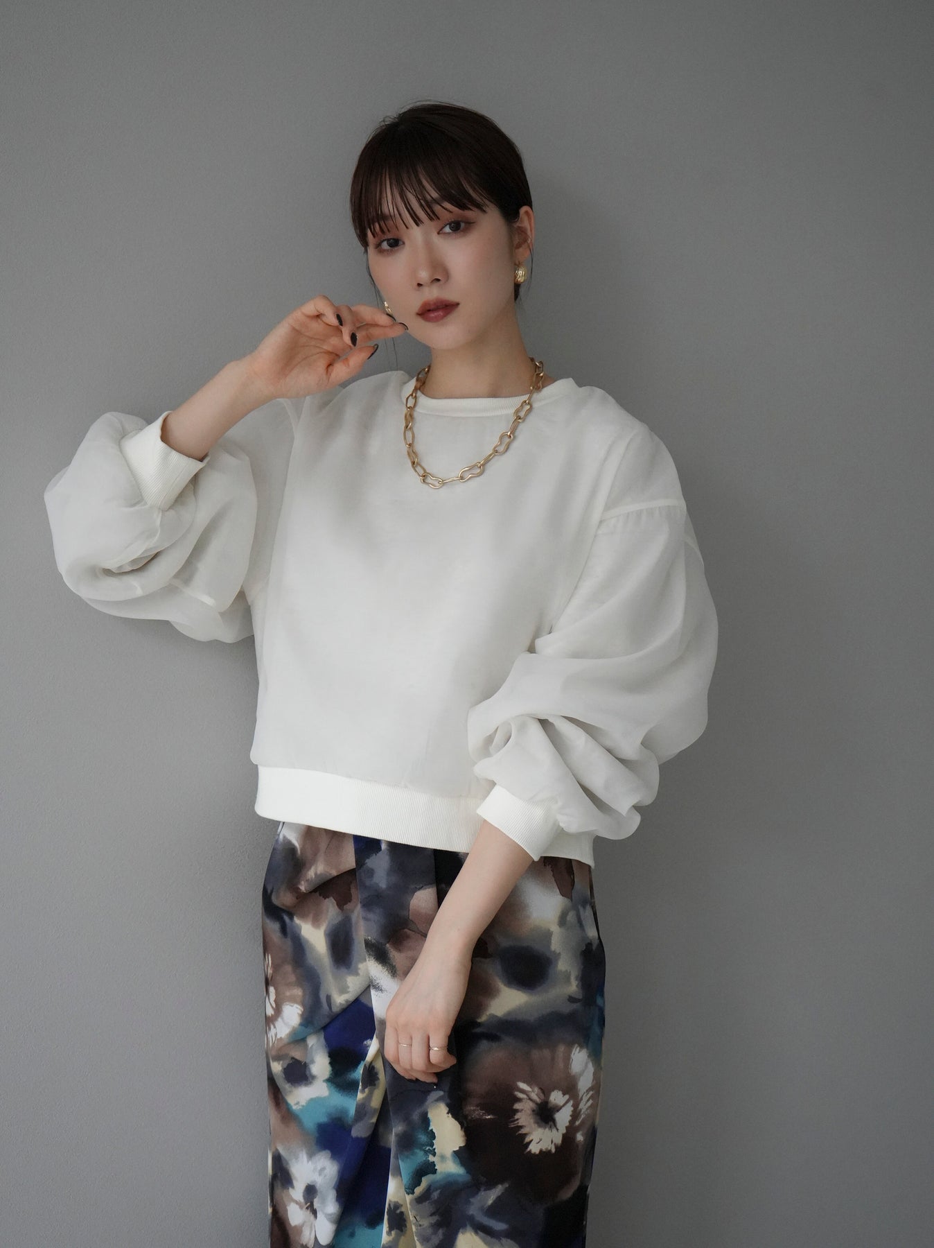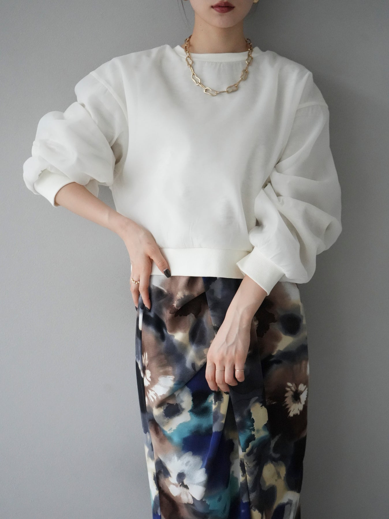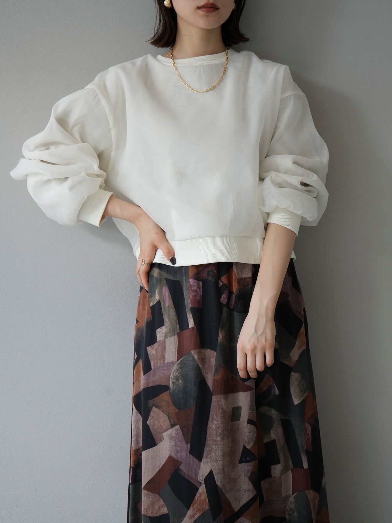 [予約]ラメシアーレイヤード裏毛クロップドプルオーバーに関連する商品を探す↓
