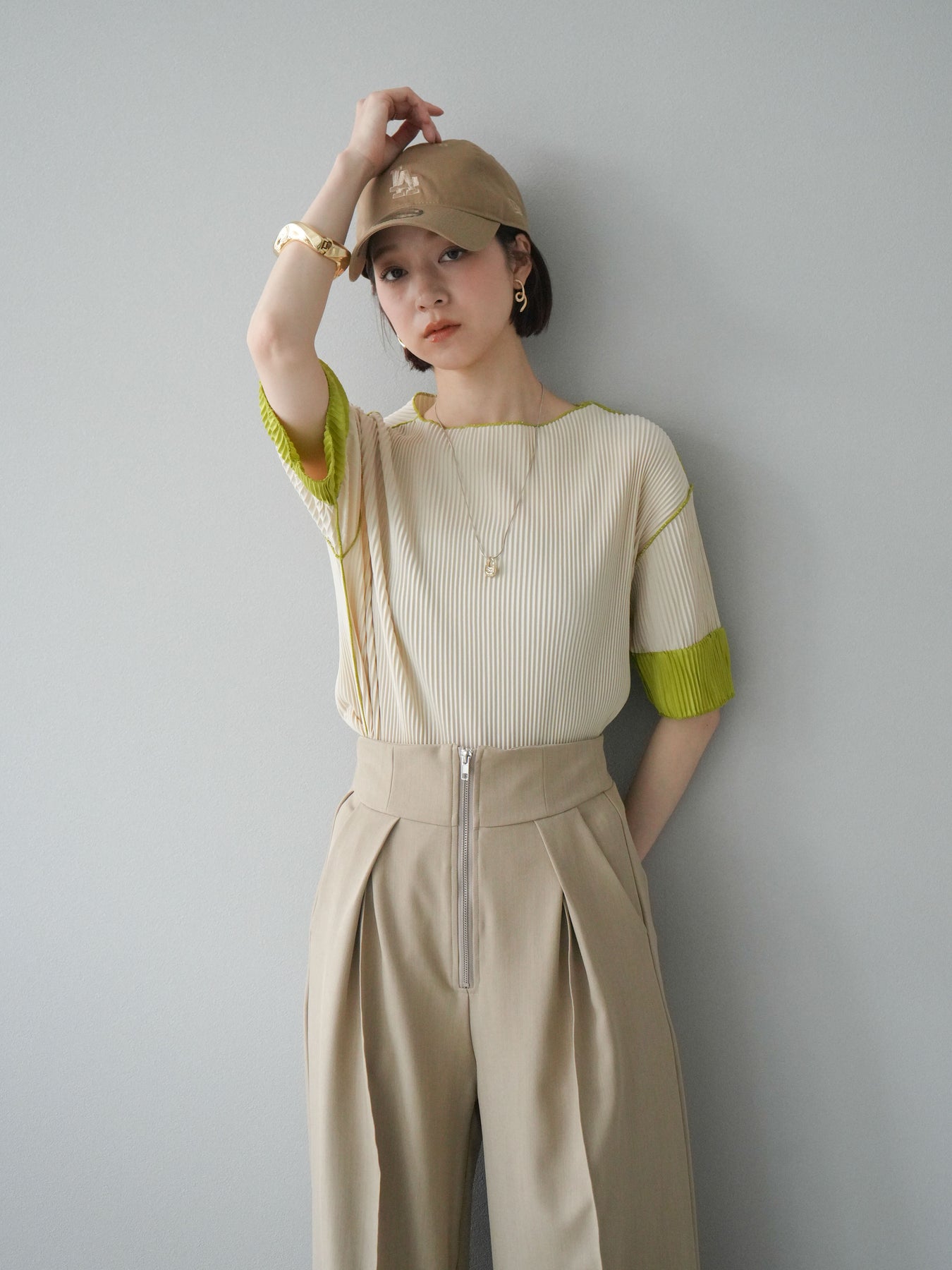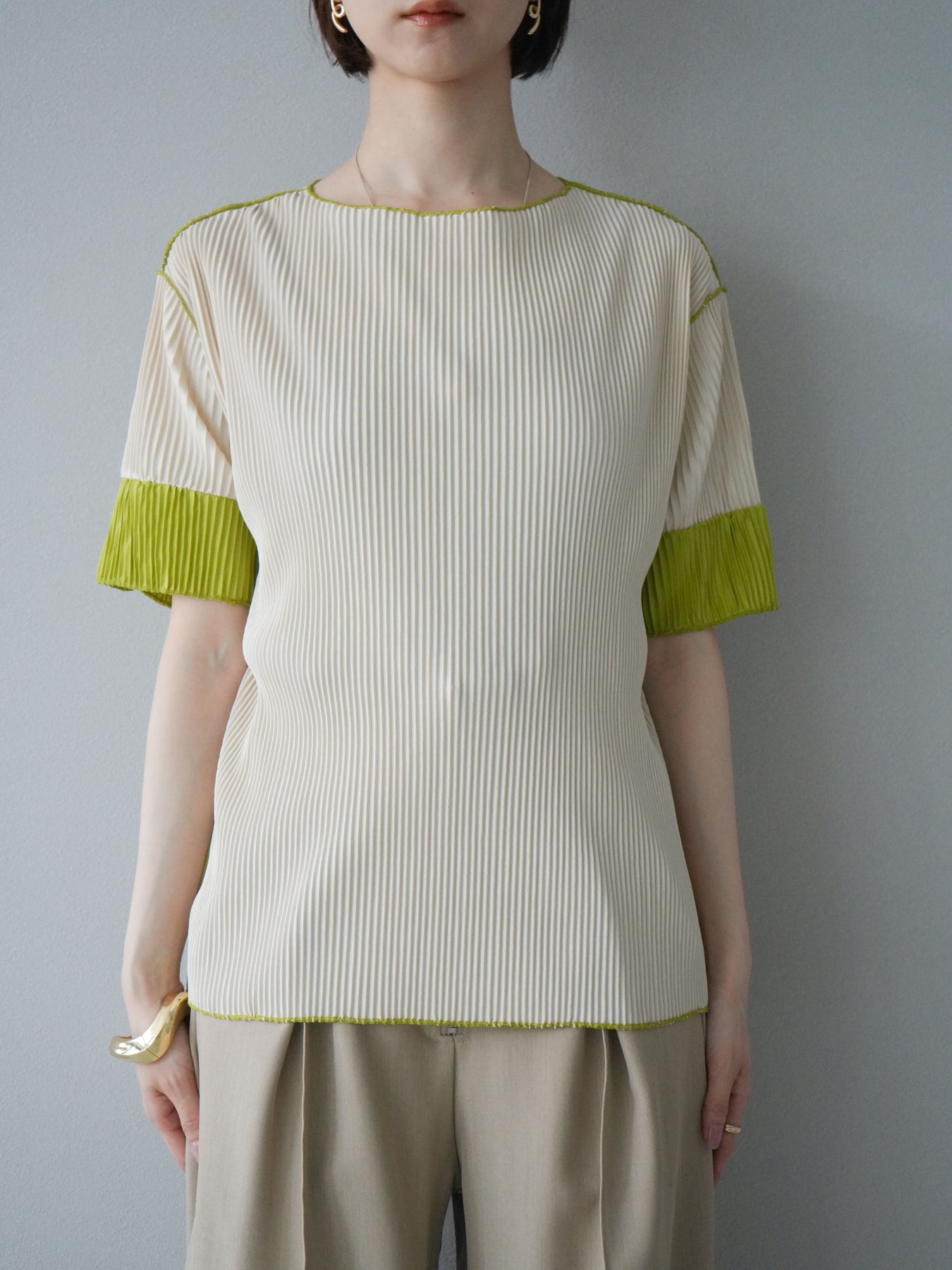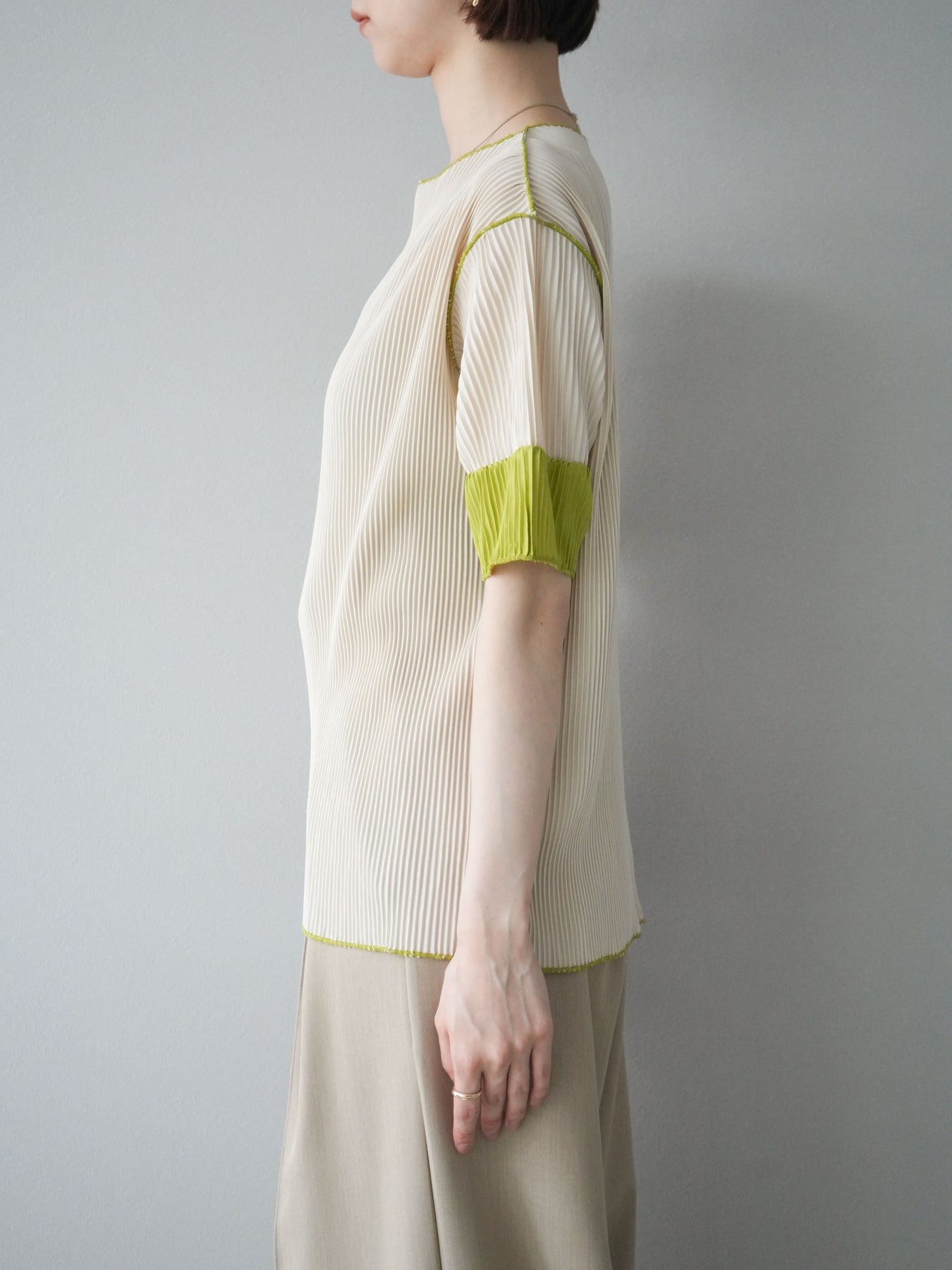 [予約]配色プリーツハーフスリーブトップス/アイボリー