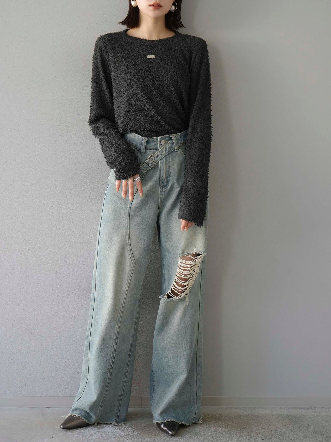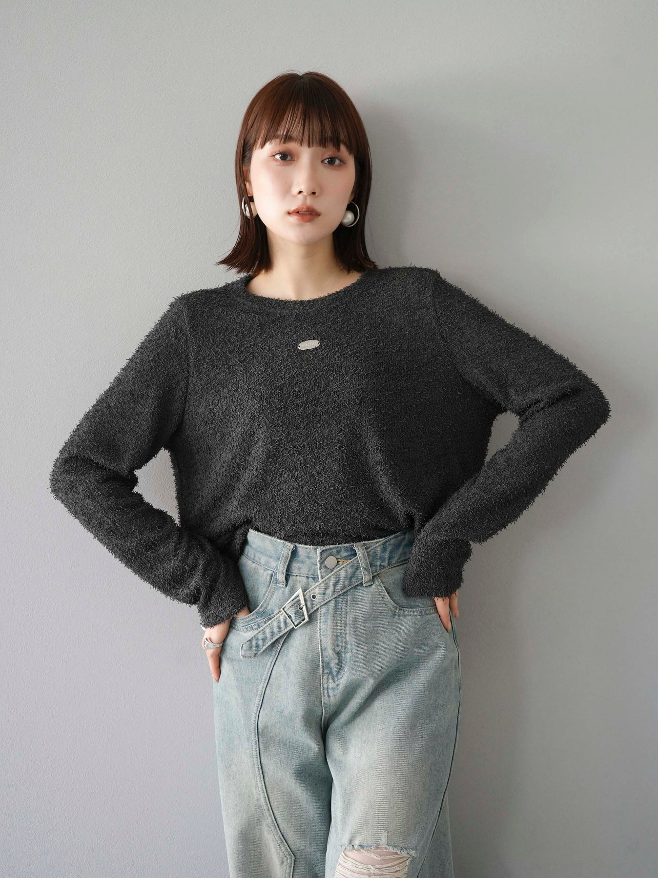 トレンド感溢れるフリンジニットトップス。メタルプレートがアクセントになり、カジュアルながらもスタイリッシュな印象をプラス。柔らかなコットン素材で、快適な着心地を実現。デイリースタイルに取り入れるだけでおしゃれ度がアップします。 ※ボトムス、キャミソール(インナー)以外の商品は一律でインナーは付属していません。