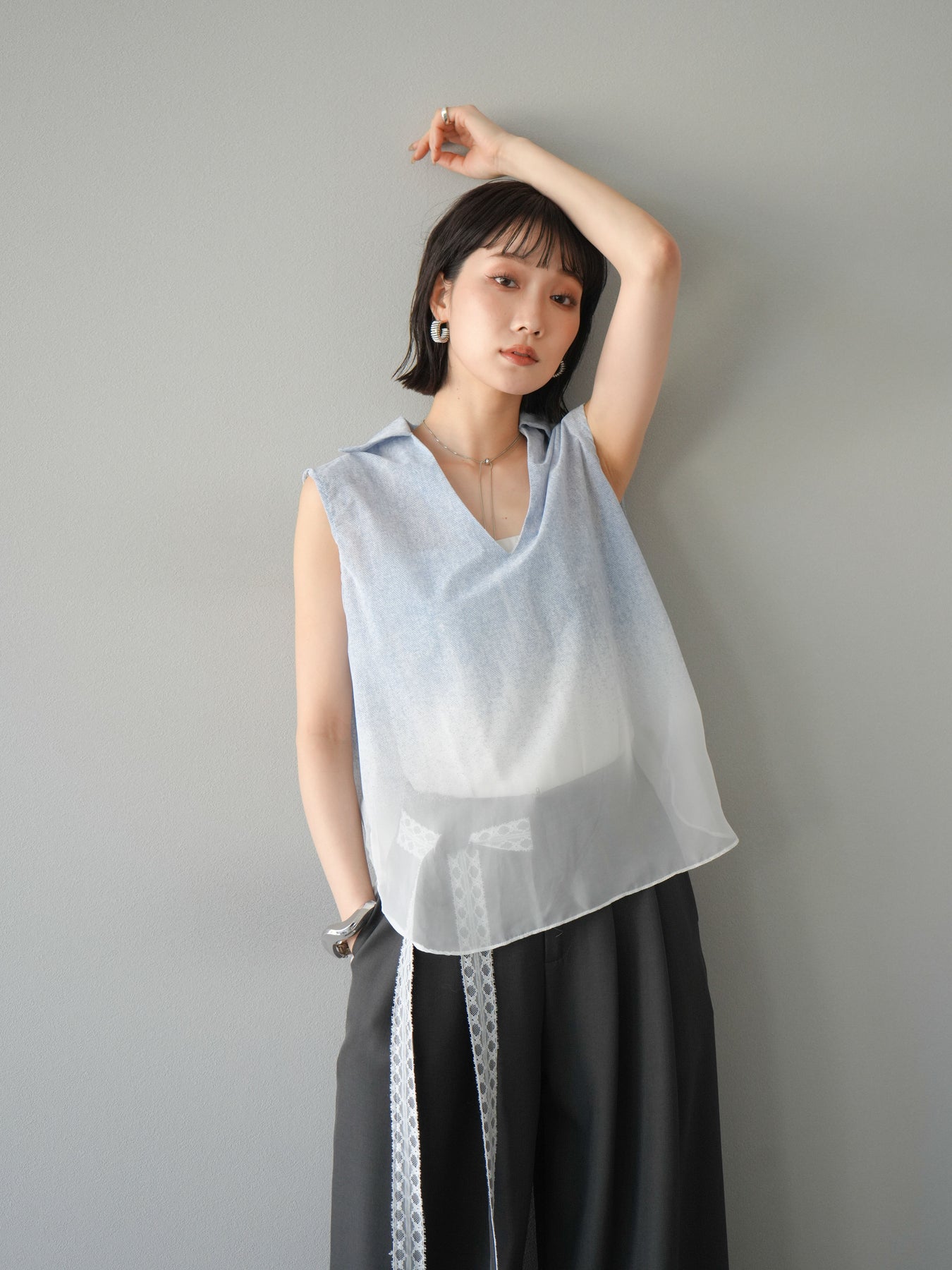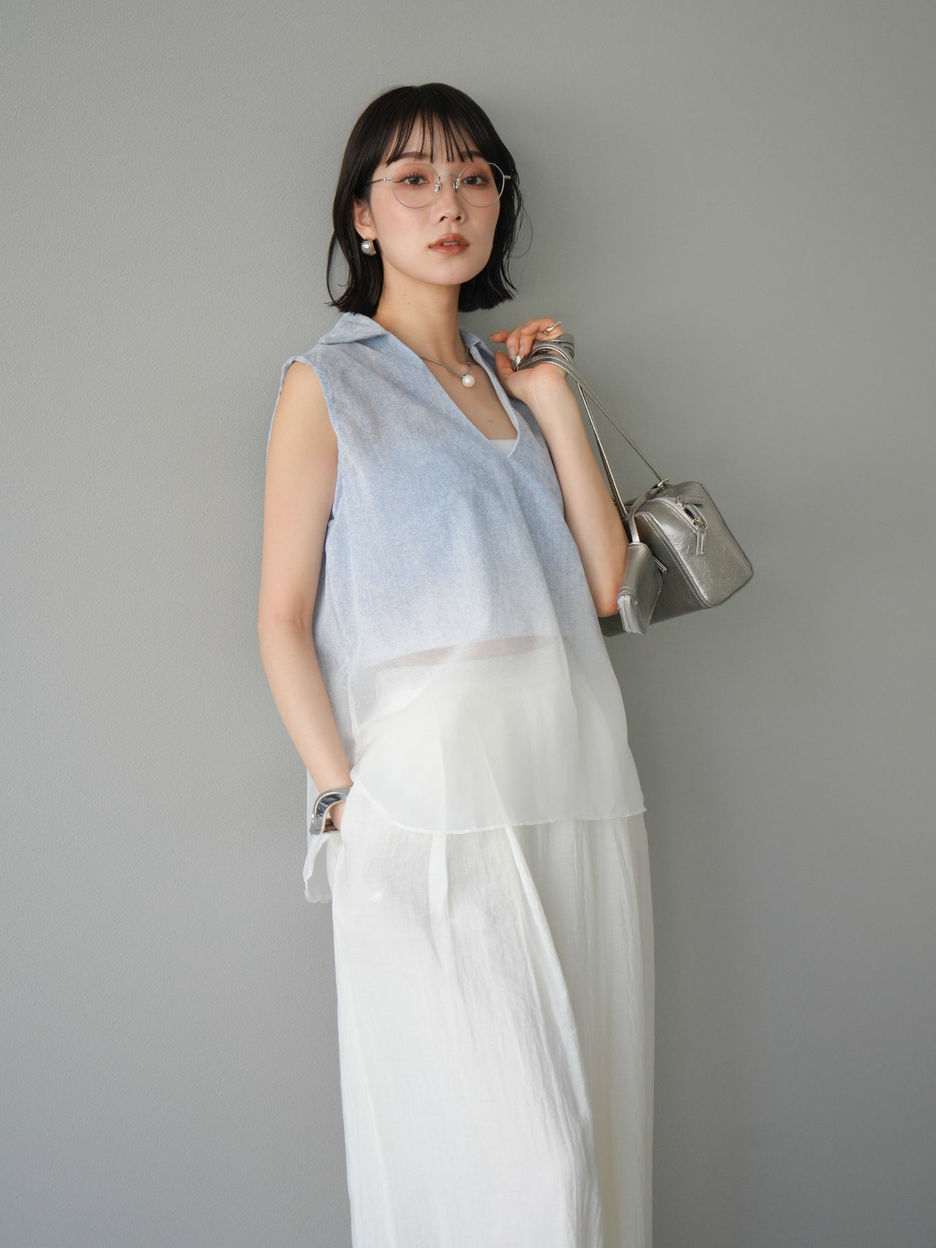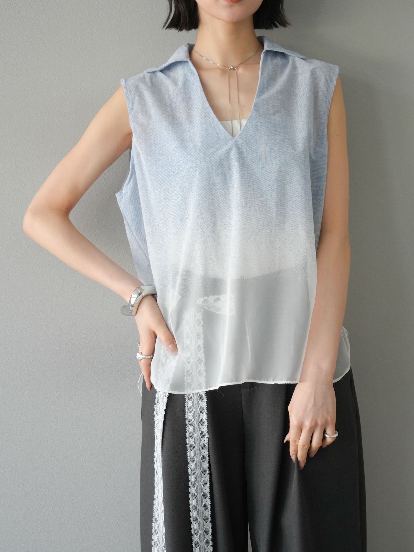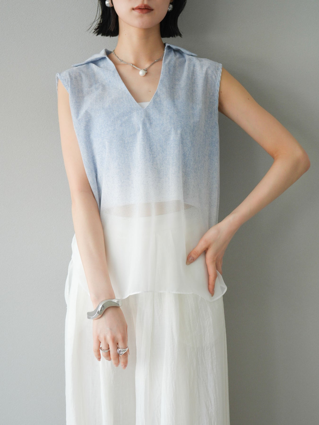[予約]染めグラデージョンスキッパーブラウス/ライトブルー