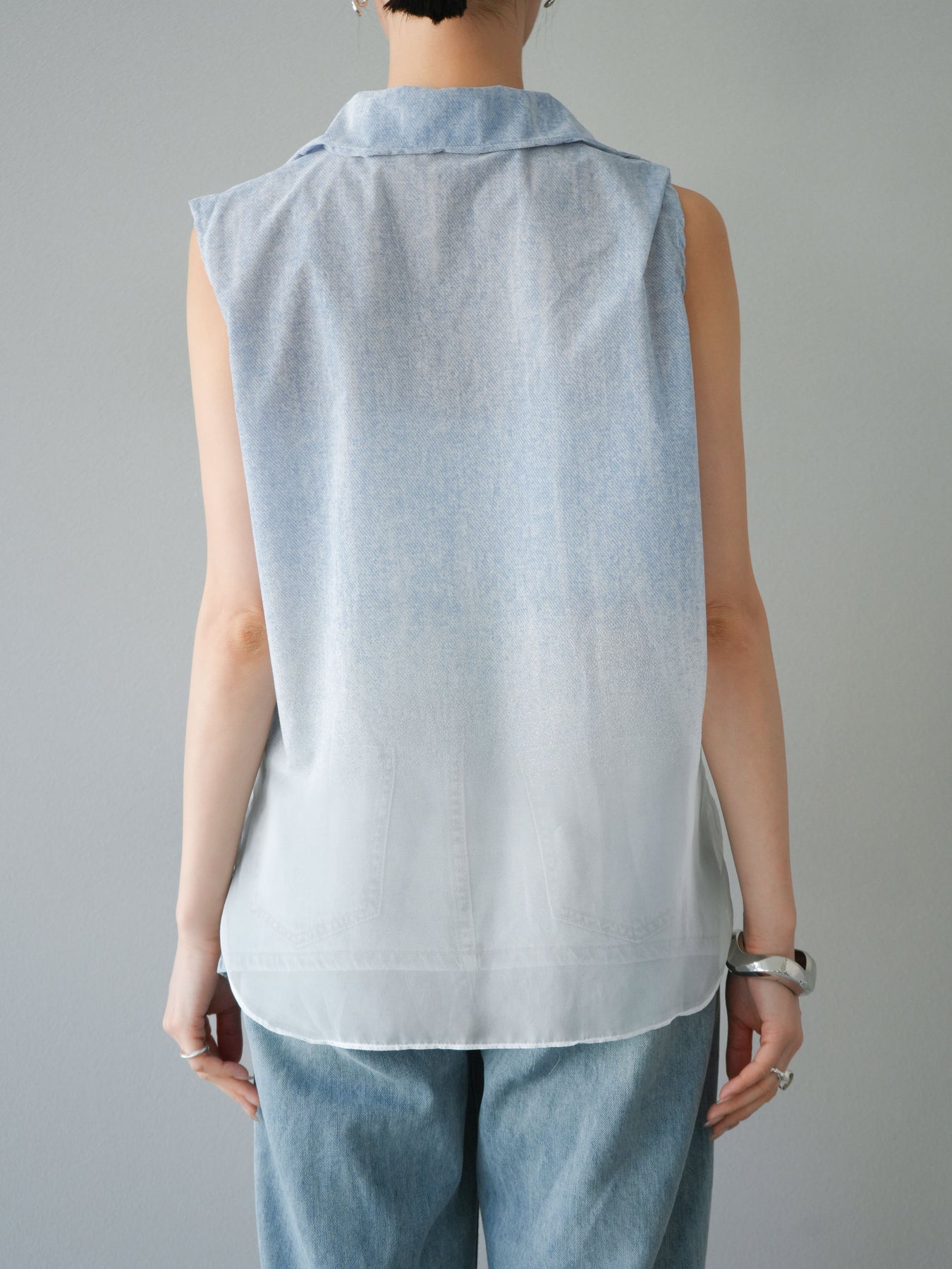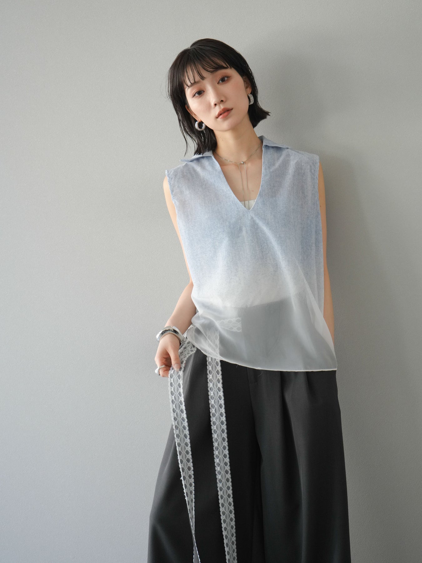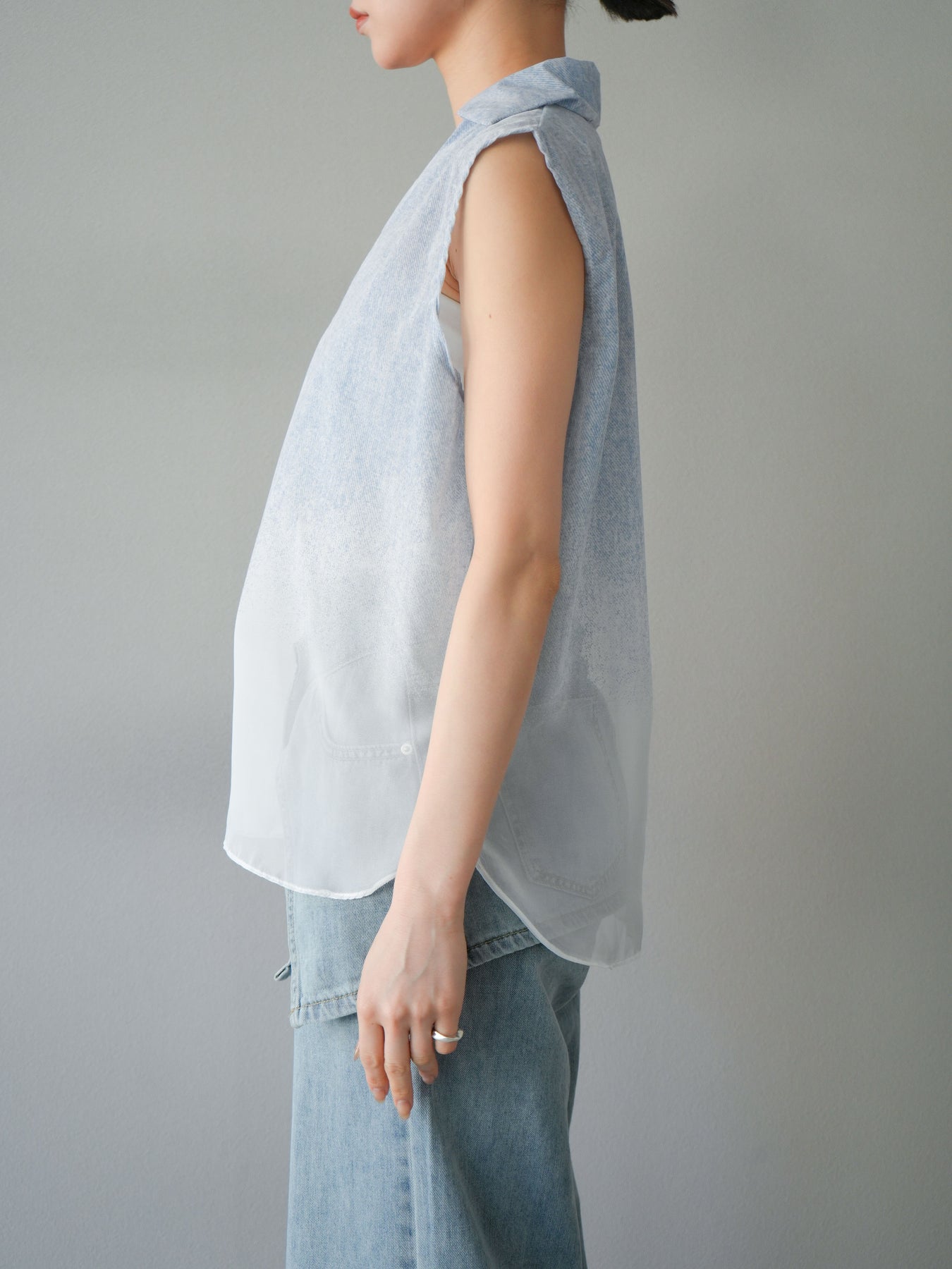 [予約]染めグラデージョンスキッパーブラウス/ライトブルー