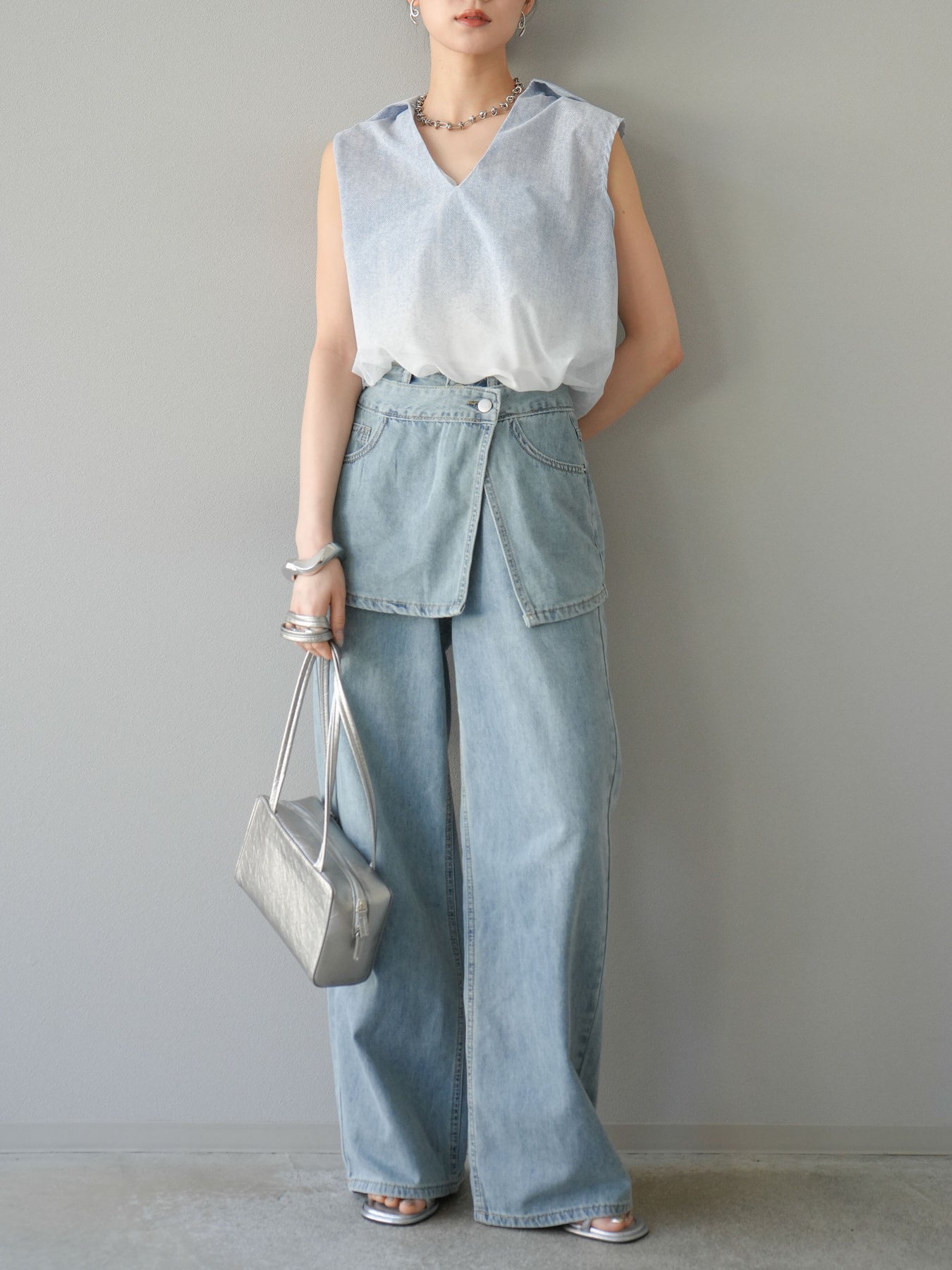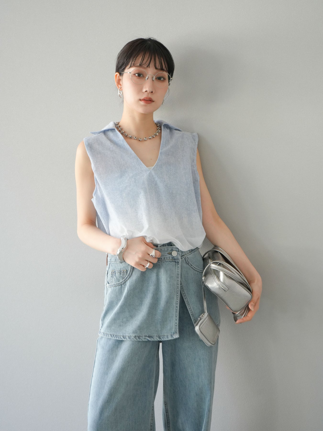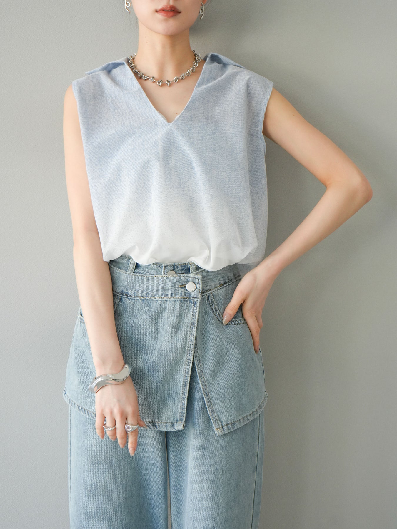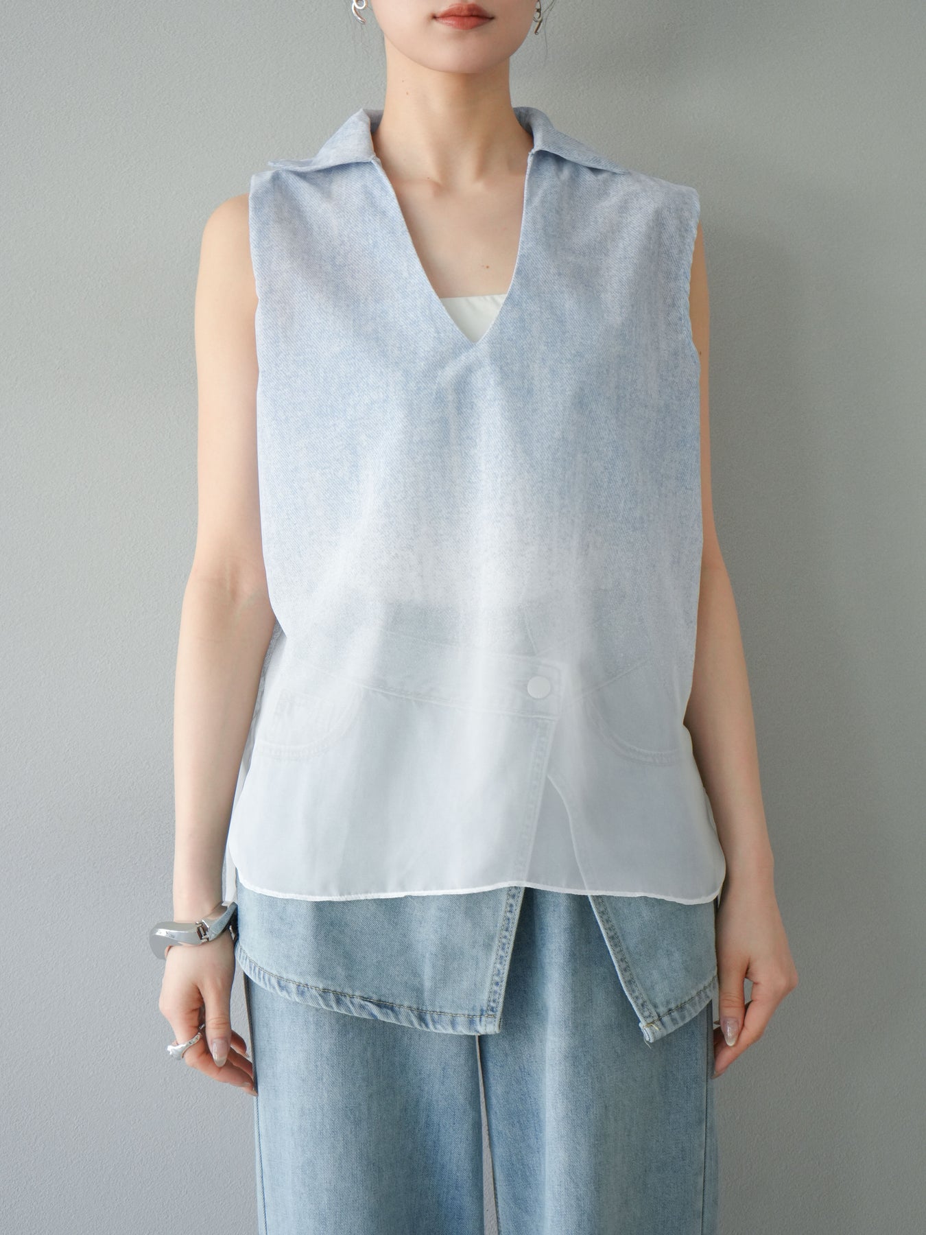 [予約]染めグラデージョンスキッパーブラウス/ライトブルー