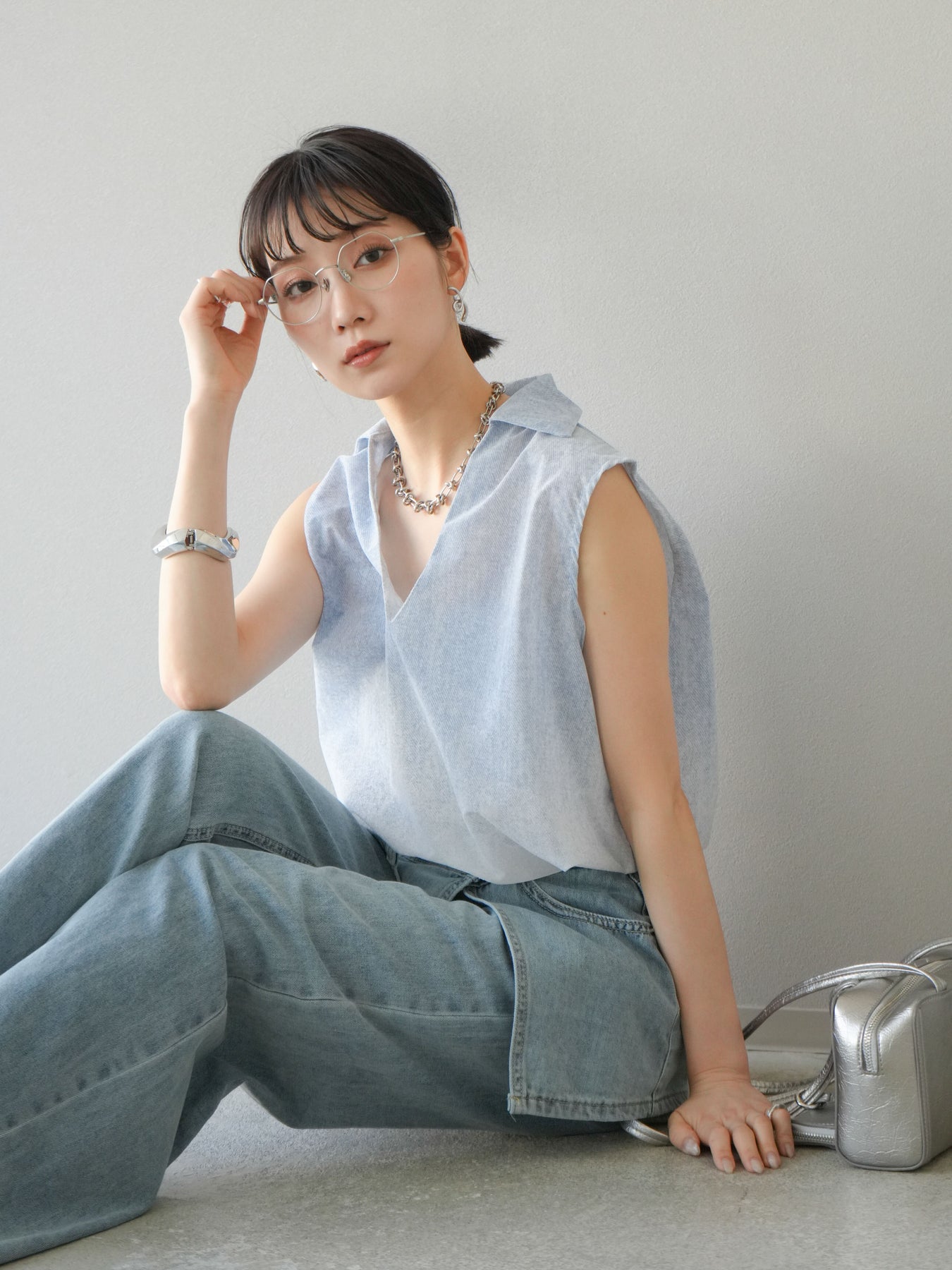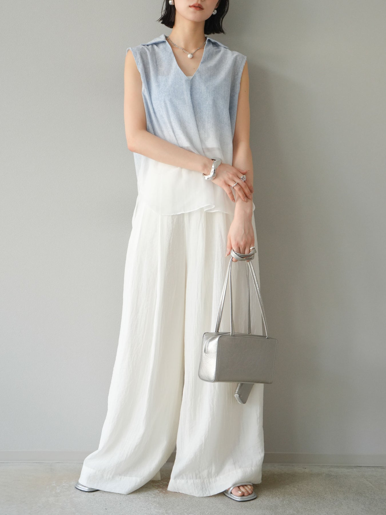 爽やかなグラデーション染めが目を惹くスキッパーブラウス。Vネックの抜け感とスキッパーデザインで、首元をすっきりと見せつつ女性らしさを演出します。軽やかな素材感が涼しげで、カジュアルからきれいめまで幅広いコーデにマッチ。パンツスタイルやスカートとも好相性の1枚です。 ※ボトムス、キャミソール(インナー)以外の商品は一律でインナーは付属していません