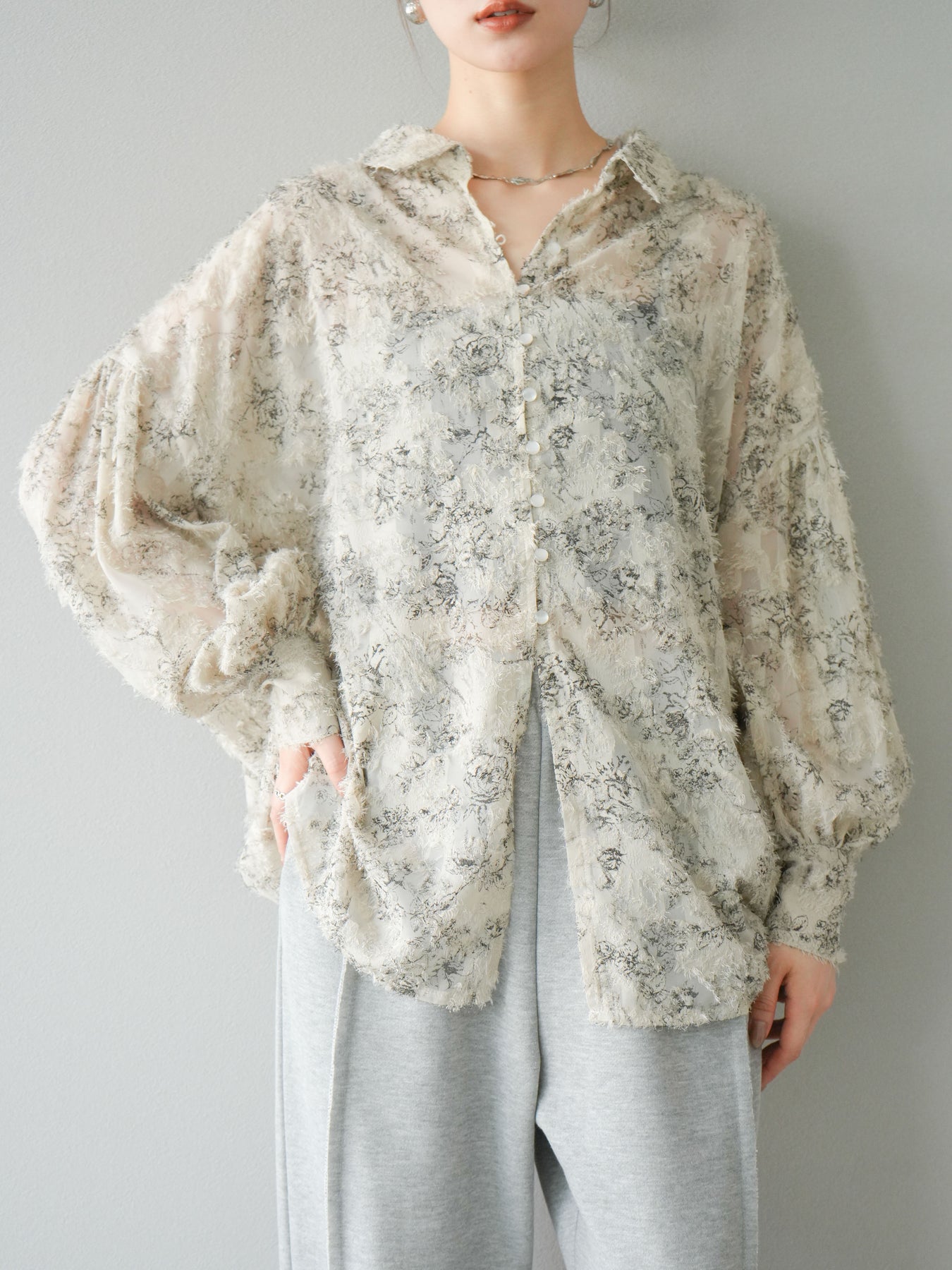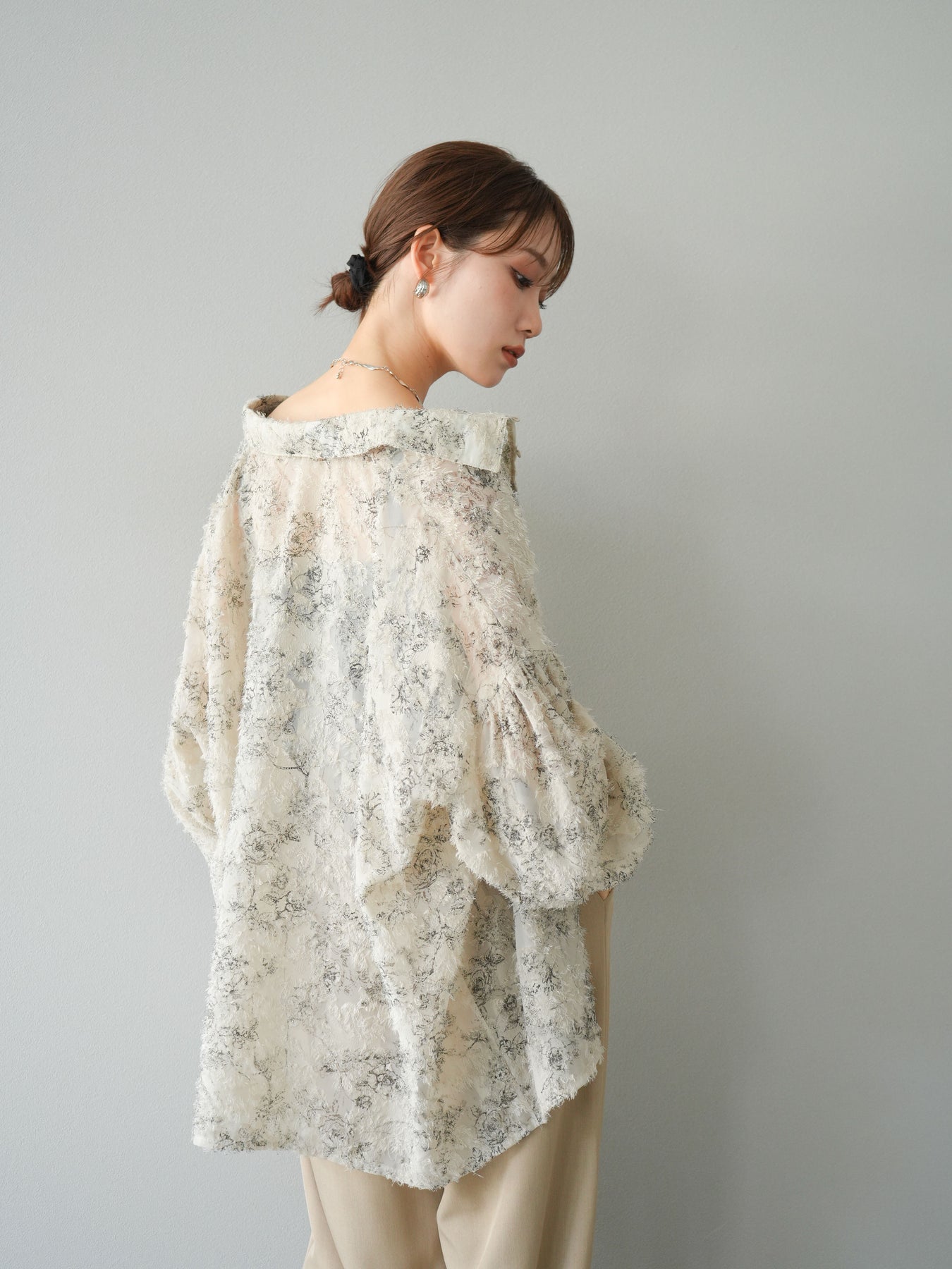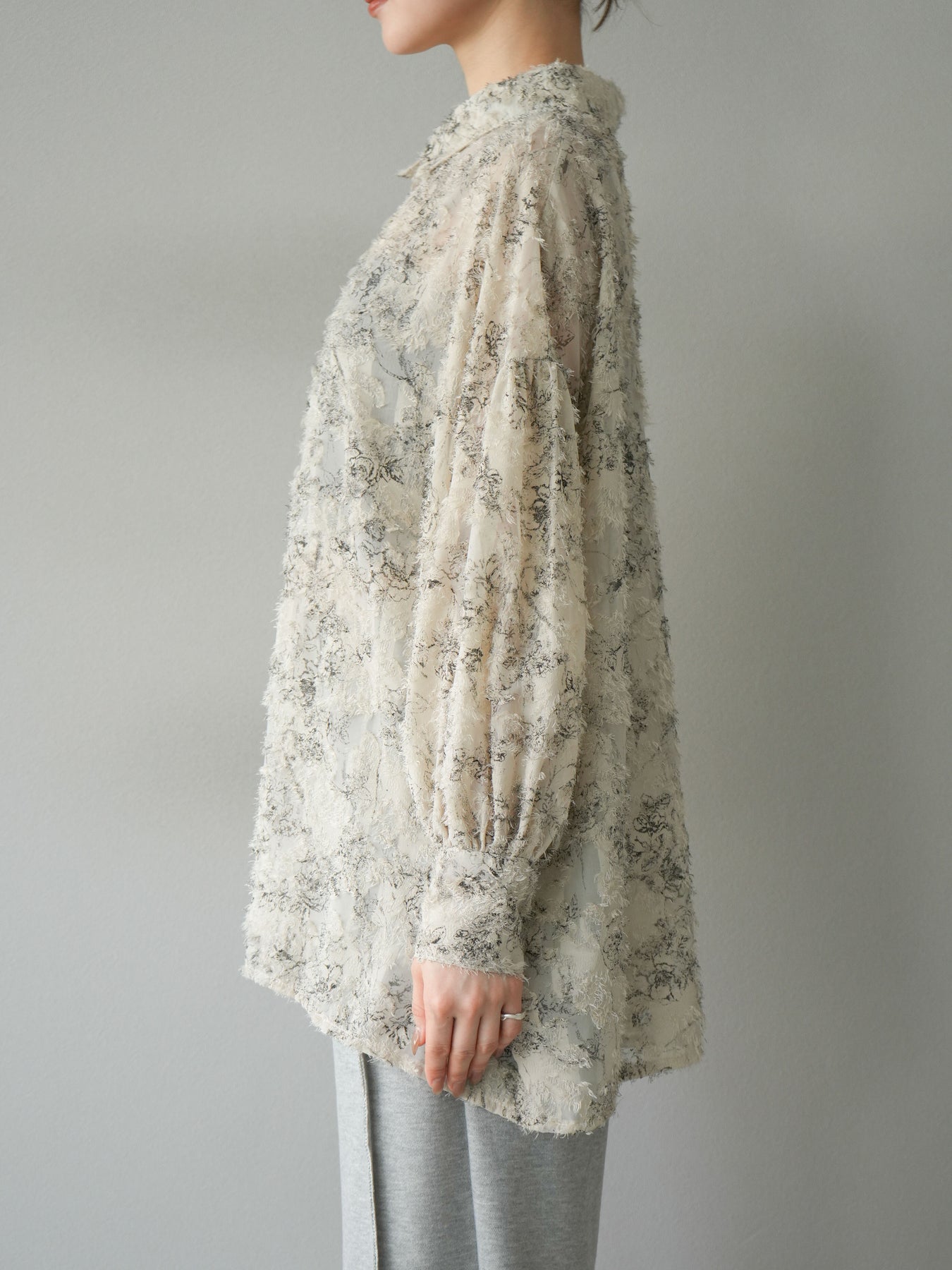 [予約]ニュアンスフリンジジャガードボリュームスリーブブラウス/ベージュ